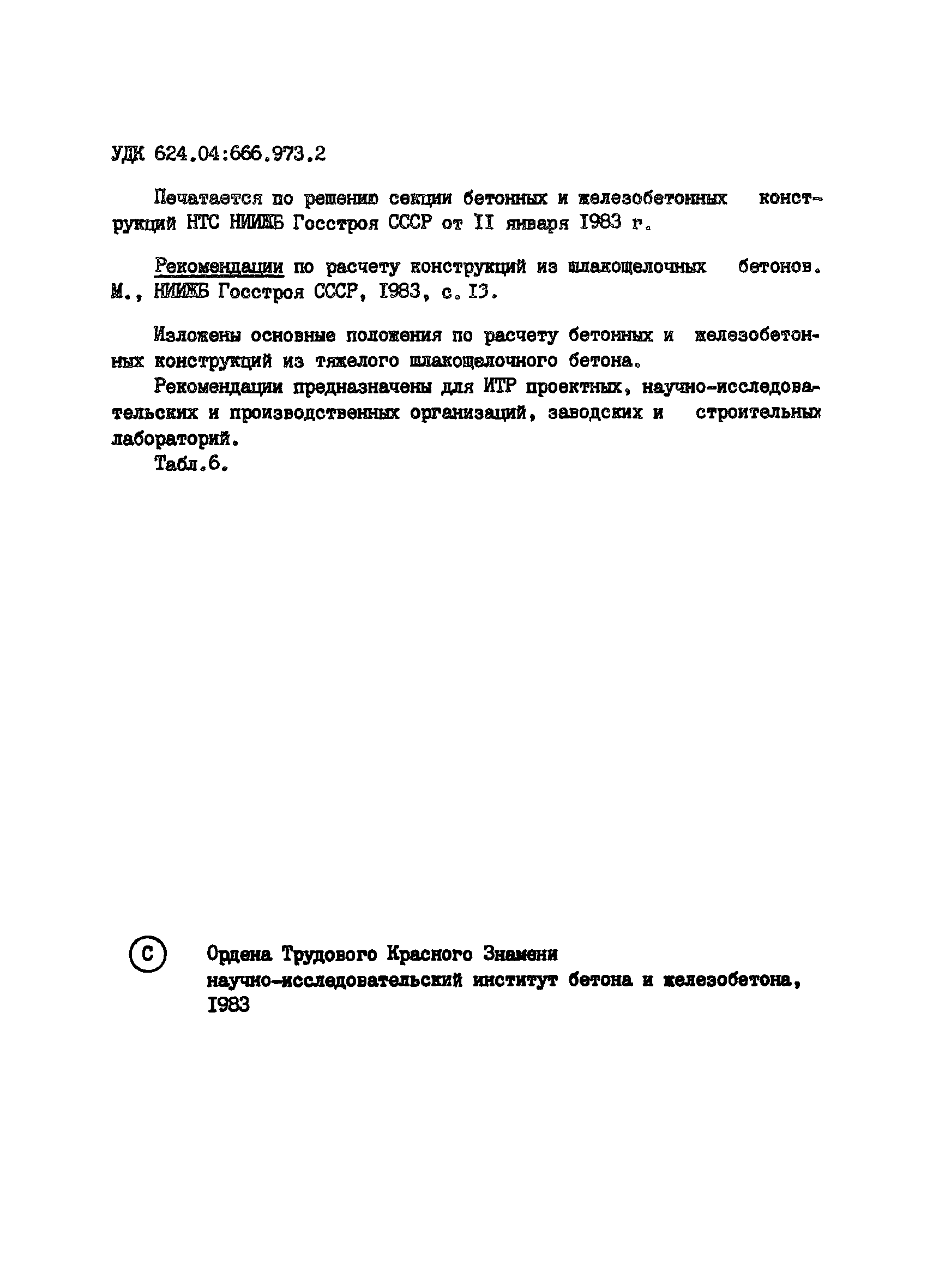 | Название рус.: | Рекомендации по расчету конструкций из шлакощелочных бетонов |