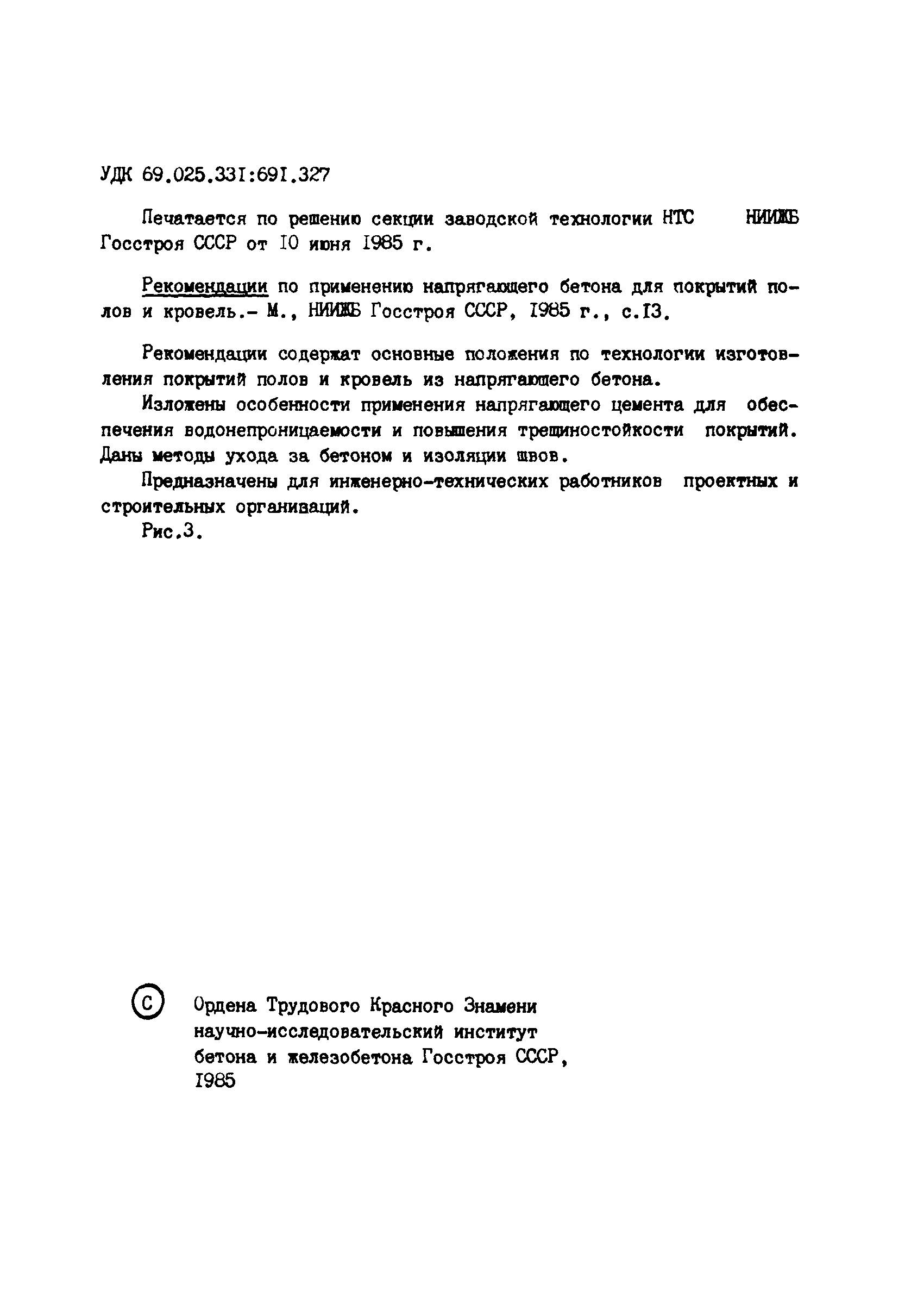 | Утверждён: | 14.06.1985 НИИЖБ Госстроя СССР (NIIZhB, USSR Gosstroy ) |