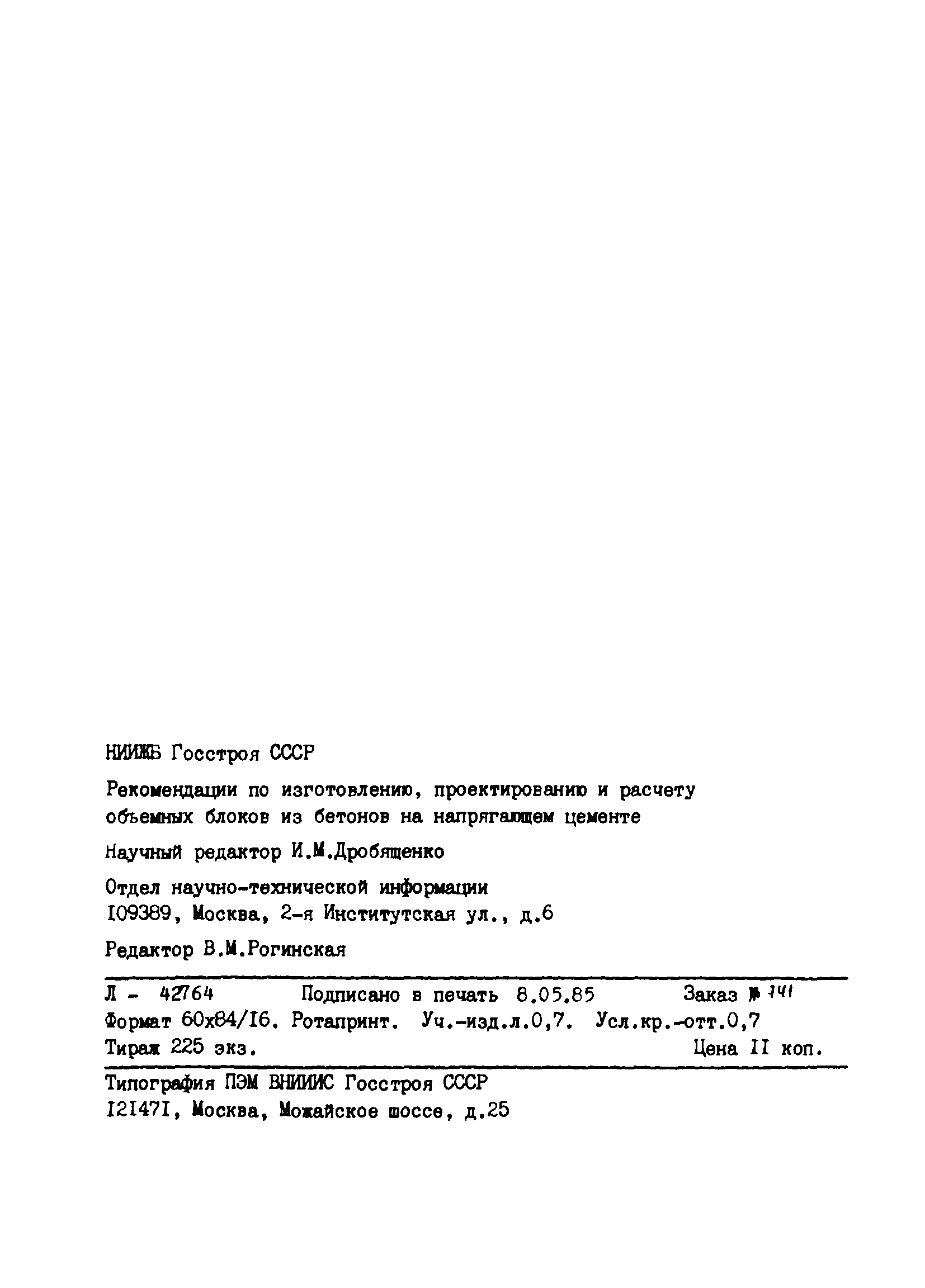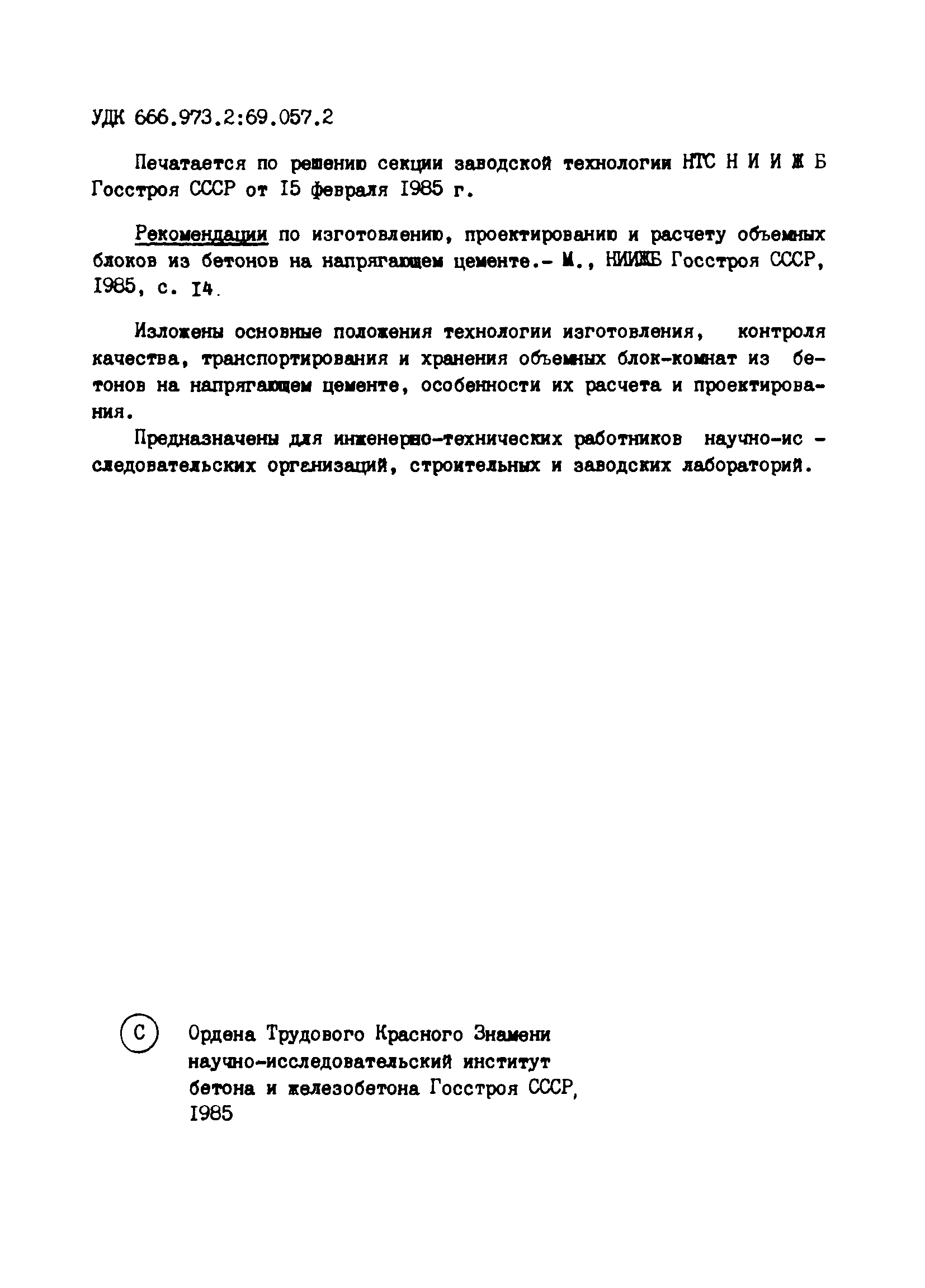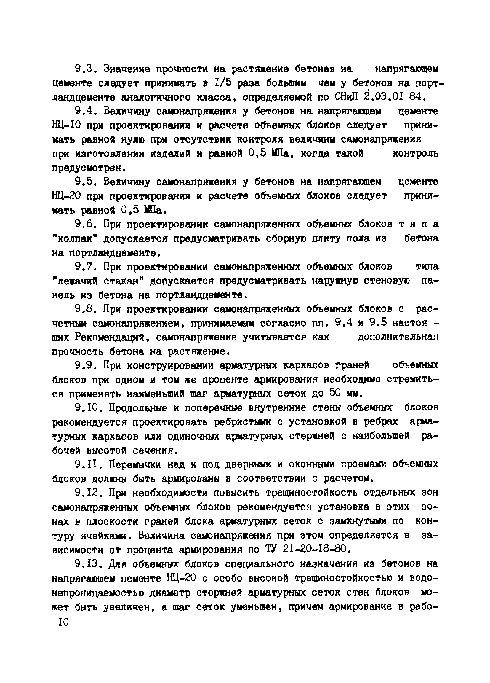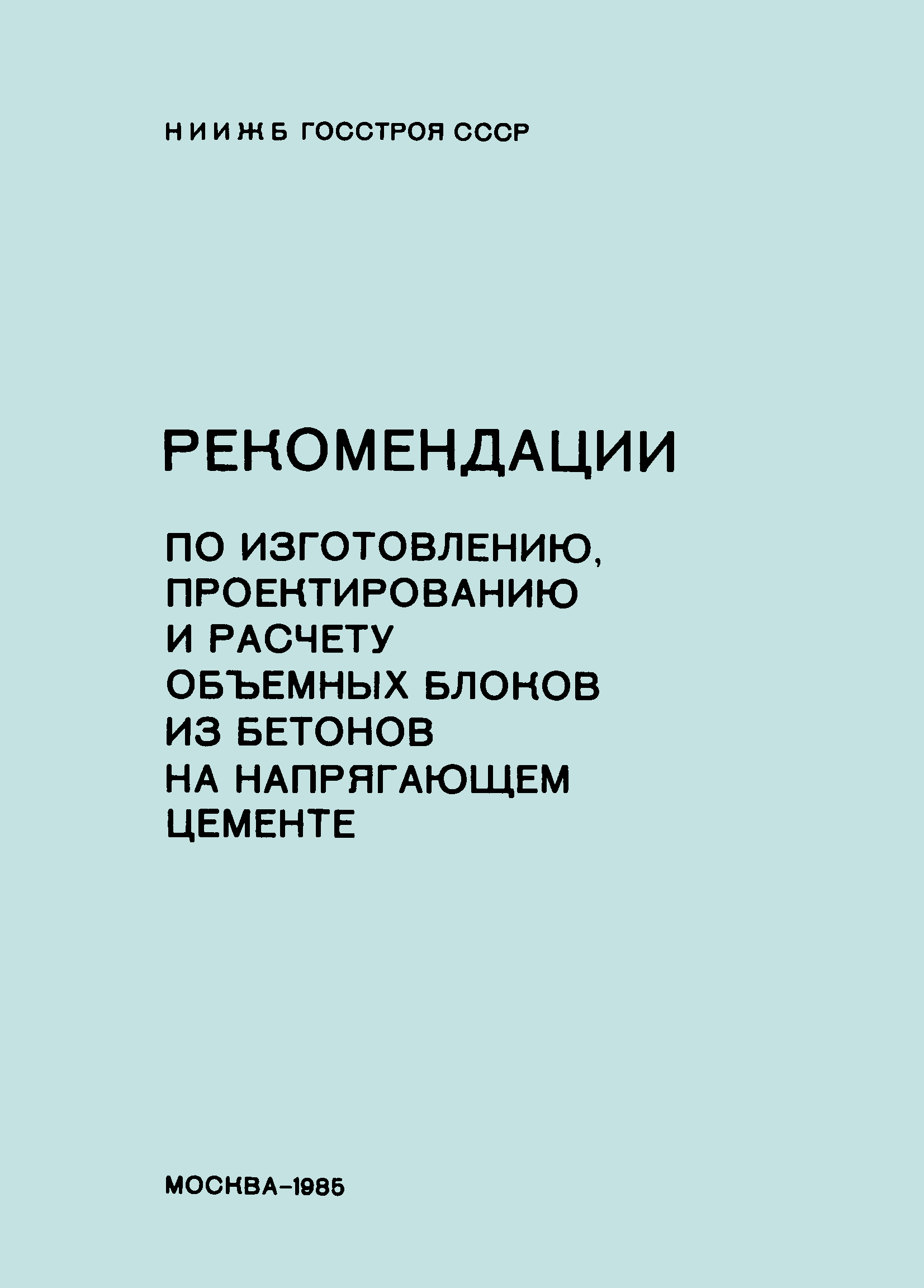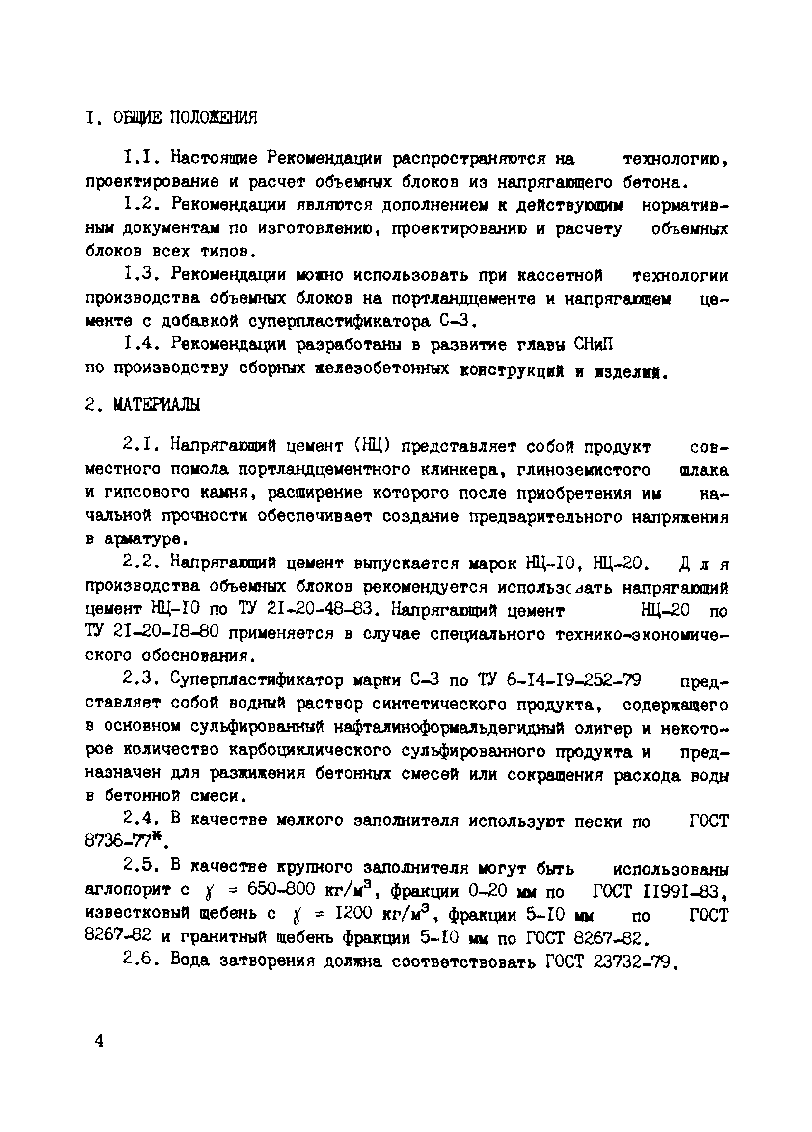 | Область применения: | Рекомендации распространяются на технологию, проектирование и расчет объемных блоков из напрягающего бетона. Рекомендации являются дополнением к действующим нормативным документам по изготовлению, проектированию и расчету объемных блоков всех типов. Рекомендации можно использовать при кассетной технологии производства объемных блоков на портландцементе и напрягающем цементе с добавкой суперпластификатора С-3. |