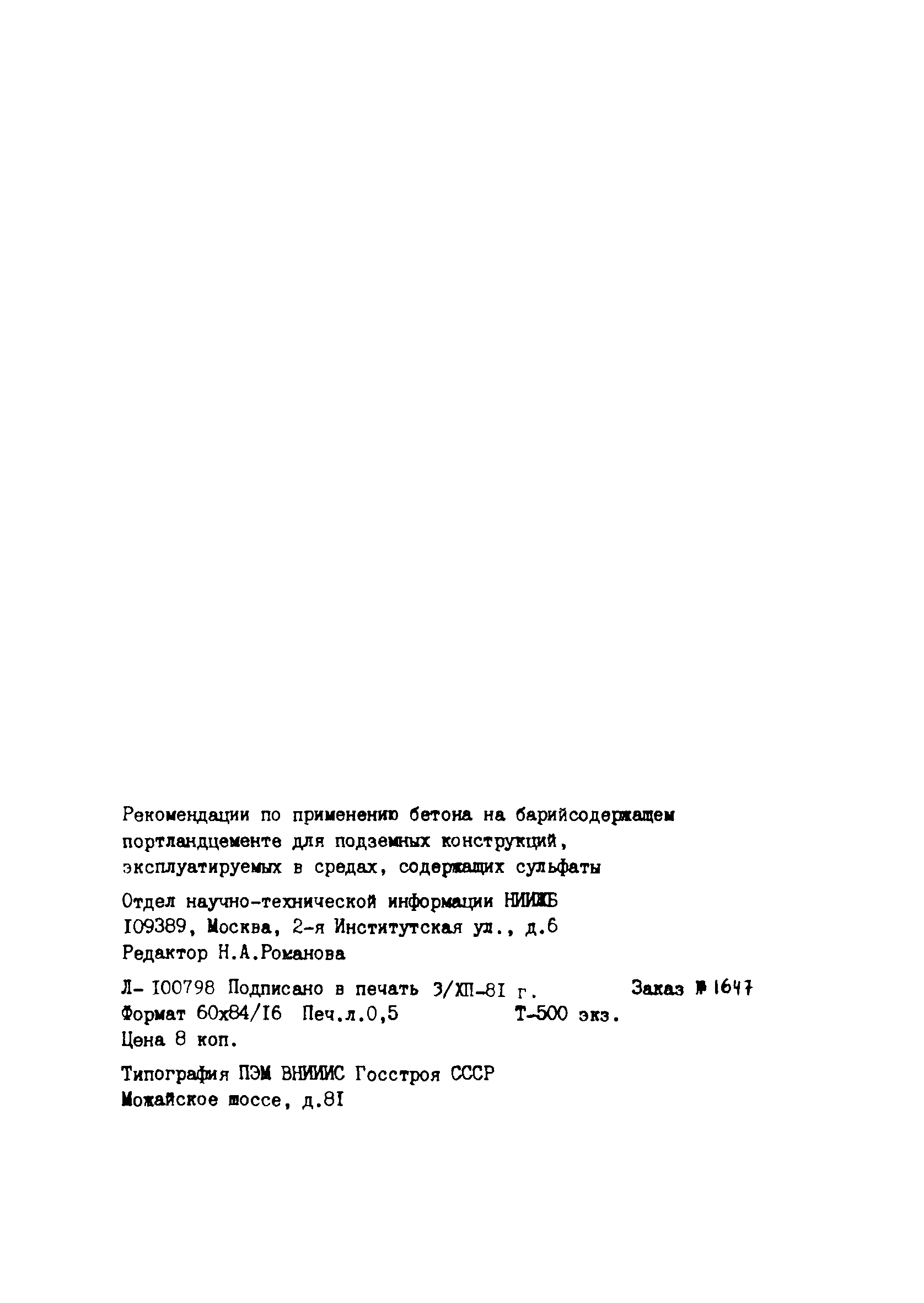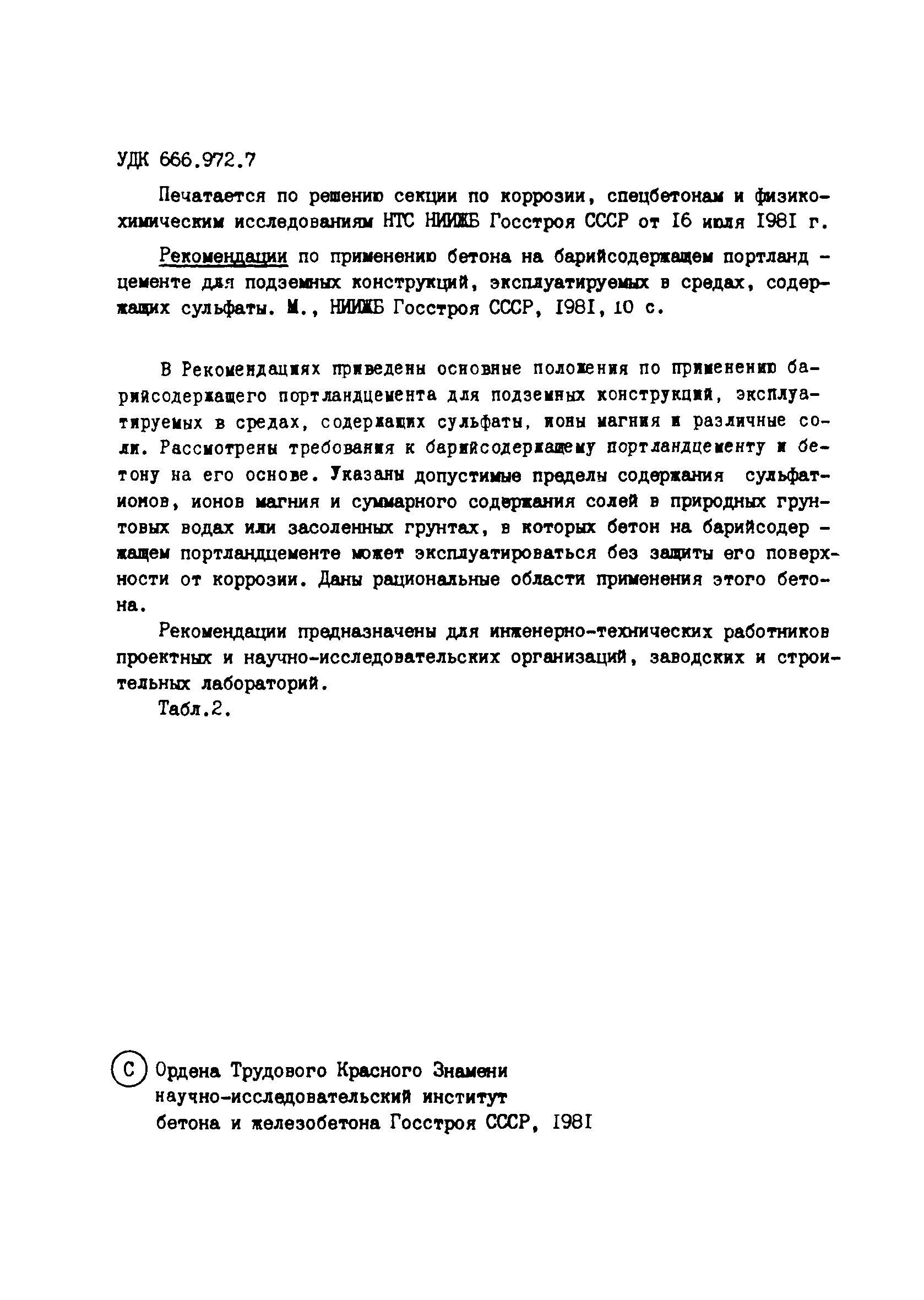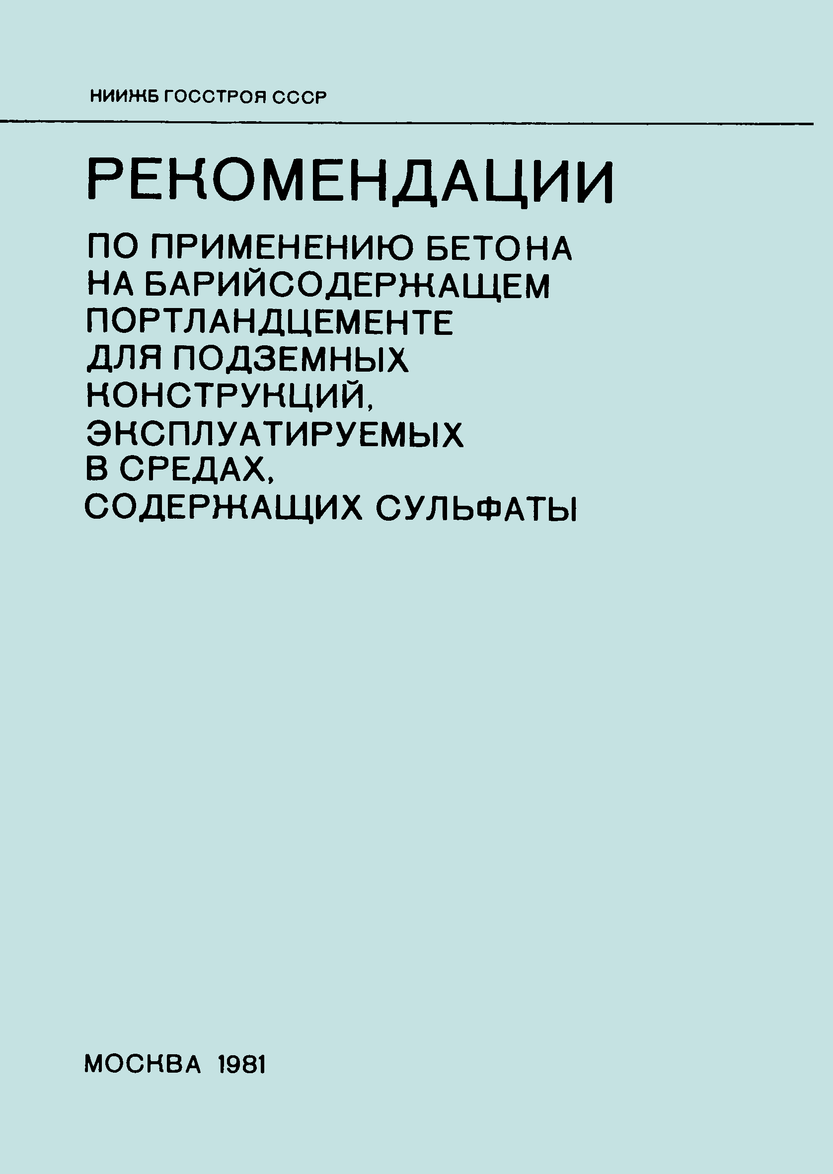 | Название рус.: | Рекомендации по применению бетона на барийсодержащем портландцементе для подземных конструкций, эксплуатируемых в средах, содержащих сульфаты |