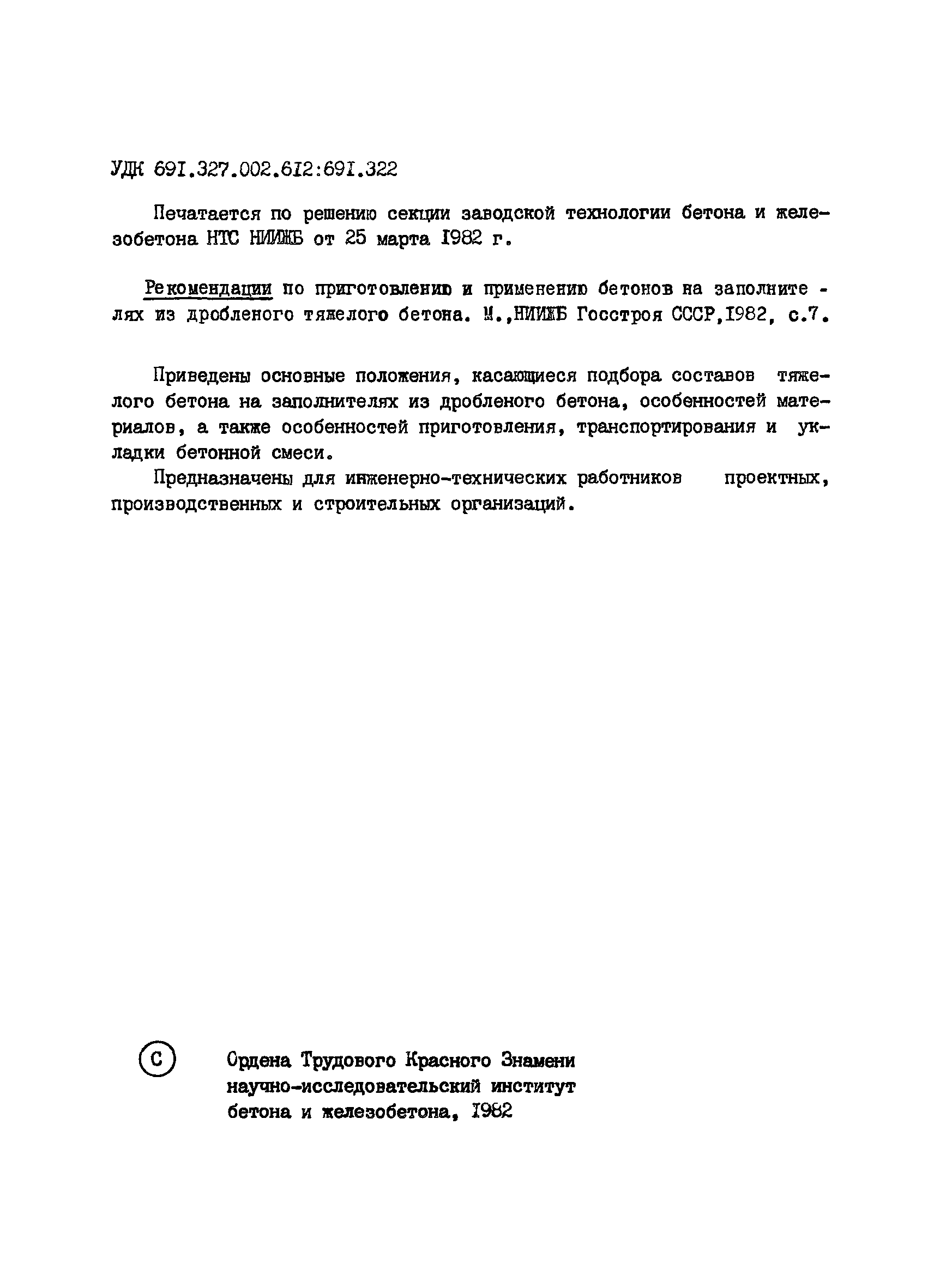| Название рус.: | Рекомендации по приготовлению и применению бетонов на заполнителях из дробленого тяжелого бетона |