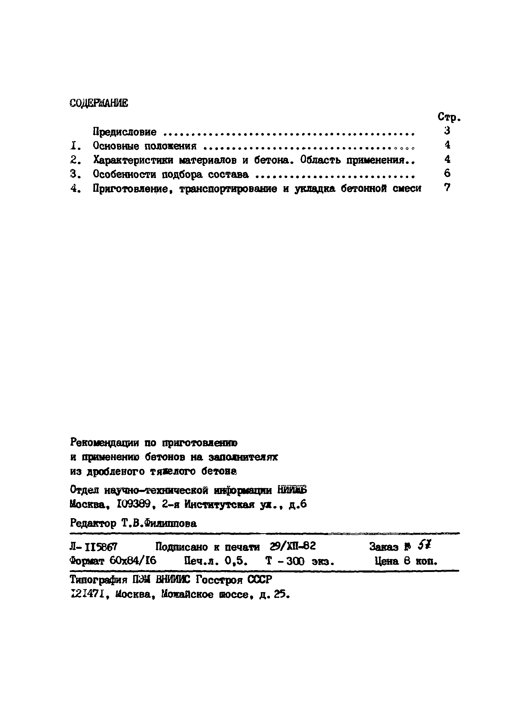 | Оглавление: | Предисловие 1. Основные положения 2. Характеристики материалов и бетона. Область применения 3. Особенности подбора состава 4. Приготовление, транспортирование и укладка бетонной смеси |