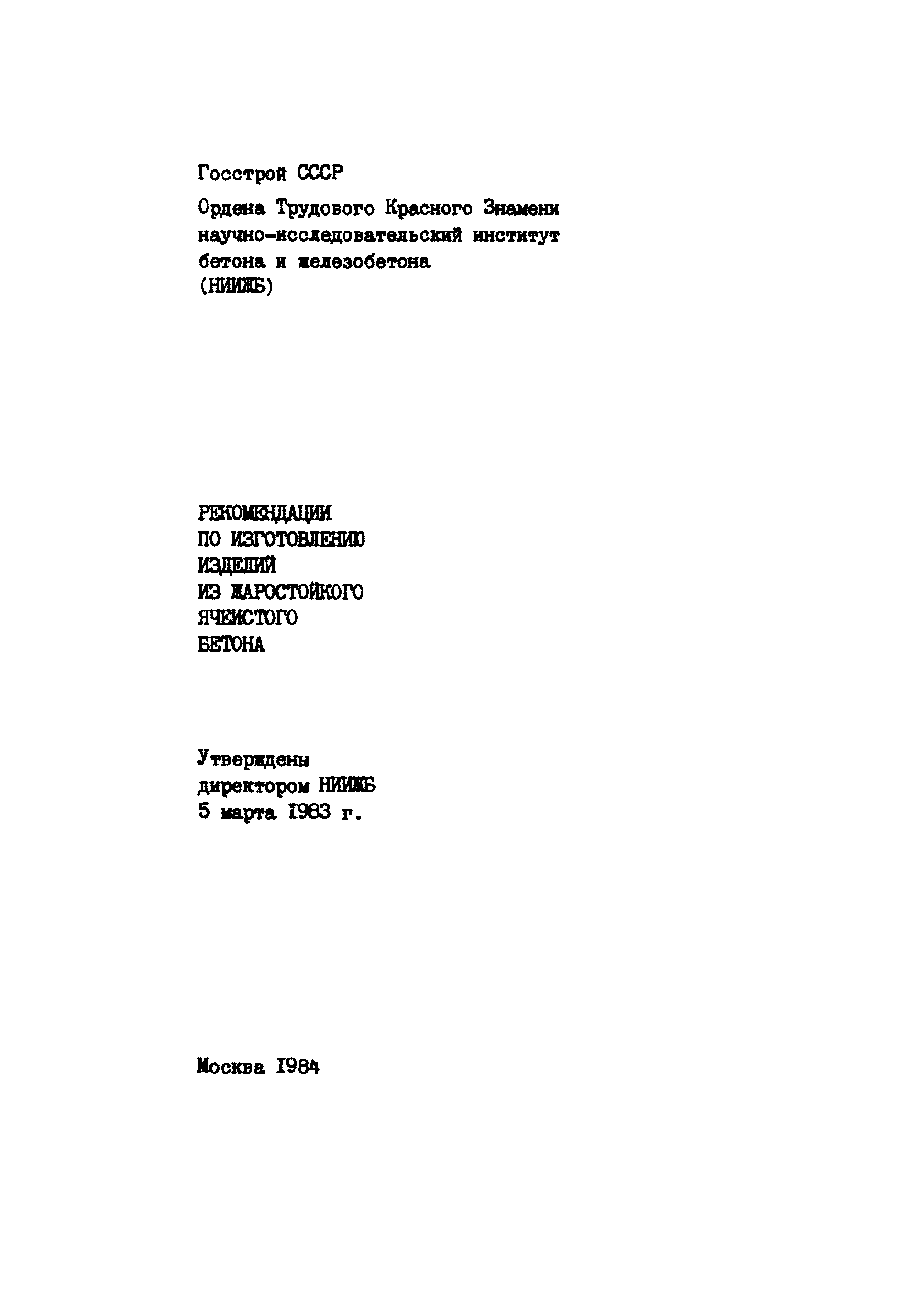| | Утверждён: | 05.03.1983 НИИЖБ Госстроя СССР (NIIZhB, USSR Gosstroy )
