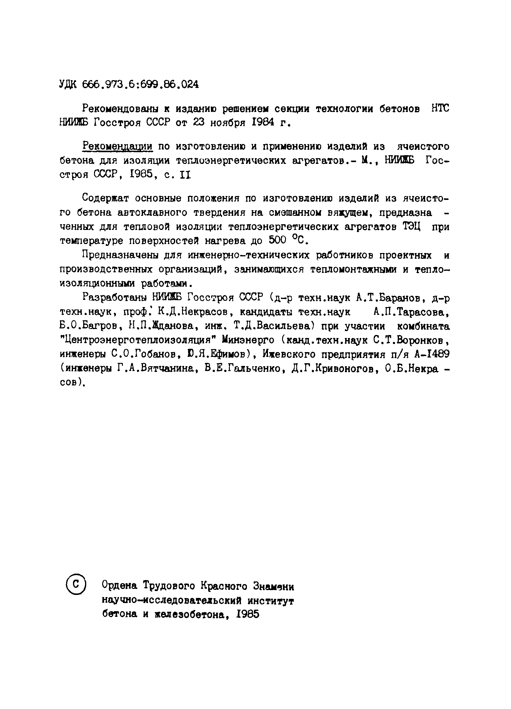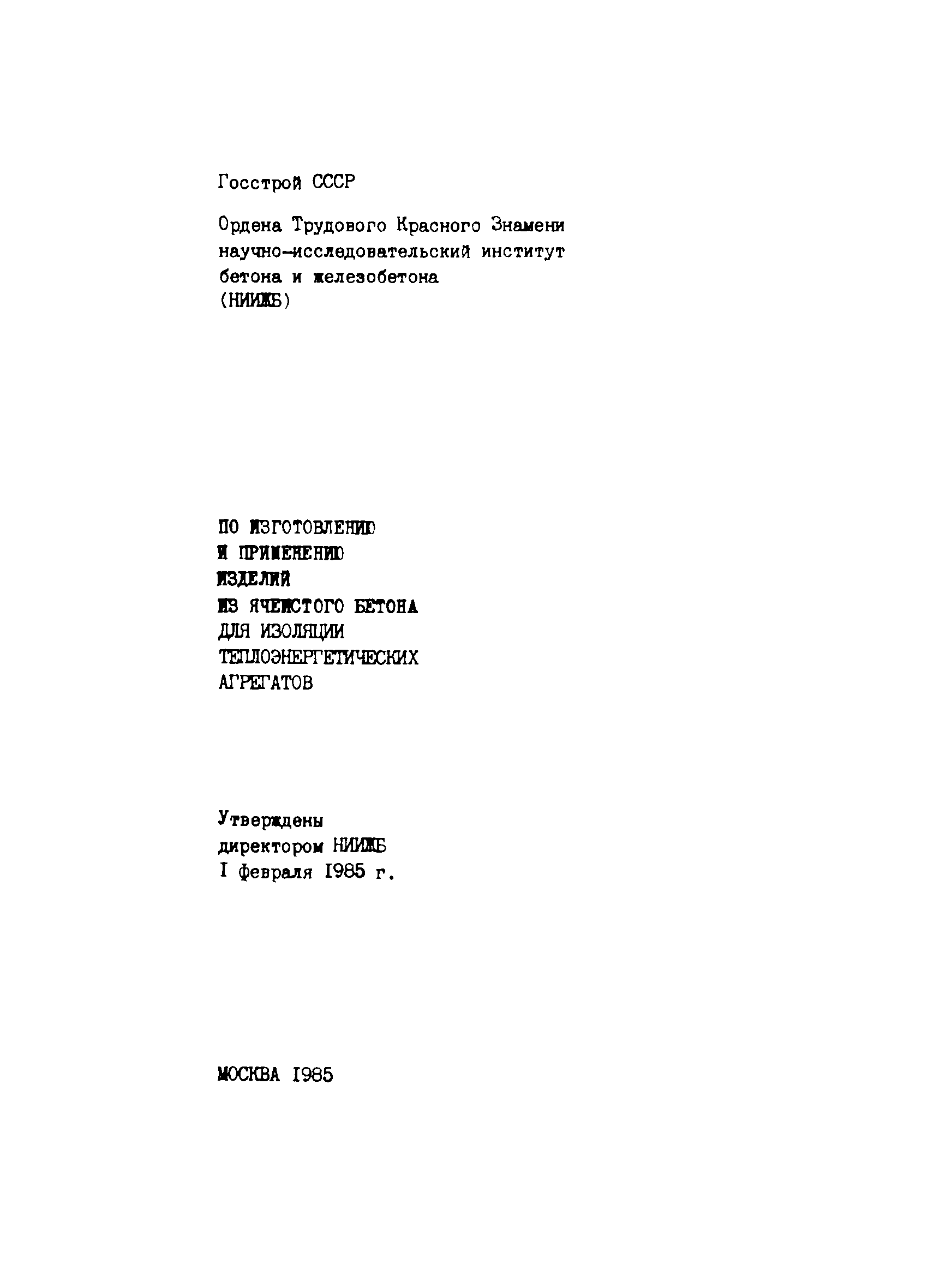 | | Утверждён: | 01.02.1985 НИИЖБ Госстроя СССР (NIIZhB, USSR Gosstroy )