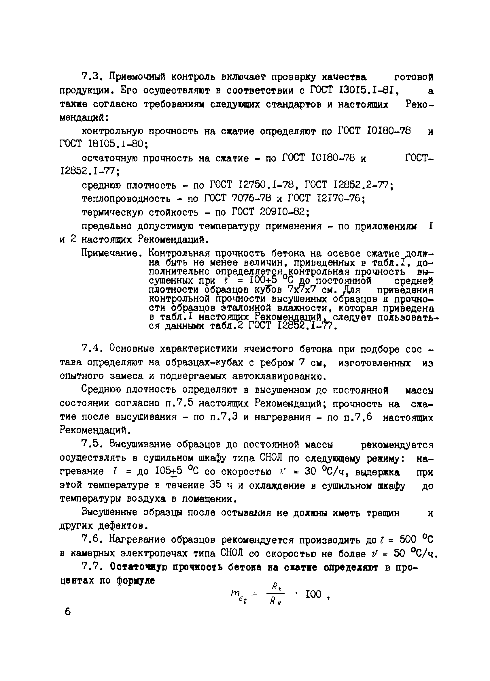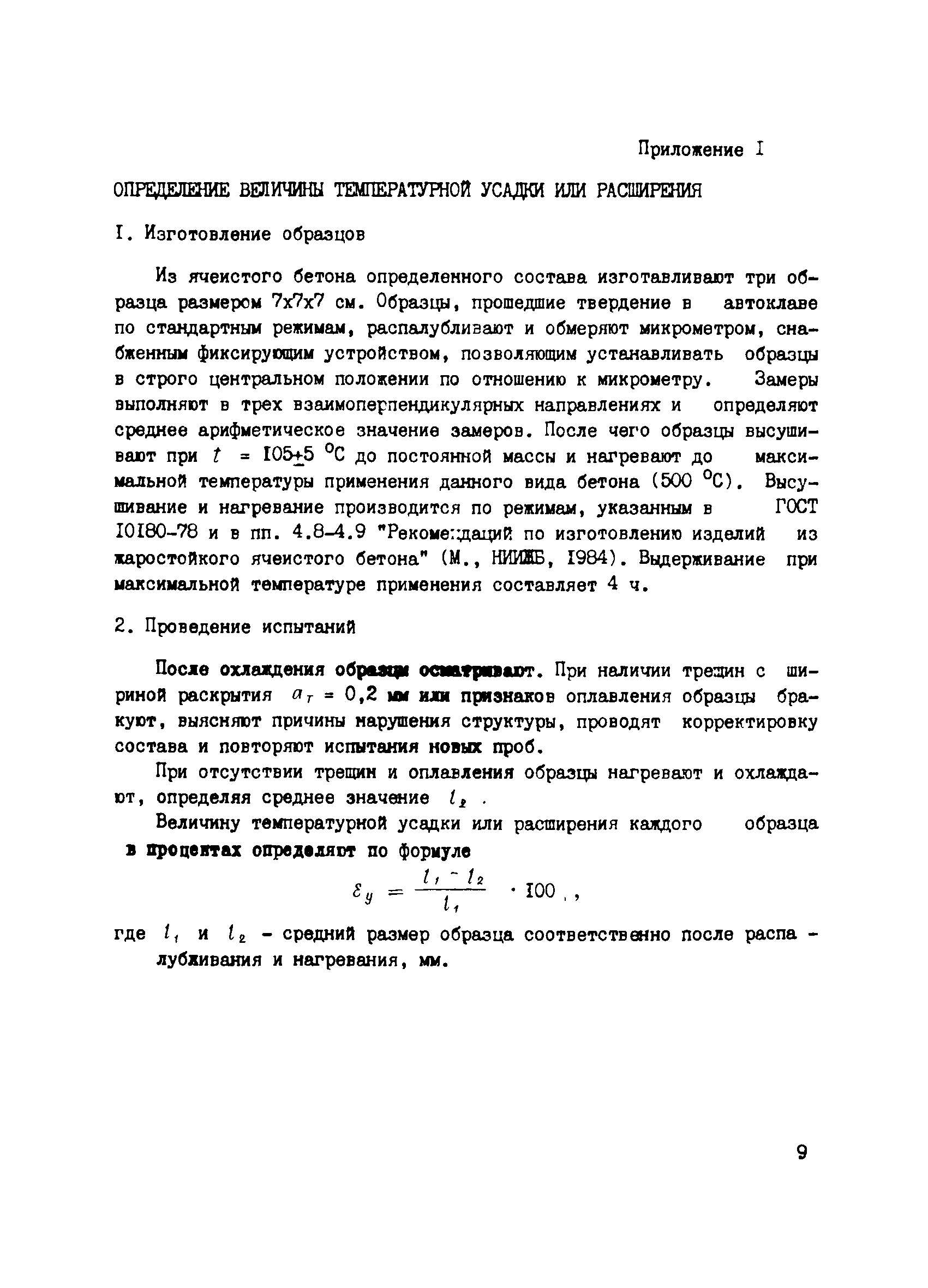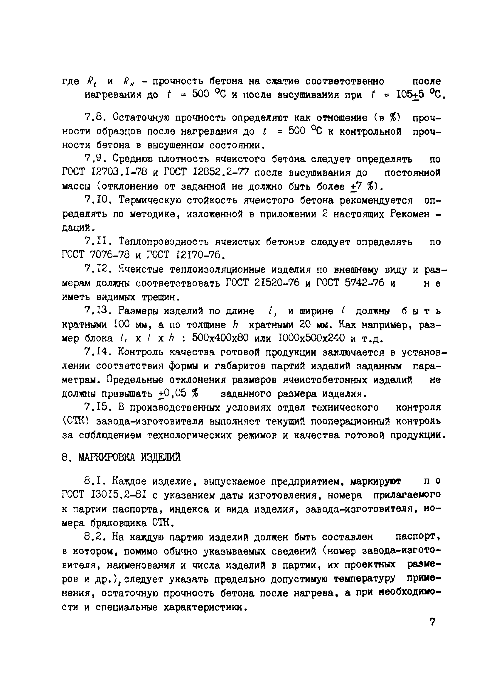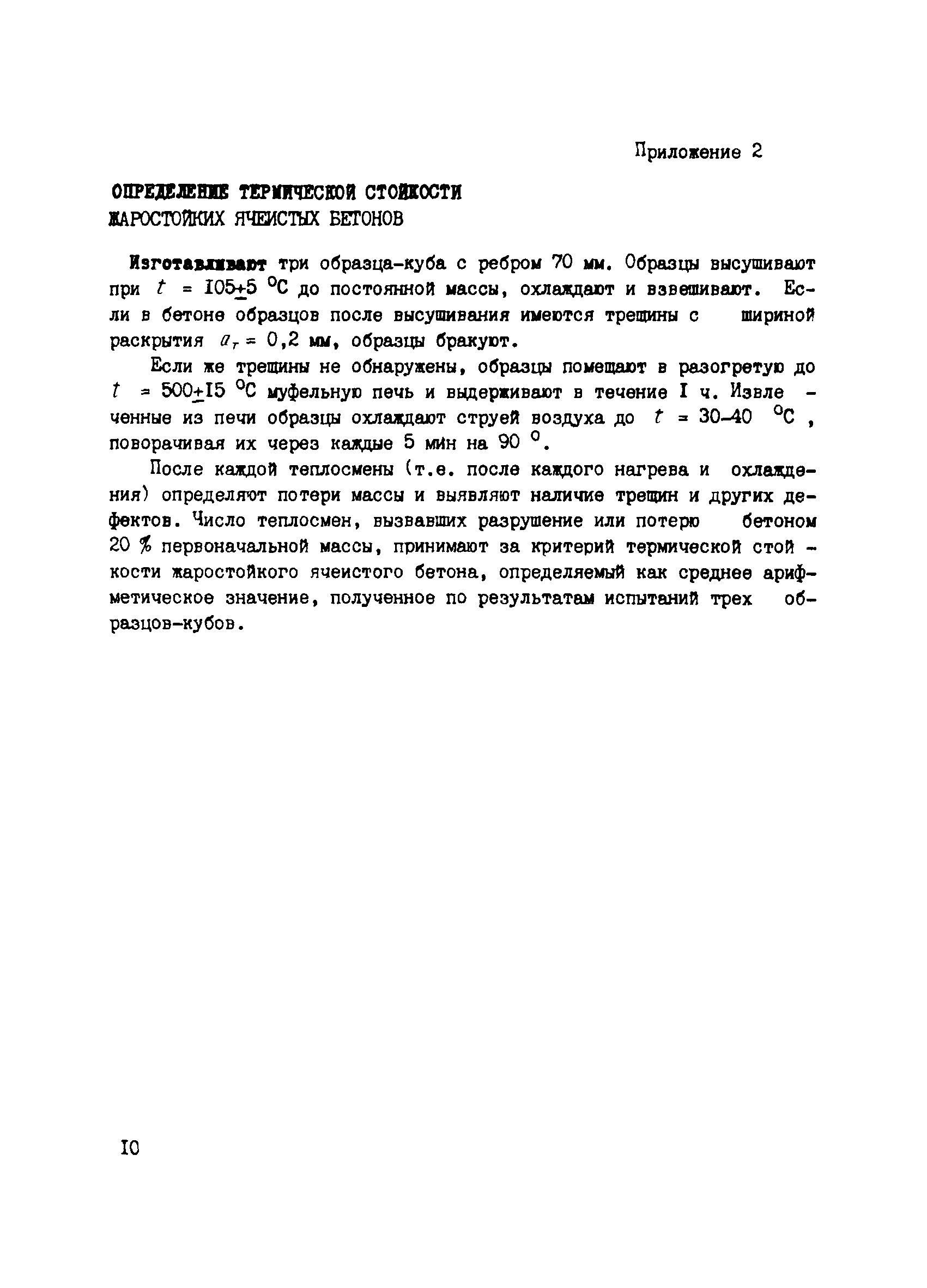 | | Нормативные ссылки: |   СН 277-80 «Инструкция по изготовлению изделий из ячеистого бетона» ГОСТ 13015.1-81 «Конструкции и изделия бетонные и железобетонные сборные. Приемка» ГОСТ 13015.2-81 «Конструкции и изделия бетонные и железобетонные сборные. Маркировка»  ГОСТ 13015.3-81 «Конструкции и изделия бетонные и железобетонные сборные. Документ о качестве»  ГОСТ 21520-89 «Блоки из ячеистых бетонов стеновые мелкие. Технические условия»  ГОСТ 9179-77 «Известь строительная. Технические условия»  ГОСТ 25818-91 «Золы-уноса тепловых электростанций для бетонов. Технические условия»  ГОСТ 10180-90 «Бетоны. Методы определения прочности по контрольным образцам»  ГОСТ 18105-86 «Бетоны. Правила контроля прочности»  ГОСТ 20910-90 «Бетоны жаростойкие. Технические условия»  ГОСТ 25485-89 «Бетоны ячеистые. Технические условия»  ГОСТ 8736-93 «Песок для строительных работ. Технические условия»  ГОСТ 9758-86 «Заполнители пористые неорганические для строительных работ. Методы испытаний»  ГОСТ 5742-76 «Изделия из ячеистых бетонов теплоизоляционные» ГОСТ 10198-91 «Ящики деревянные для грузов массой св. 200 до 20000 кг. Общие технические условия»  ГОСТ 8828-89 «Бумага-основа и бумага двухслойная водонепроницаемая упаковочная. Технические условия»  ГОСТ 2642.3-97 «Огнеупоры и огнеупорное сырье. Методы определения оксида кремния (IV)»  ГОСТ 2642.1-86 «Огнеупоры и огнеупорное сырье. Метод определения гигроскопической влаги»  ГОСТ 2642.2-86 «Огнеупоры и огнеупорное сырье. Методы определения изменения массы при прокаливании» ГОСТ 12170-85 «Огнеупоры. Стационарный метод измерения теплопроводности»  ГОСТ 2991-85 «Ящики дощатые неразборные для грузов массой до 500 кг. Общие технические условия» ГОСТ 7494-87 «Угли Сахалина для бытовых нужд населения. Технические условия» ГОСТ 10178-76 «Портландцемент и шлакопортландцемент. Технические условия» ГОСТ 12852.1-77 «Бетон ячеистый. Метод определения прочности на сжатие» ГОСТ 12852.2-77 «Бетон ячеистый. Метод определения влажности и объемной массы» СНиП II-2-80 «Противопожарные нормы проектирования зданий и сооружений» ГОСТ 8179-69 «Изделия огнеупорные. Правила укладки, приемки, хранения и транспортирования» СН 156-79 «Инструкция по технологии приготовления жаростойких бетонов» ГОСТ 12852.4-77 «Бетон ячеистый. Методы определения морозостойкости» ГОСТ 2642.1-71 «Материалы и изделия огнеупорные. Методы химического анализа огнеупорных глин, каолинов, шамотных, графитошамотных и полукислых изделий, кварцитов и динасовых изделий» ГОСТ 2642.2-71 «Материалы и изделия огнеупорные. Методы химического анализа корундовых, высокоглиноземистых огнеупорных материалов и изделий из них» ГОСТ 2642.3-71 «Материалы и изделия огнеупорные. Методы химического анализа доломитов, магнезитов и изделий из них, талько-магнезитов, дунитов, форстеритовых огнеупоров»  «Рекомендации по изготовлению изделий из жаростойкого ячеистого бетона» ГОСТ 8269-87 «Щебень из природного камня, гравий и щебень из гравия для строительных работ. Методы испытаний»