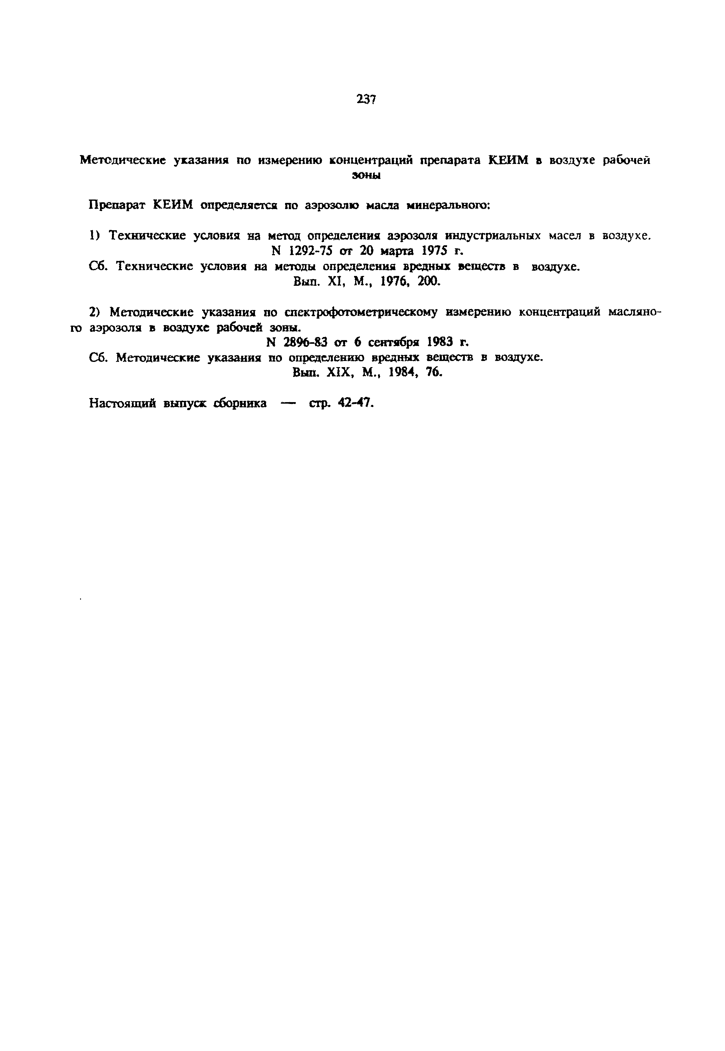 | Название рус.: | Методические указания по измерению концентраций препарата КЕИМ в воздухе рабочей зоны |