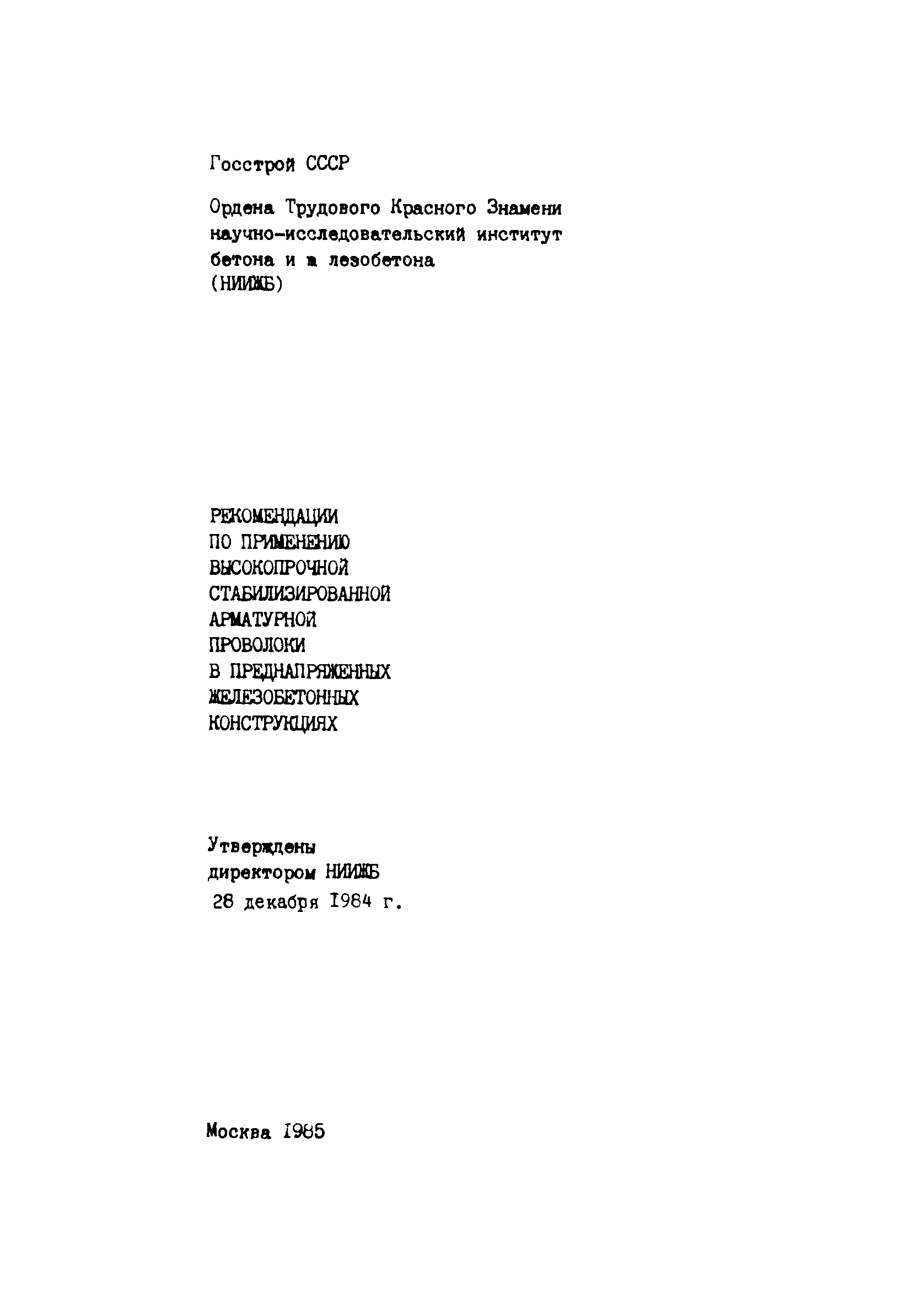 | Утверждён: | 28.12.1984 НИИЖБ Госстроя РФ (NIIZhB, Russian Federation Gosstroy )