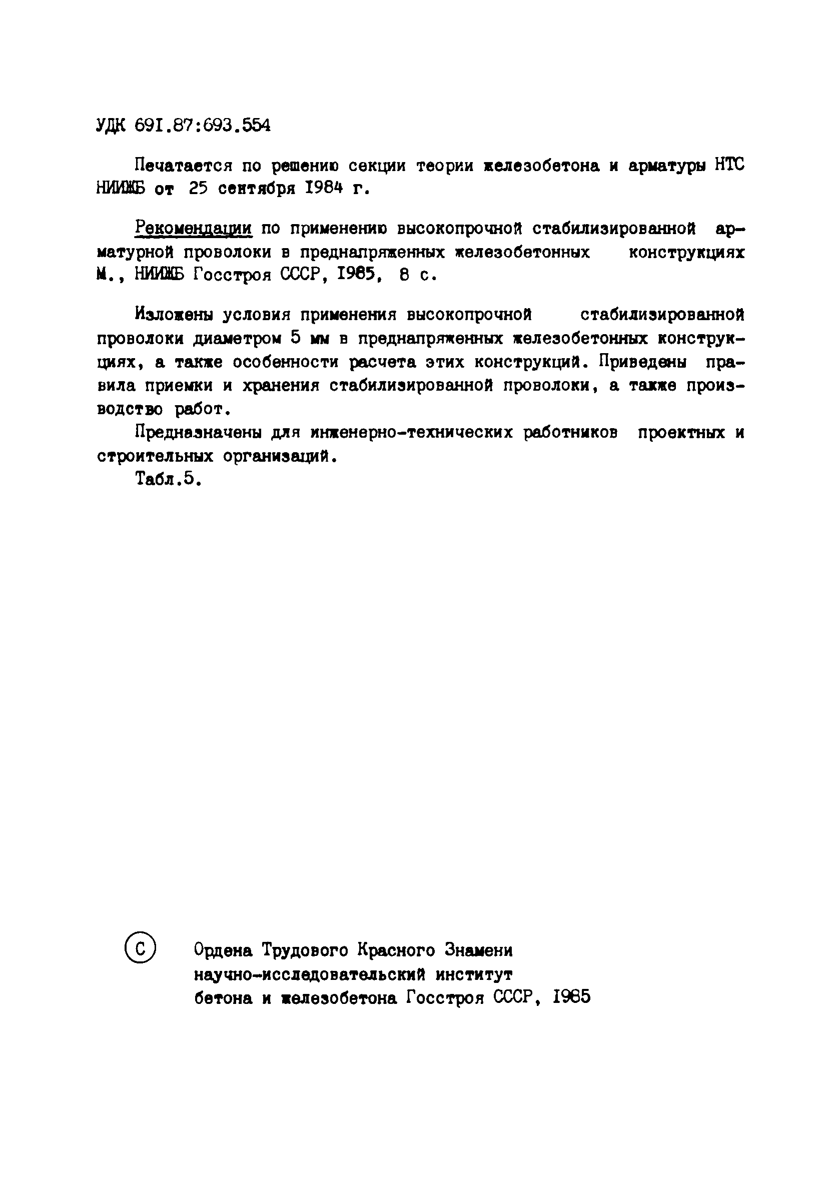 | Название рус.: | Рекомендации по применению высокопрочной стабилизированной арматурной проволоки в преднапряженных железобетонных конструкциях |