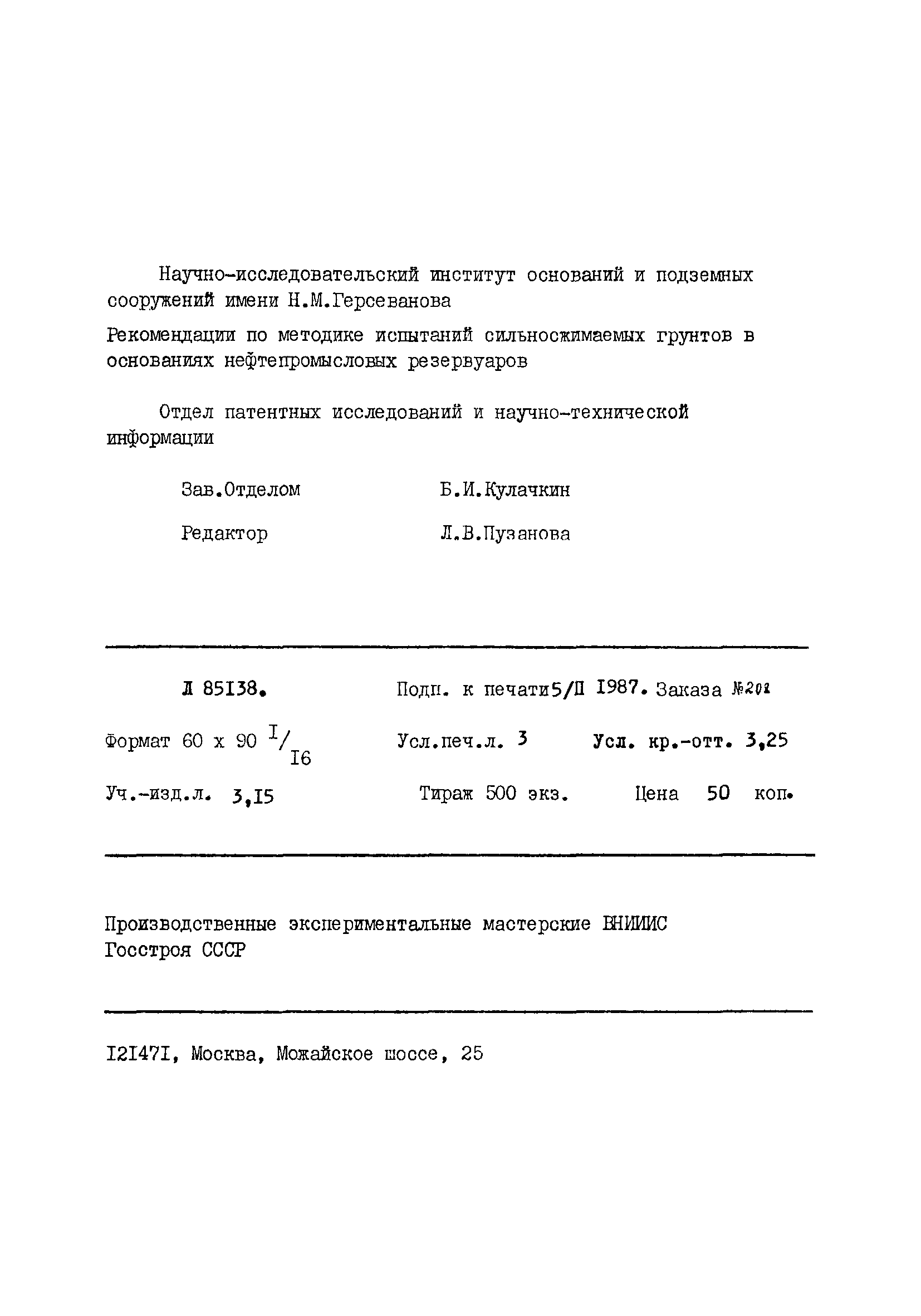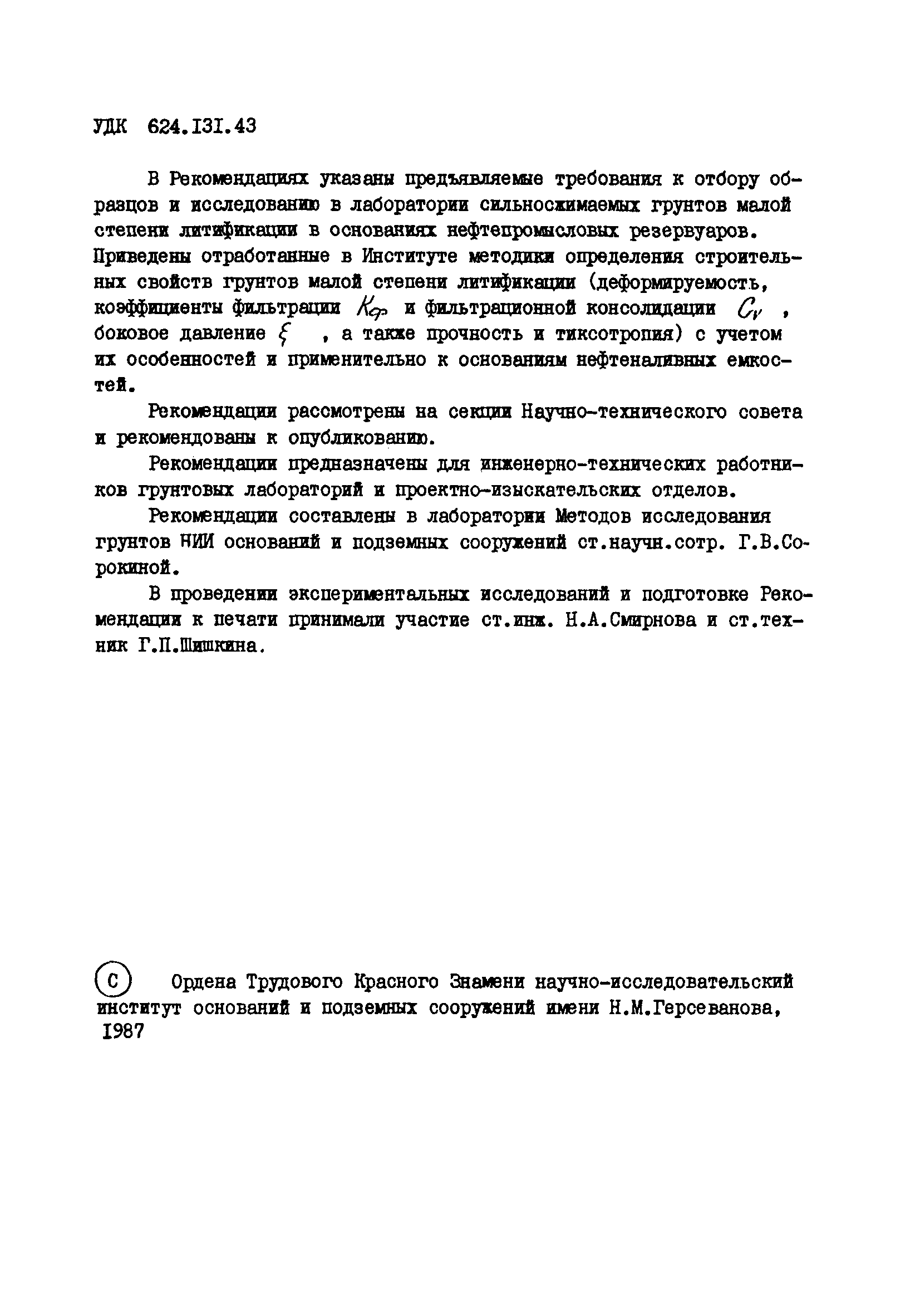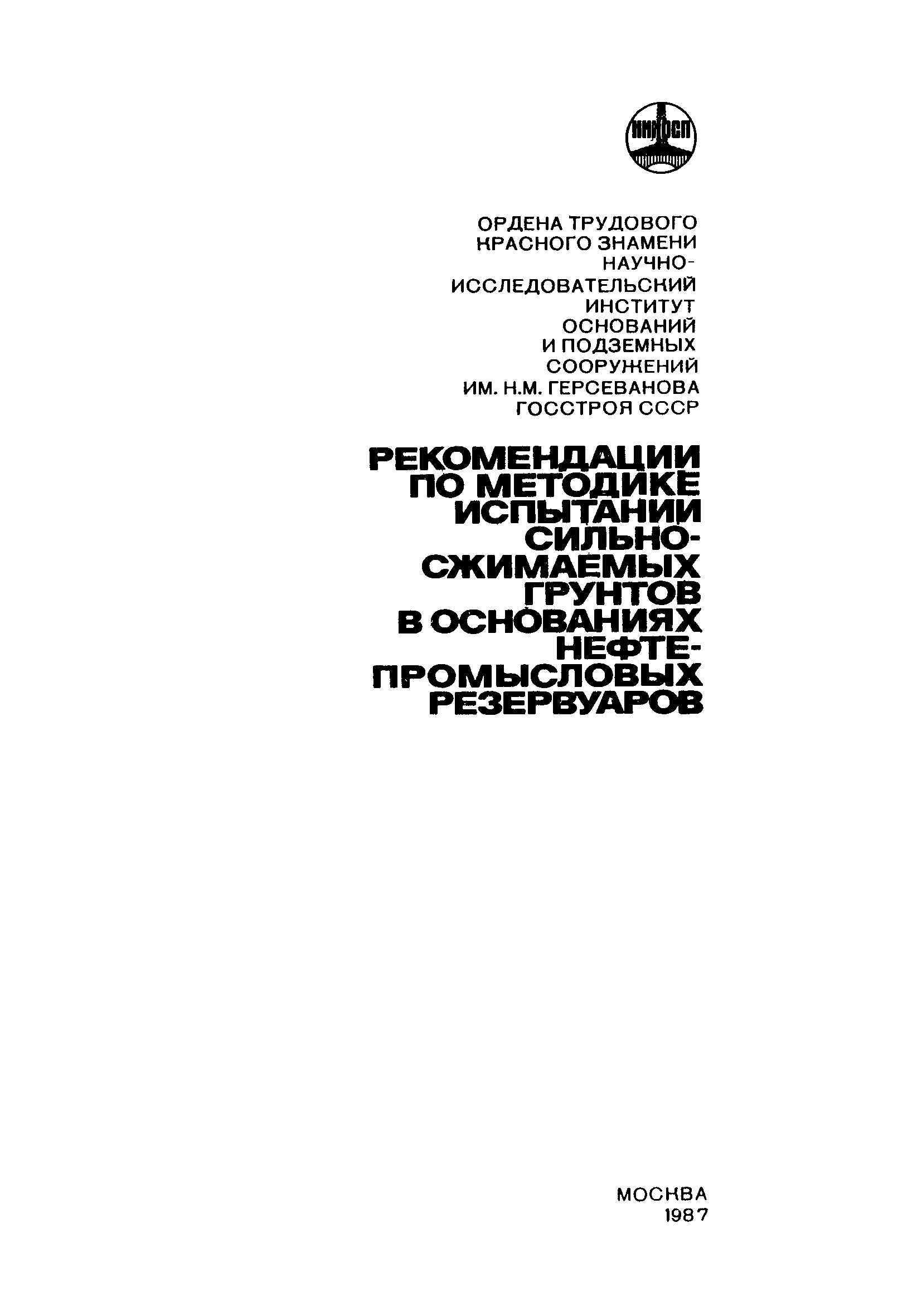 | Название рус.: | Рекомендации по методике испытания сильносжимаемых грунтов в основаниях нефтепромысловых резервуаров |