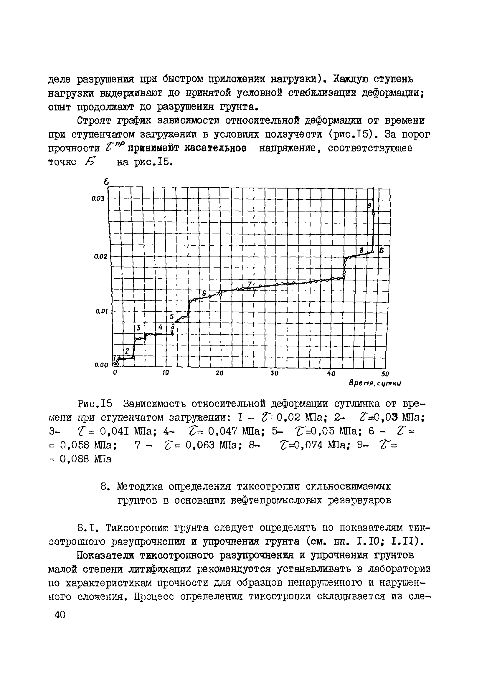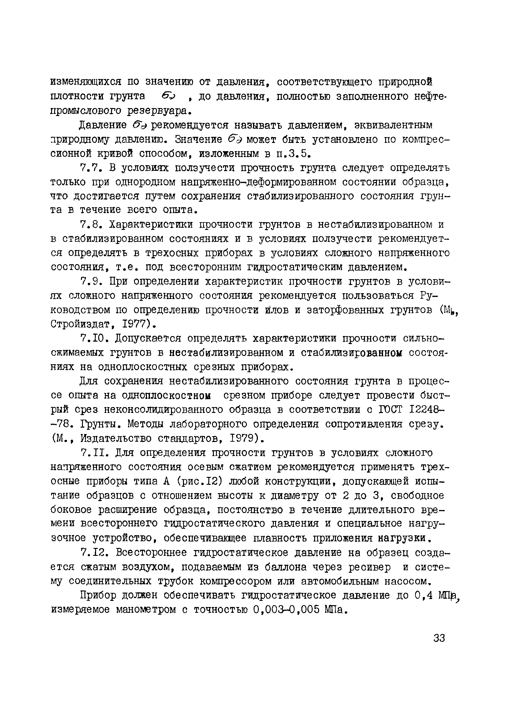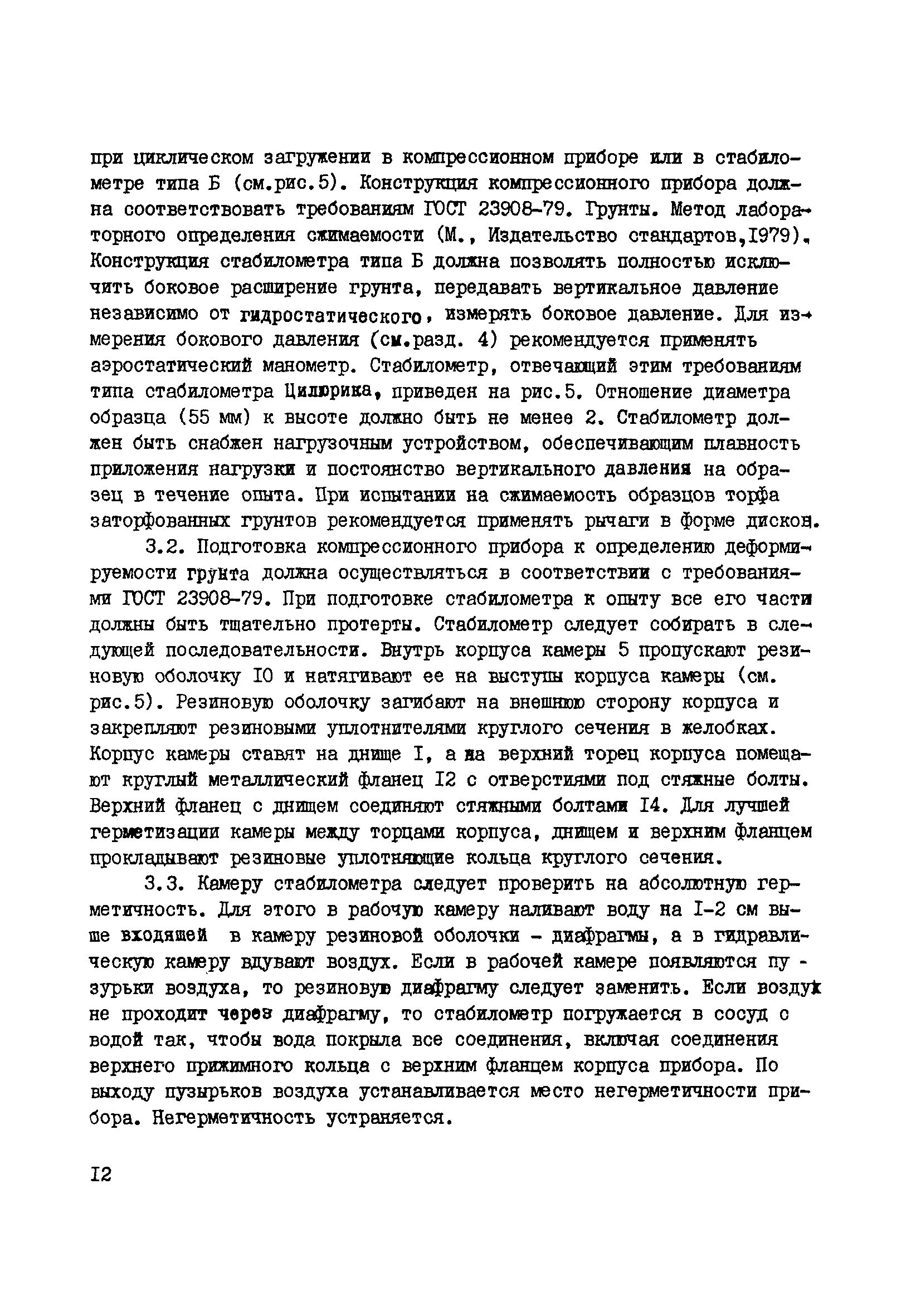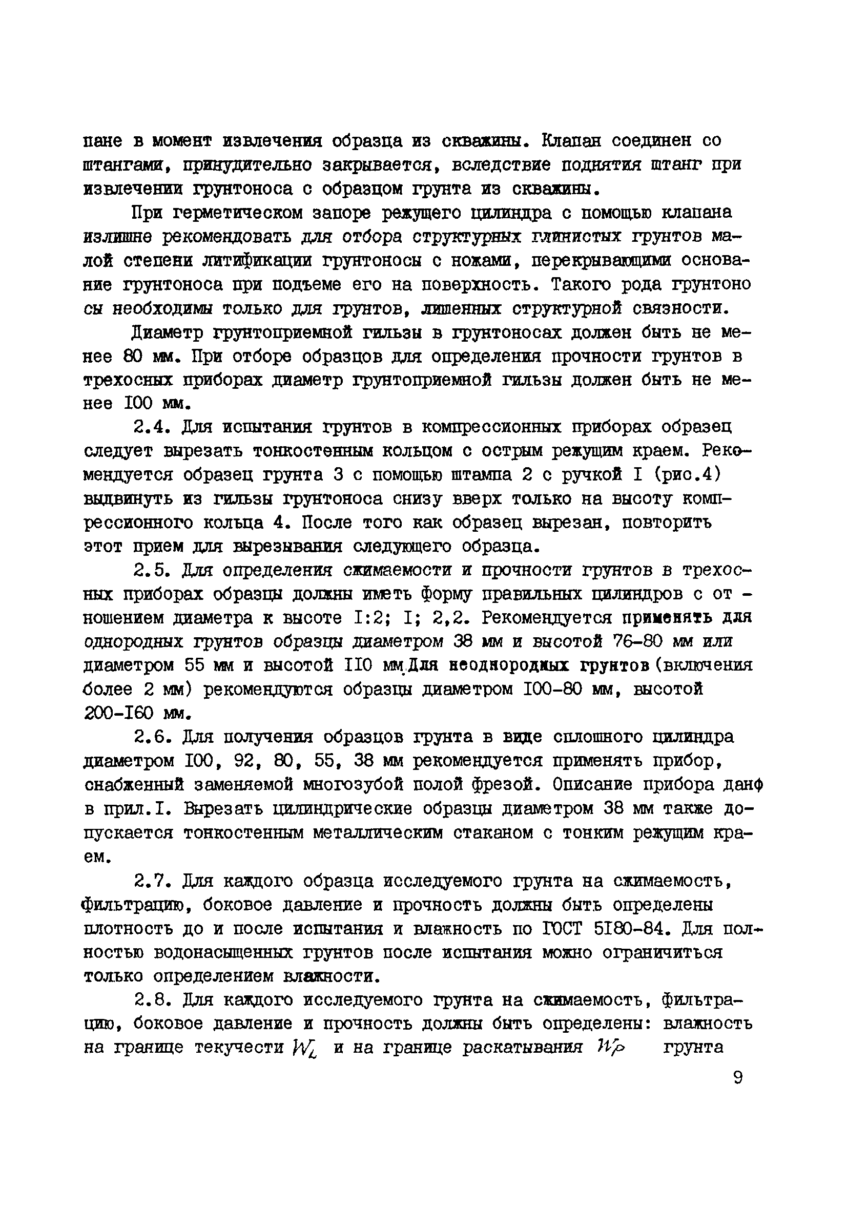 | Оглавление: | 1. Общие положения 2. Требования к аппаратуре, отбору образцов из скважин и шурфов и их подготовка к исследованию 3. Методика определения деформируемости сильносжимаемых грунтов в основании нефтепромысловых резервуаров при циклическом нагружении 4. Методика определения коэффициента бокового давления покоя сильносжимаемых грунтов в основании нефтепромысловых резервуаров 5. Методика определения фильтрационных характеристик сильносжимаемых грунтов в основании нефтепромысловых резервуаров 6. Методика определения коэффициента фильтрационной консолидации сильносжимаемых грунтов в основании нефтепромысловых резервуаров 7. Методика определения прочности сильносжимаемых грунтов в основании нефтепромысловых резервуаров 8. Методика определения тиксотропии сильносжимаемых грунтов в основании нефтепромысловых резервуаров Приложение Прибор для подготовки образцов из глинистых грунтов и торфа для испытания в стабилометре и кручением |
