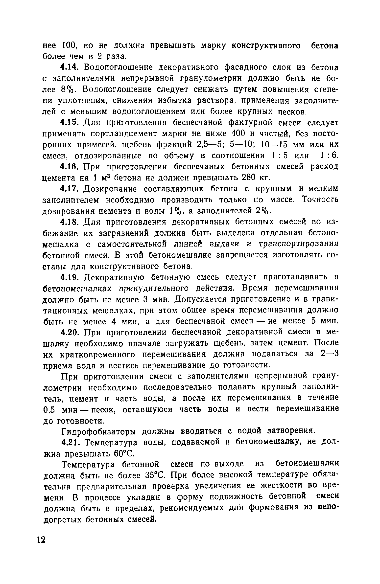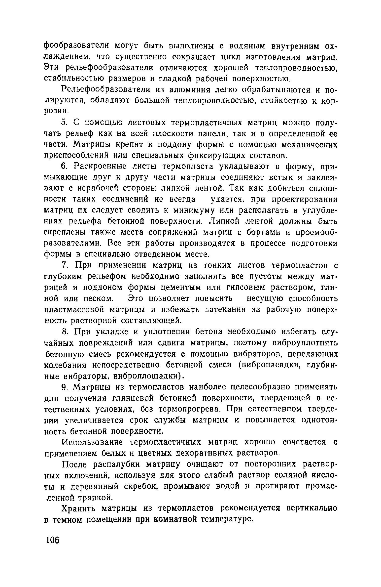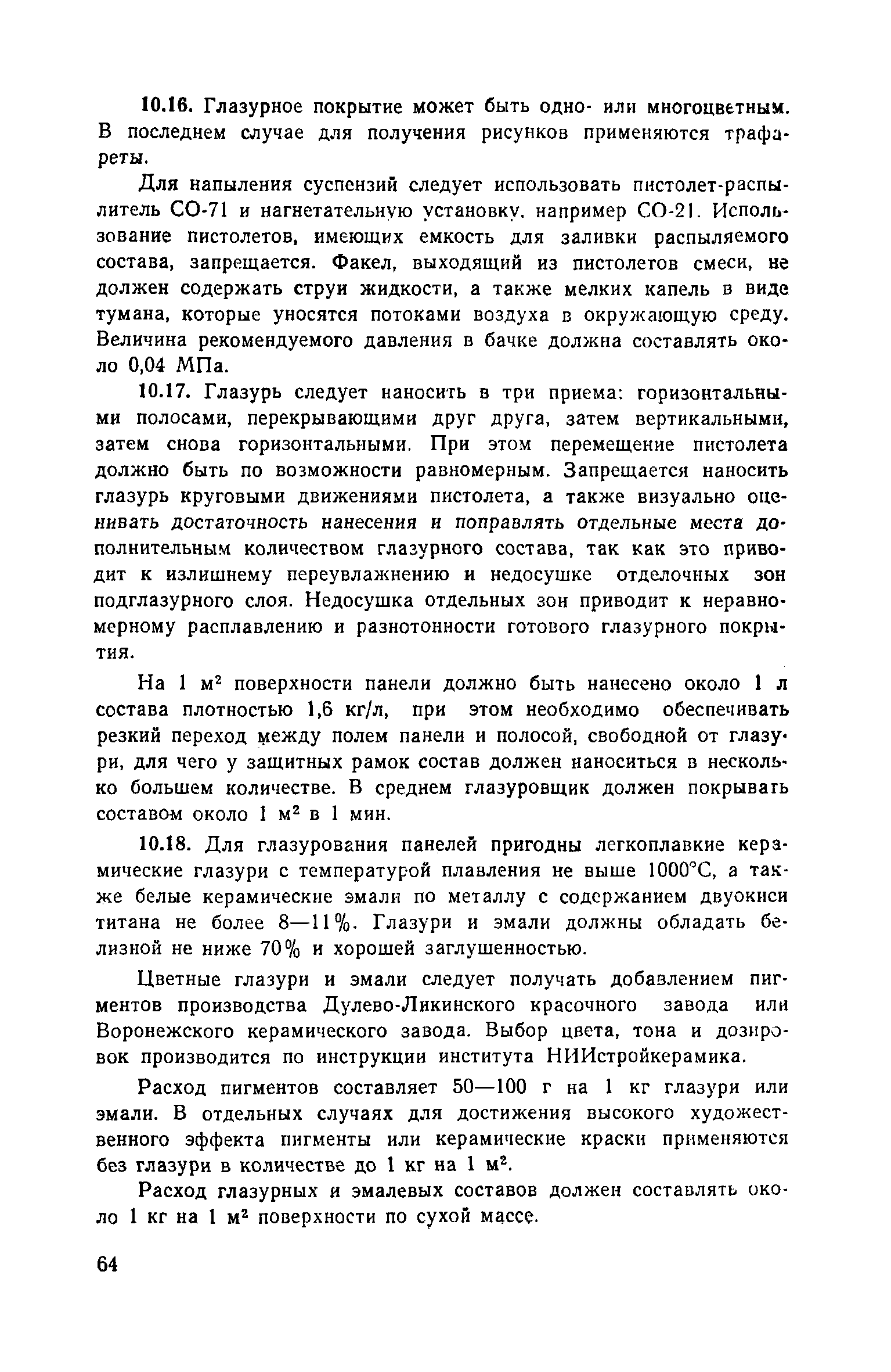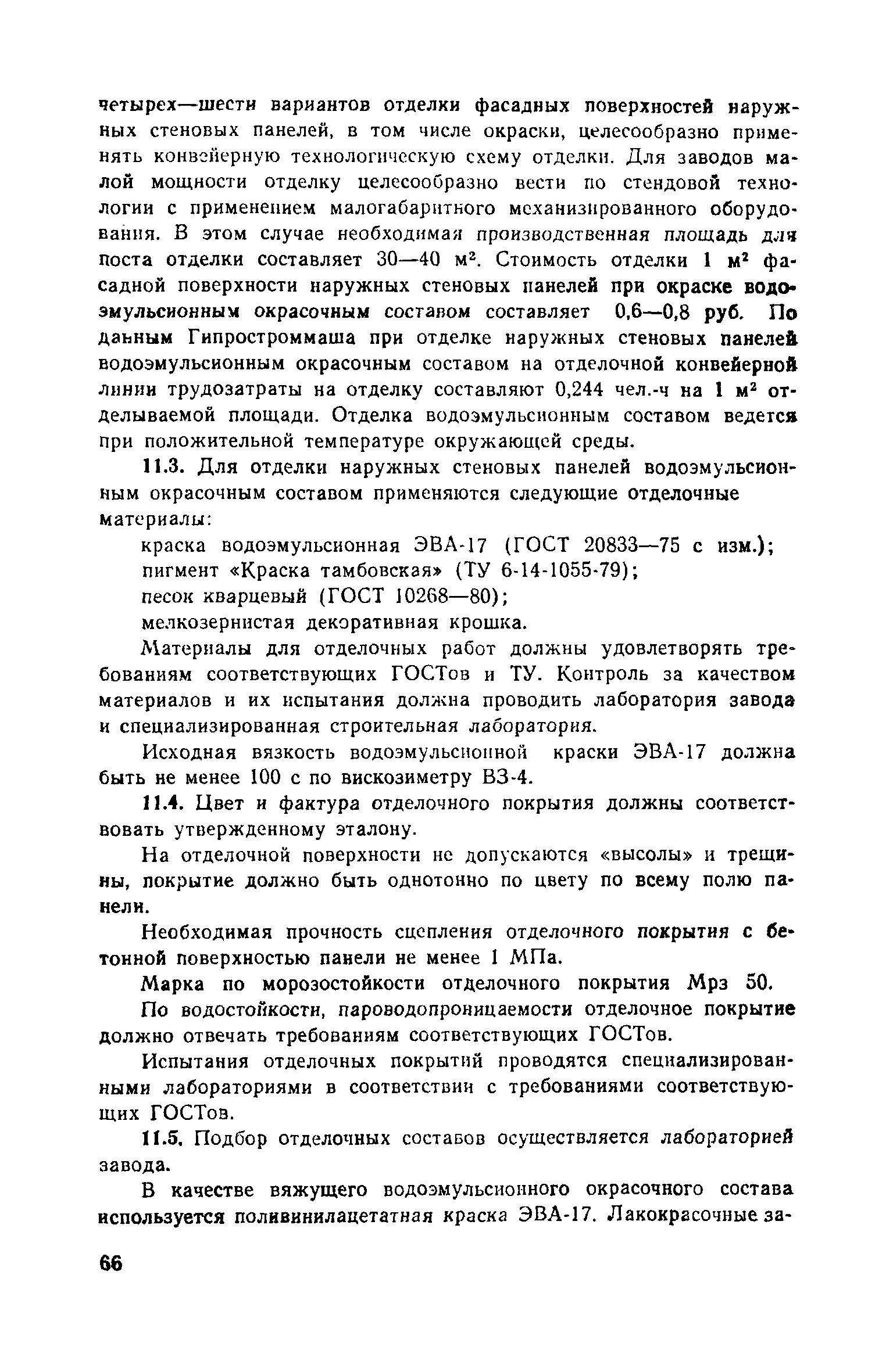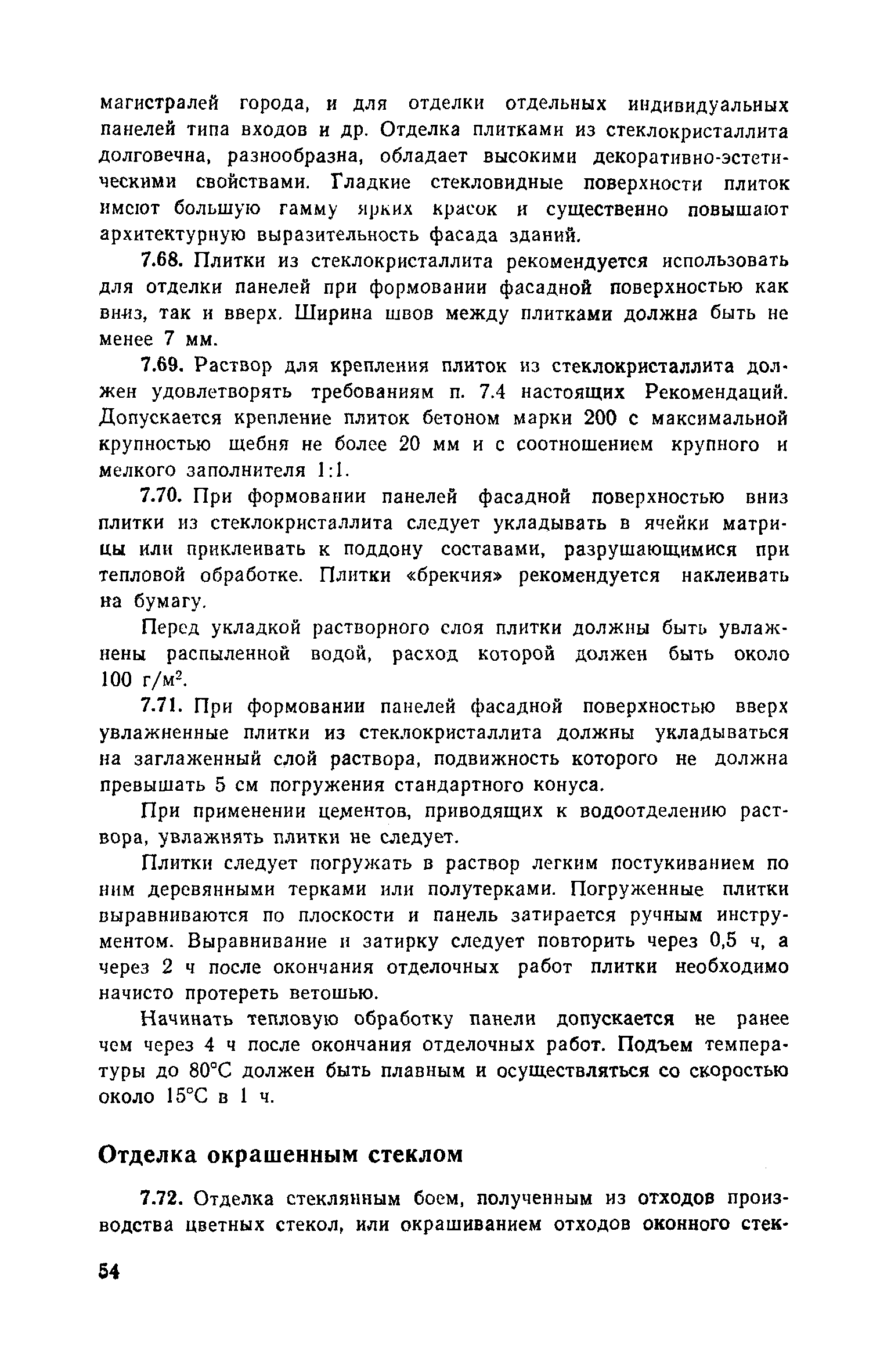 | Оглавление: | 1. Общие положения 2. Материалы для фасадной отделки и требования к ним 3. Архитектурно-технологические принципы выбора видов отделки 4. Отделка декоративным бетоном с обнажением заполнителя Общие рекомендации Подбор состава и приготовление декоративной бетонной смеси Обнажение крупного заполнителя распыленной водой Обнажение крупного заполнителя с применением замедлителей твердения цемента Использование замедлителей твердения в коврах Нанесение замедлителей твердения на формующие поверхности формы Нанесение замедлителей твердения на верхнюю поверхность свежеотформованных панелей 5. Отделка декоративными цементными растворами Общие рекомендации Отделка при формовании панелей фасадной поверхностью вниз Рельефная отделка Отделка при формовании панелей фасадной поверхностью вверх Отделка при формовании панелей фасадной поверхностью вверх или вниз Отделка по трафаретам Отделка коллоидно-цементными клеями или растворами Отделка материалом "Белгородский белый" 6. Отделка щебнем или гравием способом присыпки или втапливания 7. Отделка плитками из искусственных материалов Общие рекомендации Отделка ковровой керамiiческой и стеклянной плиткой Изготовление ковров силами предприятий крупнопанельного домостроения (КПД) Отделка крупными керамическими плитками полусухого прессования Отделка плитками из распиленного декоративного бетона Отделка плитами фасадными железобетонными Отделка плитками из стеклокристаллита Отделка окрашенным стеклом 8. Отделка плитками из природного камня 9. Комбинированная отделка 10. Отделка многоцветными керамическими глазурями и эмалями 11. Отделка по затвердевшему бетону Отделка водоэмульсионным окрасочным составом Отделка эмалями КО-174 Отделка декоративной крошкой по клеящей основе Отделка набрызгом Отделка механической обработкой поверхности Отделка металлизацией 12. Контроль качества. Хранение и транспортирование панелей Приложение 1. Перечень способов фасадной отделки Приложение 2. Перечень основных промышленных месторождений цветного камня Приложение 3. Изготовление бетонных архитектурных вставок и форм для них Приложение 4. Технология отделки железобетонных изделий с помощью стальных матриц Приложение 5. Технология отделки изделий с помощью рельефообразующих матриц с полимерным рабочим слоем Приложение 6. Технология изготовления рельефообразующих матриц заливочных паст Приложение 7. Технология отделки железобетонных изделий с помощью стеклопластиковых матриц Приложение 8. Технология отделки железобетонных изделий с помощью резиновых матриц Приложение 9. Технология отделки железобетонных изделий с помощью матриц из листовых термопластичных материалов Приложение 10. Технико-экономические показатели рельефообразующих матриц, применяемых на заводах КПД Приложение 11. Технико-экономические показатели опытно-промышленного образца вибросмесителя Приложение 12. Устройство и работа поточно-конвейерной линии глазурования стеновых панелей |