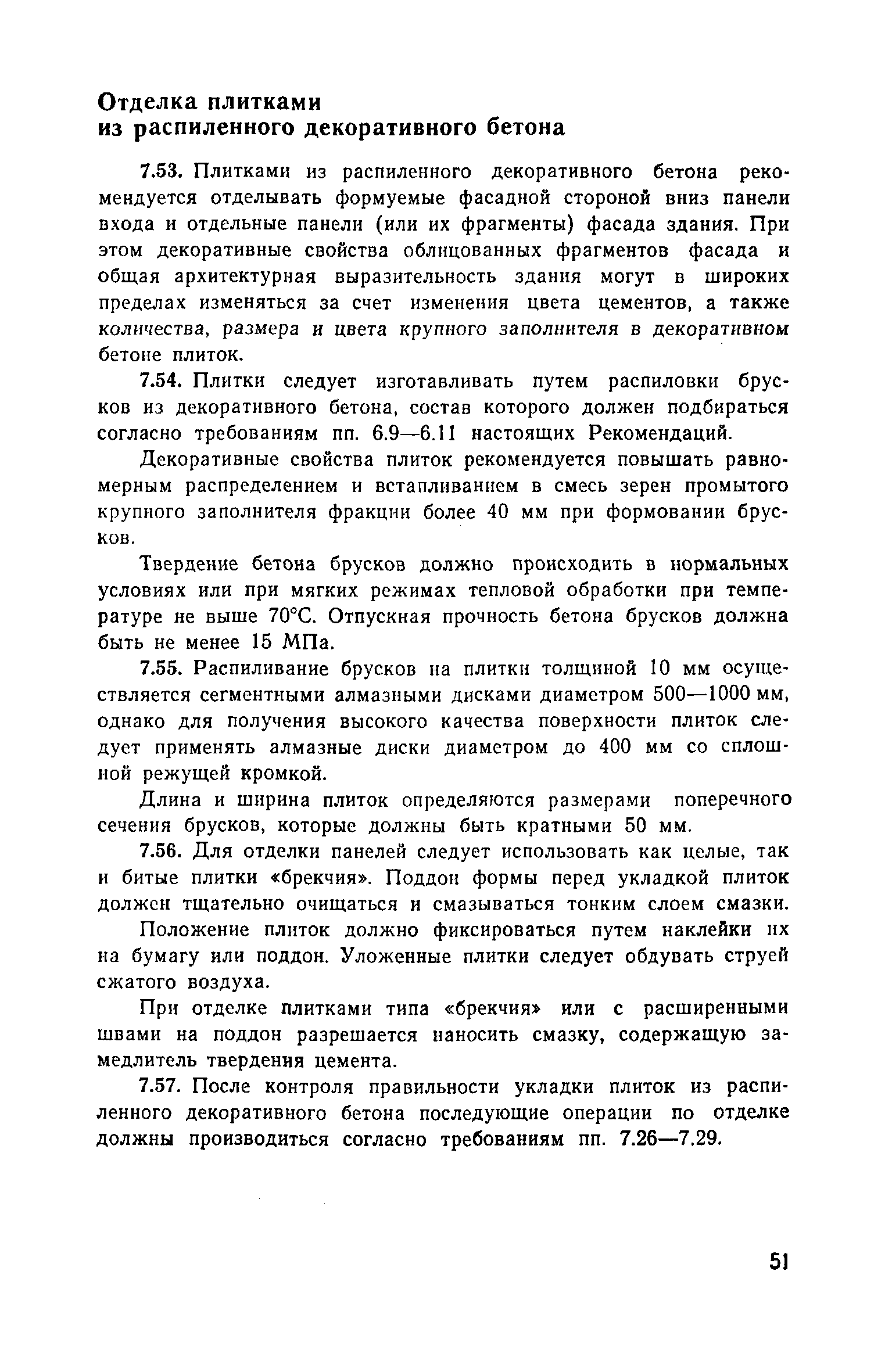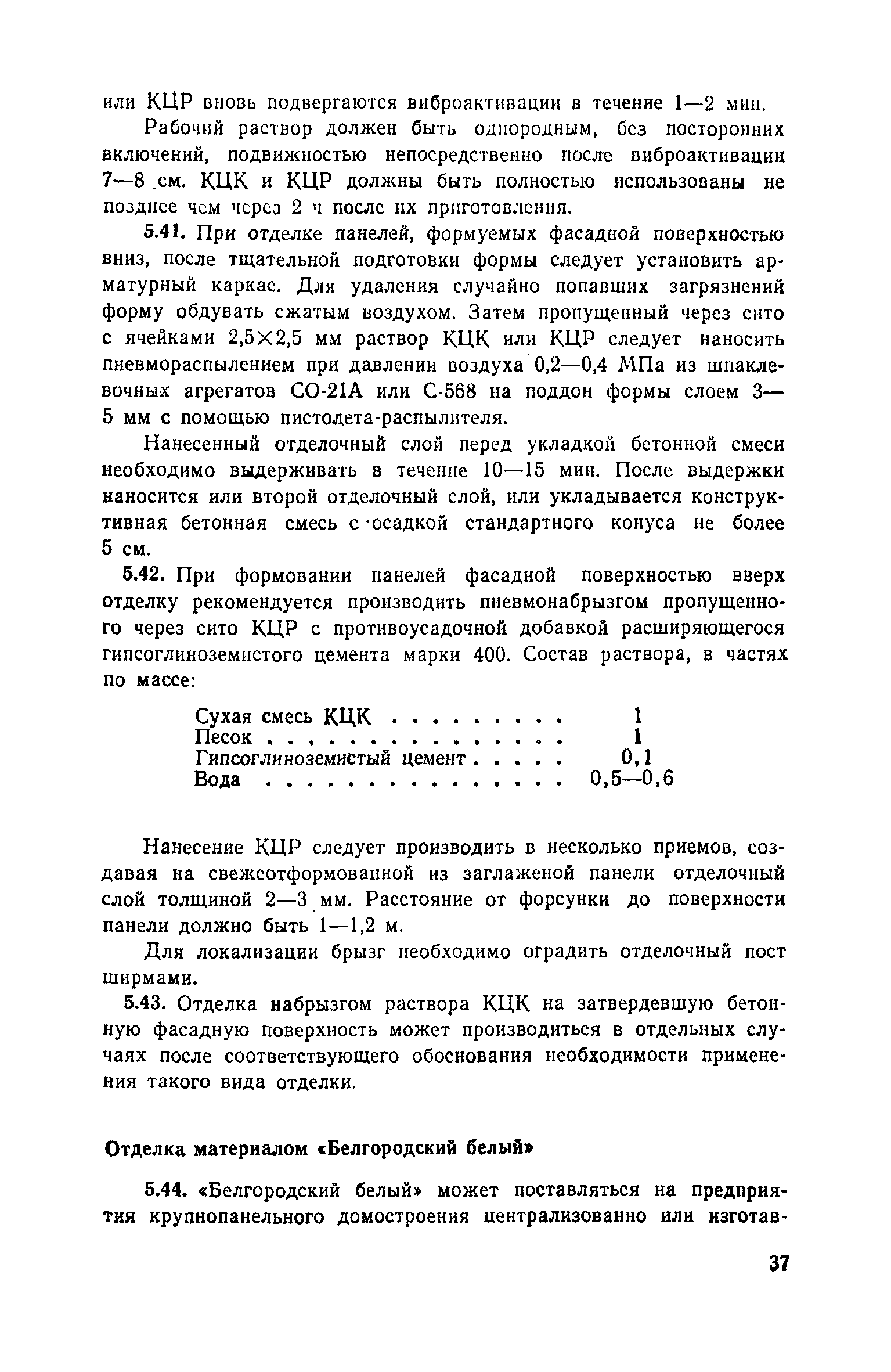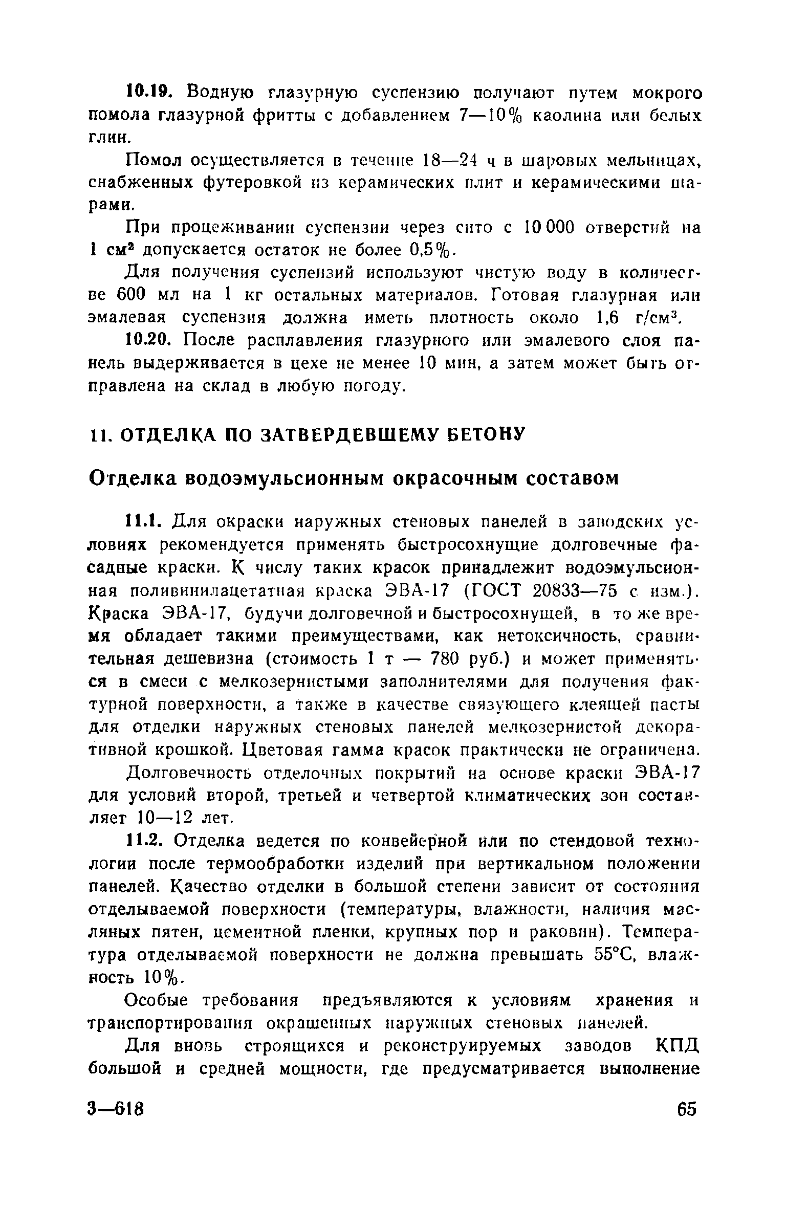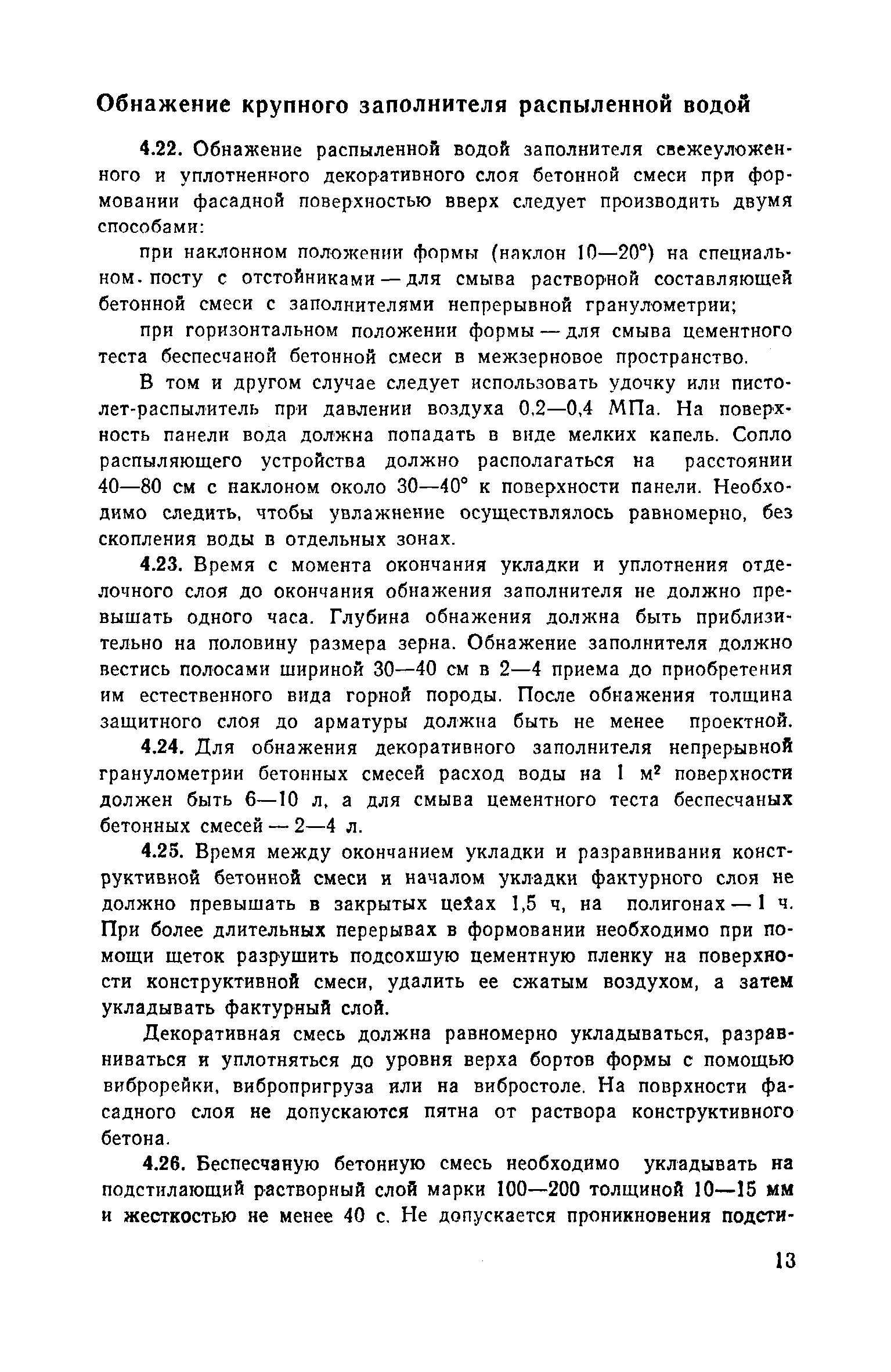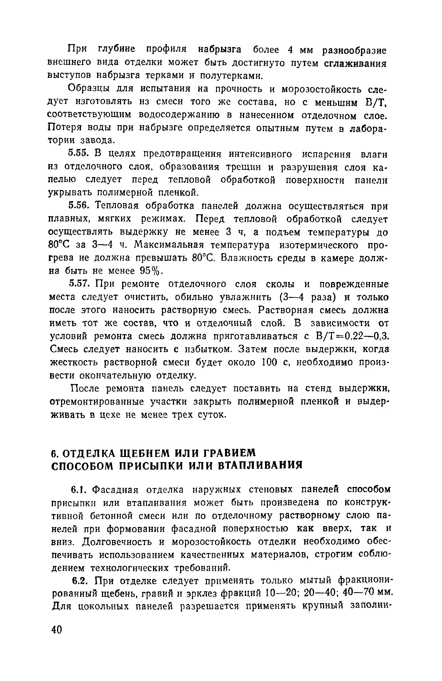 | Оглавление: | 1. Общие положения 2. Материалы для фасадной отделки и требования к ним 3. Архитектурно-технологические принципы выбора видов отделки 4. Отделка декоративным бетоном с обнажением заполнителя Общие рекомендации Подбор состава и приготовление декоративной бетонной смеси Обнажение крупного заполнителя распыленной водой Обнажение крупного заполнителя с применением замедлителей твердения цемента Использование замедлителей твердения в коврах Нанесение замедлителей твердения на формующие поверхности формы Нанесение замедлителей твердения на верхнюю поверхность свежеотформованных панелей 5. Отделка декоративными цементными растворами Общие рекомендации Отделка при формовании панелей фасадной поверхностью вниз Рельефная отделка Отделка при формовании панелей фасадной поверхностью вверх Отделка при формовании панелей фасадной поверхностью вверх или вниз Отделка по трафаретам Отделка коллоидно-цементными клеями или растворами Отделка материалом "Белгородский белый" 6. Отделка щебнем или гравием способом присыпки или втапливания 7. Отделка плитками из искусственных материалов Общие рекомендации Отделка ковровой керамiiческой и стеклянной плиткой Изготовление ковров силами предприятий крупнопанельного домостроения (КПД) Отделка крупными керамическими плитками полусухого прессования Отделка плитками из распиленного декоративного бетона Отделка плитами фасадными железобетонными Отделка плитками из стеклокристаллита Отделка окрашенным стеклом 8. Отделка плитками из природного камня 9. Комбинированная отделка 10. Отделка многоцветными керамическими глазурями и эмалями 11. Отделка по затвердевшему бетону Отделка водоэмульсионным окрасочным составом Отделка эмалями КО-174 Отделка декоративной крошкой по клеящей основе Отделка набрызгом Отделка механической обработкой поверхности Отделка металлизацией 12. Контроль качества. Хранение и транспортирование панелей Приложение 1. Перечень способов фасадной отделки Приложение 2. Перечень основных промышленных месторождений цветного камня Приложение 3. Изготовление бетонных архитектурных вставок и форм для них Приложение 4. Технология отделки железобетонных изделий с помощью стальных матриц Приложение 5. Технология отделки изделий с помощью рельефообразующих матриц с полимерным рабочим слоем Приложение 6. Технология изготовления рельефообразующих матриц заливочных паст Приложение 7. Технология отделки железобетонных изделий с помощью стеклопластиковых матриц Приложение 8. Технология отделки железобетонных изделий с помощью резиновых матриц Приложение 9. Технология отделки железобетонных изделий с помощью матриц из листовых термопластичных материалов Приложение 10. Технико-экономические показатели рельефообразующих матриц, применяемых на заводах КПД Приложение 11. Технико-экономические показатели опытно-промышленного образца вибросмесителя Приложение 12. Устройство и работа поточно-конвейерной линии глазурования стеновых панелей |