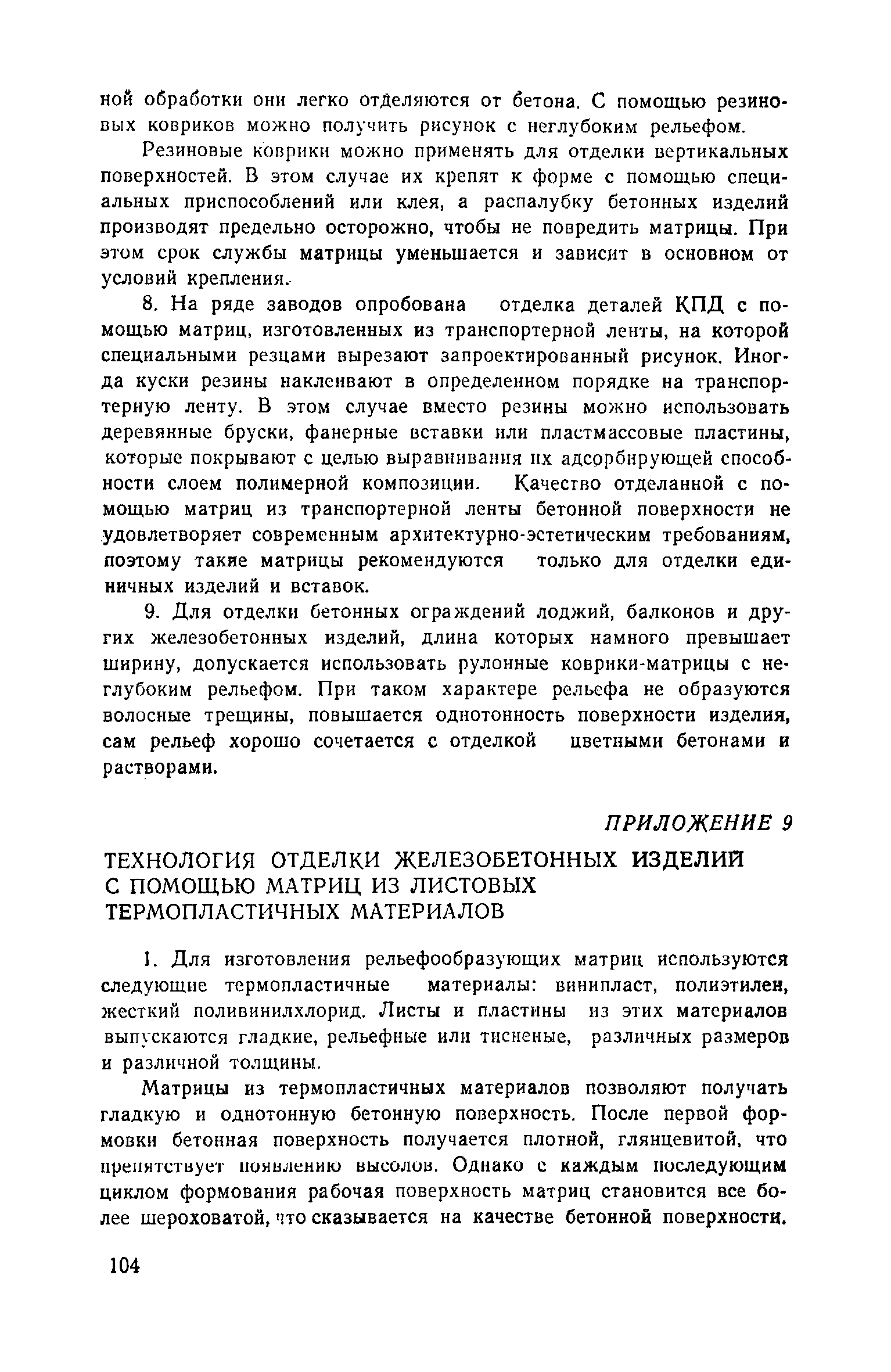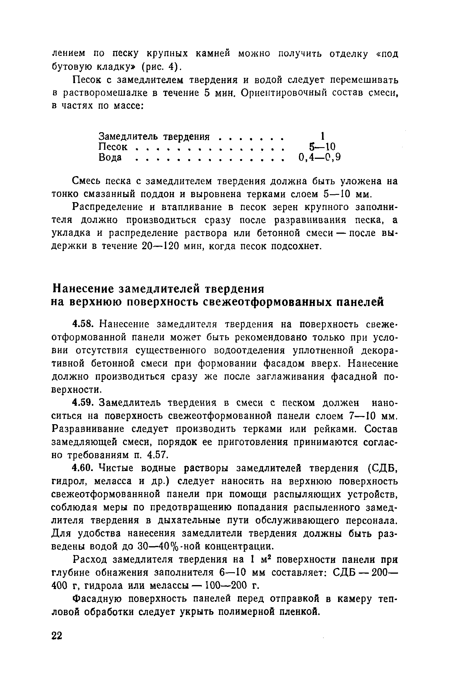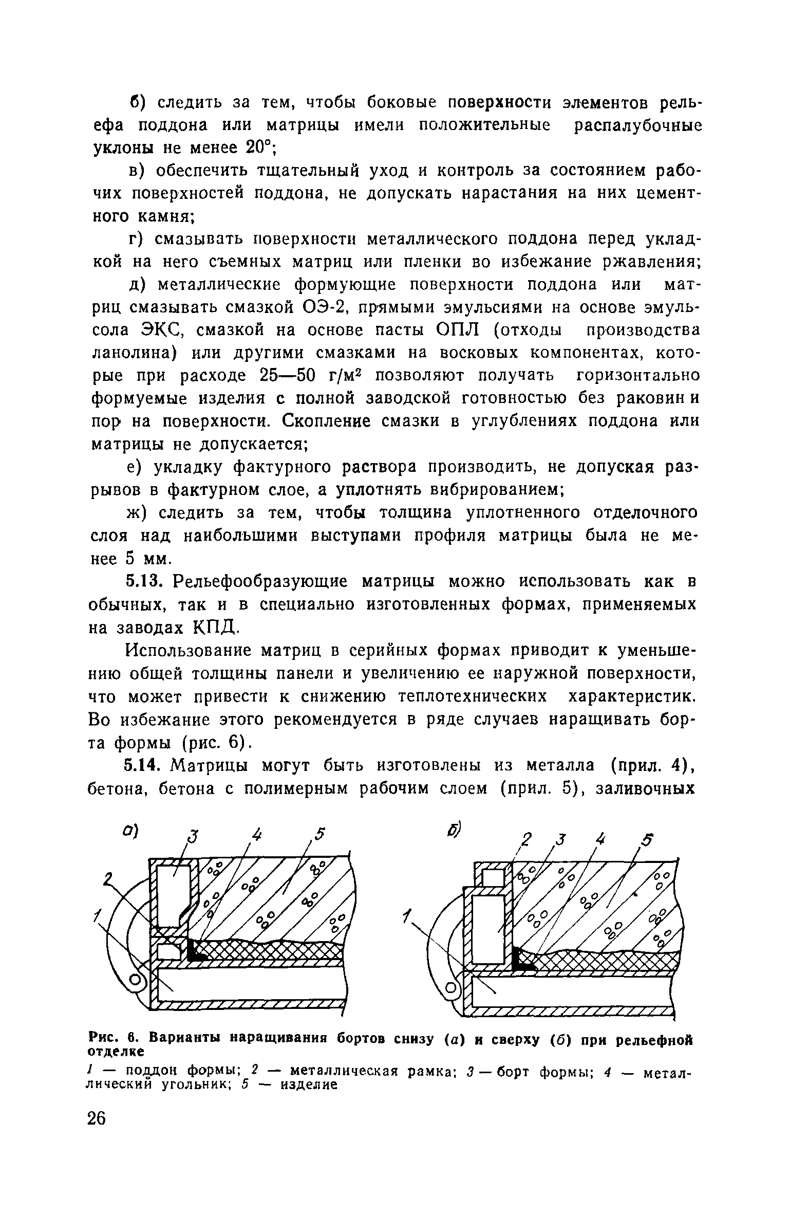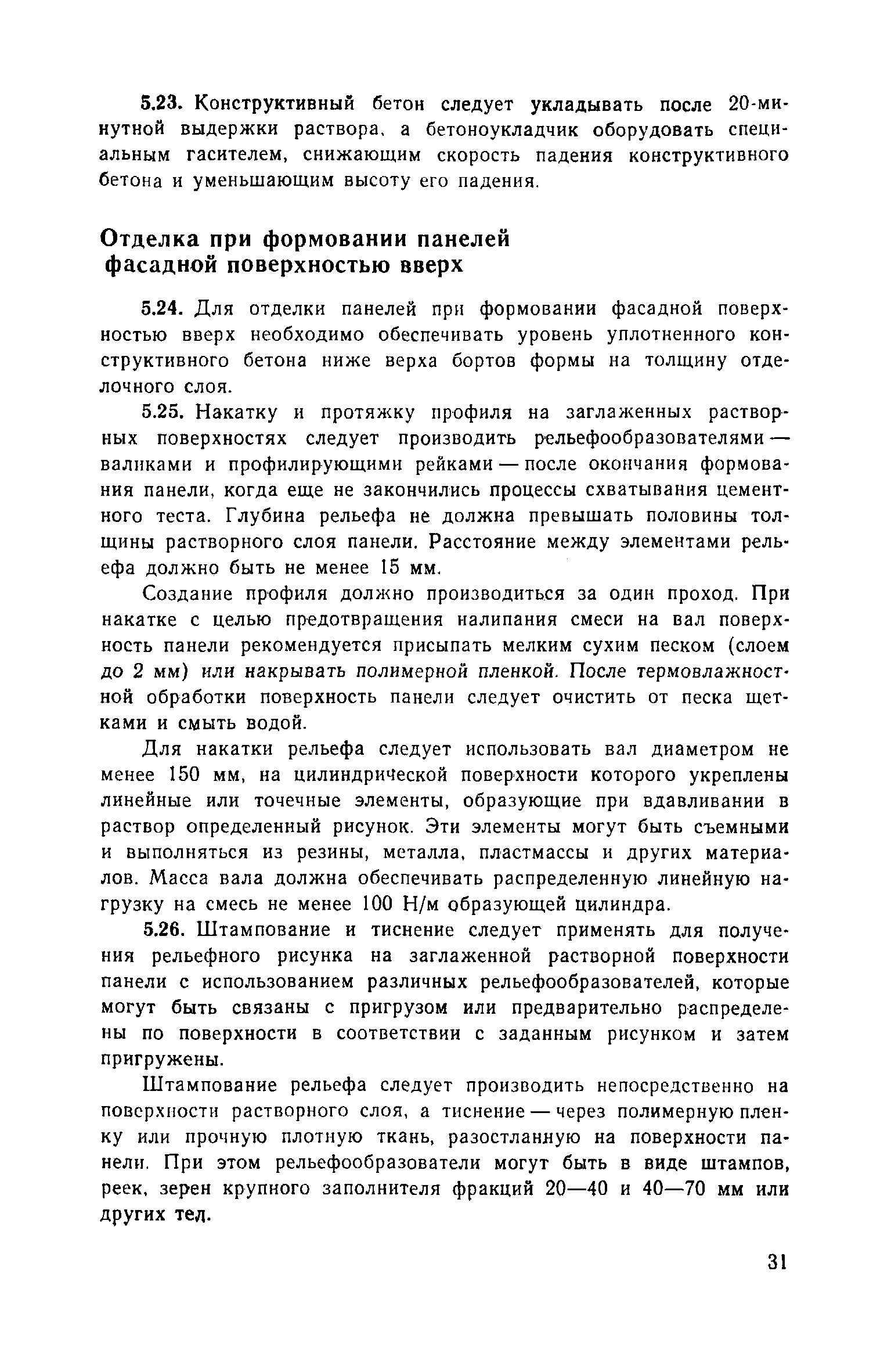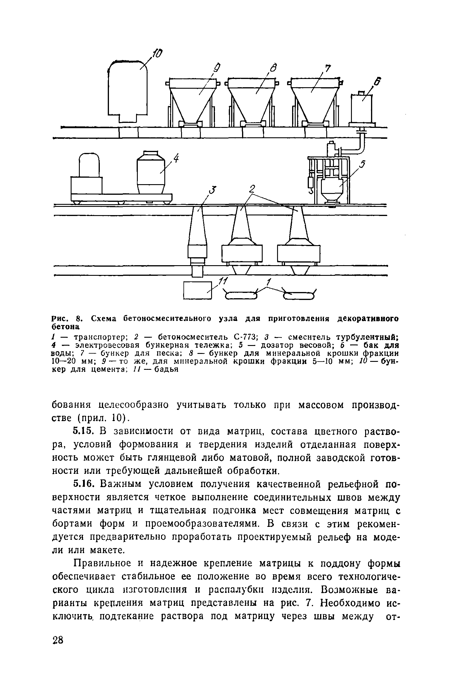 | Оглавление: | 1. Общие положения 2. Материалы для фасадной отделки и требования к ним 3. Архитектурно-технологические принципы выбора видов отделки 4. Отделка декоративным бетоном с обнажением заполнителя Общие рекомендации Подбор состава и приготовление декоративной бетонной смеси Обнажение крупного заполнителя распыленной водой Обнажение крупного заполнителя с применением замедлителей твердения цемента Использование замедлителей твердения в коврах Нанесение замедлителей твердения на формующие поверхности формы Нанесение замедлителей твердения на верхнюю поверхность свежеотформованных панелей 5. Отделка декоративными цементными растворами Общие рекомендации Отделка при формовании панелей фасадной поверхностью вниз Рельефная отделка Отделка при формовании панелей фасадной поверхностью вверх Отделка при формовании панелей фасадной поверхностью вверх или вниз Отделка по трафаретам Отделка коллоидно-цементными клеями или растворами Отделка материалом "Белгородский белый" 6. Отделка щебнем или гравием способом присыпки или втапливания 7. Отделка плитками из искусственных материалов Общие рекомендации Отделка ковровой керамiiческой и стеклянной плиткой Изготовление ковров силами предприятий крупнопанельного домостроения (КПД) Отделка крупными керамическими плитками полусухого прессования Отделка плитками из распиленного декоративного бетона Отделка плитами фасадными железобетонными Отделка плитками из стеклокристаллита Отделка окрашенным стеклом 8. Отделка плитками из природного камня 9. Комбинированная отделка 10. Отделка многоцветными керамическими глазурями и эмалями 11. Отделка по затвердевшему бетону Отделка водоэмульсионным окрасочным составом Отделка эмалями КО-174 Отделка декоративной крошкой по клеящей основе Отделка набрызгом Отделка механической обработкой поверхности Отделка металлизацией 12. Контроль качества. Хранение и транспортирование панелей Приложение 1. Перечень способов фасадной отделки Приложение 2. Перечень основных промышленных месторождений цветного камня Приложение 3. Изготовление бетонных архитектурных вставок и форм для них Приложение 4. Технология отделки железобетонных изделий с помощью стальных матриц Приложение 5. Технология отделки изделий с помощью рельефообразующих матриц с полимерным рабочим слоем Приложение 6. Технология изготовления рельефообразующих матриц заливочных паст Приложение 7. Технология отделки железобетонных изделий с помощью стеклопластиковых матриц Приложение 8. Технология отделки железобетонных изделий с помощью резиновых матриц Приложение 9. Технология отделки железобетонных изделий с помощью матриц из листовых термопластичных материалов Приложение 10. Технико-экономические показатели рельефообразующих матриц, применяемых на заводах КПД Приложение 11. Технико-экономические показатели опытно-промышленного образца вибросмесителя Приложение 12. Устройство и работа поточно-конвейерной линии глазурования стеновых панелей |