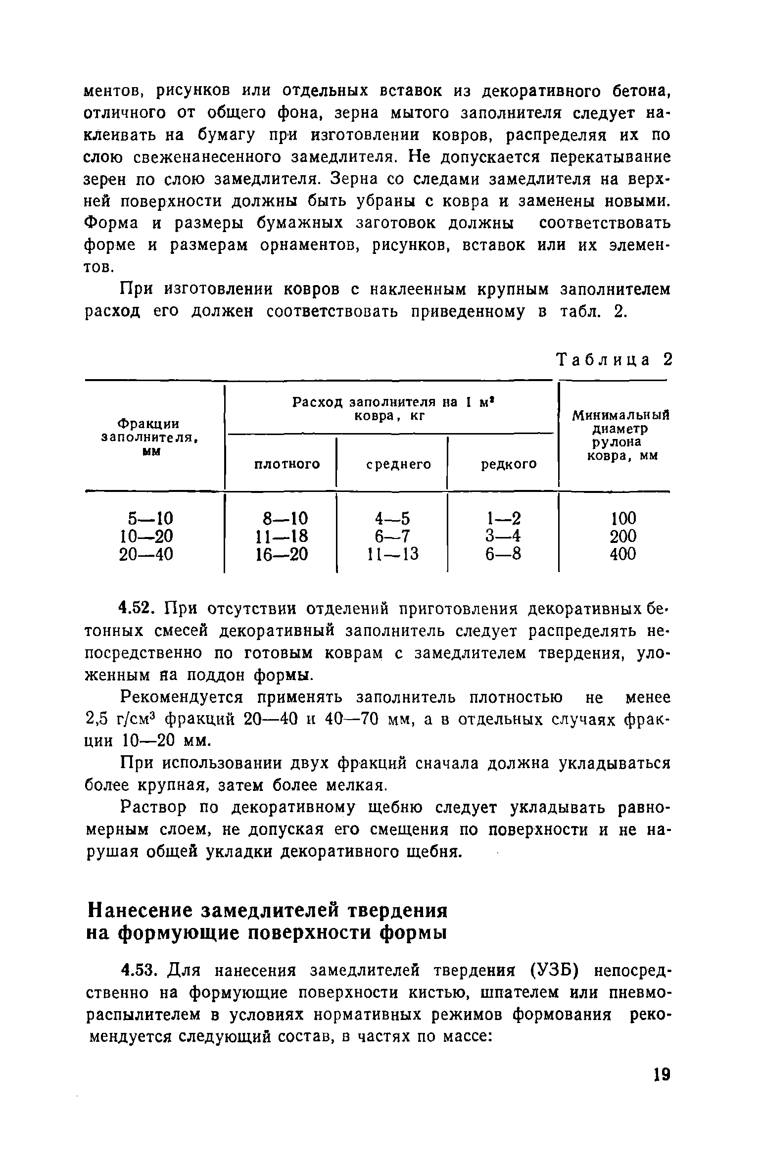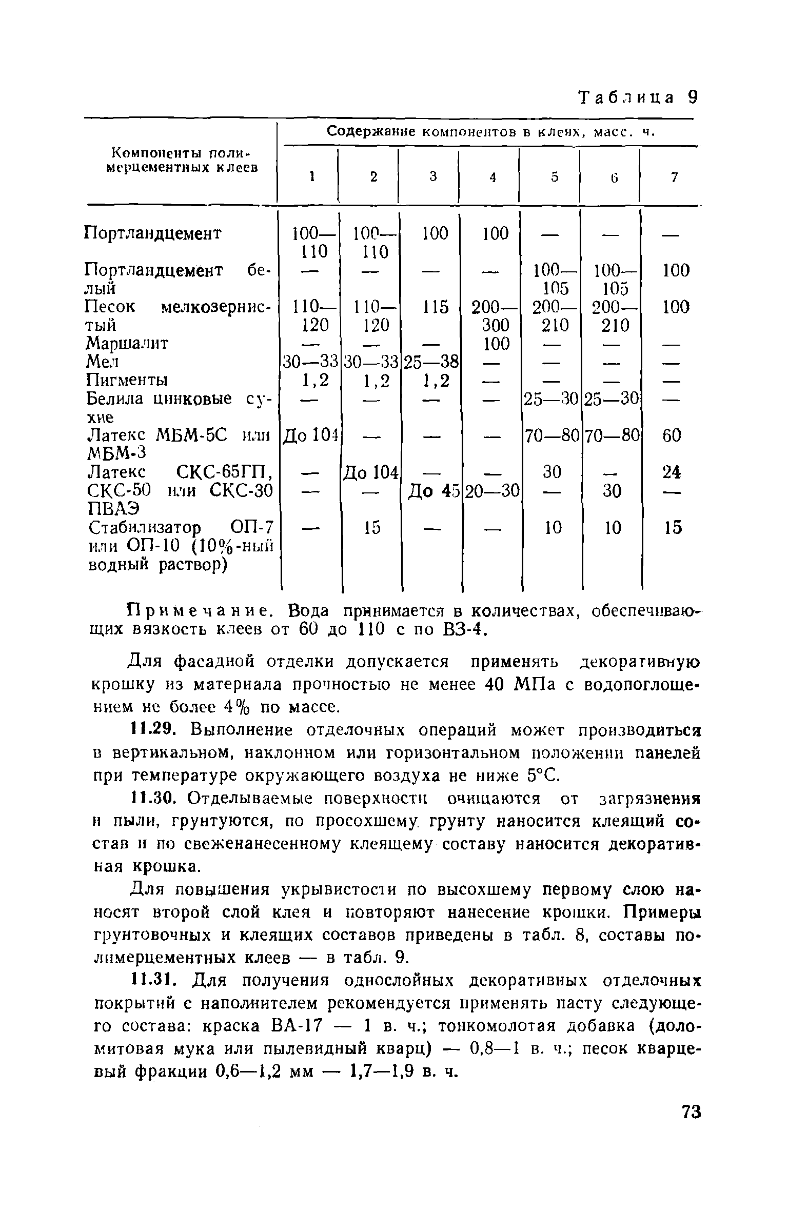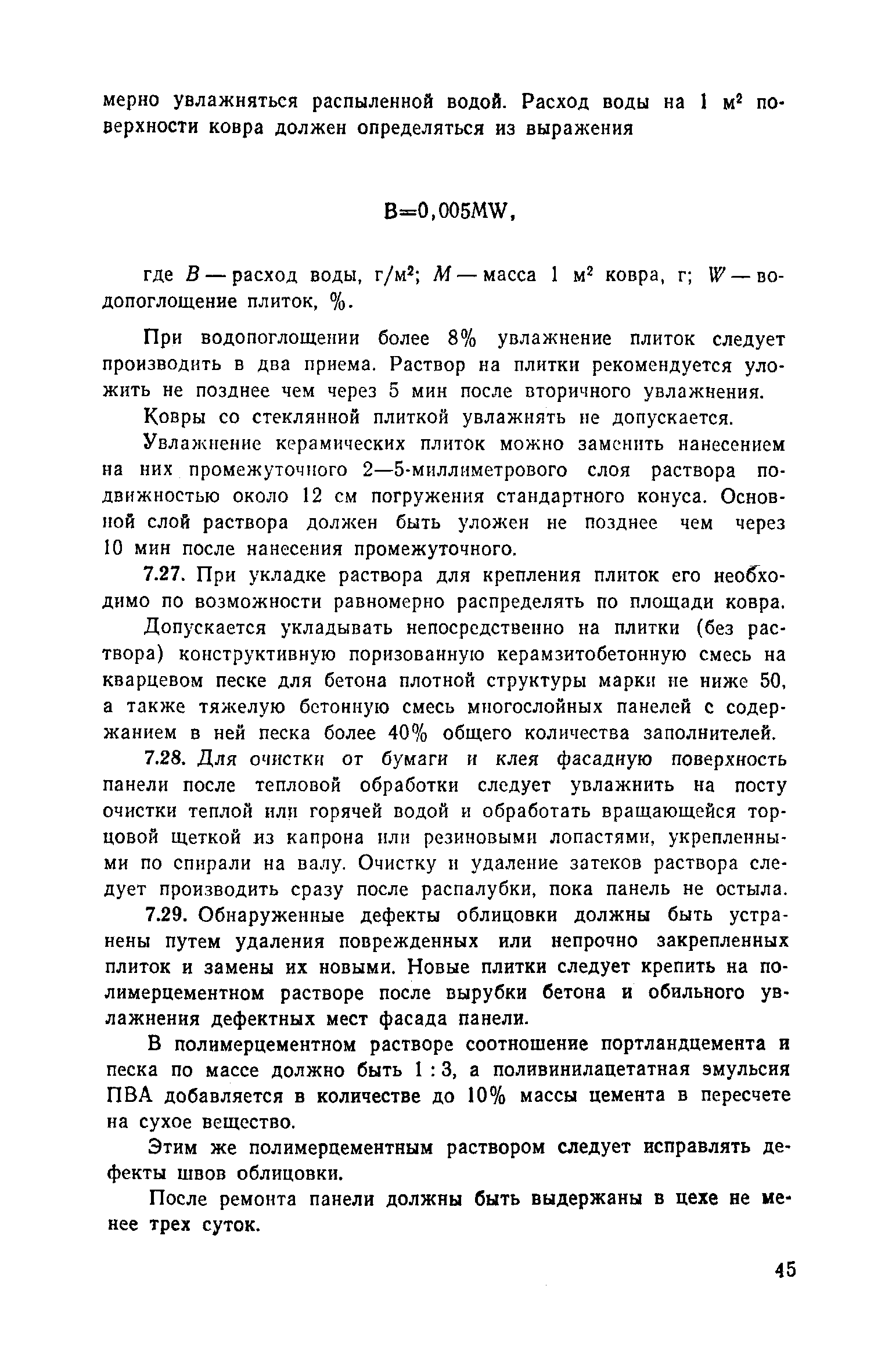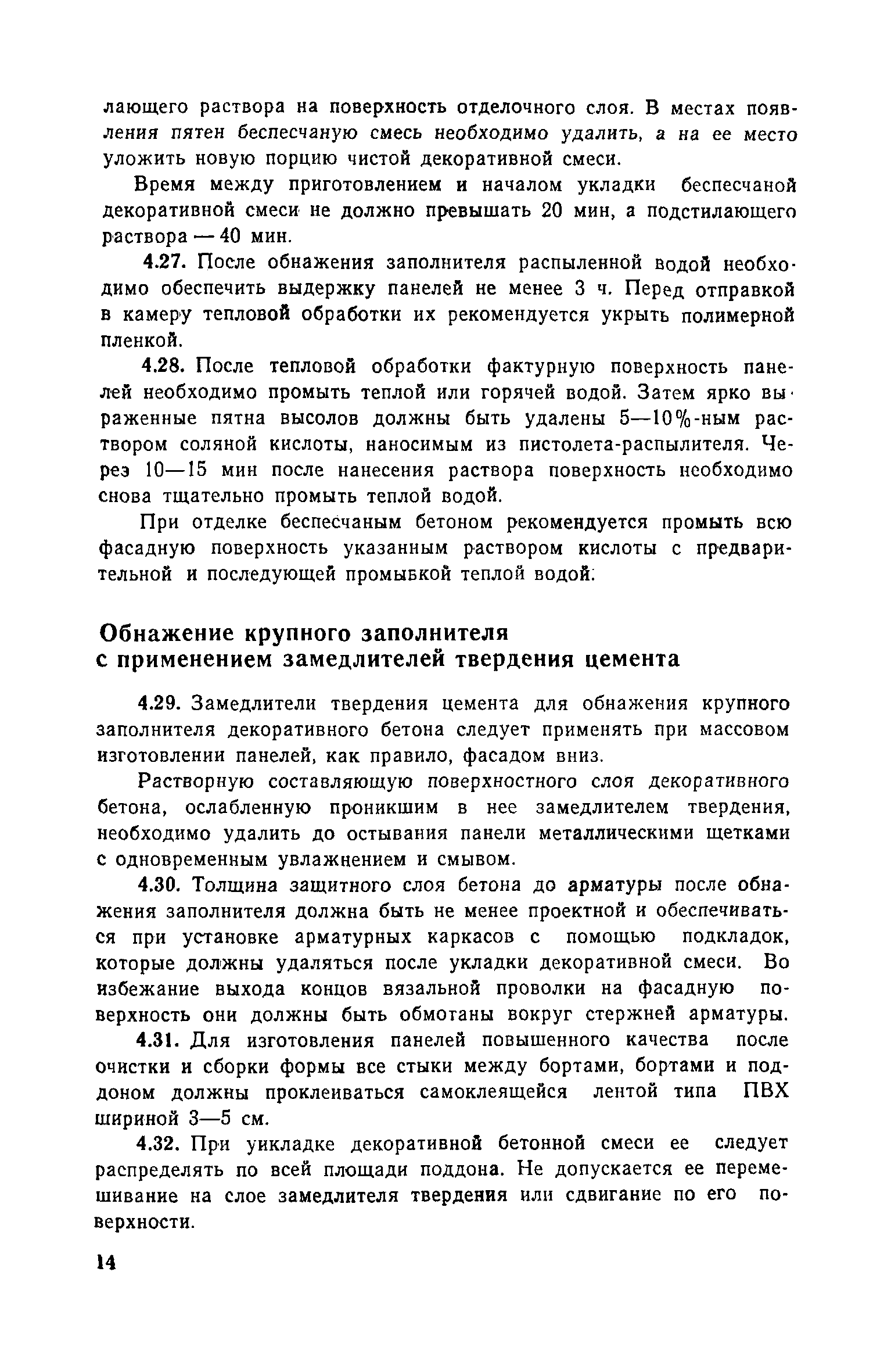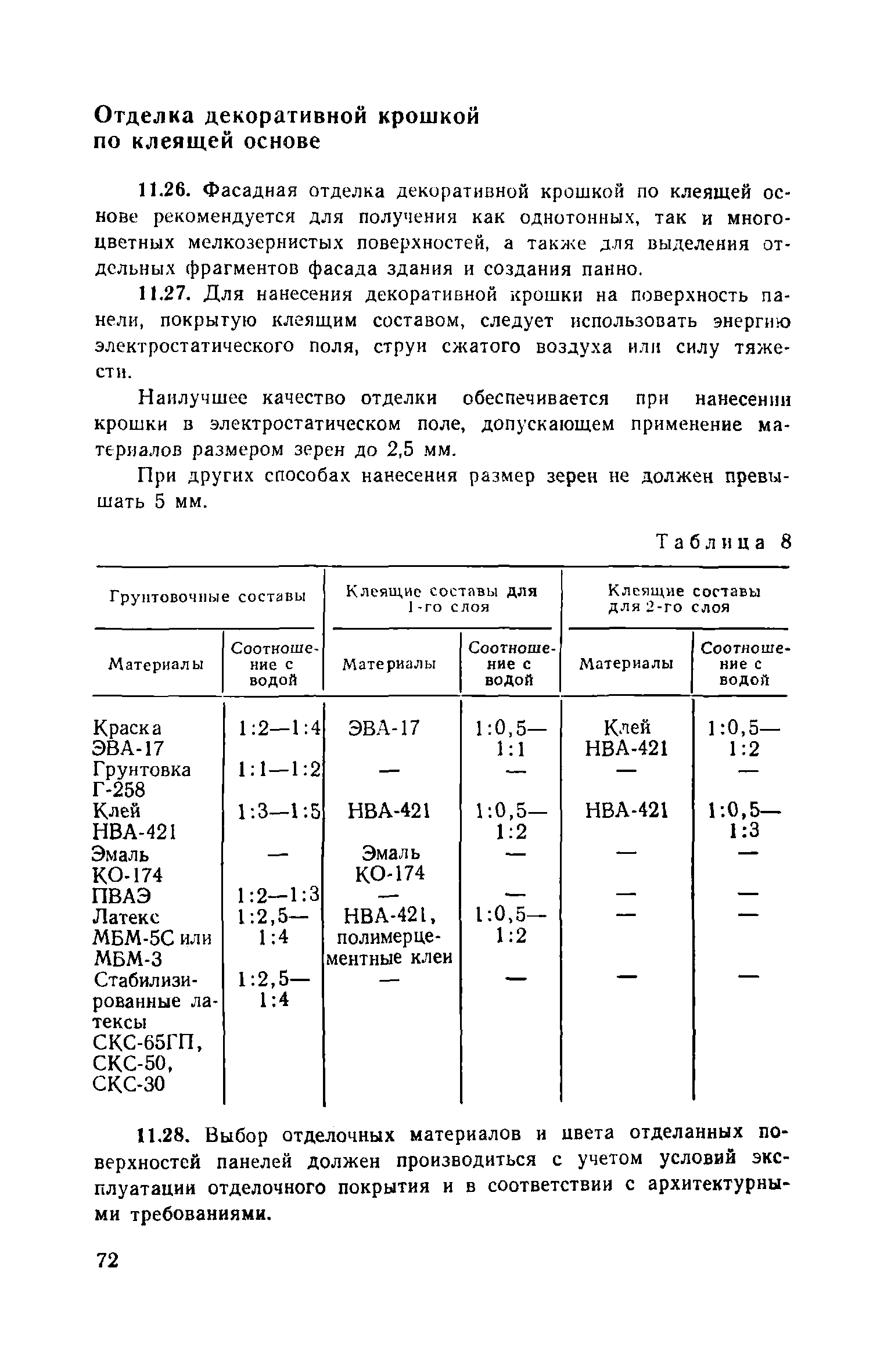 | Оглавление: | 1. Общие положения 2. Материалы для фасадной отделки и требования к ним 3. Архитектурно-технологические принципы выбора видов отделки 4. Отделка декоративным бетоном с обнажением заполнителя Общие рекомендации Подбор состава и приготовление декоративной бетонной смеси Обнажение крупного заполнителя распыленной водой Обнажение крупного заполнителя с применением замедлителей твердения цемента Использование замедлителей твердения в коврах Нанесение замедлителей твердения на формующие поверхности формы Нанесение замедлителей твердения на верхнюю поверхность свежеотформованных панелей 5. Отделка декоративными цементными растворами Общие рекомендации Отделка при формовании панелей фасадной поверхностью вниз Рельефная отделка Отделка при формовании панелей фасадной поверхностью вверх Отделка при формовании панелей фасадной поверхностью вверх или вниз Отделка по трафаретам Отделка коллоидно-цементными клеями или растворами Отделка материалом "Белгородский белый" 6. Отделка щебнем или гравием способом присыпки или втапливания 7. Отделка плитками из искусственных материалов Общие рекомендации Отделка ковровой керамiiческой и стеклянной плиткой Изготовление ковров силами предприятий крупнопанельного домостроения (КПД) Отделка крупными керамическими плитками полусухого прессования Отделка плитками из распиленного декоративного бетона Отделка плитами фасадными железобетонными Отделка плитками из стеклокристаллита Отделка окрашенным стеклом 8. Отделка плитками из природного камня 9. Комбинированная отделка 10. Отделка многоцветными керамическими глазурями и эмалями 11. Отделка по затвердевшему бетону Отделка водоэмульсионным окрасочным составом Отделка эмалями КО-174 Отделка декоративной крошкой по клеящей основе Отделка набрызгом Отделка механической обработкой поверхности Отделка металлизацией 12. Контроль качества. Хранение и транспортирование панелей Приложение 1. Перечень способов фасадной отделки Приложение 2. Перечень основных промышленных месторождений цветного камня Приложение 3. Изготовление бетонных архитектурных вставок и форм для них Приложение 4. Технология отделки железобетонных изделий с помощью стальных матриц Приложение 5. Технология отделки изделий с помощью рельефообразующих матриц с полимерным рабочим слоем Приложение 6. Технология изготовления рельефообразующих матриц заливочных паст Приложение 7. Технология отделки железобетонных изделий с помощью стеклопластиковых матриц Приложение 8. Технология отделки железобетонных изделий с помощью резиновых матриц Приложение 9. Технология отделки железобетонных изделий с помощью матриц из листовых термопластичных материалов Приложение 10. Технико-экономические показатели рельефообразующих матриц, применяемых на заводах КПД Приложение 11. Технико-экономические показатели опытно-промышленного образца вибросмесителя Приложение 12. Устройство и работа поточно-конвейерной линии глазурования стеновых панелей |