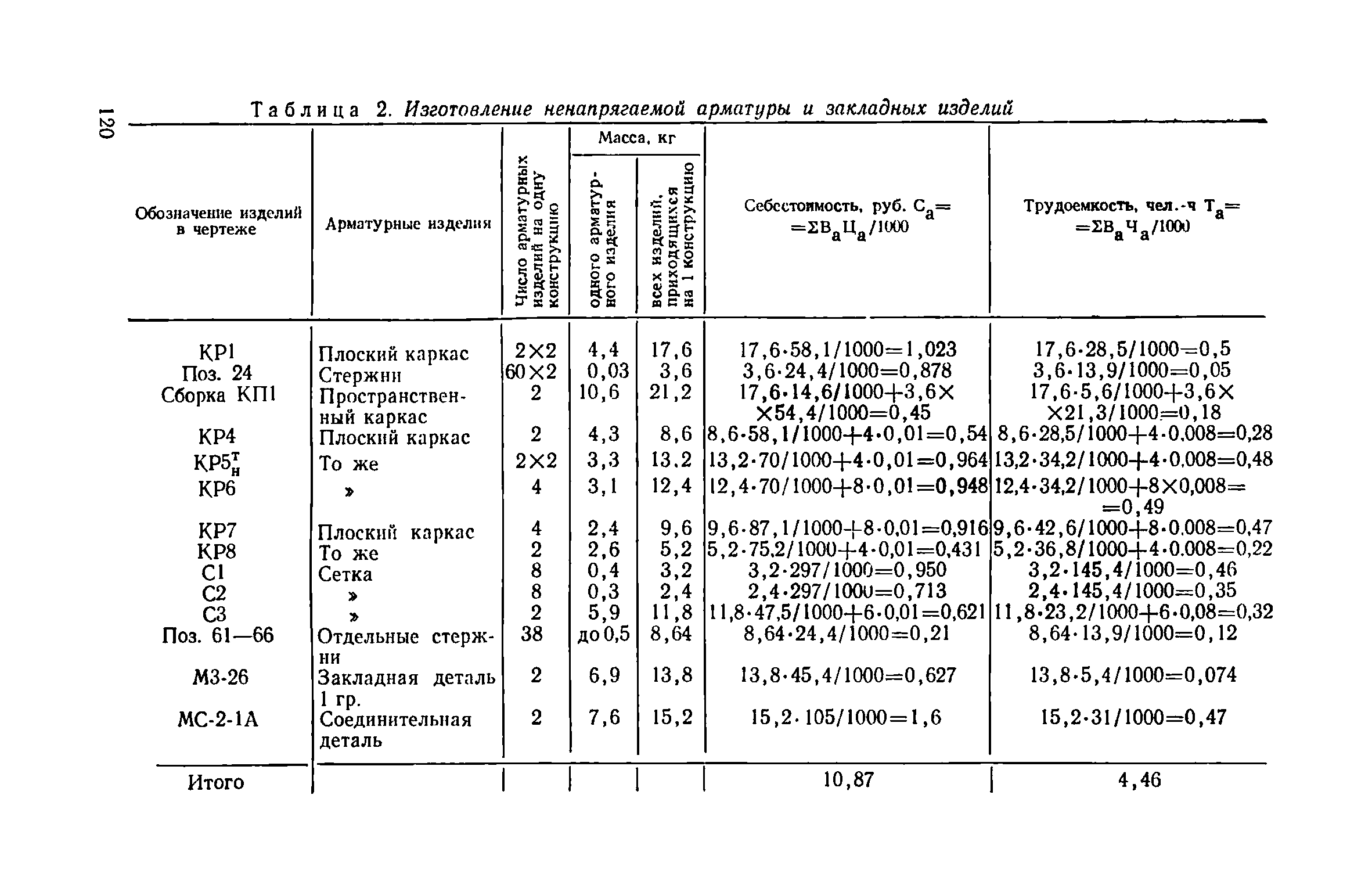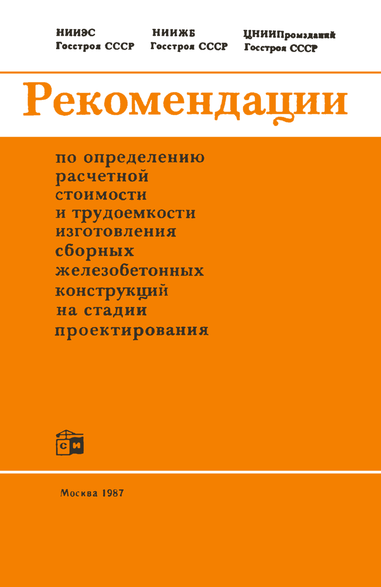 Рекомендации по определению расчетной стоимости и трудоемкости изготовления сборных железобетонных конструкций на стадии проектирования| Статус: | действует | | Название рус.: | Рекомендации по определению расчетной стоимости и трудоемкости изготовления сборных железобетонных конструкций на стадии проектирования | | Дата добавления в базу: | 01.09.2013 | | Дата актуализации: | 01.01.2021 | | Область применения: | В документе содержатся основные методические положения и нормативы, позволяющие рассчитать себестоимость, трудоемкость изготовления другие технико-экономические показатели вновь создаваемых сборных железобетонных конструкций | | Оглавление: | Предисловие 1. Основные положения Номенклатура показателей 2. Методика определения технико-экономических показателей Определение расчетной производственной себестоимости и трудоемкости изготовления конструкций и изделий Себестоимость бетонной смеси, трудовые затраты на ее приготовление и расход вяжущих Затраты на сталь, себестоимость и трудоемкость изготовления арматурных элементов и закладных изделий Определение себестоимости н трудоемкости работ и операций, осуществляемых в формовочном цехе . Определение себестоимости и трудоемкости работ и операций, осуществляемых в формовочном цехе Определение полной (расчетной) стоимости конструкций Определение полной расчетной стоимости конструкций "в деле" Технология изготовления конструкций и параметры бетонной смеси для тяжелого и легкого бетонов 8. Нормативы для расчета себестоимости и трудоемкости изготовления конструкций Коэффициенты расхода бетонной смеси Значения марок бетона при классе бетона по прочности на сжатие Себестоимость Цб руб., 1м3 бетонной смеси Трудоемкость Чб чел.-ч, приготовления 1 м3 бетонной смеси Расход вяжущего Нв кг, на 1 м3 бетона Коэффициенты Кст расхода стали Цена Цст руб., за 1 т арматурной и прокатной стали (франко-склад предприятия железобетонных изделий) Себестоимость Ца руб., и трудоемкость Ча, чел-ч, изготовления 1 т ненапрягаемых арматурных элементов Себестоимость Цд руб., и трудоемкость Чд. Чел-ч, изготовления 1 т закладных и накладных изделий Себестоимость Цн.н руб., и трудоемкость Чн.н чел-ч, натяжения 1 т напрягаемой арматуры Себестоимость Цу руб., и трудоемкость Чу чел-ч, укладки a формы 1 т ненапрягаемой арматуры и закладных изделий Себестоимость Цф Руб., и трудоемкость Чф чел-ч, формования 1 м3 конструкции для всех видов строительства Себестоимость Цф Руб., и трудоемкость Чф чел-ч, формования 1 м3 конструкции Конструкции промышленных зданий Конструкции жилых и общественных зданий Конструкции транспортного строительства Конструкции сельскохозяйственных зданий и гидромелиоративного строительства Затраты на содержание и эксплуатацию форм (опалубки) Цоп руб., на 1 м3 бетона конструкции Себестоимость Цп руб., пара на тепловую обработку 1 м3 конструкции Себестоимость утеплителя Цу руб., за 1 м3 себестоимость Цу.у руб., и трудоемкость Чу.у чел-ч, укладки утеплителя за 1м2 Усредненные показатели увеличения технологической трудоемкости Ч, процессов формования, подготовки форм (опалубки) и доводочных работ, необходимых для повышения качества и заводской готовности лицевых поверхностей конструкции Усредненные показатели уменьшения технологической трудоемкости процессов формования, подготовки форм (
