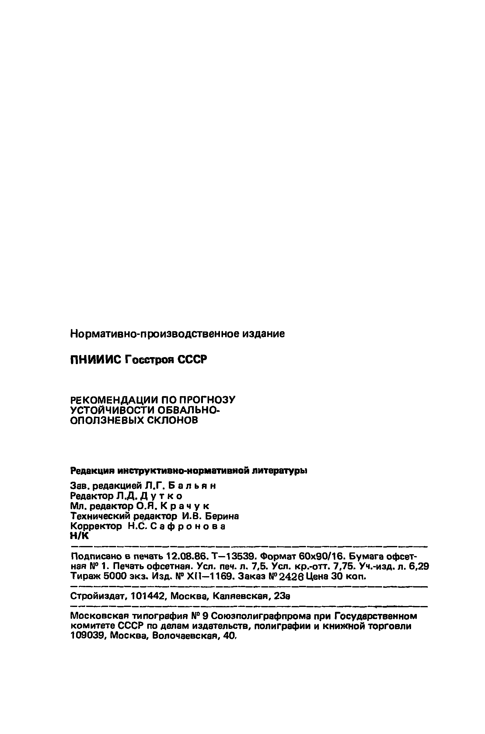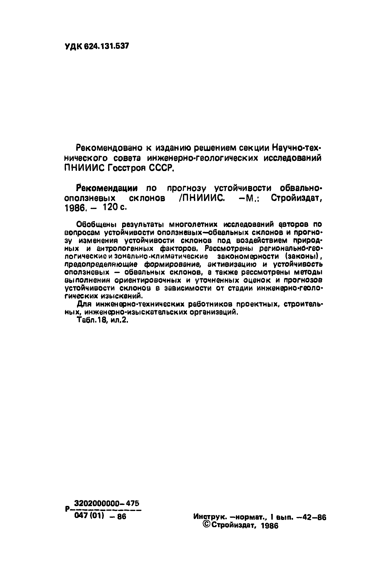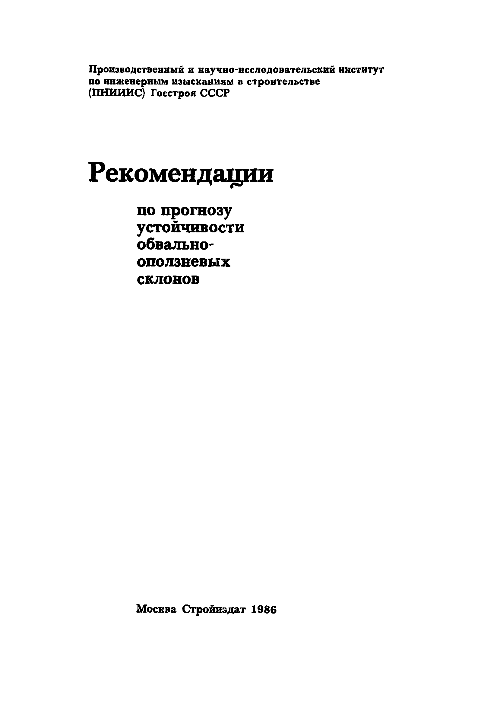 | Название рус.: | Рекомендации по прогнозу устойчивости обвально-оползневых склонов |