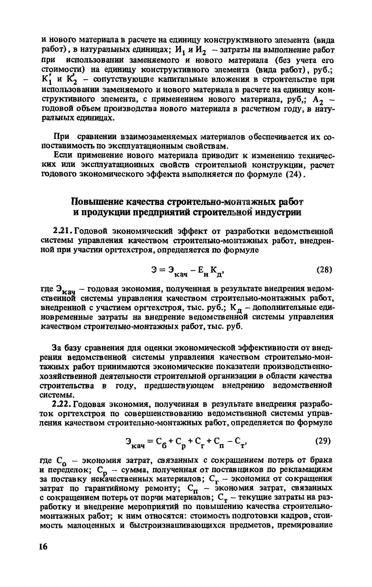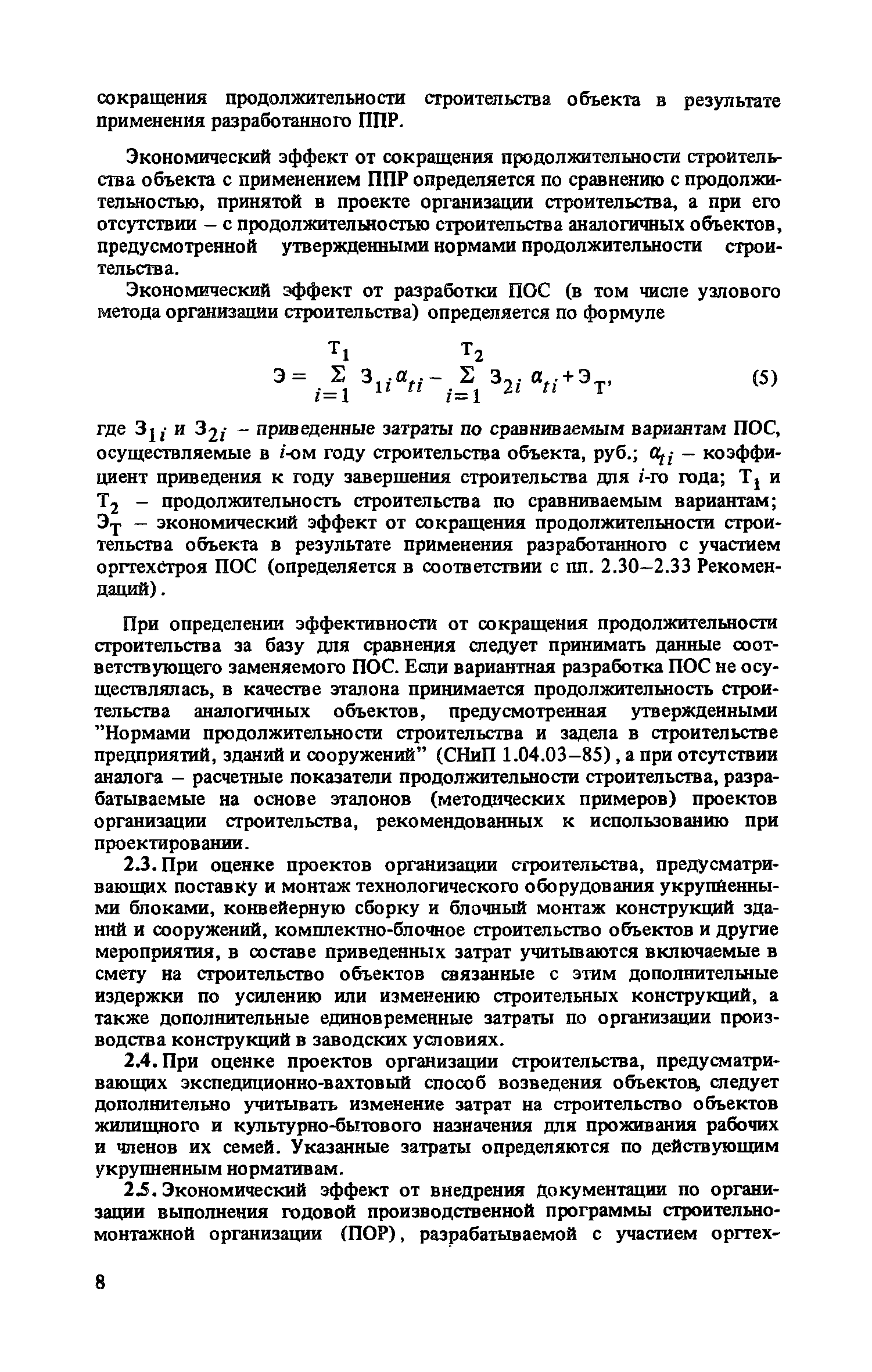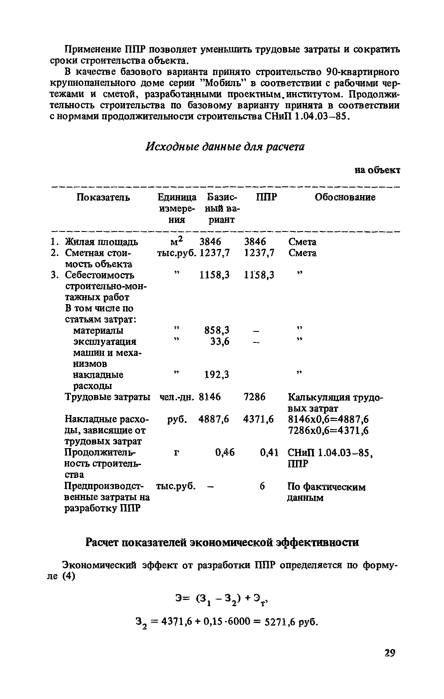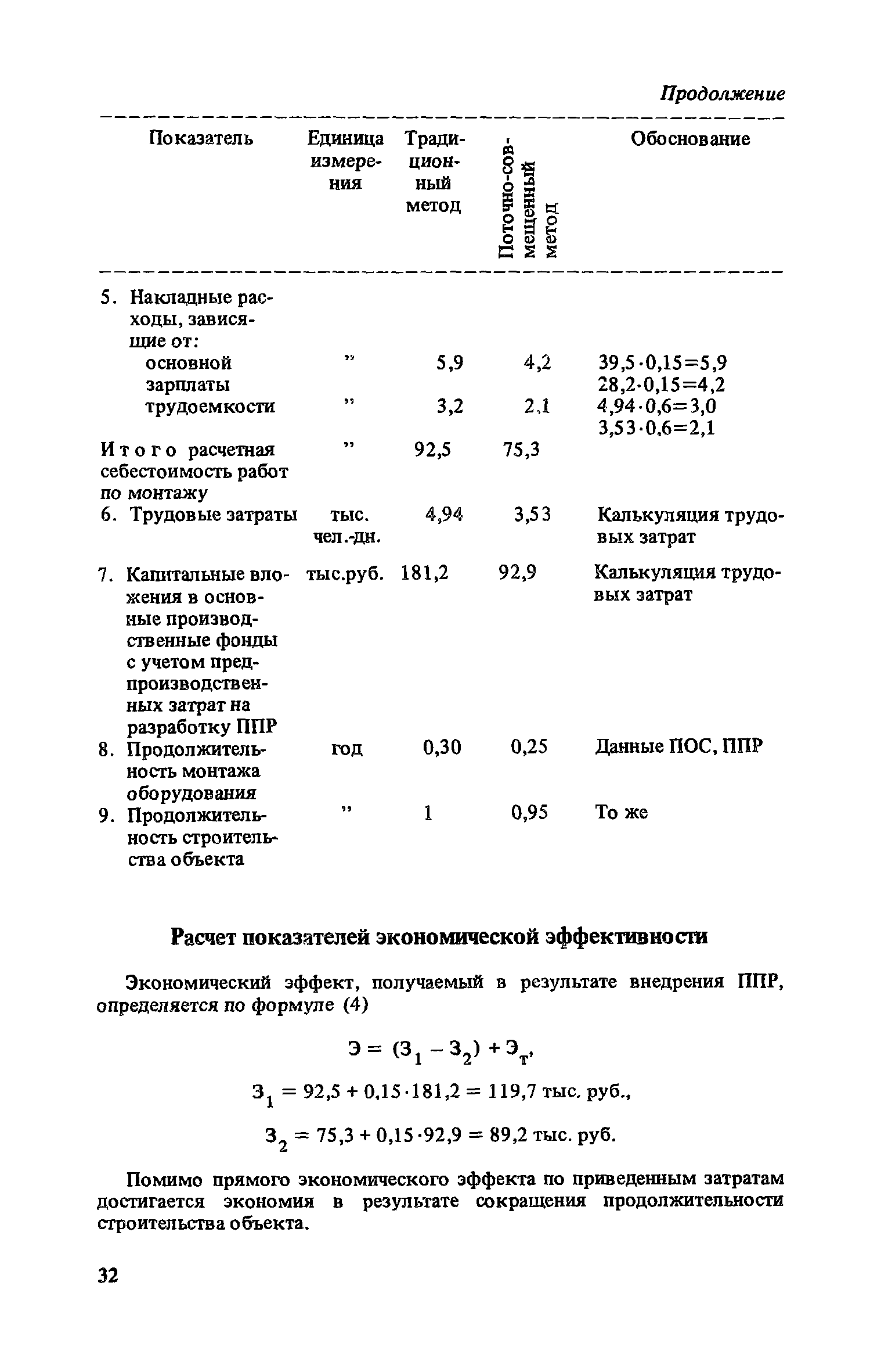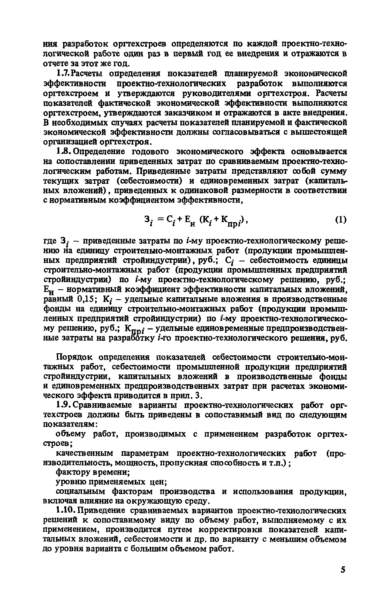 Рекомендации по определению экономической эффективности работ, выполняемых проектно-технологическими трестами (институтами) "Оргтехстрой" ("Оргстрой")| Статус: | не действует | | Название рус.: | Рекомендации по определению экономической эффективности работ, выполняемых проектно-технологическими трестами (институтами) "Оргтехстрой" ("Оргстрой") | | Дата добавления в базу: | 01.09.2013 | | Дата актуализации: | 01.01.2021 | | Область применения: | Документ содержит методы и порядок расчета показателей для оценки экономической эффективности разработок оргтехстроев, внедряемых в строительных организациях и на промышленных предприятиях строительной индустрии с их участием. Изложена методика определения показателей: экономии от снижения себестоимости строительно-монтажных работ (продукции промышленных предприятий стройиндустрии), экономии материальных затрат и относительного высвобождения работников в обслуживаемых организациях и предприятиях в результате внедрения разработок оргстроев. Приводятся примеры расчетов экономической эффективности от внедрения отдельных проектно-технологических работ | | Оглавление: | Раздел 1. Общие положения Раздел 2. Методы определения годового экономического эффекта по отдельным направлениям работы оргтехстроев Раздел 3. Определение показателей экономии от снижения себестоимости строительно-монтажных работ (продукции промышленных предприятий стройиндустрии), экономии материальных затрат и относительного высвобождения работников в обслуживаемых организациях и на предприятиях в результате внедрения разработок оргтехстроев Приложение 1. Коэффициенты приведения по фактору времени Приложение 2. Коэффициенты реновации Приложение 3. Определение основных показателей, используемых в расчетах экономической эффективности Приложение 4. Примеры расчетов Пример 1. Расчет экономической эффективности внедрения ПНР на строительство жилого дома серии “Мобиль” Пример 2. Расчет экономической эффективности применения ПНР, предусматривающего внедрение поточно-совмещенного метода при монтаже технологического оборудования Пример 3. Расчет экономической эффективности разработки НОС с применением узлового метода проектирования, подготовки, организации и управления строительством Пример 4. Расчет экономической эффективности внедрения нового технологического процесса - электротермообработки бетона стыков сборных железобетонных конструкций Пример 5. Расчет экономической эффективности применения технологии возведения монолитных ядер жесткости с применением циклично-переставной опалубки Пример 6. Расчет экономической эффективности внедрения новой технологии сварочных работ Пример 7. Расчет экономического эффекта применения прогрессивного метода организации строительного производства - контейнерной доставки раскроенного оконного стекла с базы комплектации к объекту строительства Пример 8. Расчет экономической эффективности комплектных поставок основных строительных материалов на основе УНТД при строительстве объектов сельскохозяйственного назначения Пример 9. Расчет экономической эффективности внедрения карты трудового процесса Пример 10. Расчет экономической эффективности применения бригадного подряда в строительной организации Пример 11. Расчет экономической эффективности примене