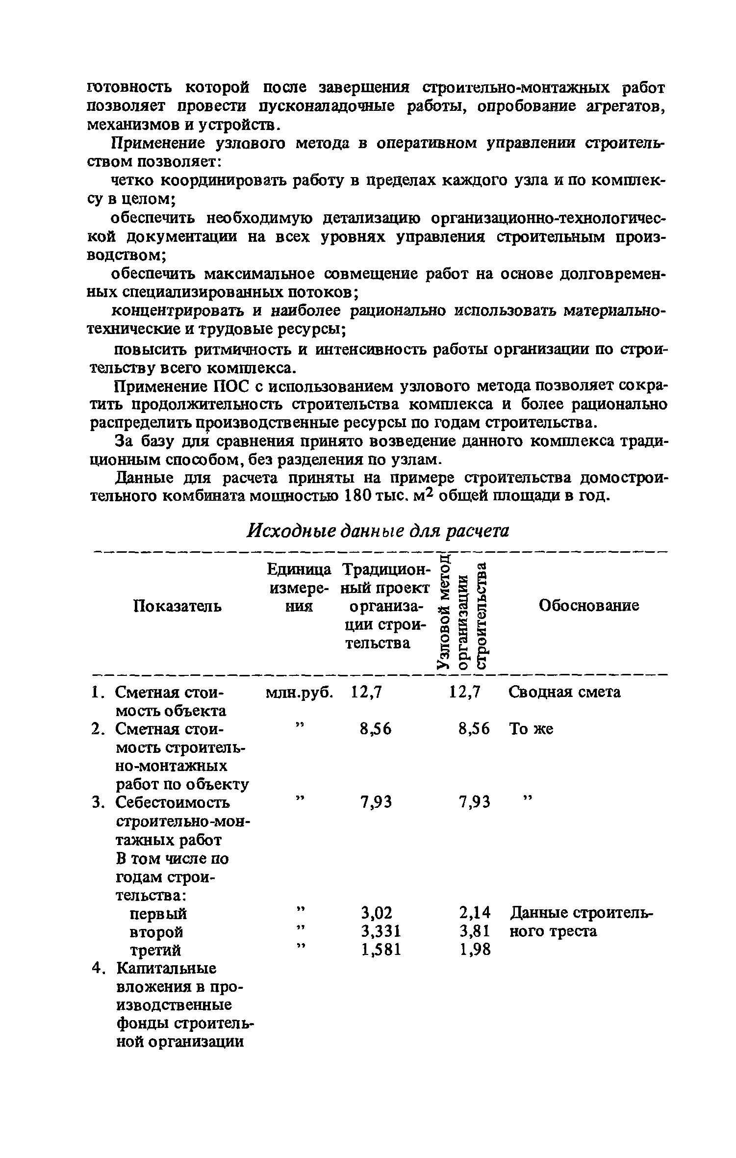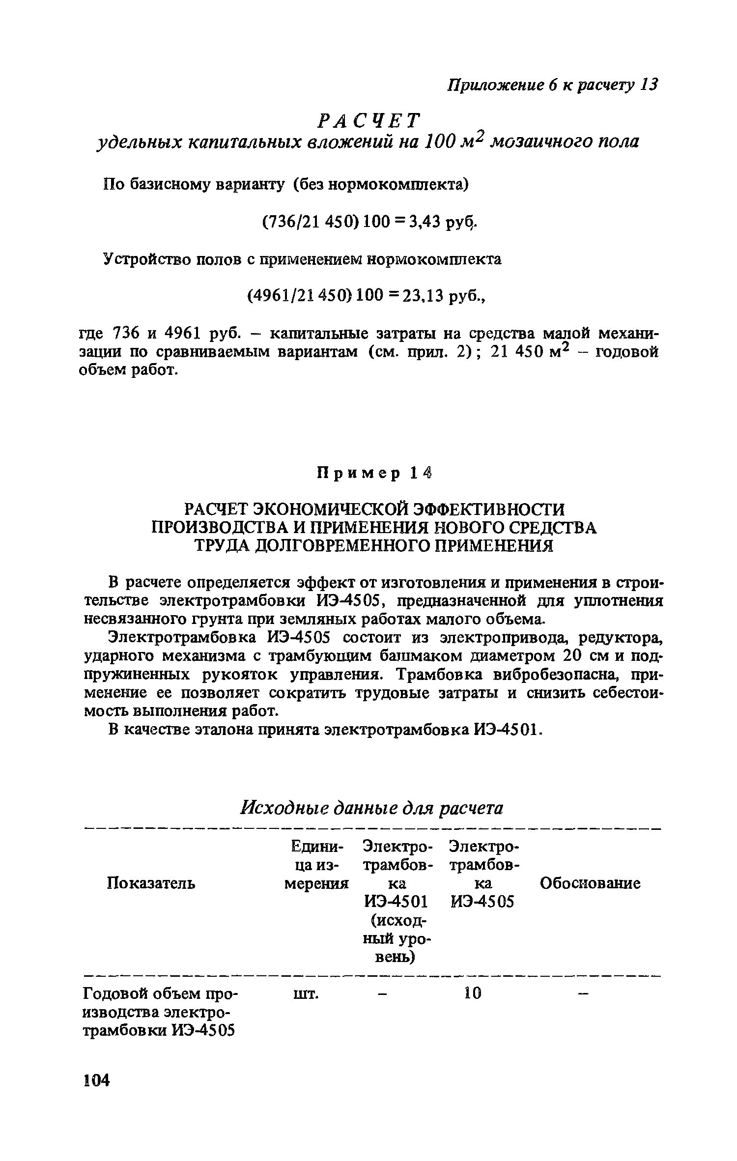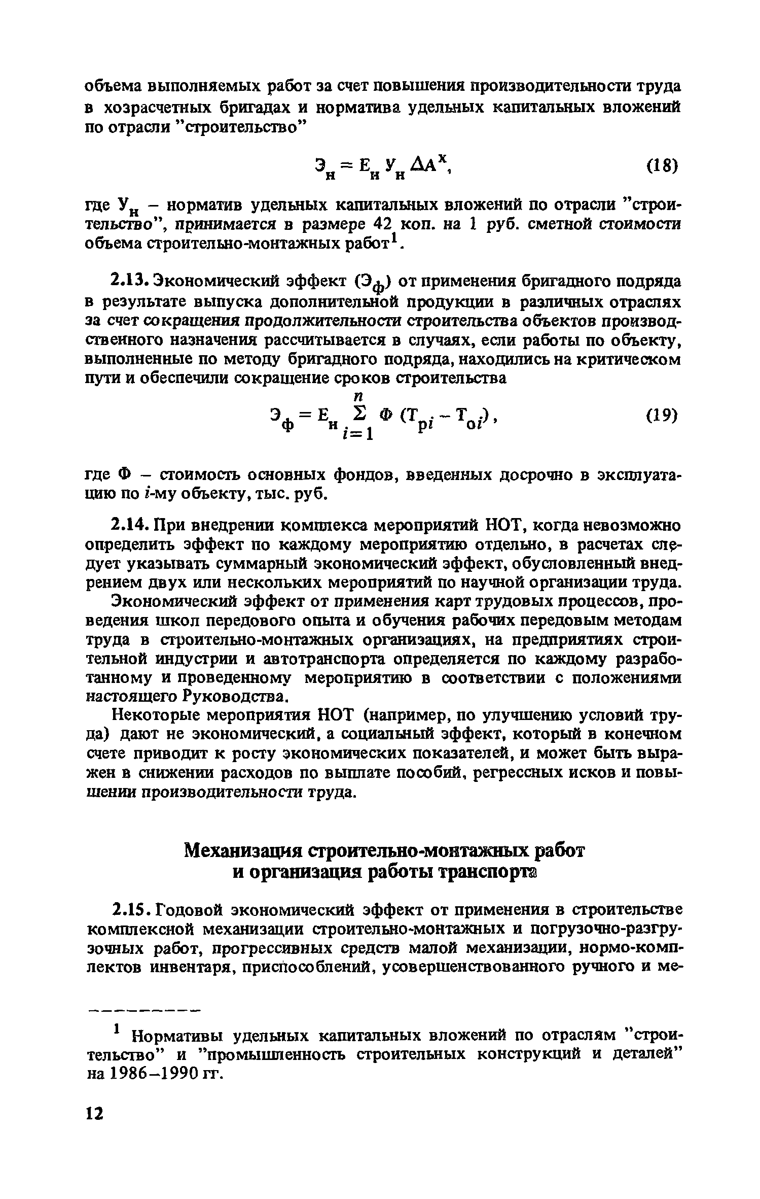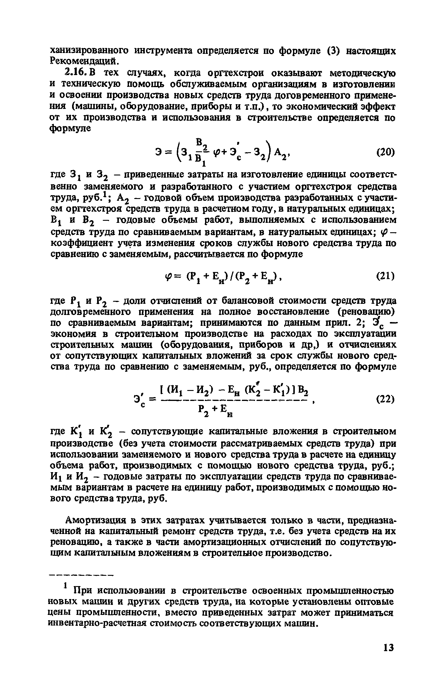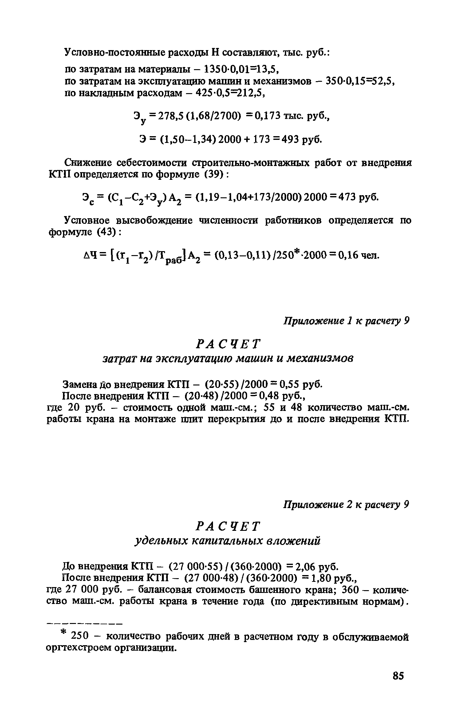 Рекомендации по определению экономической эффективности работ, выполняемых проектно-технологическими трестами (институтами) "Оргтехстрой" ("Оргстрой")| Статус: | не действует | | Название рус.: | Рекомендации по определению экономической эффективности работ, выполняемых проектно-технологическими трестами (институтами) "Оргтехстрой" ("Оргстрой") | | Дата добавления в базу: | 01.09.2013 | | Дата актуализации: | 01.01.2021 | | Область применения: | Документ содержит методы и порядок расчета показателей для оценки экономической эффективности разработок оргтехстроев, внедряемых в строительных организациях и на промышленных предприятиях строительной индустрии с их участием. Изложена методика определения показателей: экономии от снижения себестоимости строительно-монтажных работ (продукции промышленных предприятий стройиндустрии), экономии материальных затрат и относительного высвобождения работников в обслуживаемых организациях и предприятиях в результате внедрения разработок оргстроев. Приводятся примеры расчетов экономической эффективности от внедрения отдельных проектно-технологических работ | | Оглавление: | Раздел 1. Общие положения Раздел 2. Методы определения годового экономического эффекта по отдельным направлениям работы оргтехстроев Раздел 3. Определение показателей экономии от снижения себестоимости строительно-монтажных работ (продукции промышленных предприятий стройиндустрии), экономии материальных затрат и относительного высвобождения работников в обслуживаемых организациях и на предприятиях в результате внедрения разработок оргтехстроев Приложение 1. Коэффициенты приведения по фактору времени Приложение 2. Коэффициенты реновации Приложение 3. Определение основных показателей, используемых в расчетах экономической эффективности Приложение 4. Примеры расчетов Пример 1. Расчет экономической эффективности внедрения ПНР на строительство жилого дома серии “Мобиль” Пример 2. Расчет экономической эффективности применения ПНР, предусматривающего внедрение поточно-совмещенного метода при монтаже технологического оборудования Пример 3. Расчет экономической эффективности разработки НОС с применением узлового метода проектирования, подготовки, организации и управления строительством Пример 4. Расчет экономической эффективности внедрения нового технологического процесса - электротермообработки бетона стыков сборных железобетонных конструкций Пример 5. Расчет экономической эффективности применения технологии возведения монолитных ядер жесткости с применением циклично-переставной опалубки Пример 6. Расчет экономической эффективности внедрения новой технологии сварочных работ Пример 7. Расчет экономического эффекта применения прогрессивного метода организации строительного производства - контейнерной доставки раскроенного оконного стекла с базы комплектации к объекту строительства Пример 8. Расчет экономической эффективности комплектных поставок основных строительных материалов на основе УНТД при строительстве объектов сельскохозяйственного назначения Пример 9. Расчет экономической эффективности внедрения карты трудового процесса Пример 10. Расчет экономической эффективности применения бригадного подряда в строительной организации Пример 11. Расчет экономической эффективности примене