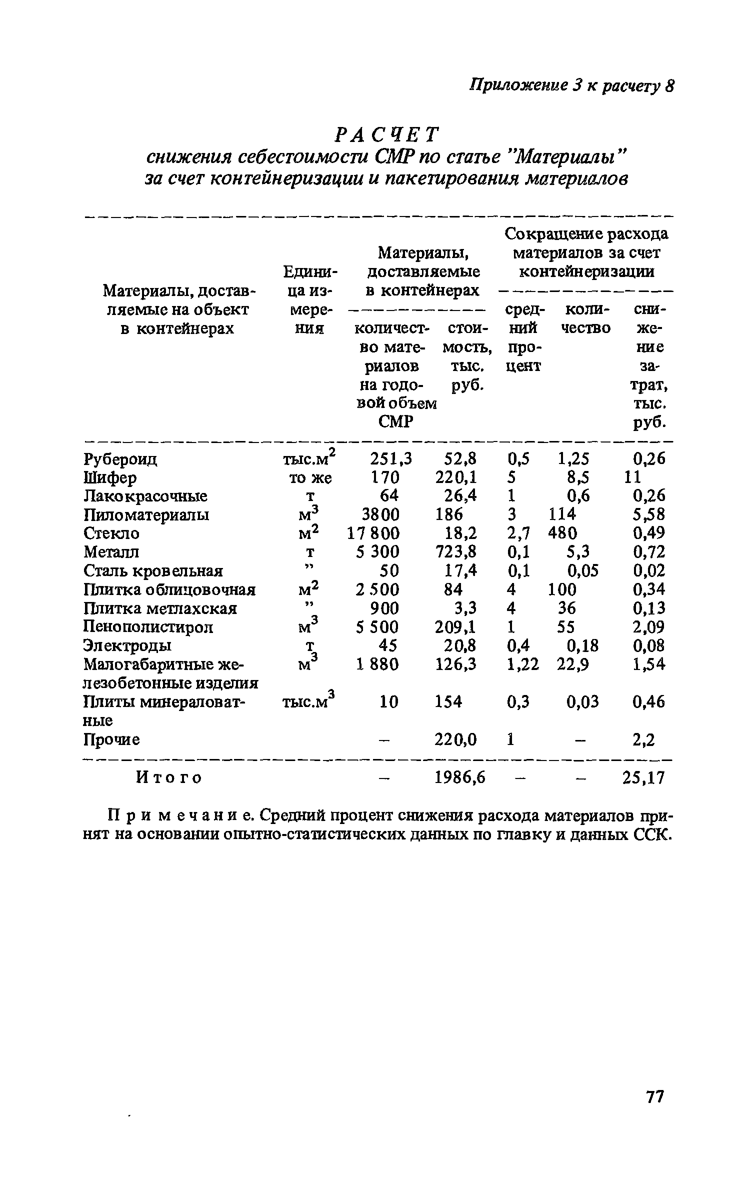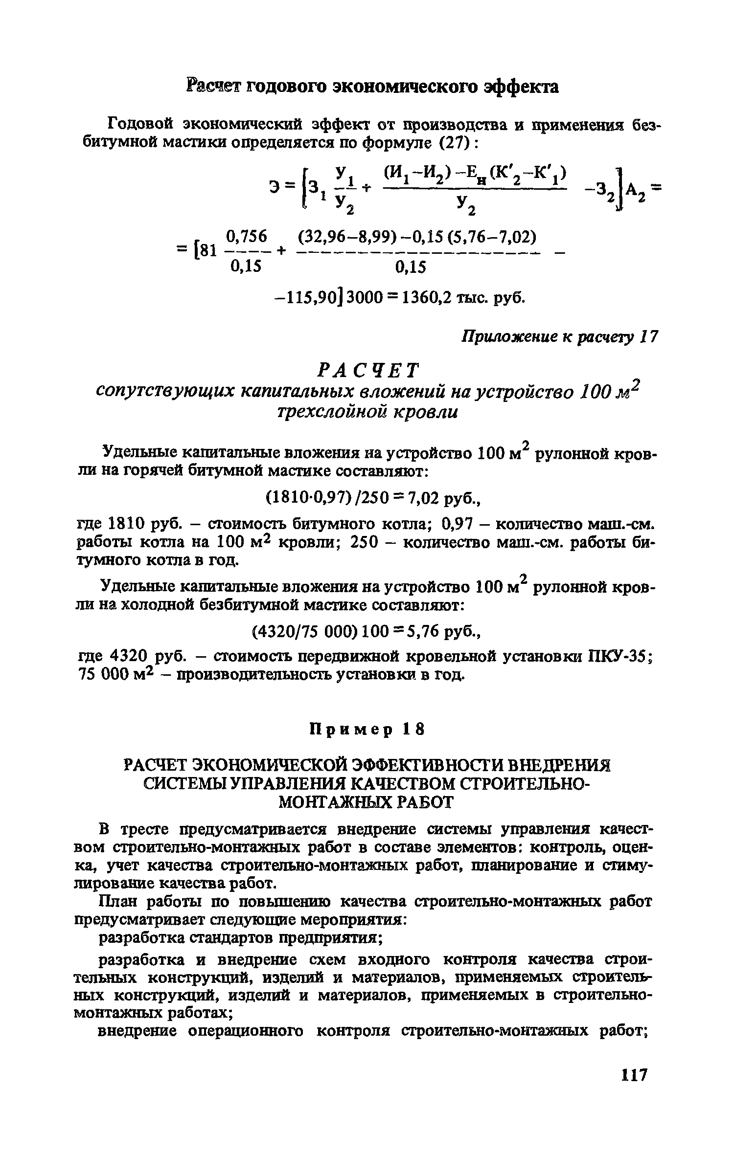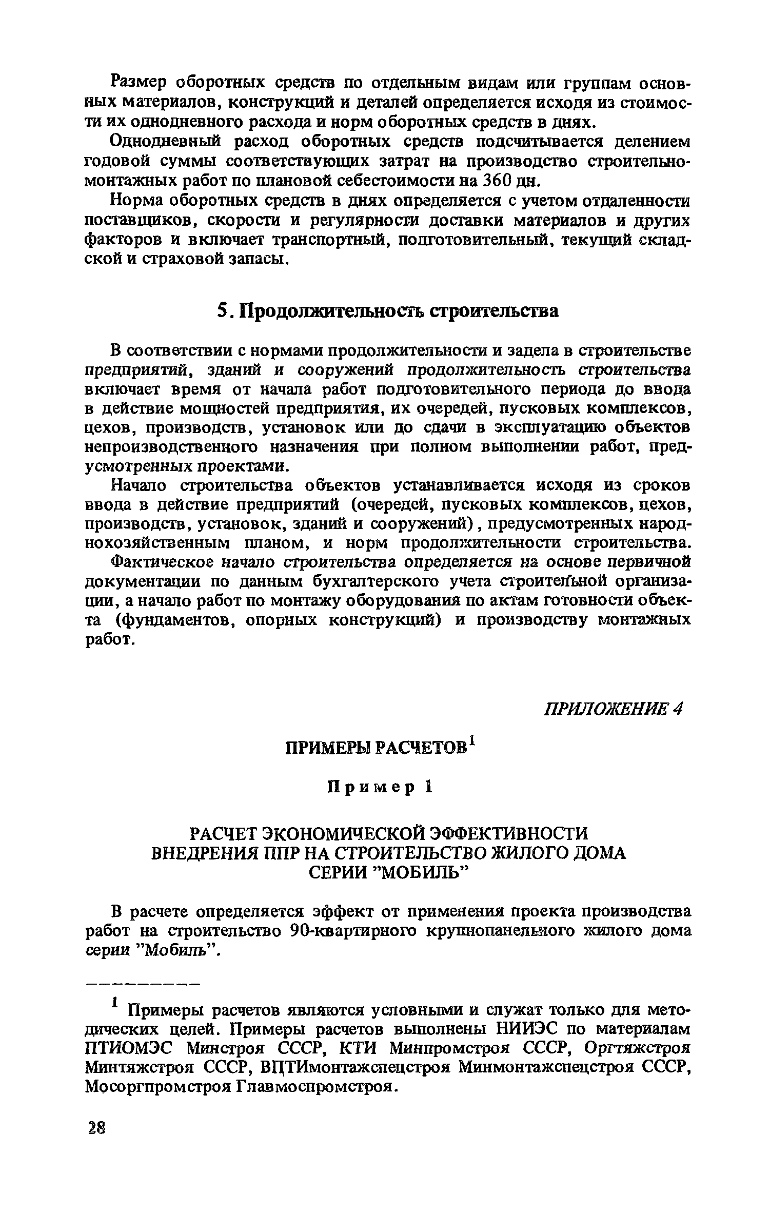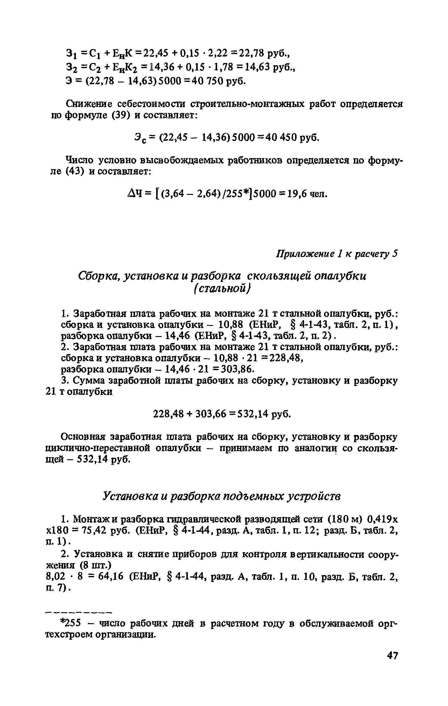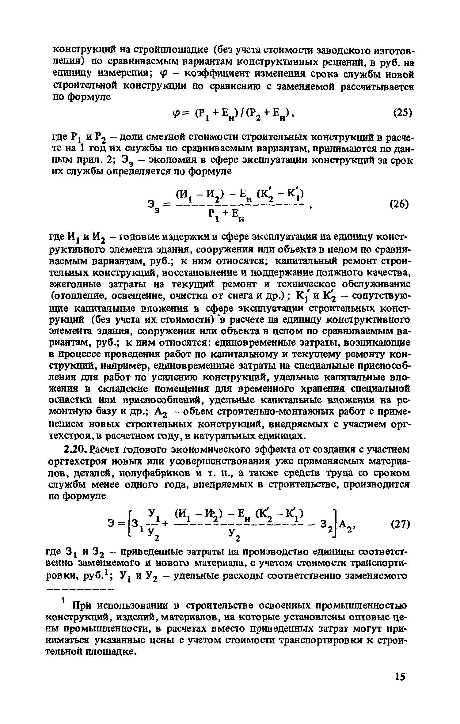 Рекомендации по определению экономической эффективности работ, выполняемых проектно-технологическими трестами (институтами) "Оргтехстрой" ("Оргстрой")| Статус: | не действует | | Название рус.: | Рекомендации по определению экономической эффективности работ, выполняемых проектно-технологическими трестами (институтами) "Оргтехстрой" ("Оргстрой") | | Дата добавления в базу: | 01.09.2013 | | Дата актуализации: | 01.01.2021 | | Область применения: | Документ содержит методы и порядок расчета показателей для оценки экономической эффективности разработок оргтехстроев, внедряемых в строительных организациях и на промышленных предприятиях строительной индустрии с их участием. Изложена методика определения показателей: экономии от снижения себестоимости строительно-монтажных работ (продукции промышленных предприятий стройиндустрии), экономии материальных затрат и относительного высвобождения работников в обслуживаемых организациях и предприятиях в результате внедрения разработок оргстроев. Приводятся примеры расчетов экономической эффективности от внедрения отдельных проектно-технологических работ | | Оглавление: | Раздел 1. Общие положения Раздел 2. Методы определения годового экономического эффекта по отдельным направлениям работы оргтехстроев Раздел 3. Определение показателей экономии от снижения себестоимости строительно-монтажных работ (продукции промышленных предприятий стройиндустрии), экономии материальных затрат и относительного высвобождения работников в обслуживаемых организациях и на предприятиях в результате внедрения разработок оргтехстроев Приложение 1. Коэффициенты приведения по фактору времени Приложение 2. Коэффициенты реновации Приложение 3. Определение основных показателей, используемых в расчетах экономической эффективности Приложение 4. Примеры расчетов Пример 1. Расчет экономической эффективности внедрения ПНР на строительство жилого дома серии “Мобиль” Пример 2. Расчет экономической эффективности применения ПНР, предусматривающего внедрение поточно-совмещенного метода при монтаже технологического оборудования Пример 3. Расчет экономической эффективности разработки НОС с применением узлового метода проектирования, подготовки, организации и управления строительством Пример 4. Расчет экономической эффективности внедрения нового технологического процесса - электротермообработки бетона стыков сборных железобетонных конструкций Пример 5. Расчет экономической эффективности применения технологии возведения монолитных ядер жесткости с применением циклично-переставной опалубки Пример 6. Расчет экономической эффективности внедрения новой технологии сварочных работ Пример 7. Расчет экономического эффекта применения прогрессивного метода организации строительного производства - контейнерной доставки раскроенного оконного стекла с базы комплектации к объекту строительства Пример 8. Расчет экономической эффективности комплектных поставок основных строительных материалов на основе УНТД при строительстве объектов сельскохозяйственного назначения Пример 9. Расчет экономической эффективности внедрения карты трудового процесса Пример 10. Расчет экономической эффективности применения бригадного подряда в строительной организации Пример 11. Расчет экономической эффективности примене