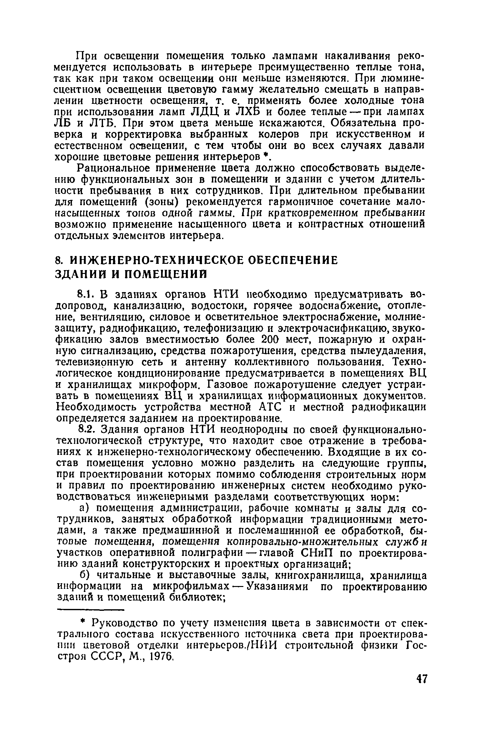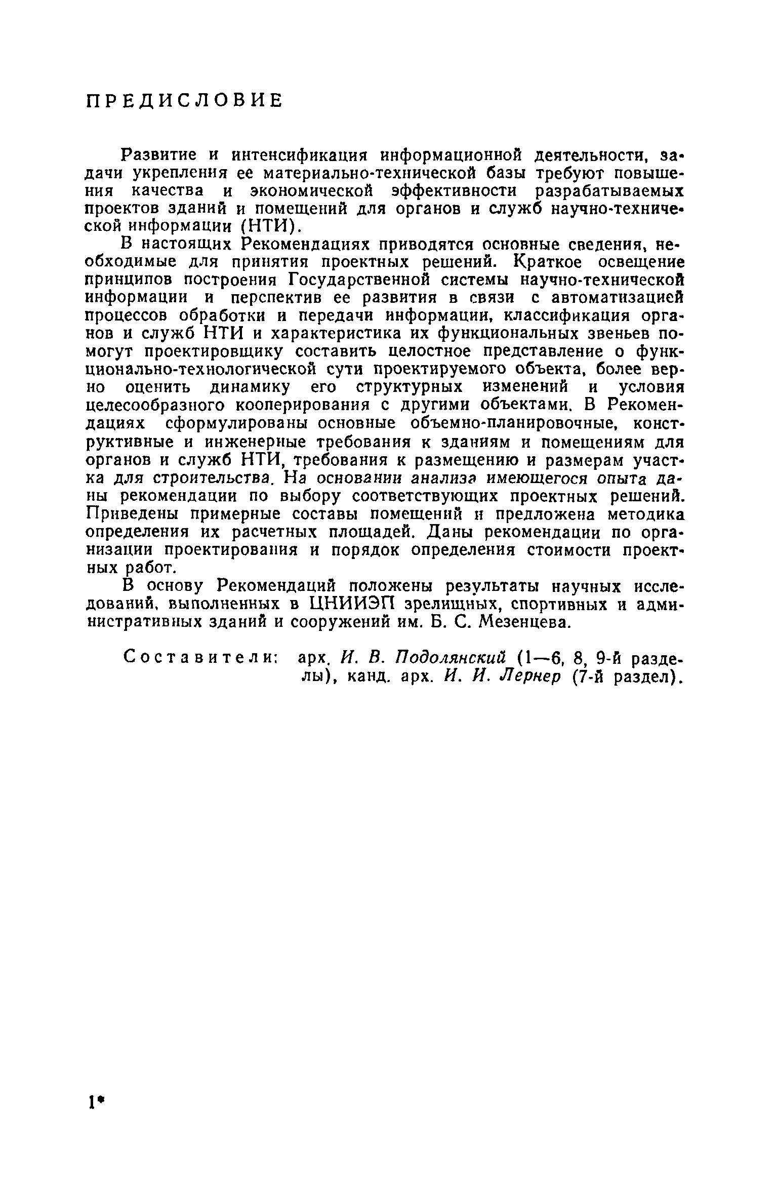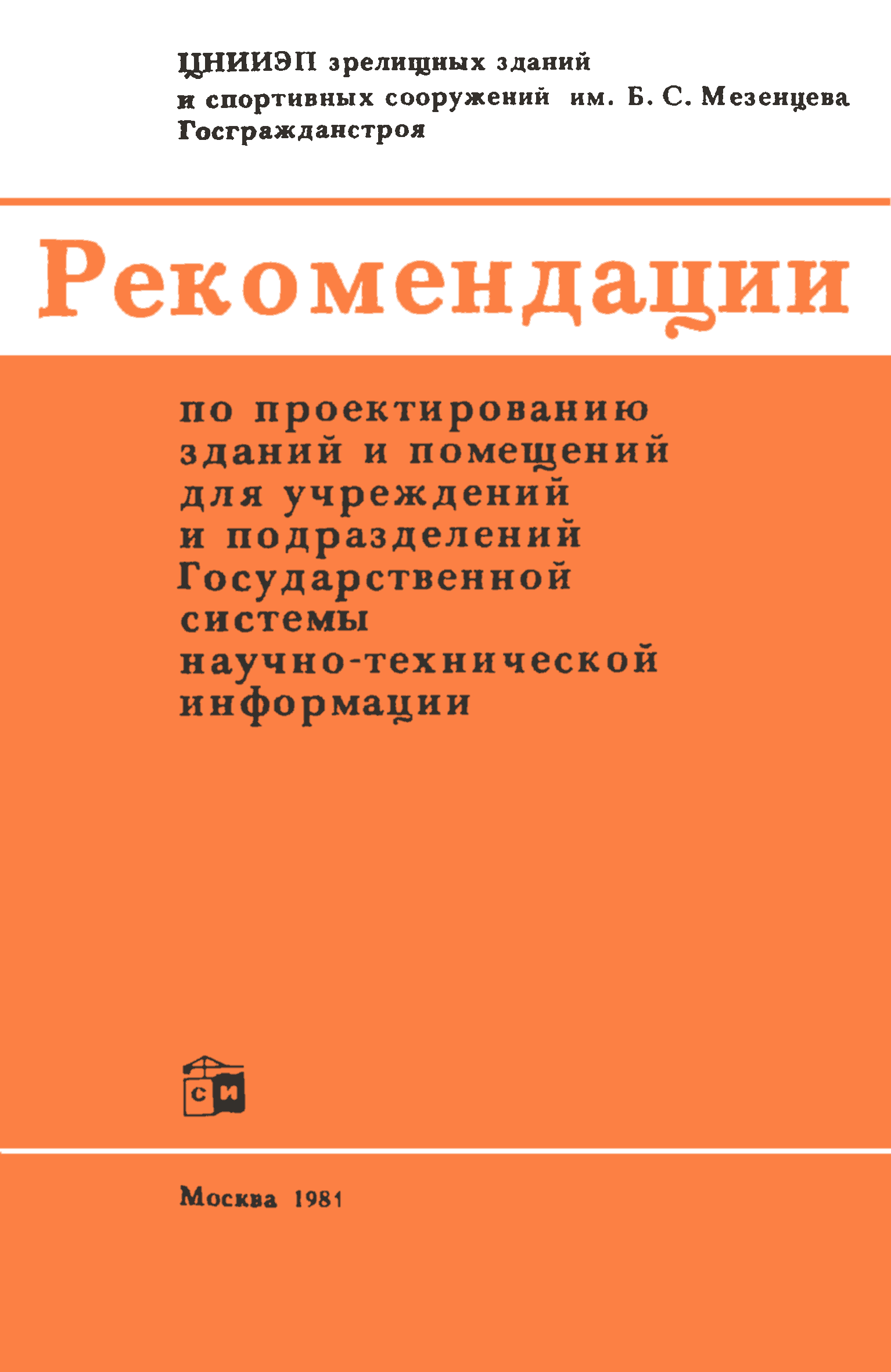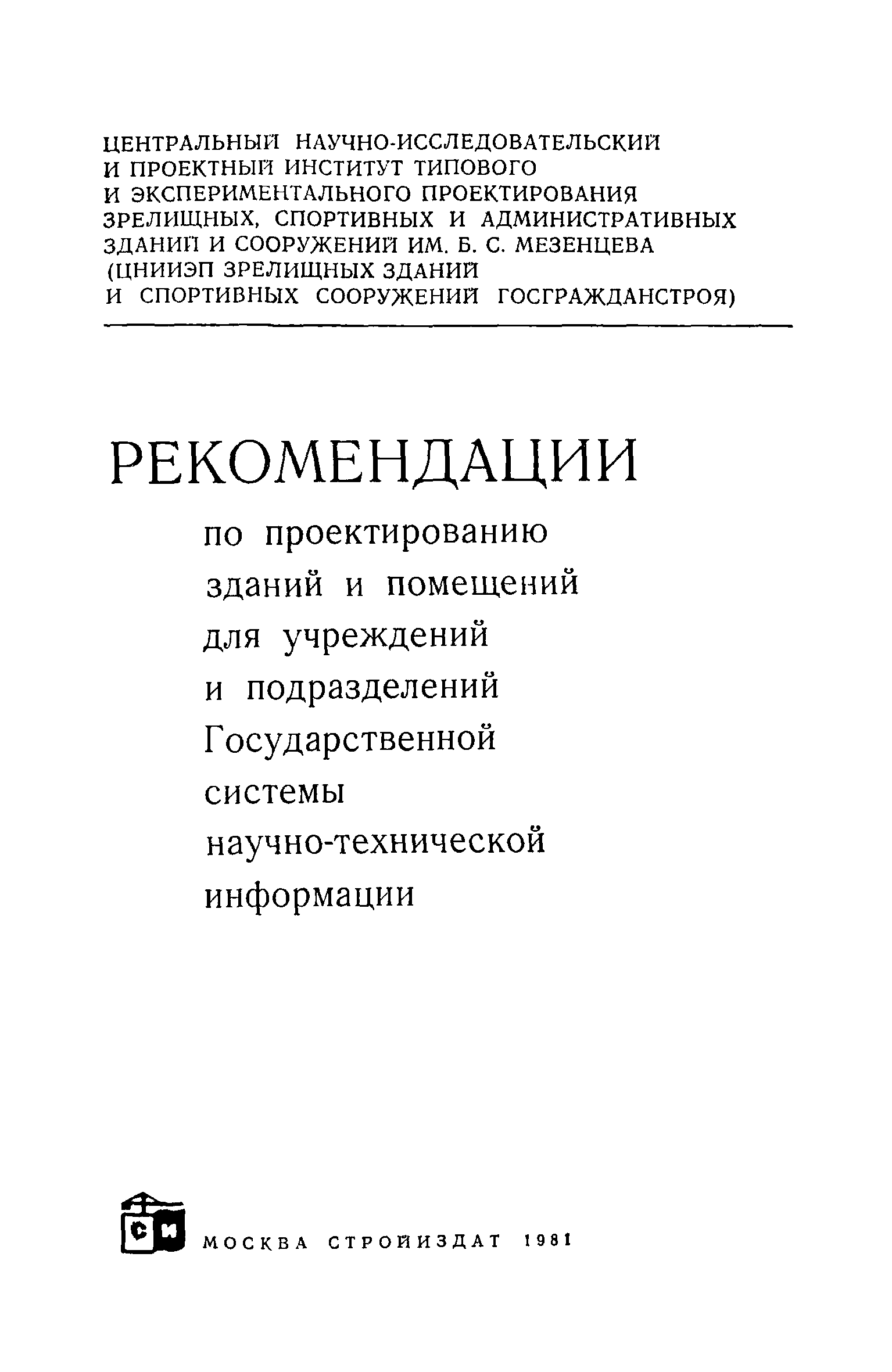| Название рус.: | Рекомендации по проектированию зданий и помещений для учреждений и подразделений Государственной системы научно-технической информации |