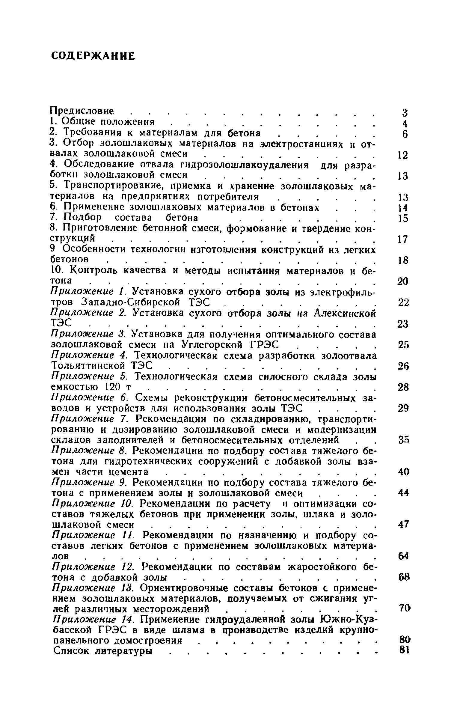 | Оглавление: | Предисловие 1. Общие положения 2. Требования к материалам для бетона 3. Отбор золошлаковых материалов на электростанциях и отвалах золошлаковой смеси 4. Обследование отвала гидрозолошлакоудаления для разработки золошлаковой смеси 5. Транспортирование, приемка и хранение золошлаковых материалов на предприятиях потребителя 6. Применение золошлаковых материалов в бетонах 7. Подбор состава бетона 8. Приготовление бетонной смеси, формование и твердение конструкций 9 Особенности технологии изготовления конструкций из легких бетонов 10. Контроль качества и методы испытания материалов и бетона Приложение 1. Установка сухого отбора золы из электрофильтров Западно-Сибирской ТЭС Приложение 2. Установка сухого отбора золы на Алексинской ТЭС Приложение 3. Установка для получения оптимального состава золошлаковой смеси на Углегорской ГРЭС Приложение 4. Технологическая схема разработки золоотвала Тольяттинской ТЭС Приложение 5. Технологическая схема силосного склада золы емкостью 120 т Приложение 6. Схемы реконструкции бетоносмесительных заводов и устройств для использования золы ТЭС Приложение 7. Рекомендации по складированию, транспортированию и дозированию золошлаковой смеси и модернизации складов заполнителей и бетоносмесительных отделений Приложение 8. Рекомендации по подбору состава тяжелого бетона для гидротехнических сооружений с добавкой золы взамен части цемента Приложение 9. Рекомендации по подбору состава тяжелого бетона с применением золы и золошлаковой смеси Приложение 10. Рекомендации по расчету и оптимизации составов тяжелых бетонов при применении золы, шлака и золошлаковой смеси Приложение 11. Рекомендации по назначению и подбору составов легких бетонов с применением золошлаковых материалов Приложение 12. Рекомендации по составам жаростойкого бетона с добавкой золы Приложение 13. Ориентировочные составы бетонов с применением золошлаковых материалов, получаемых от сжигания улей различных месторождений Приложение 14. Применение гидроудаленной золы Южно-Кузбасской ГРЭС в виде шлама в производстве изделий крупнопанельного домостроения Список литературы |