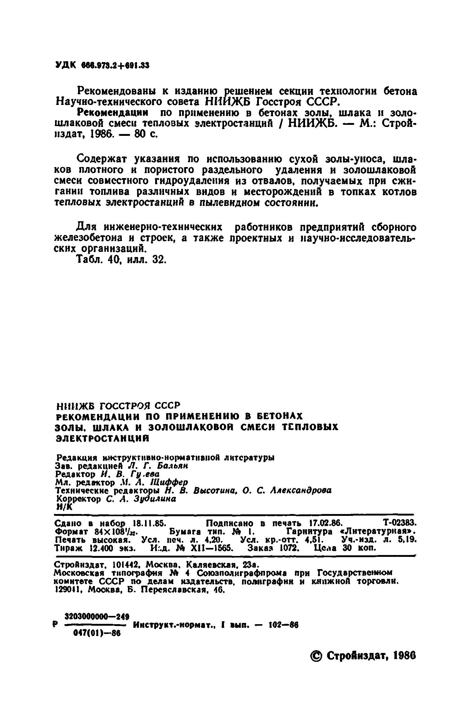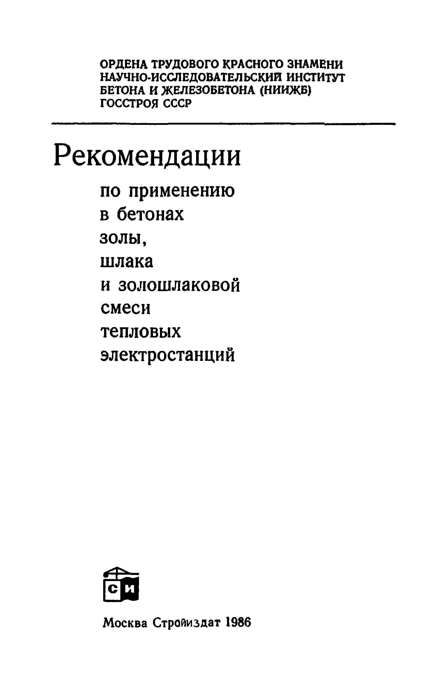 | Название рус.: | Рекомендации по применению в бетонах золы, шлака и золошлаковой смеси тепловых электростанций |