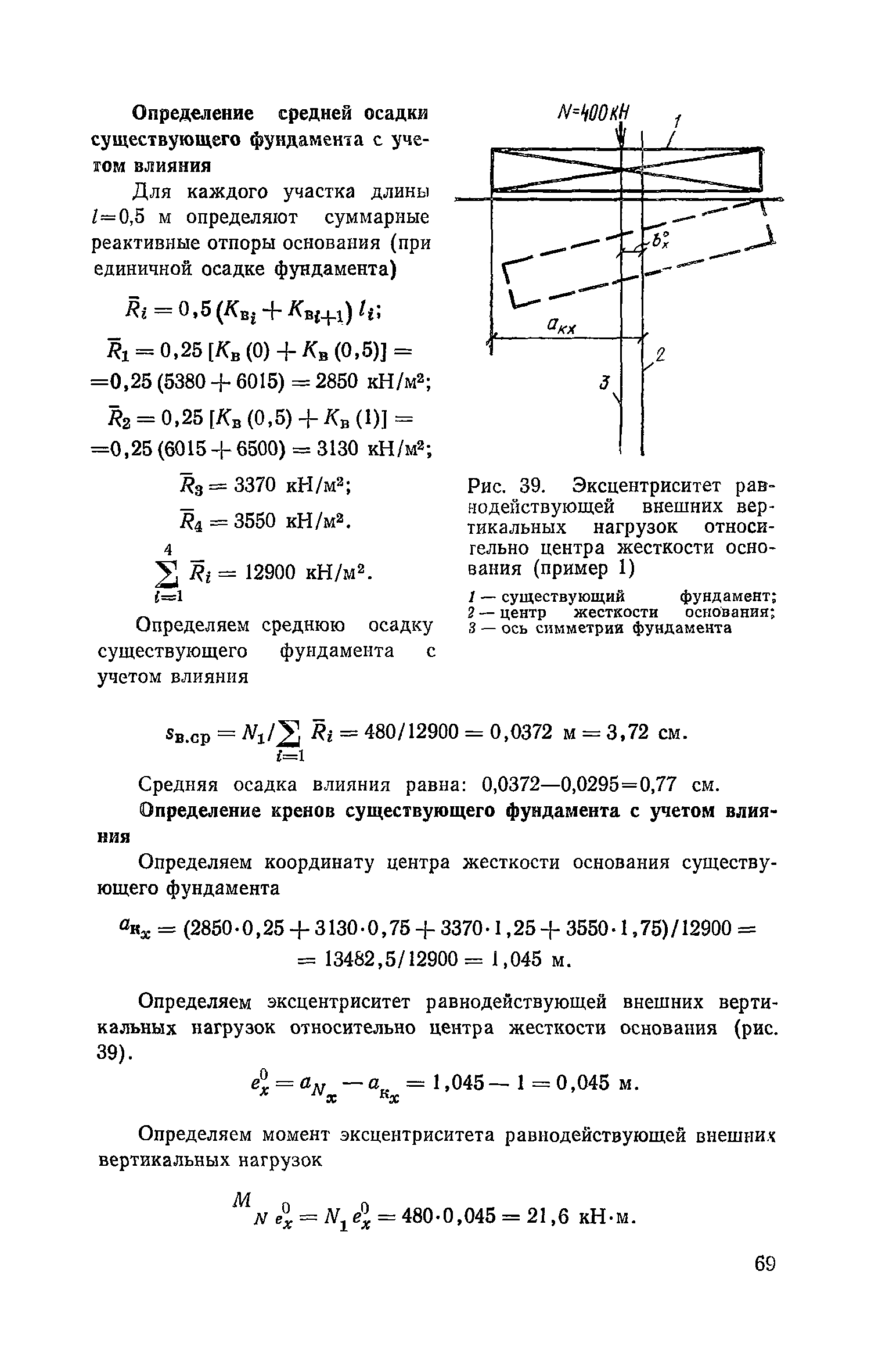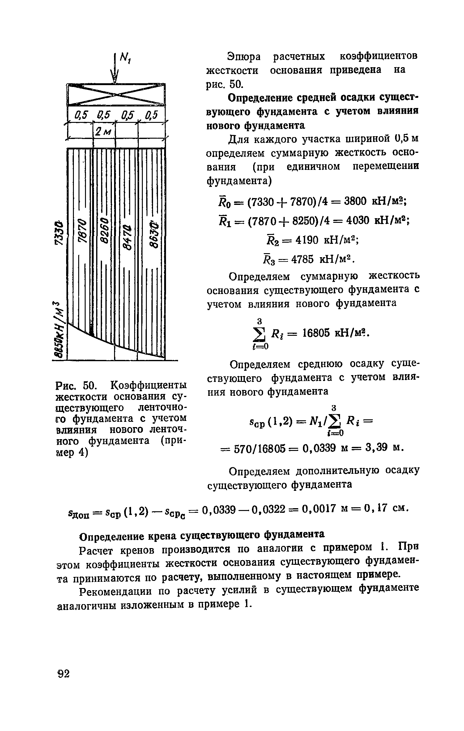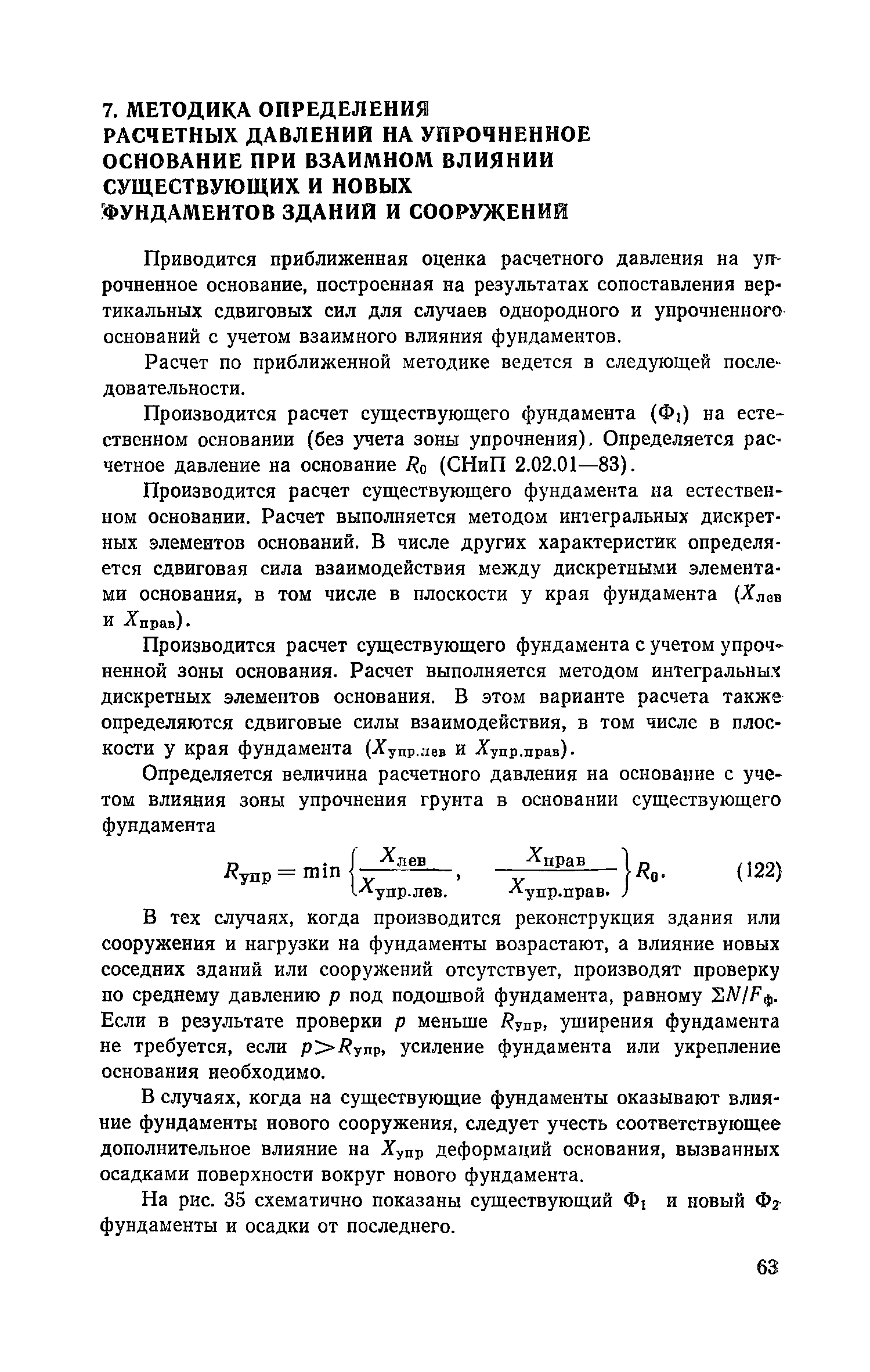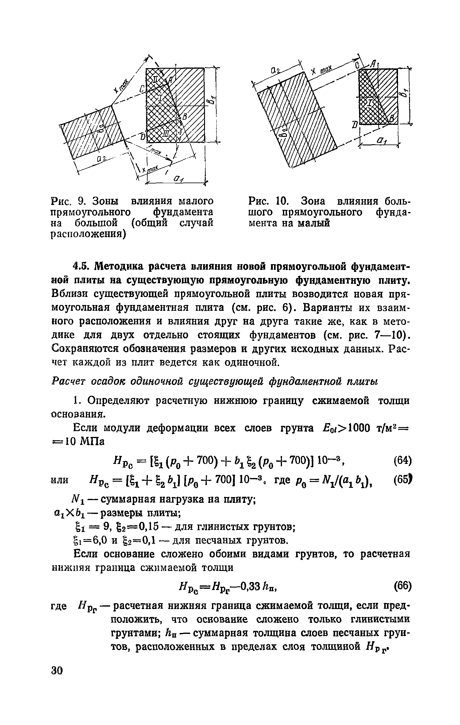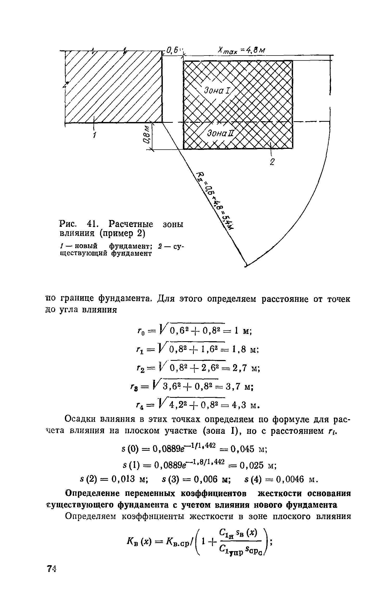 | Оглавление: | 1. Основные положения рекомендаций по методике расчета 2. Типы существующих и новых фундаментов и их сочетания 3. Особенности инженерно-геологических изысканий при проектировании реконструкций промышленных зданий с целью расчета влияния фундаментов вновь возводимых зданий на существующие 4. Методики расчета переменных коэффициентов жесткости, осадок и кренов существующих фундаментов от влияния фундаментов вновь возводимых зданий 5. Учет различной глубины заложения при расчете влияния нового на существующий фундамент 6. Методика учета влияния выемки грунта котлована вновь возводимых сооружений на фундаменты существующих сооружений 7. Методика определения расчетных давлений на упрочненное основание при взаимном влиянии существующих и новых фундаментов зданий и сооружений Приложение 1. Примеры расчета Пример 1. Расчет влияния нового ленточного фундамента на существующий ленточный фундамент Пример 2. Расчет влияния нового прямоугольного фундамента на существующий прямоугольный; несоосное расположение Пример 3. Расчет влияния новой фундаментной плиты на существующую систему прямоугольных фундаментов каркасного здания Пример 4. Расчет влияния нового ленточного фундамента на существующий заглубленный ленточный фундамент Приложение 2. Таблицы коэффициента Кт для расчета осадок поверхности дискретного элемента основания от распределенной трапециевидной нагрузки Приложение 3. Величины структурной прочности глинистых грунтов в зависимости от коэффициента пористости и консистенции Приложение 4. Рекомендации по определению величин коэффициентов |