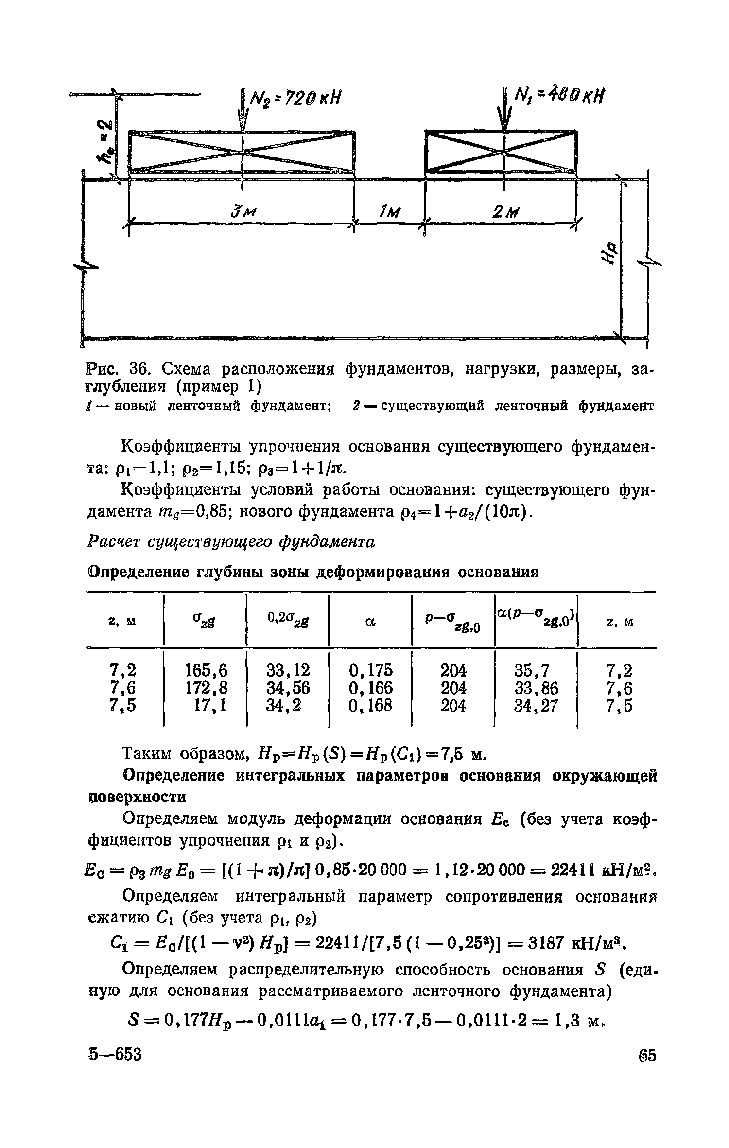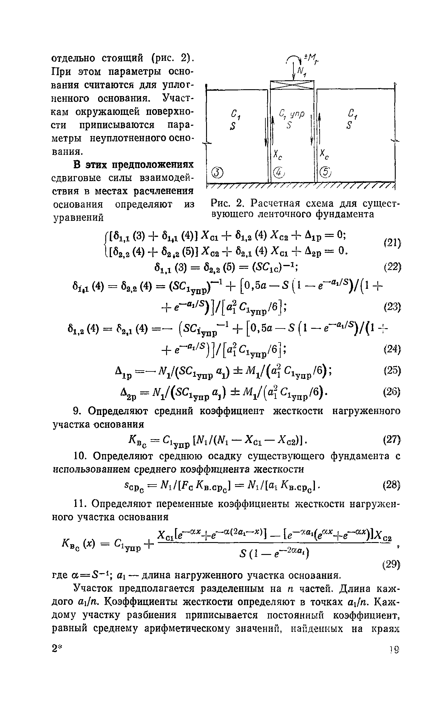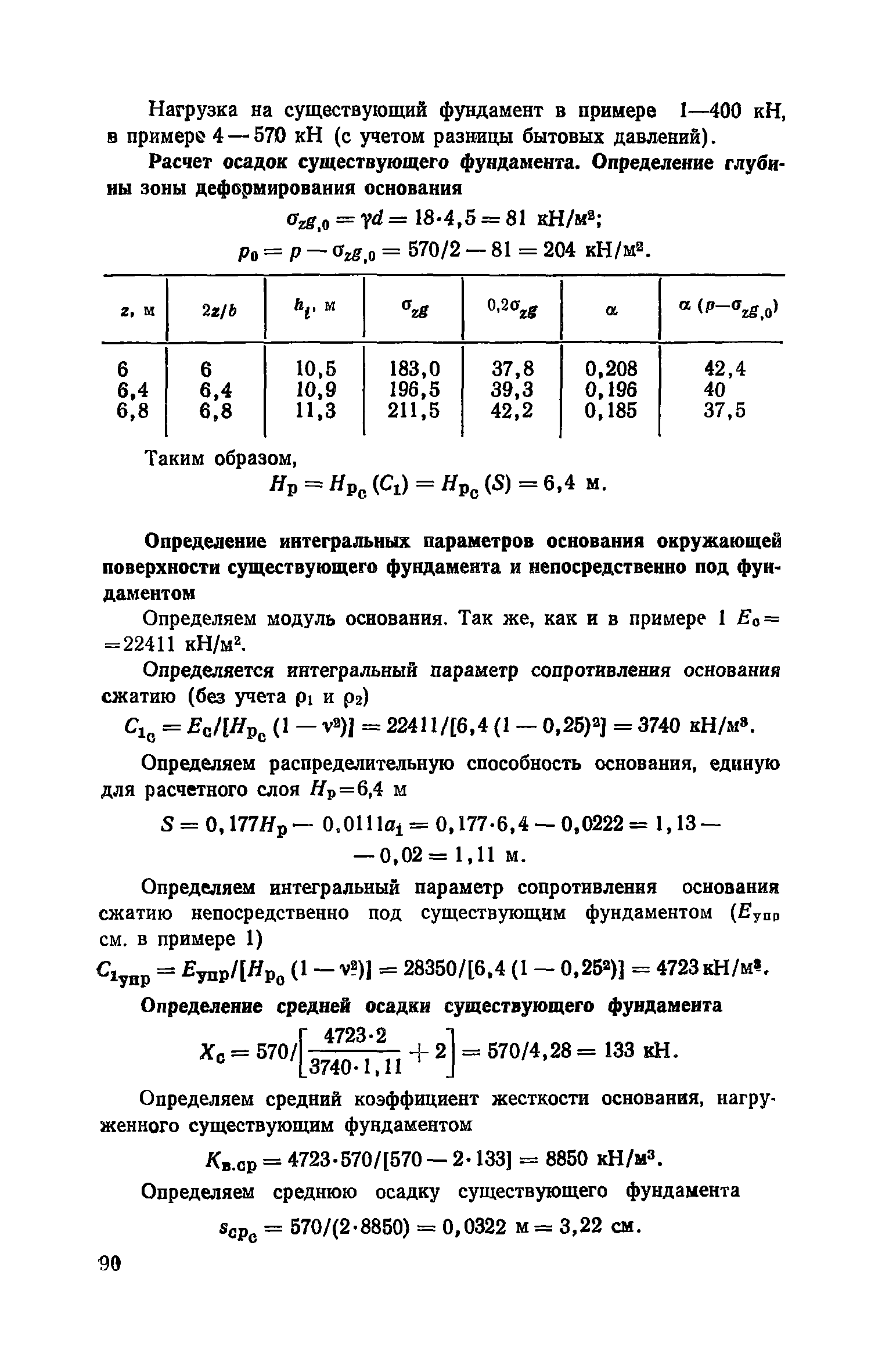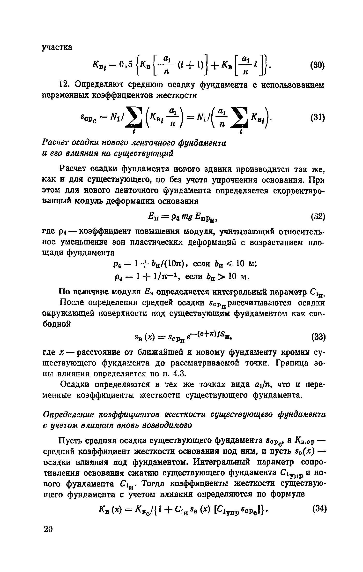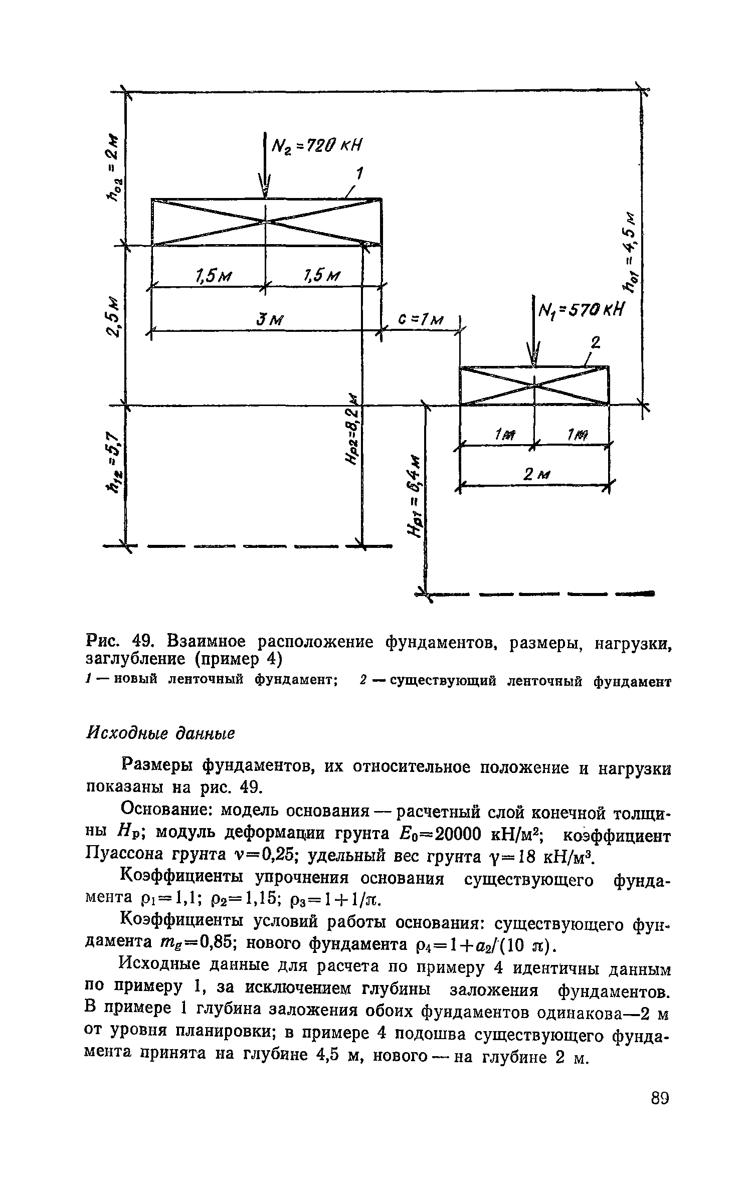 | Оглавление: | 1. Основные положения рекомендаций по методике расчета 2. Типы существующих и новых фундаментов и их сочетания 3. Особенности инженерно-геологических изысканий при проектировании реконструкций промышленных зданий с целью расчета влияния фундаментов вновь возводимых зданий на существующие 4. Методики расчета переменных коэффициентов жесткости, осадок и кренов существующих фундаментов от влияния фундаментов вновь возводимых зданий 5. Учет различной глубины заложения при расчете влияния нового на существующий фундамент 6. Методика учета влияния выемки грунта котлована вновь возводимых сооружений на фундаменты существующих сооружений 7. Методика определения расчетных давлений на упрочненное основание при взаимном влиянии существующих и новых фундаментов зданий и сооружений Приложение 1. Примеры расчета Пример 1. Расчет влияния нового ленточного фундамента на существующий ленточный фундамент Пример 2. Расчет влияния нового прямоугольного фундамента на существующий прямоугольный; несоосное расположение Пример 3. Расчет влияния новой фундаментной плиты на существующую систему прямоугольных фундаментов каркасного здания Пример 4. Расчет влияния нового ленточного фундамента на существующий заглубленный ленточный фундамент Приложение 2. Таблицы коэффициента Кт для расчета осадок поверхности дискретного элемента основания от распределенной трапециевидной нагрузки Приложение 3. Величины структурной прочности глинистых грунтов в зависимости от коэффициента пористости и консистенции Приложение 4. Рекомендации по определению величин коэффициентов |