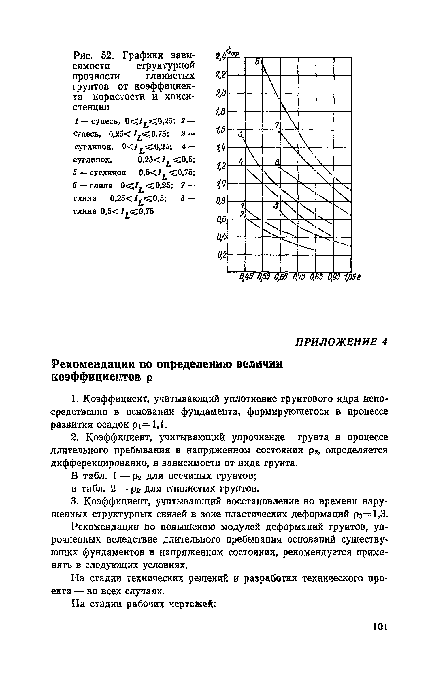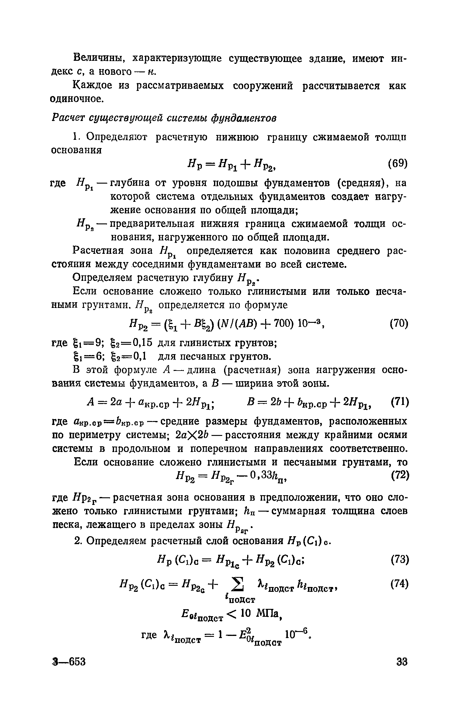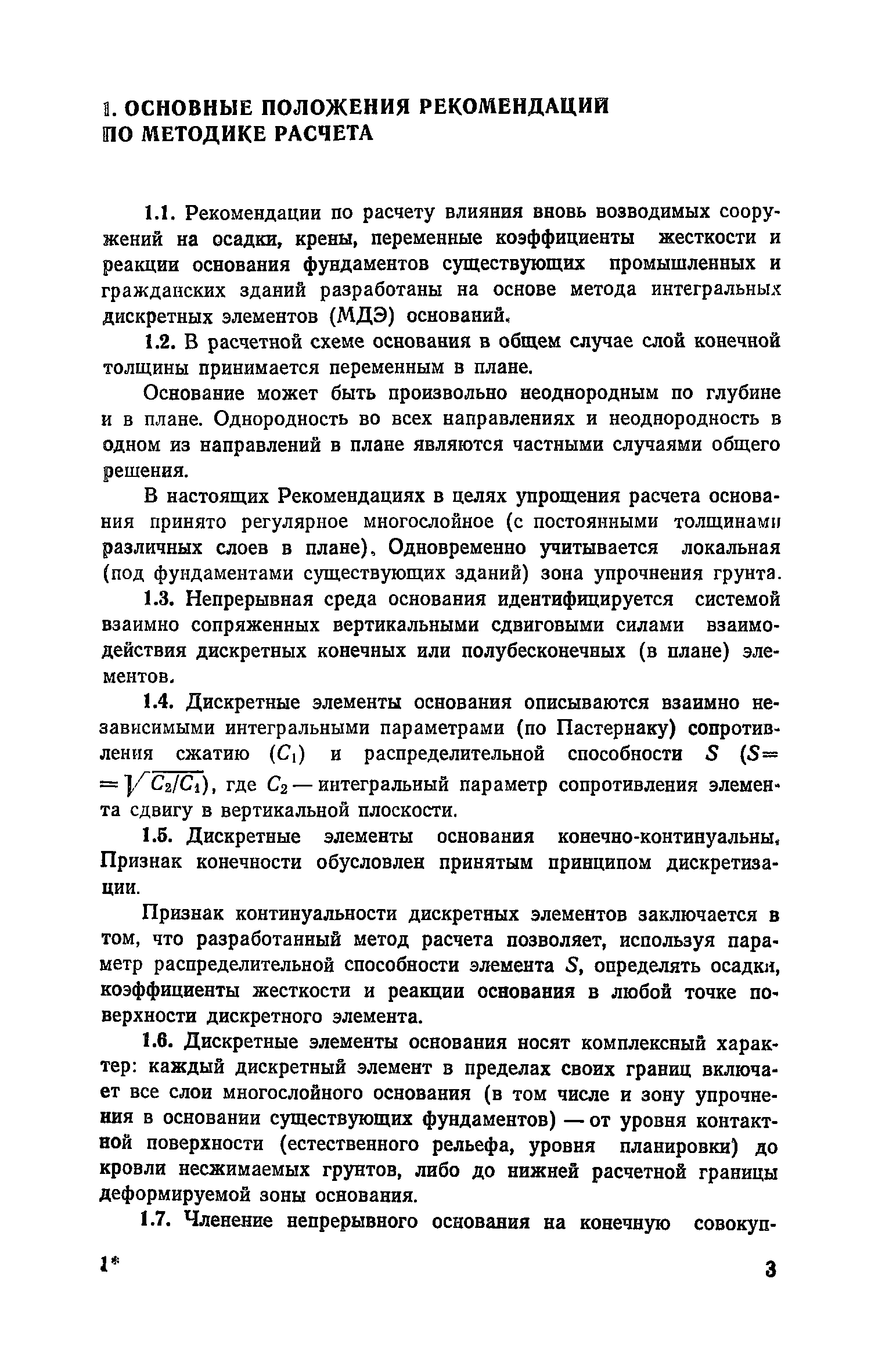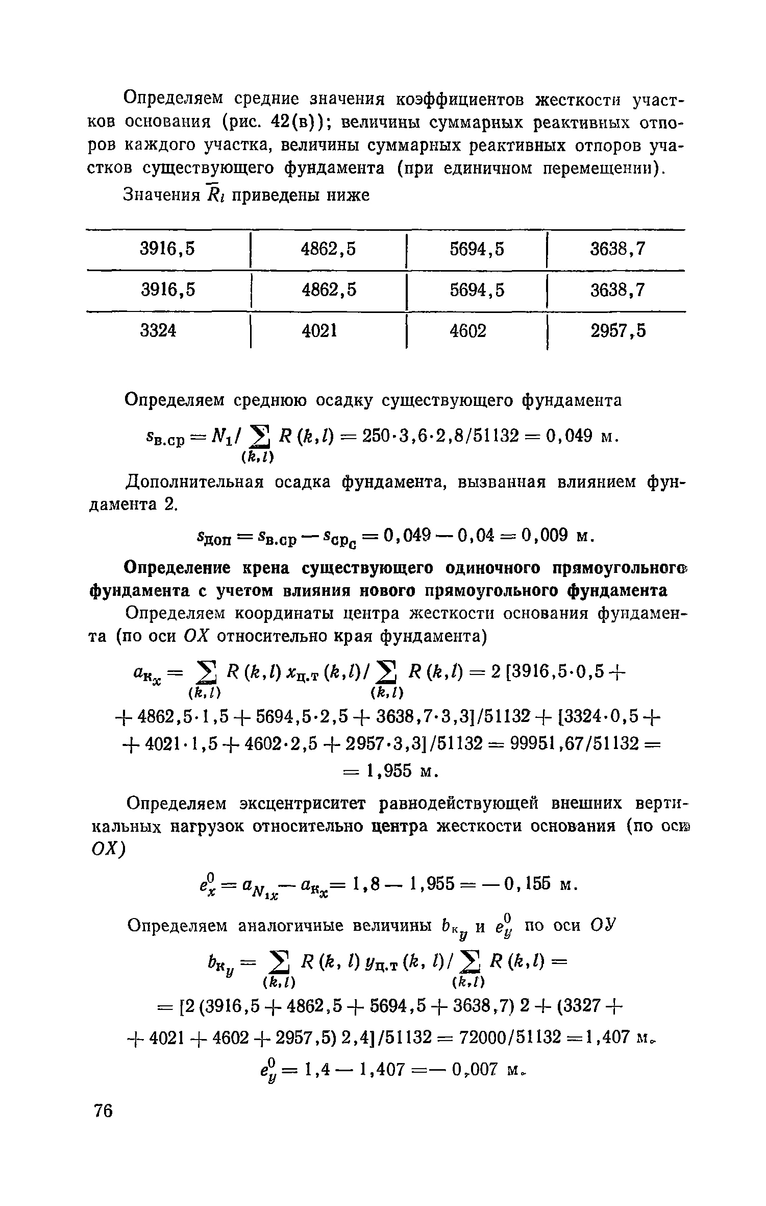 | Оглавление: | 1. Основные положения рекомендаций по методике расчета 2. Типы существующих и новых фундаментов и их сочетания 3. Особенности инженерно-геологических изысканий при проектировании реконструкций промышленных зданий с целью расчета влияния фундаментов вновь возводимых зданий на существующие 4. Методики расчета переменных коэффициентов жесткости, осадок и кренов существующих фундаментов от влияния фундаментов вновь возводимых зданий 5. Учет различной глубины заложения при расчете влияния нового на существующий фундамент 6. Методика учета влияния выемки грунта котлована вновь возводимых сооружений на фундаменты существующих сооружений 7. Методика определения расчетных давлений на упрочненное основание при взаимном влиянии существующих и новых фундаментов зданий и сооружений Приложение 1. Примеры расчета Пример 1. Расчет влияния нового ленточного фундамента на существующий ленточный фундамент Пример 2. Расчет влияния нового прямоугольного фундамента на существующий прямоугольный; несоосное расположение Пример 3. Расчет влияния новой фундаментной плиты на существующую систему прямоугольных фундаментов каркасного здания Пример 4. Расчет влияния нового ленточного фундамента на существующий заглубленный ленточный фундамент Приложение 2. Таблицы коэффициента Кт для расчета осадок поверхности дискретного элемента основания от распределенной трапециевидной нагрузки Приложение 3. Величины структурной прочности глинистых грунтов в зависимости от коэффициента пористости и консистенции Приложение 4. Рекомендации по определению величин коэффициентов |