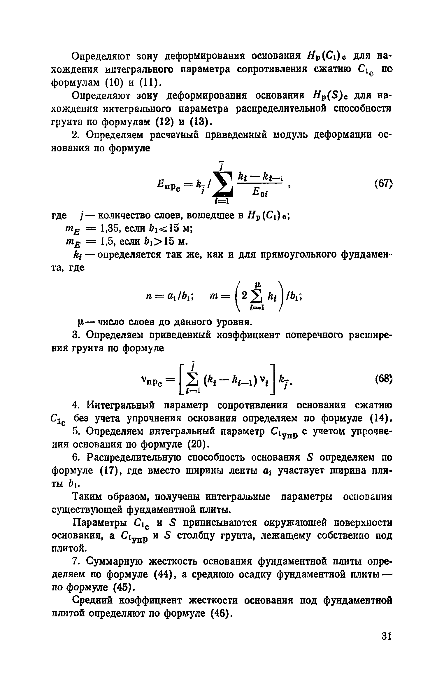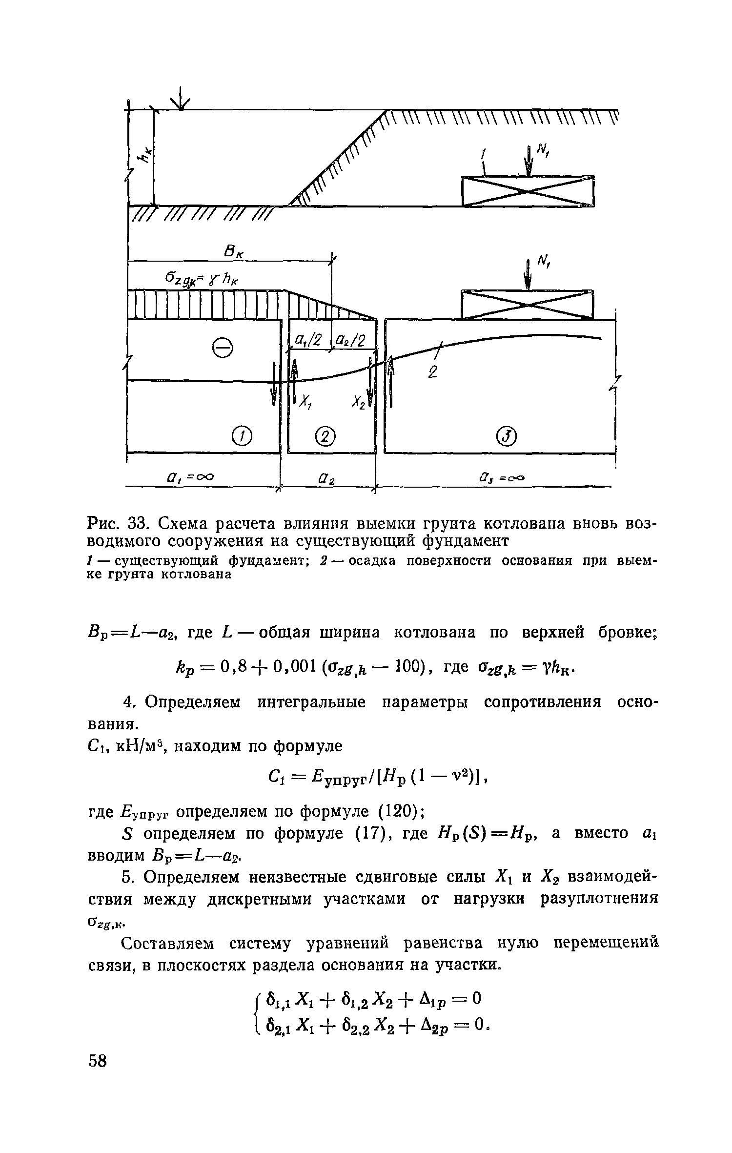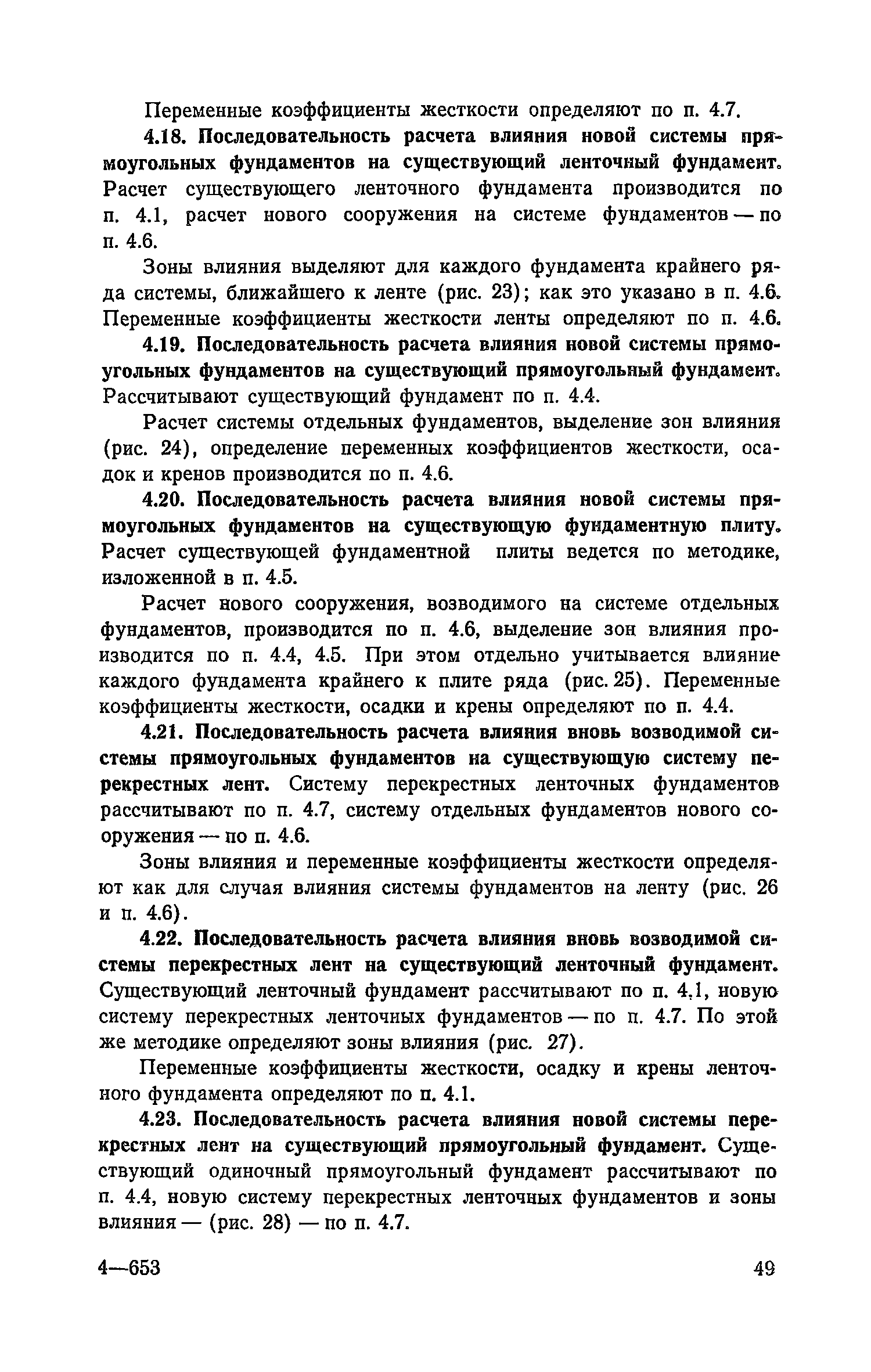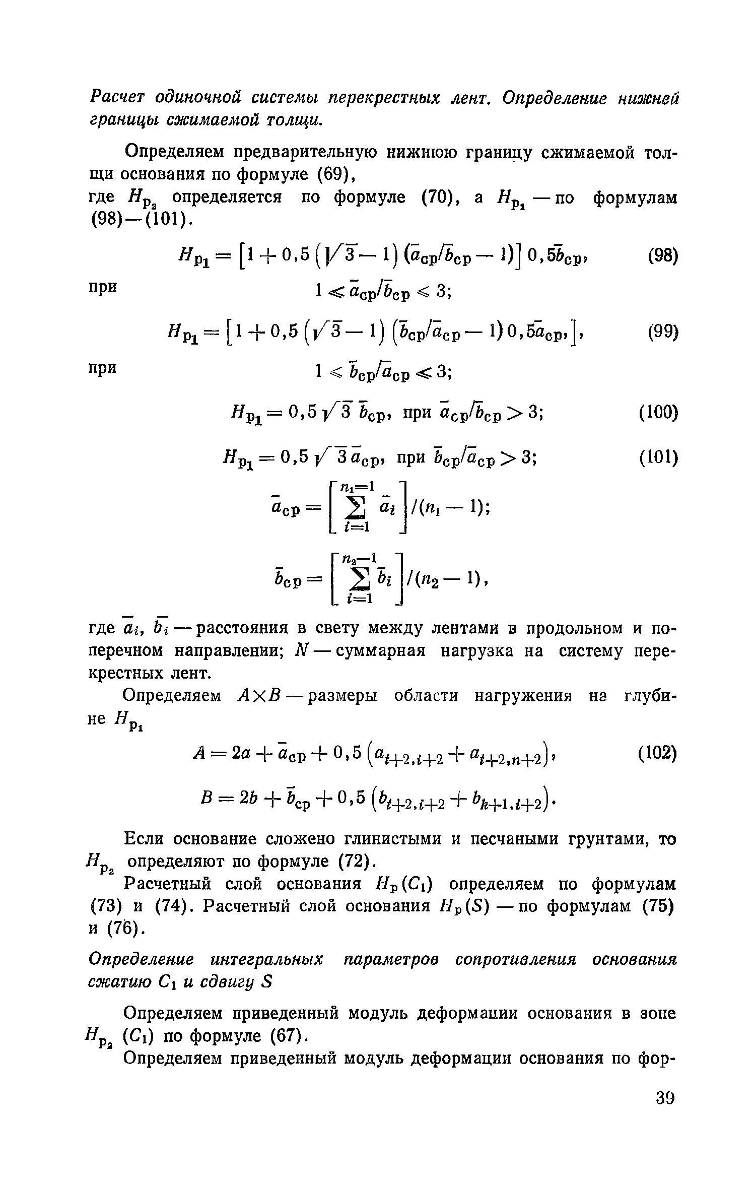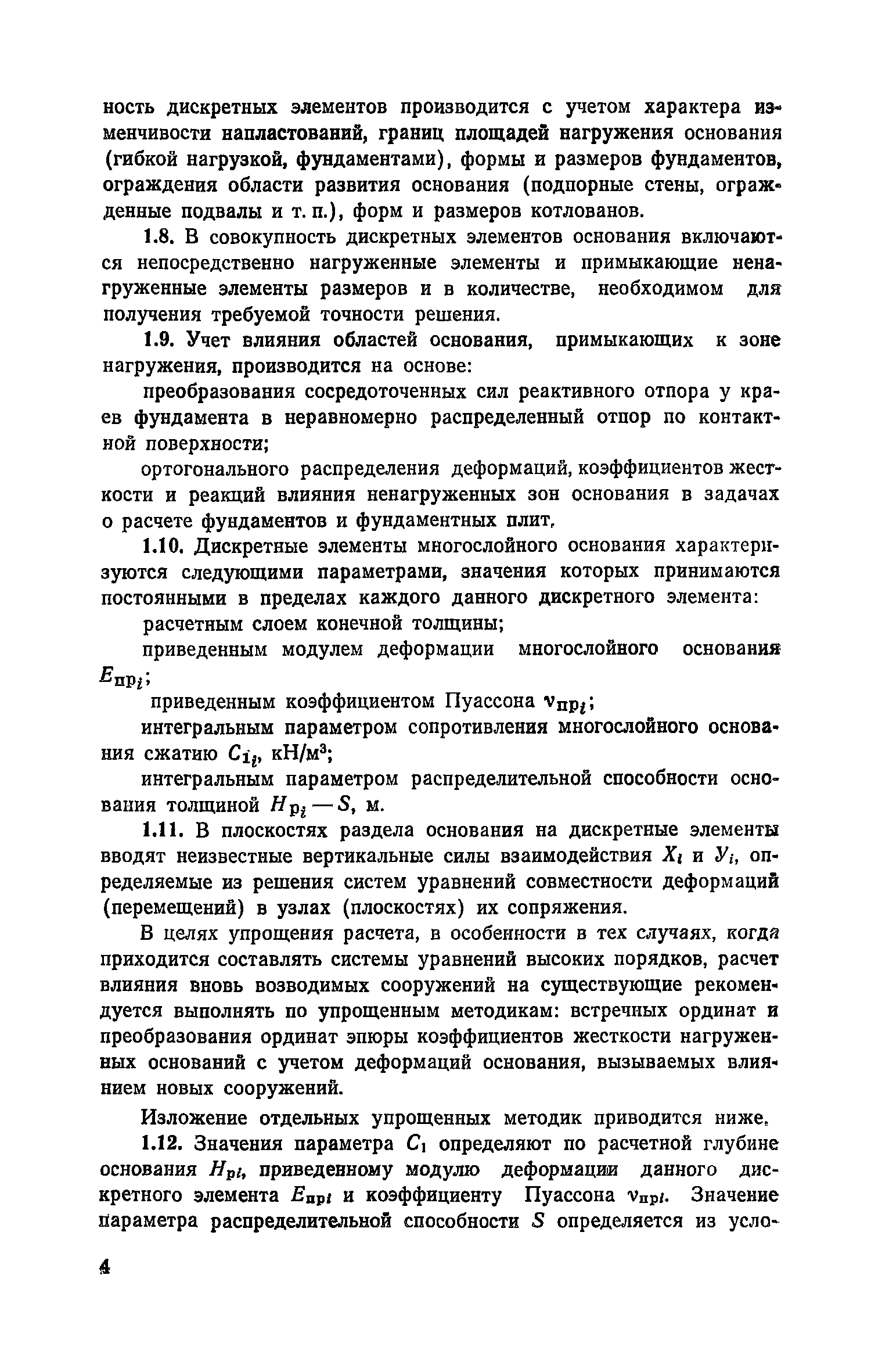 | Оглавление: | 1. Основные положения рекомендаций по методике расчета 2. Типы существующих и новых фундаментов и их сочетания 3. Особенности инженерно-геологических изысканий при проектировании реконструкций промышленных зданий с целью расчета влияния фундаментов вновь возводимых зданий на существующие 4. Методики расчета переменных коэффициентов жесткости, осадок и кренов существующих фундаментов от влияния фундаментов вновь возводимых зданий 5. Учет различной глубины заложения при расчете влияния нового на существующий фундамент 6. Методика учета влияния выемки грунта котлована вновь возводимых сооружений на фундаменты существующих сооружений 7. Методика определения расчетных давлений на упрочненное основание при взаимном влиянии существующих и новых фундаментов зданий и сооружений Приложение 1. Примеры расчета Пример 1. Расчет влияния нового ленточного фундамента на существующий ленточный фундамент Пример 2. Расчет влияния нового прямоугольного фундамента на существующий прямоугольный; несоосное расположение Пример 3. Расчет влияния новой фундаментной плиты на существующую систему прямоугольных фундаментов каркасного здания Пример 4. Расчет влияния нового ленточного фундамента на существующий заглубленный ленточный фундамент Приложение 2. Таблицы коэффициента Кт для расчета осадок поверхности дискретного элемента основания от распределенной трапециевидной нагрузки Приложение 3. Величины структурной прочности глинистых грунтов в зависимости от коэффициента пористости и консистенции Приложение 4. Рекомендации по определению величин коэффициентов |