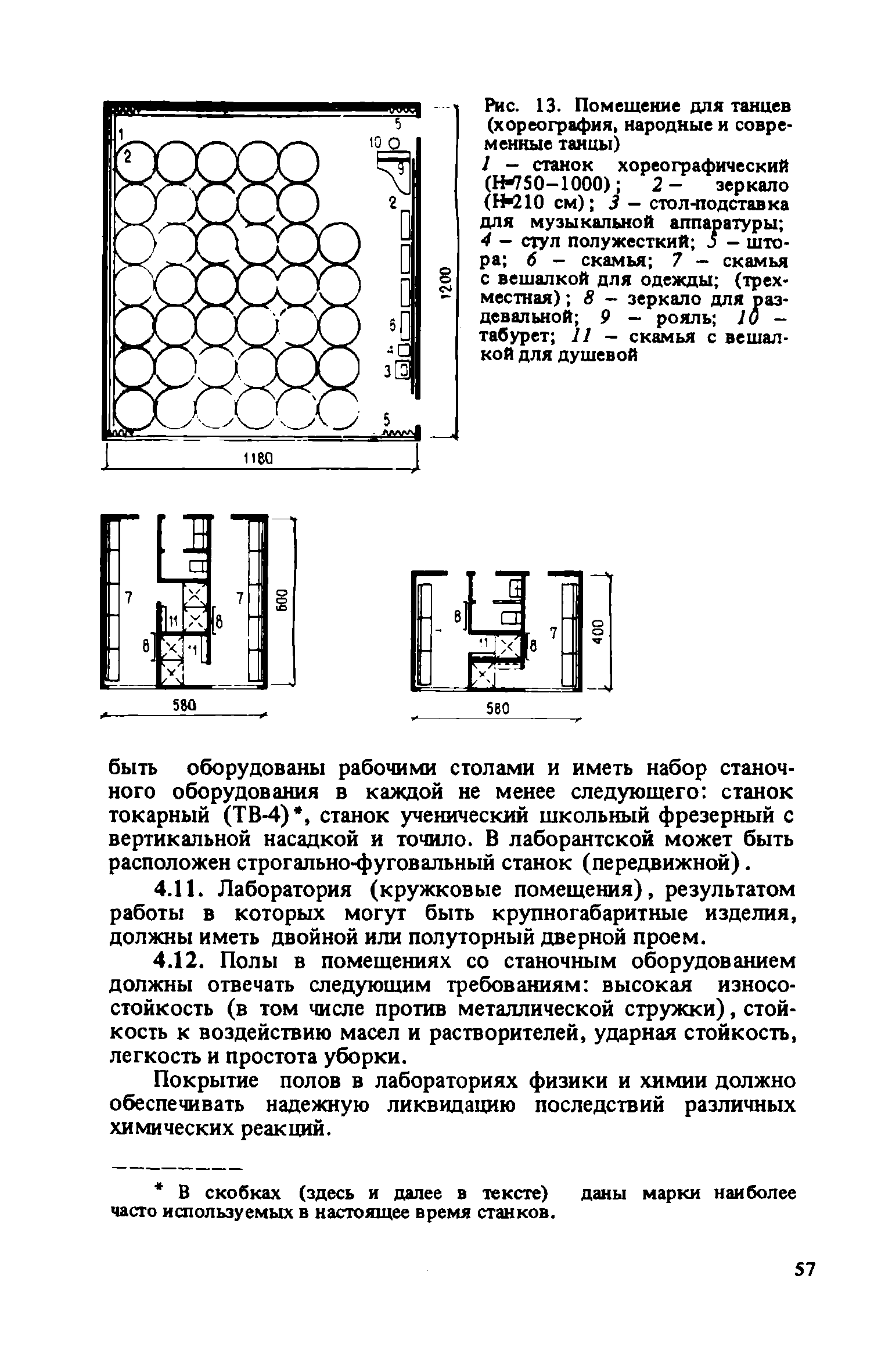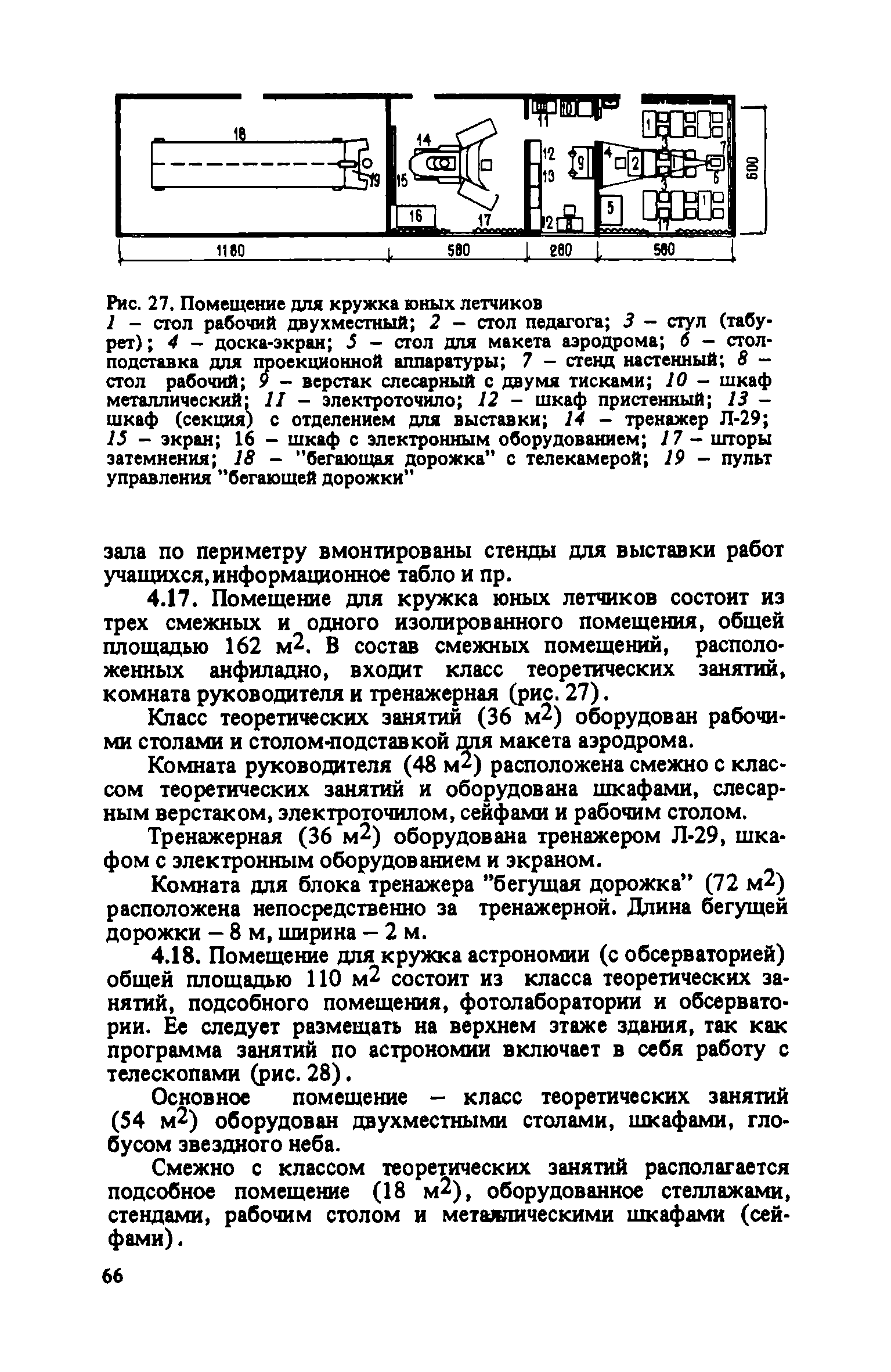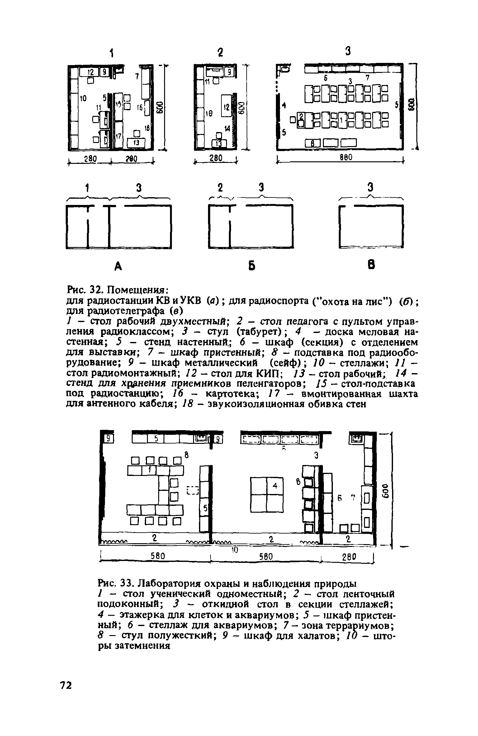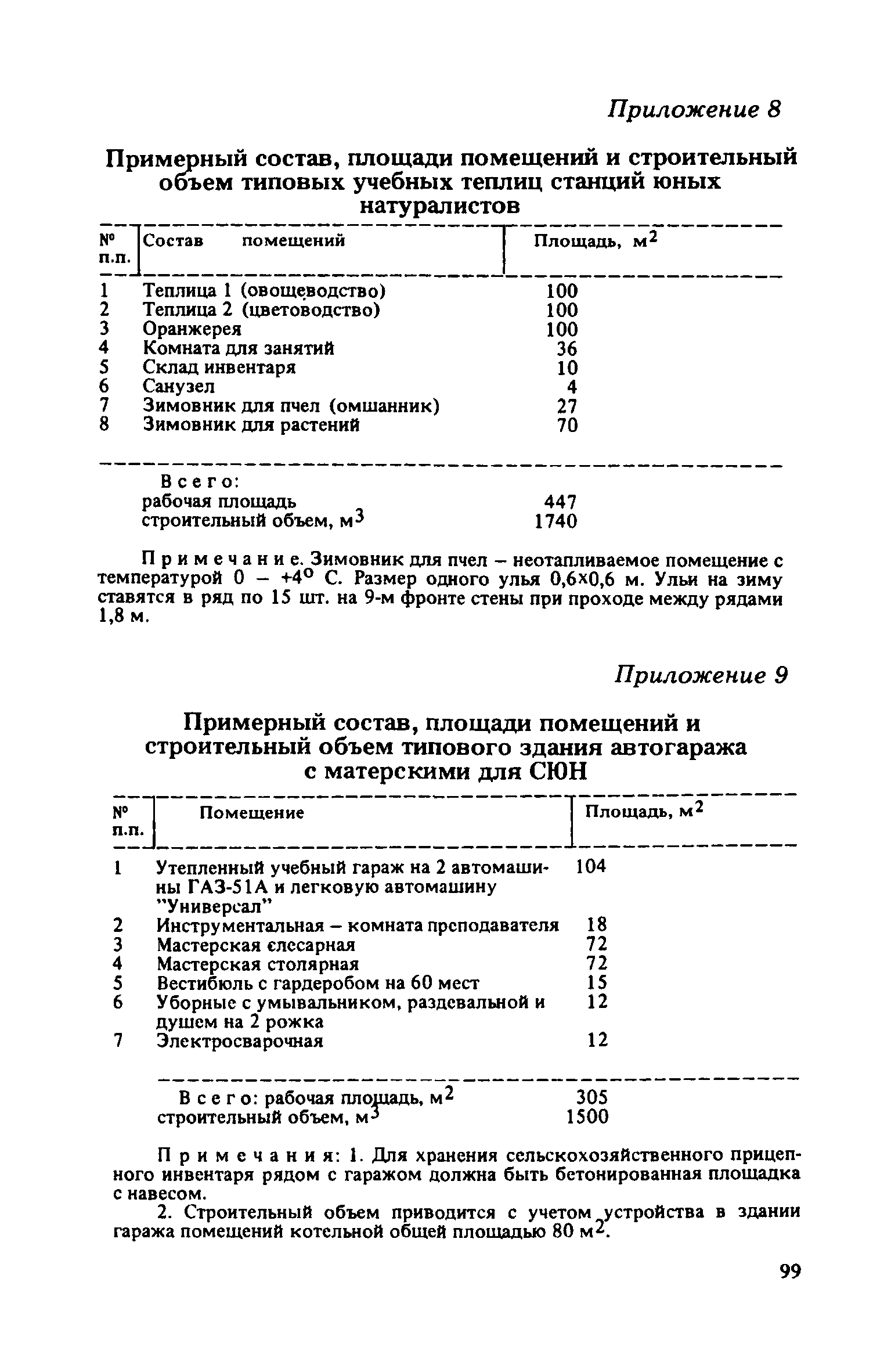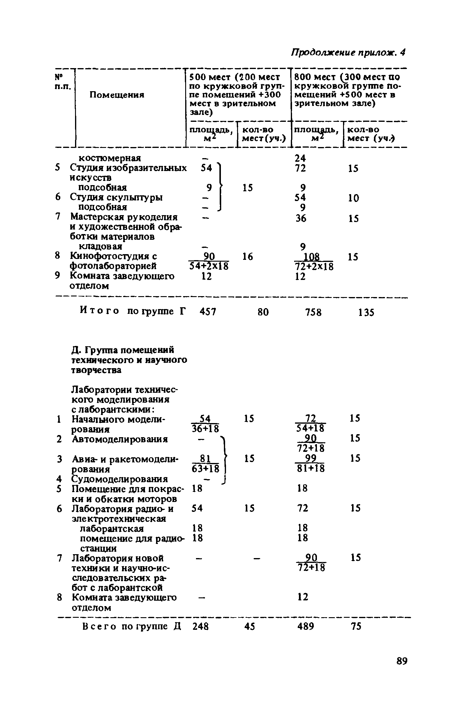 | Оглавление: | Введение Определение терминов 1. Общие положения Виды внеучебной деятельности школьников в системе города Основные педагогические требования к ДПШ, СЮТ и СЮН Характеристика и назначение учреждений Место ДПШ, СЮТ и СЮН в общей системе внешкольных учреждений и сети школ 2. Организация сети Принципы размещения ДПШ, СЮТ и СЮН в селитебной части городов Радиусы обслуживания Нормативные показатели Номенклатура типов зданий ДПШ, СЮТ и СЮН Требования к земельным участкам 3. Объемно-планировочные решения зданий Общие требования к проектированию зданий ДПШ, СЮТ и СЮН Требования к структуре зданий, взаимосвязь функционально-планировочных групп помещений и связь их с участком Требования к планировке функциональных групп помещений Помещения административно-хозяйственного назначения и обслуживающие 4. Требования к помещениям внешкольных учреждений Архитектурно-планировочные требования Требования к инженерному оборудованию Отопление и вентиляция Водоснабжение и канализация Газоснабжение Электрооборудование Слаботочные устройства Кинотехнология Приложение 1. Примерный состав и площади зон земельных участков домов (дворцов) пионеров и школьников на 500- 1200 мест Приложение 2. Примерный состав и площади зон земельных участков станций юных техников на 200-300 мест Приложение 3. Примерный состав и площади зон земельного участка станций юных натуралистов на 220 мест Приложение 4. Примерный состав, площади помещений и строительный объем типовых зданий домов пионеров и школьников на 500 и 800 мест Приложение 5. Примерный состав, площади помещений и строительный объем здания хозблока ДПШ Приложение 6. Примерный состав, площади помещений и строительный объем типовых зданий станций юных техников на 200 и 300 мест Приложение 7. Примерный состав, площади помещений и строительный объем типового здания станции юных натуралистов на 220 мест Приложение 8. Примерный состав, площади помещений и строительный объем типовых учебных теплиц станций юных натуралистов Приложение 9. Примерный состав, площади помещений и строительный объем типового здания автогаража с мастерскими для СЮН Приложение 10. Примерный состав, площади помещений и строительный объем типового здания павильона животноводства для СЮН Приложение 11. Примерный состав, площади помещений и строительный объем типового здания профильного лагеря на 50 и 80 чел Приложение 12. Принцип расчета сети ДПШ, СЮТ и СЮН для города Список литературы |