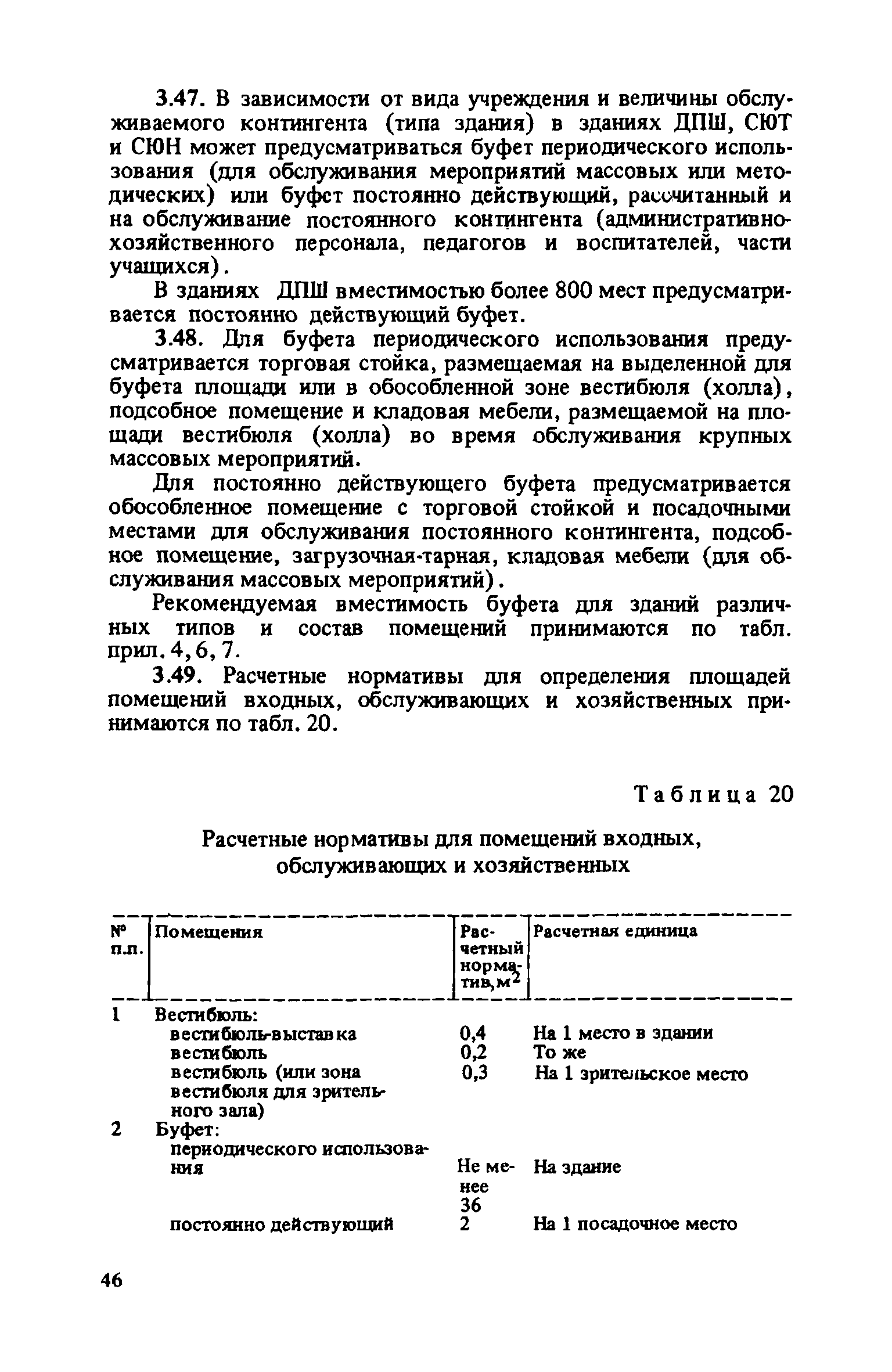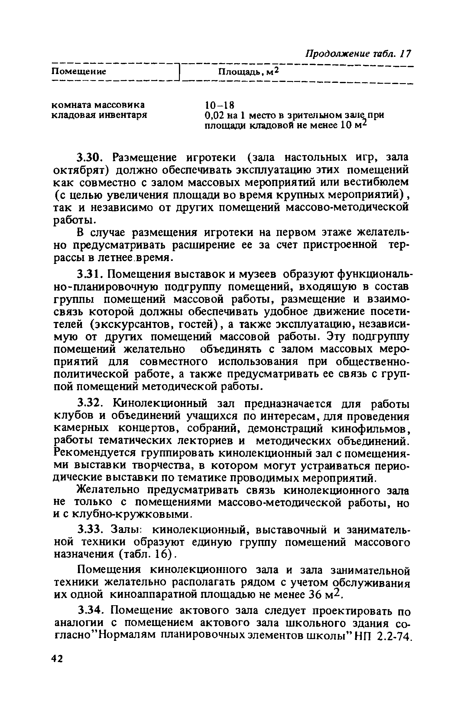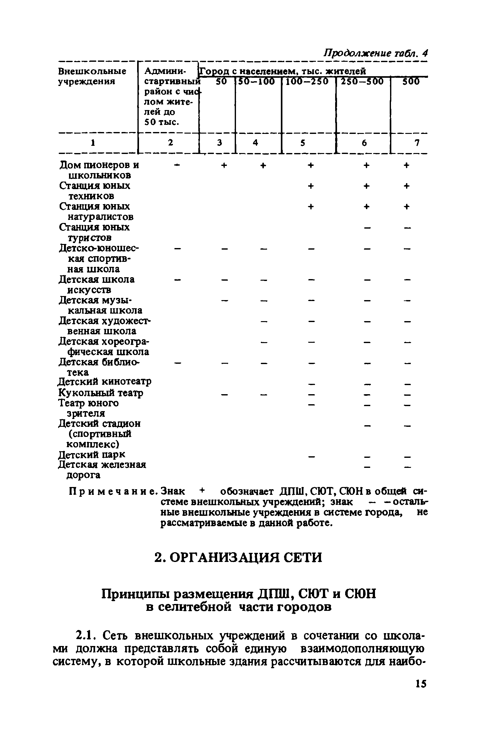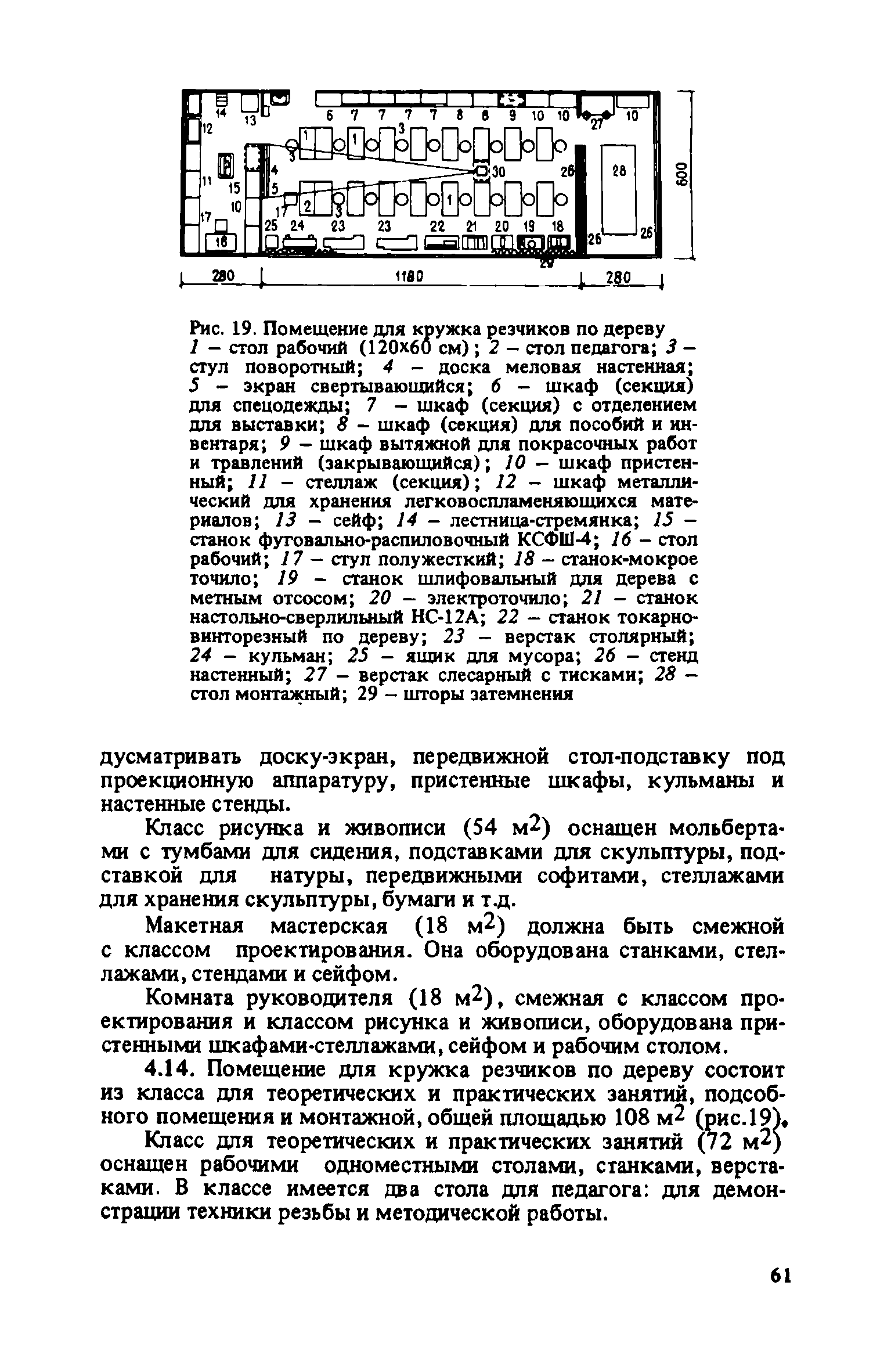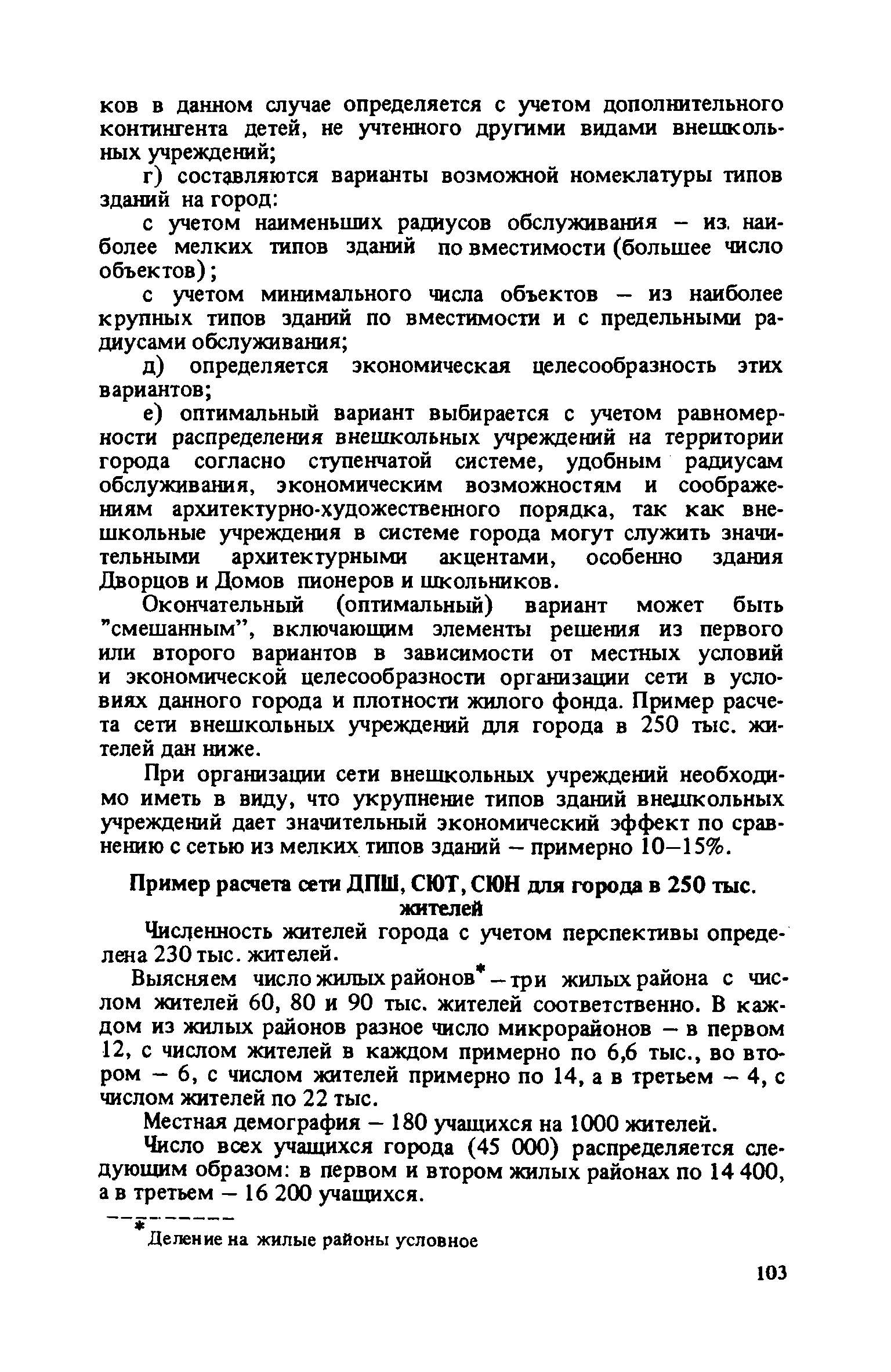 | Оглавление: | Введение Определение терминов 1. Общие положения Виды внеучебной деятельности школьников в системе города Основные педагогические требования к ДПШ, СЮТ и СЮН Характеристика и назначение учреждений Место ДПШ, СЮТ и СЮН в общей системе внешкольных учреждений и сети школ 2. Организация сети Принципы размещения ДПШ, СЮТ и СЮН в селитебной части городов Радиусы обслуживания Нормативные показатели Номенклатура типов зданий ДПШ, СЮТ и СЮН Требования к земельным участкам 3. Объемно-планировочные решения зданий Общие требования к проектированию зданий ДПШ, СЮТ и СЮН Требования к структуре зданий, взаимосвязь функционально-планировочных групп помещений и связь их с участком Требования к планировке функциональных групп помещений Помещения административно-хозяйственного назначения и обслуживающие 4. Требования к помещениям внешкольных учреждений Архитектурно-планировочные требования Требования к инженерному оборудованию Отопление и вентиляция Водоснабжение и канализация Газоснабжение Электрооборудование Слаботочные устройства Кинотехнология Приложение 1. Примерный состав и площади зон земельных участков домов (дворцов) пионеров и школьников на 500- 1200 мест Приложение 2. Примерный состав и площади зон земельных участков станций юных техников на 200-300 мест Приложение 3. Примерный состав и площади зон земельного участка станций юных натуралистов на 220 мест Приложение 4. Примерный состав, площади помещений и строительный объем типовых зданий домов пионеров и школьников на 500 и 800 мест Приложение 5. Примерный состав, площади помещений и строительный объем здания хозблока ДПШ Приложение 6. Примерный состав, площади помещений и строительный объем типовых зданий станций юных техников на 200 и 300 мест Приложение 7. Примерный состав, площади помещений и строительный объем типового здания станции юных натуралистов на 220 мест Приложение 8. Примерный состав, площади помещений и строительный объем типовых учебных теплиц станций юных натуралистов Приложение 9. Примерный состав, площади помещений и строительный объем типового здания автогаража с мастерскими для СЮН Приложение 10. Примерный состав, площади помещений и строительный объем типового здания павильона животноводства для СЮН Приложение 11. Примерный состав, площади помещений и строительный объем типового здания профильного лагеря на 50 и 80 чел Приложение 12. Принцип расчета сети ДПШ, СЮТ и СЮН для города Список литературы |