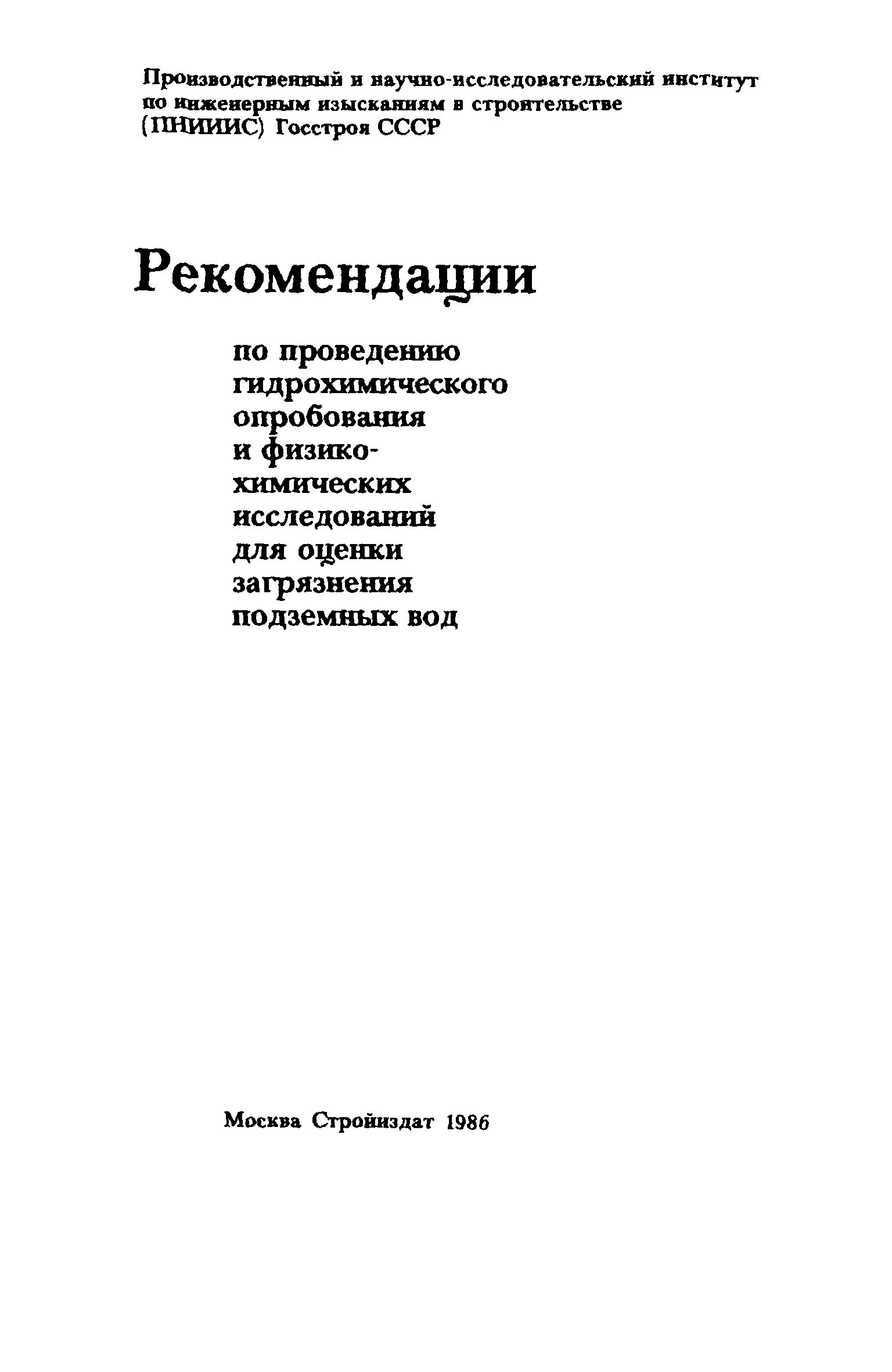 | Название рус.: | Рекомендации по проведению гидрохимического опробования и физико-химических исследований для оценки загрязнения подземных вод |