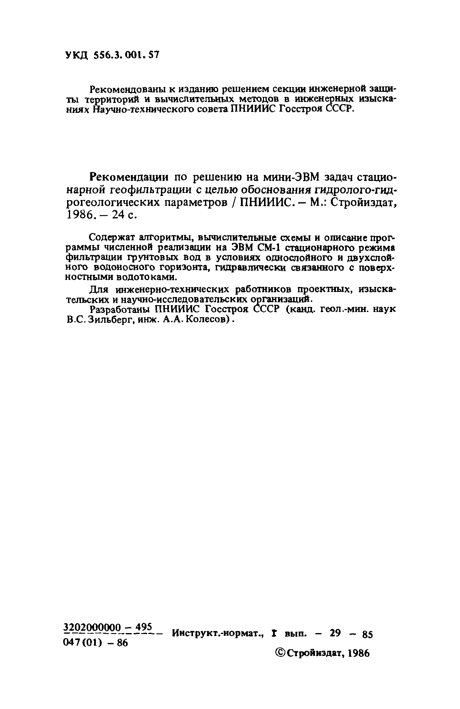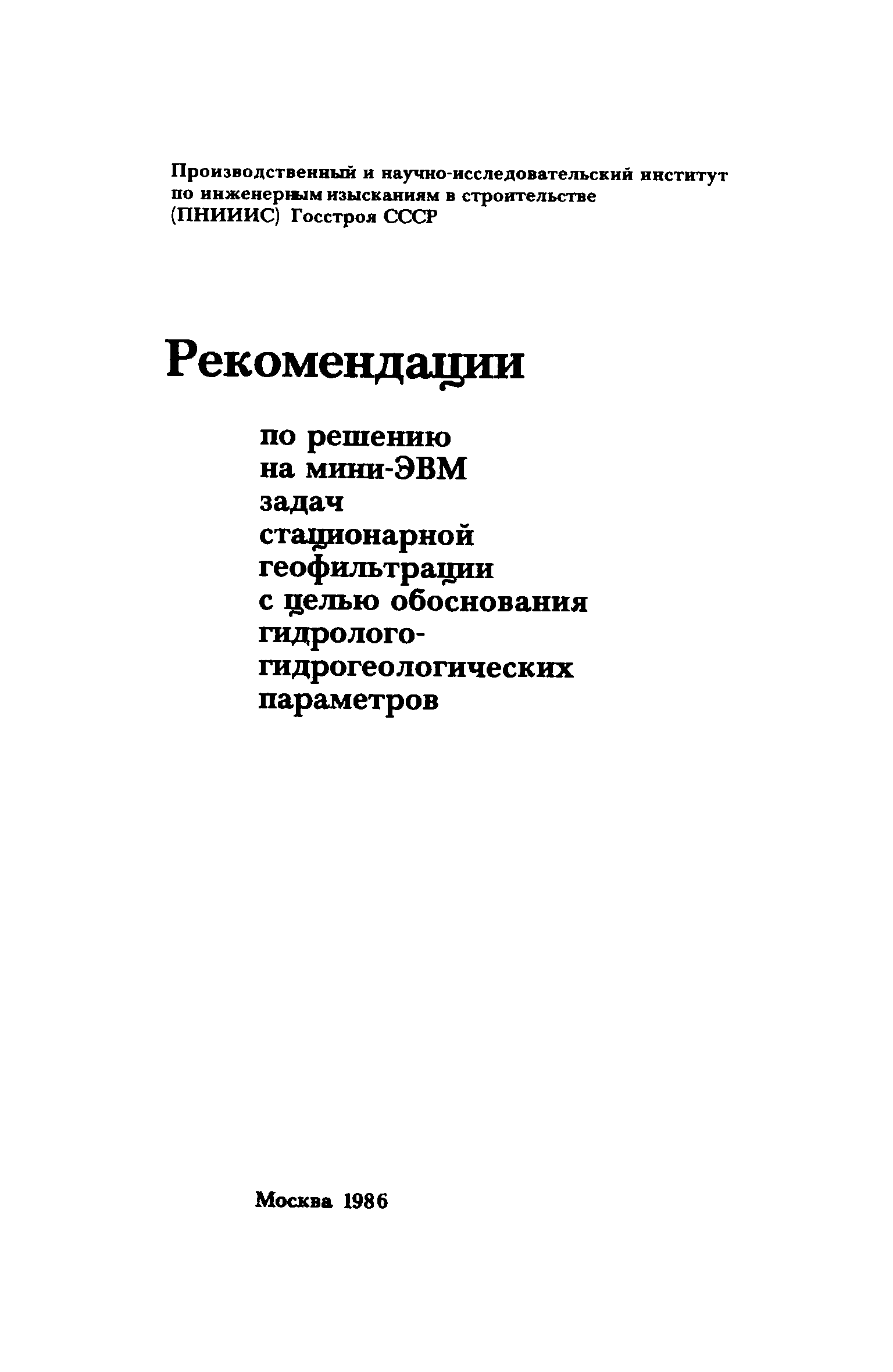 | Название рус.: | Рекомендации по решению на мини-ЭВМ задач стационарной геофильтрации с целью обоснования гидролого-гидрогеологических параметров |