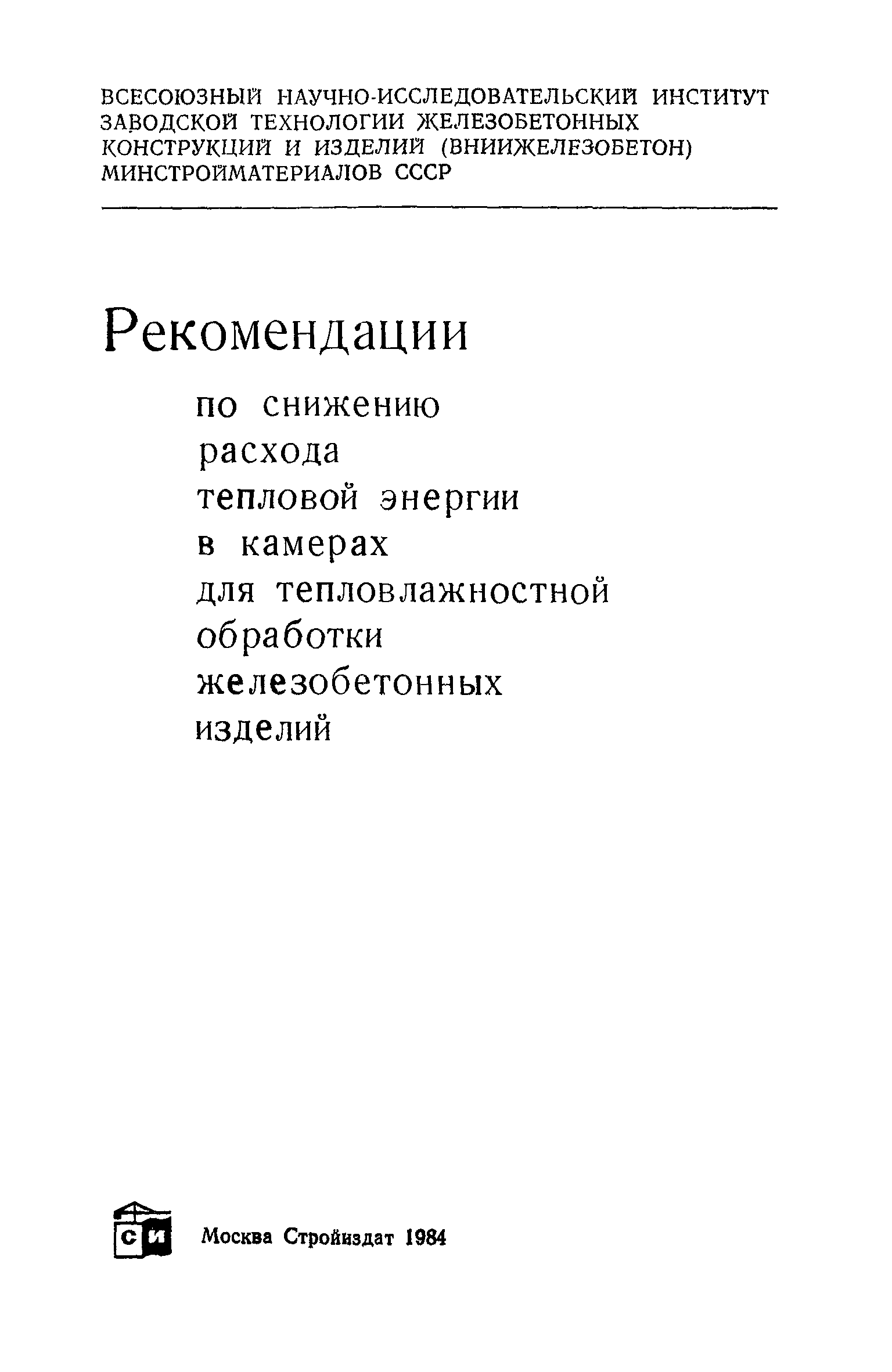 | Название рус.: | Рекомендации по снижению расхода тепловой энергии в камерах для тепловлажностной обработки железобетонных изделий |