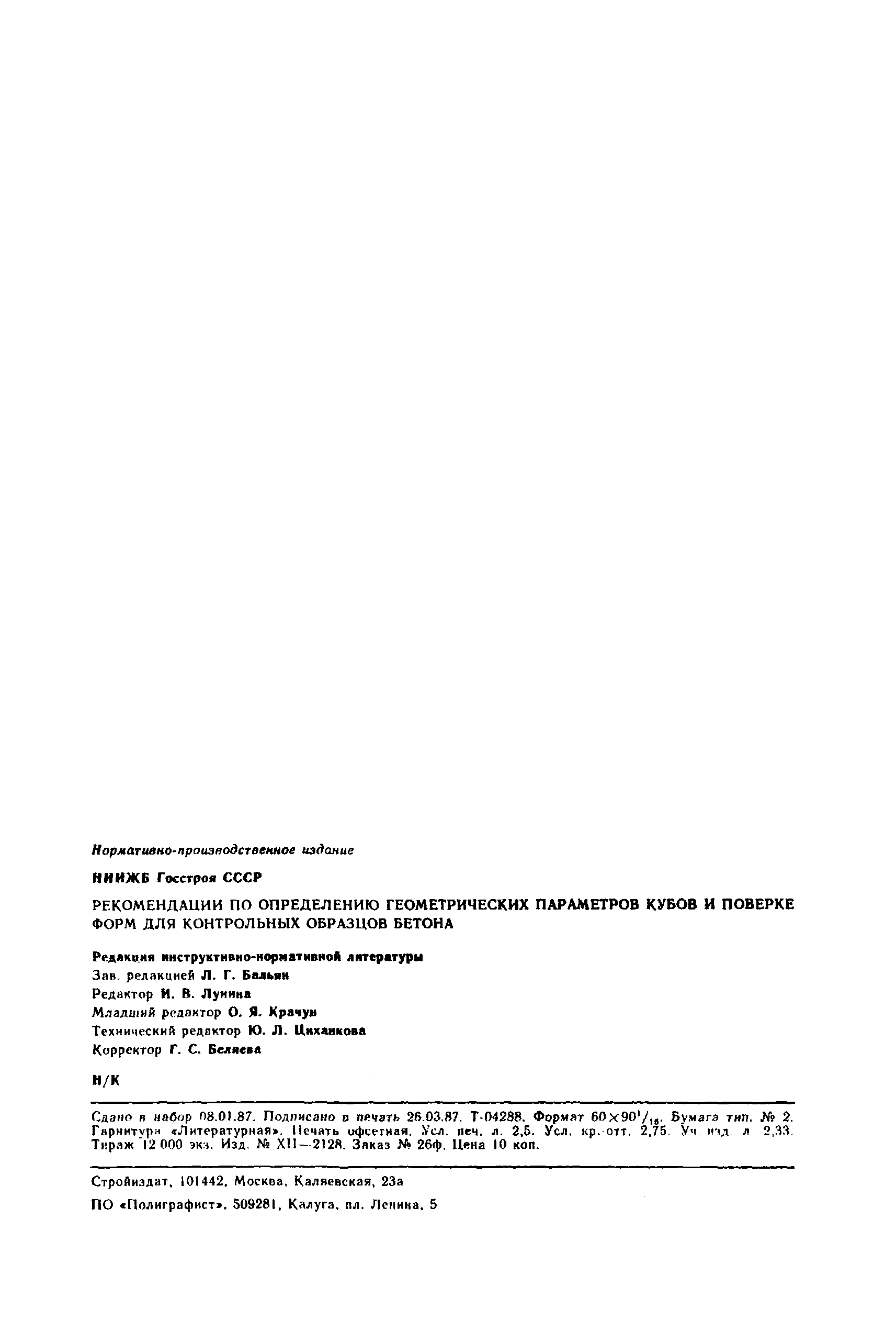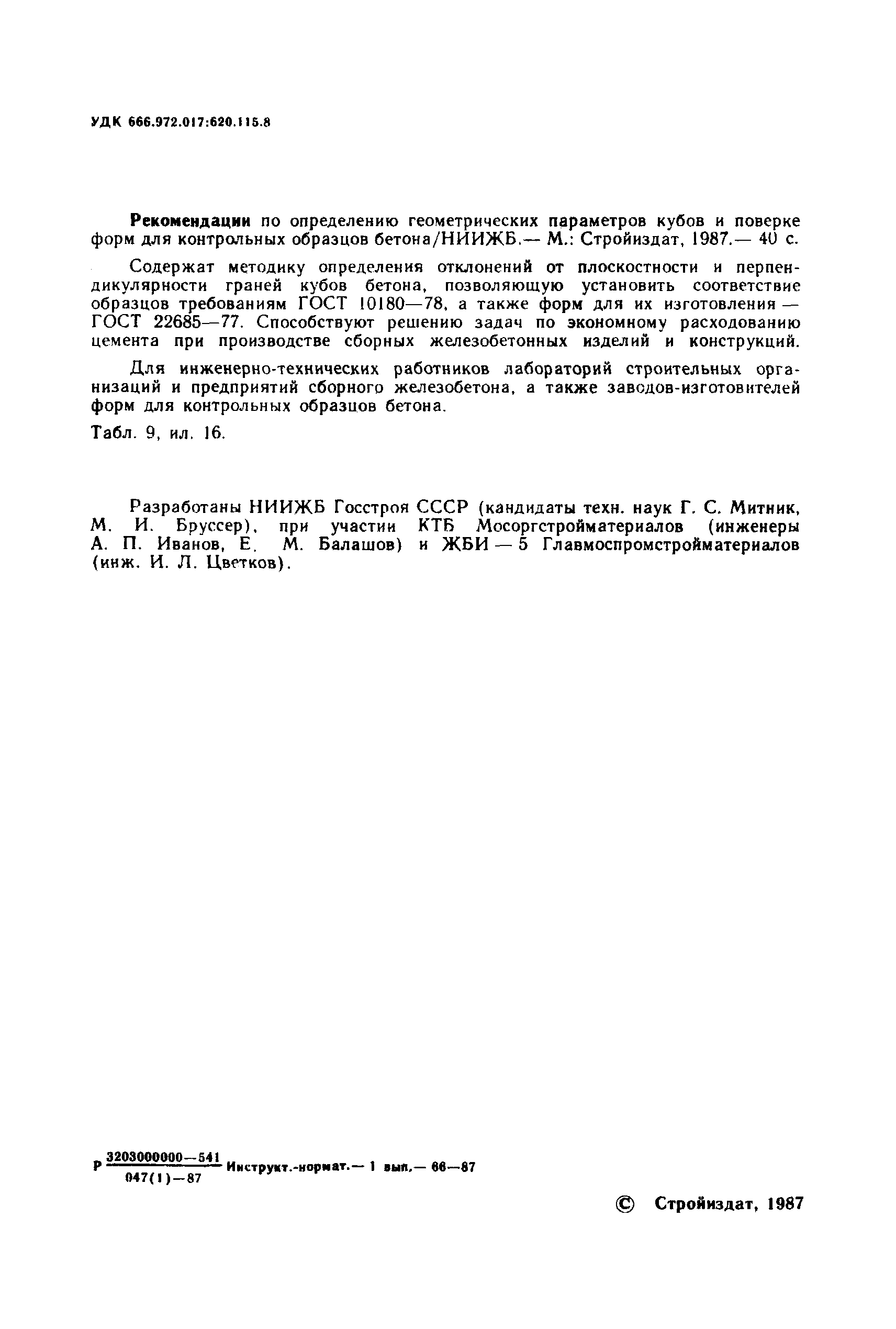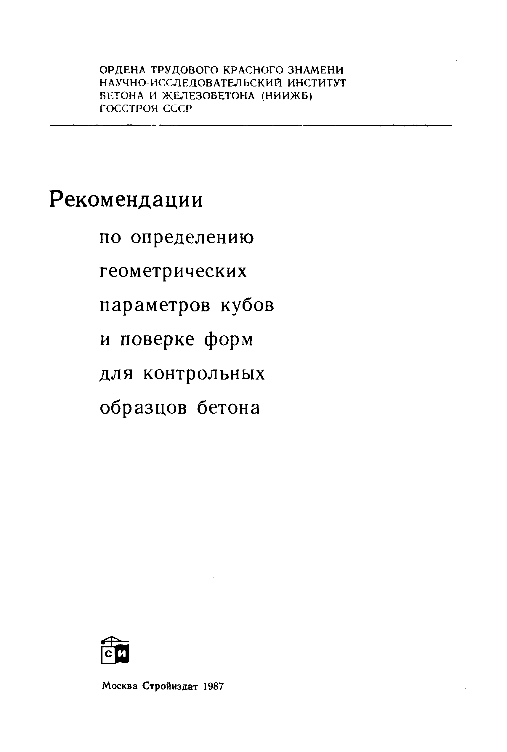 | Название рус.: | Рекомендации по определению геометрических параметров кубов и поверке форм для контрольных образцов бетона |