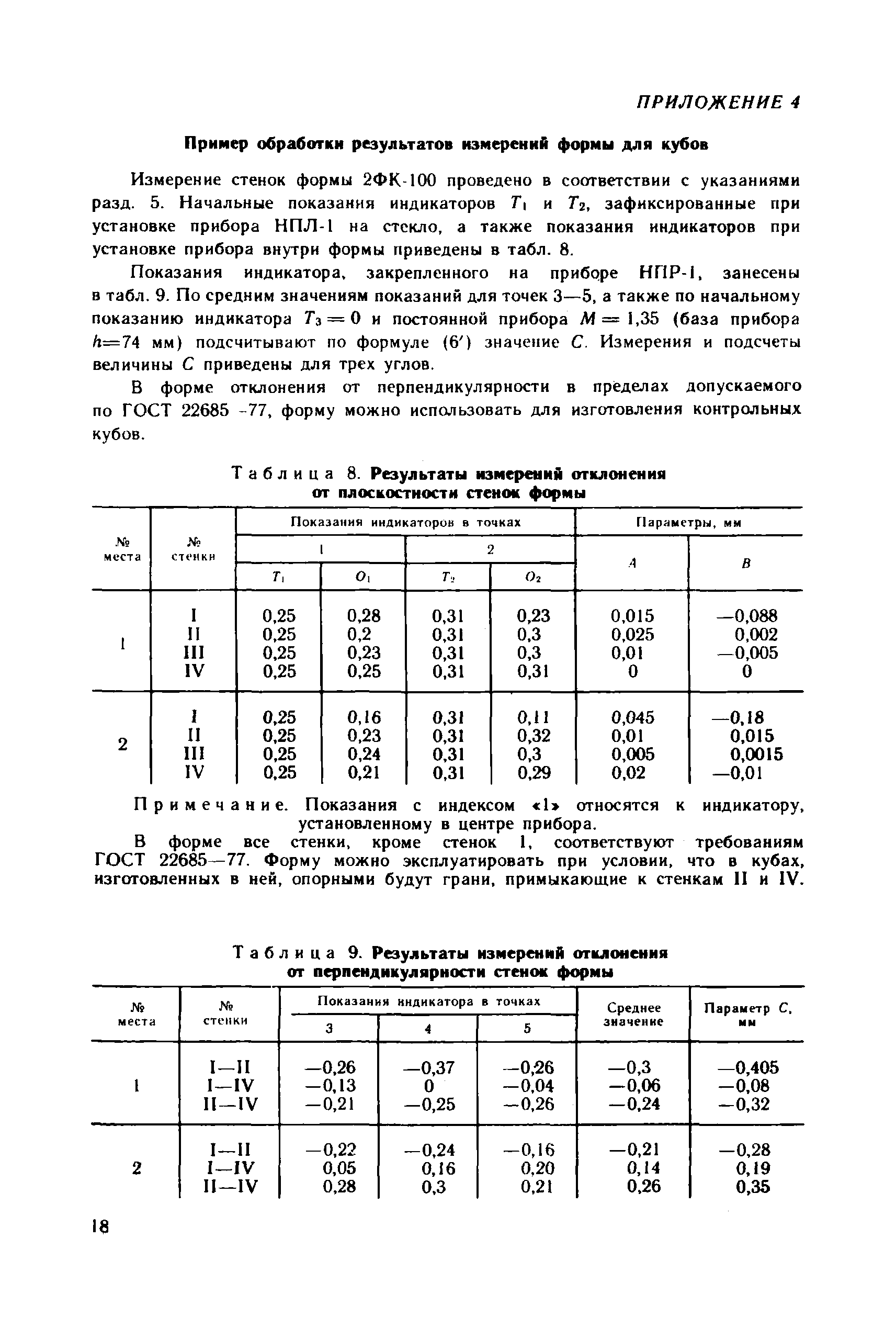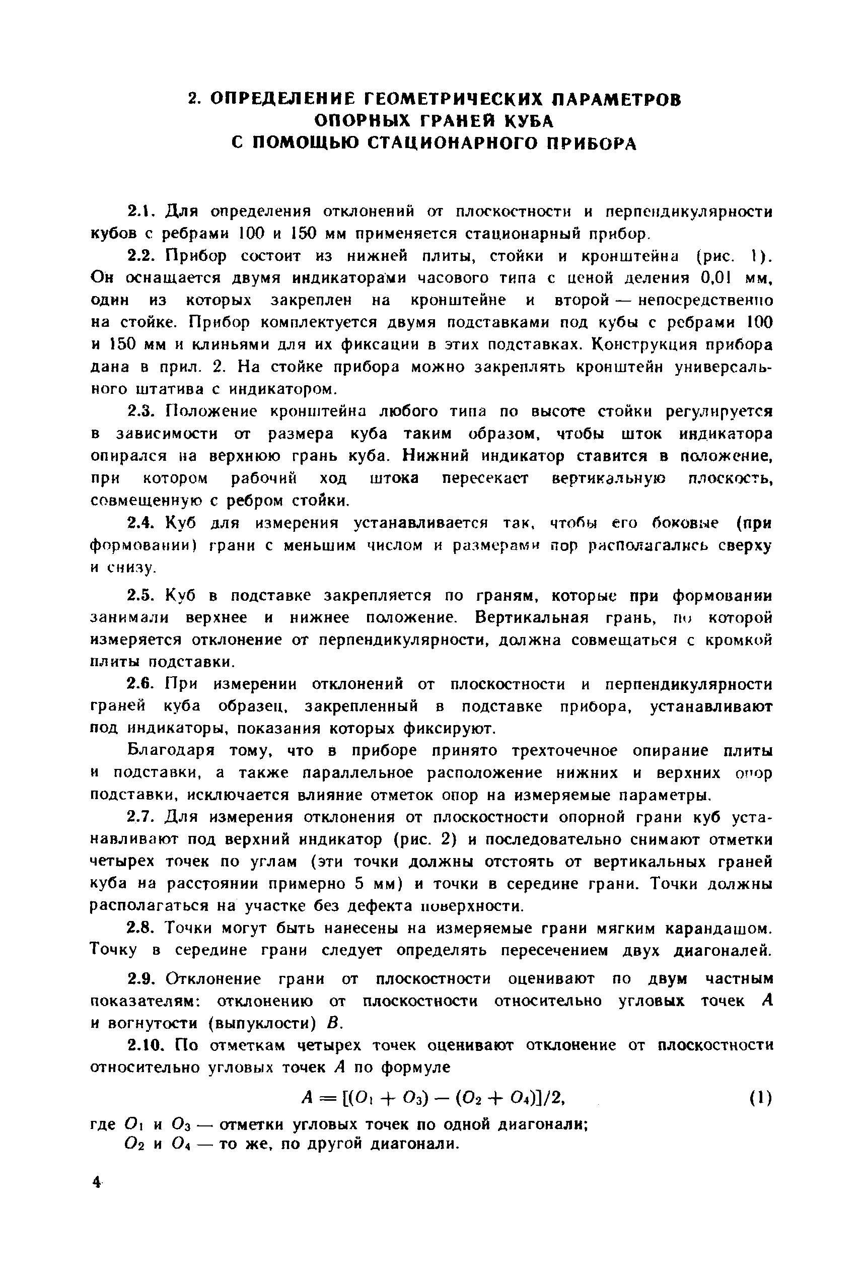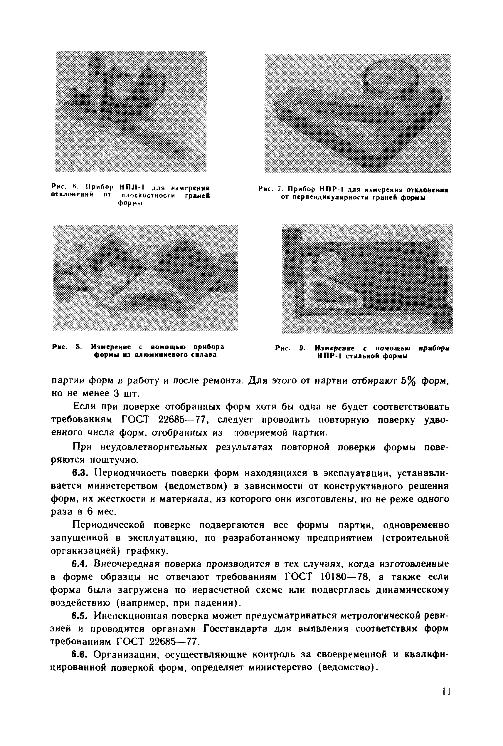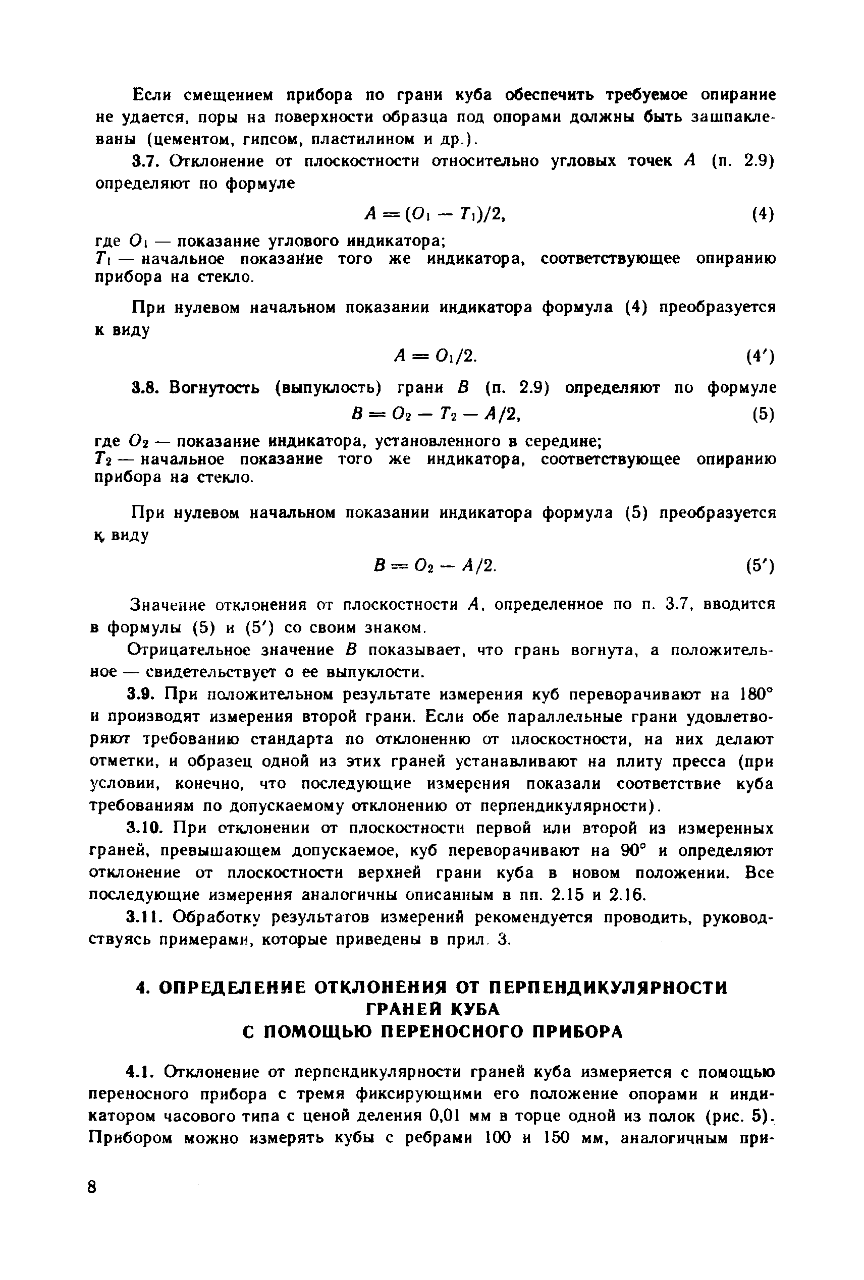 | Оглавление: | 1. Общие положения 2. Определение геометрических параметров опорных граней куба с помощью стационарного прибора 3. Определение отклонения от плоскостности опорных граней куба с помощью переносного прибора 4. Определение отклонения от перпендикулярности граней куба с помощью переносного прибора 5. Определение геометрических параметров форм для контрольных кубов бетона 6. Ведомственная поверка форм для контрольных образцов бетона Приложение 1. Определение отклонений от плоскостности и перпендикулярности граней цилиндров и призм Приложение 2. Примеры обработки результатов измерений кубов с помощью стационарного прибора Приложение 3. Примеры обработки результатов измерений кубов с помощью переносных приборов Приложение 4. Пример обработки результатов измерений формы для кубов Приложение 5. Стационарный прибор для измерения геометрических параметров опорных граней кубов Приложение 6. Переносной прибор для определения отклонений от плоскостности опорных граней куба (НПЛ-4) Приложение 7. Переносной прибор для определения отклонений от перпендикулярности опорных граней куба (НПР-2) Приложение 8. Переносной прибор для определения отклонений от плоскостности граней формы (НПЛ-1) Приложение 9. Переносной прибор для определения отклонения от перпендикулярности граней формы (НПР-1) |