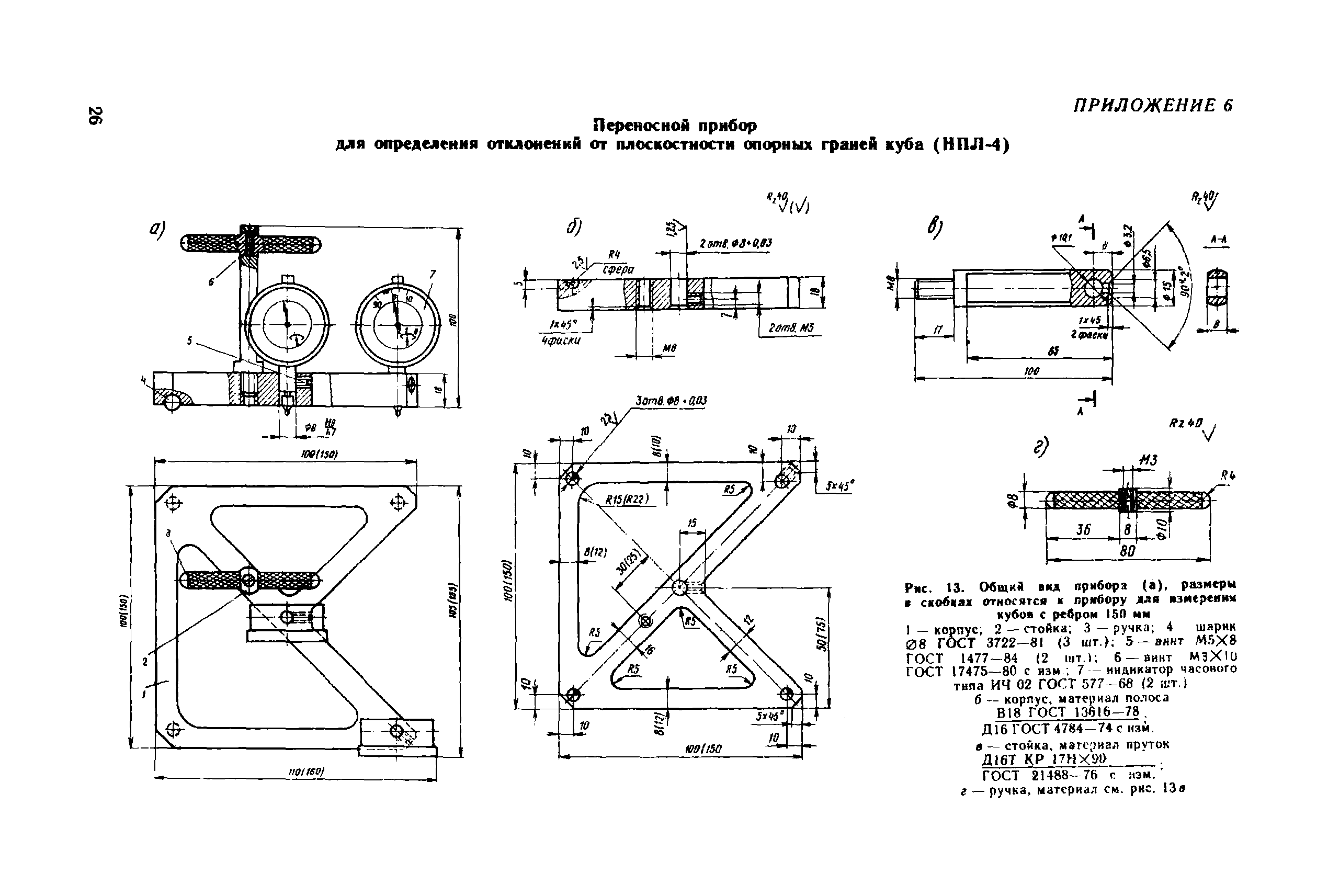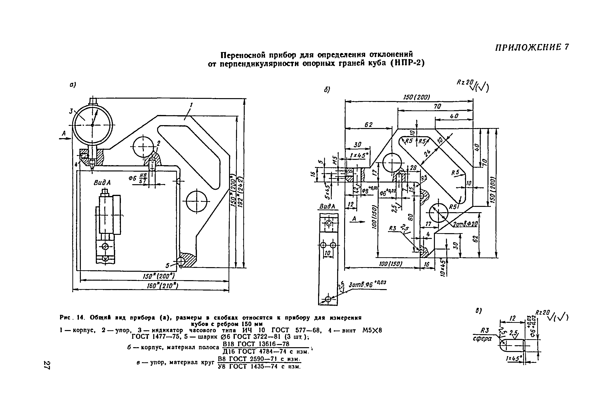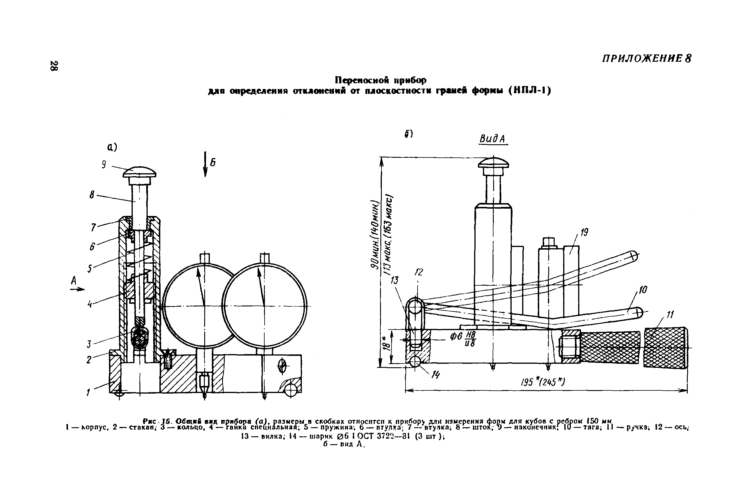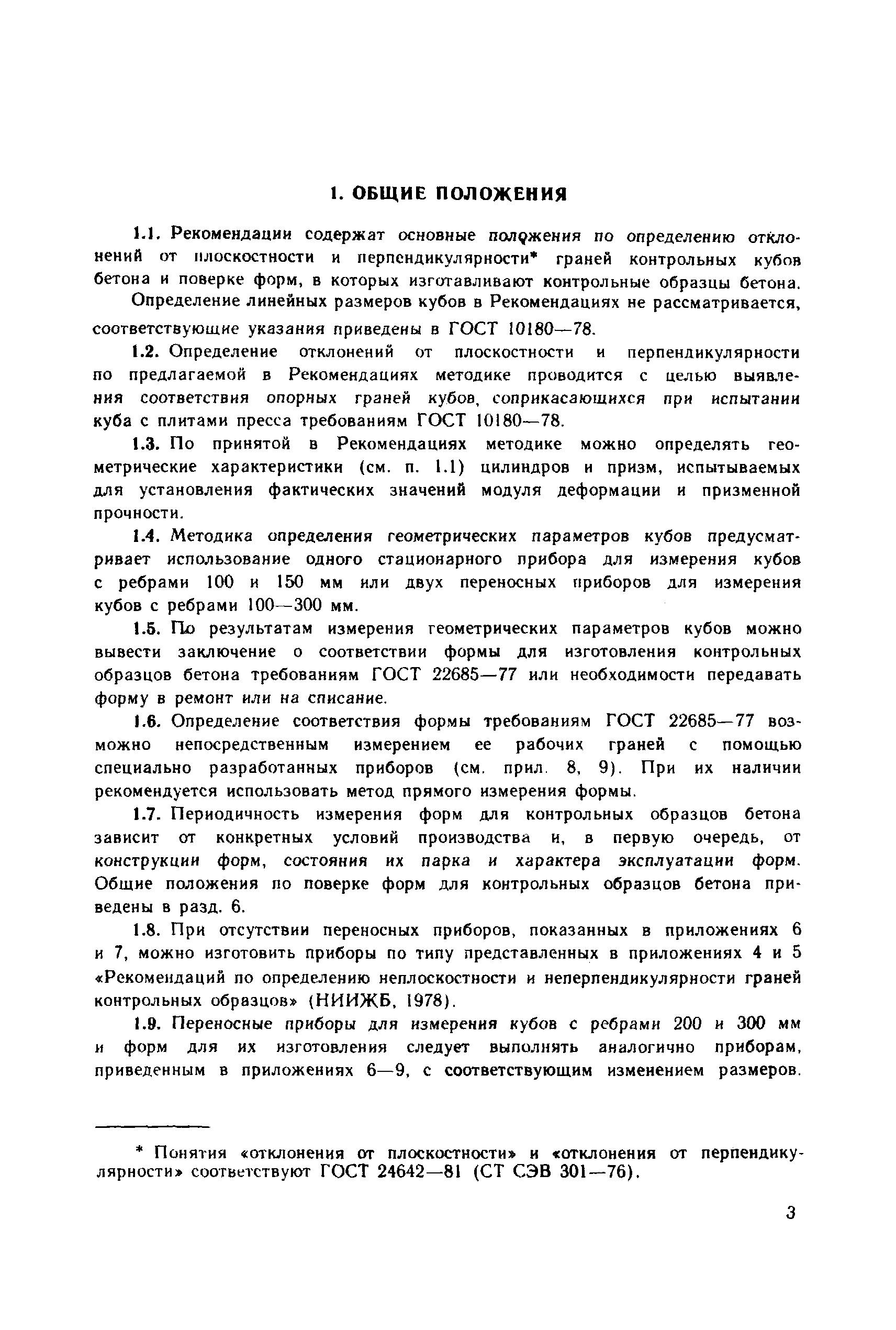 | Оглавление: | 1. Общие положения 2. Определение геометрических параметров опорных граней куба с помощью стационарного прибора 3. Определение отклонения от плоскостности опорных граней куба с помощью переносного прибора 4. Определение отклонения от перпендикулярности граней куба с помощью переносного прибора 5. Определение геометрических параметров форм для контрольных кубов бетона 6. Ведомственная поверка форм для контрольных образцов бетона Приложение 1. Определение отклонений от плоскостности и перпендикулярности граней цилиндров и призм Приложение 2. Примеры обработки результатов измерений кубов с помощью стационарного прибора Приложение 3. Примеры обработки результатов измерений кубов с помощью переносных приборов Приложение 4. Пример обработки результатов измерений формы для кубов Приложение 5. Стационарный прибор для измерения геометрических параметров опорных граней кубов Приложение 6. Переносной прибор для определения отклонений от плоскостности опорных граней куба (НПЛ-4) Приложение 7. Переносной прибор для определения отклонений от перпендикулярности опорных граней куба (НПР-2) Приложение 8. Переносной прибор для определения отклонений от плоскостности граней формы (НПЛ-1) Приложение 9. Переносной прибор для определения отклонения от перпендикулярности граней формы (НПР-1) |