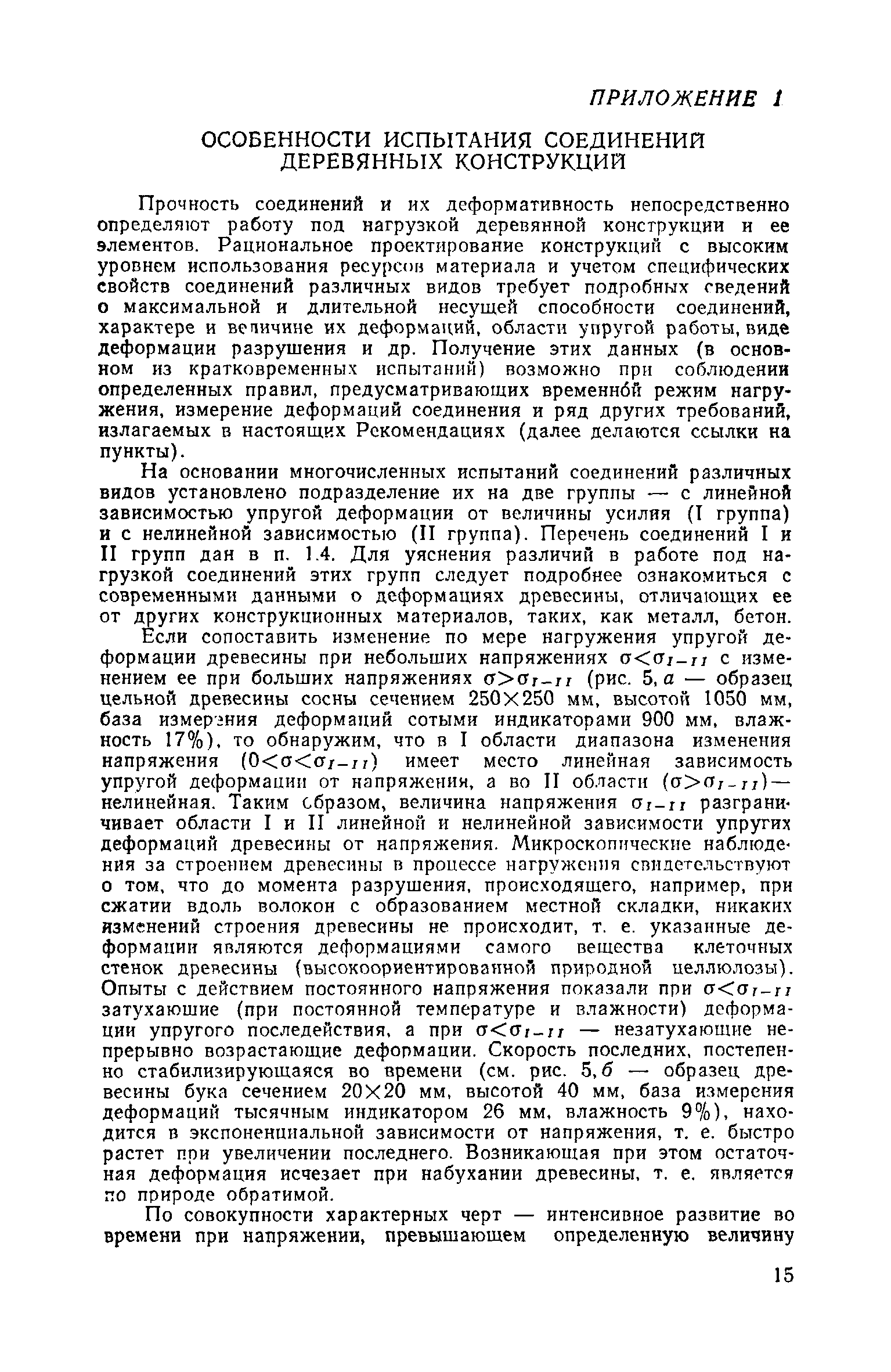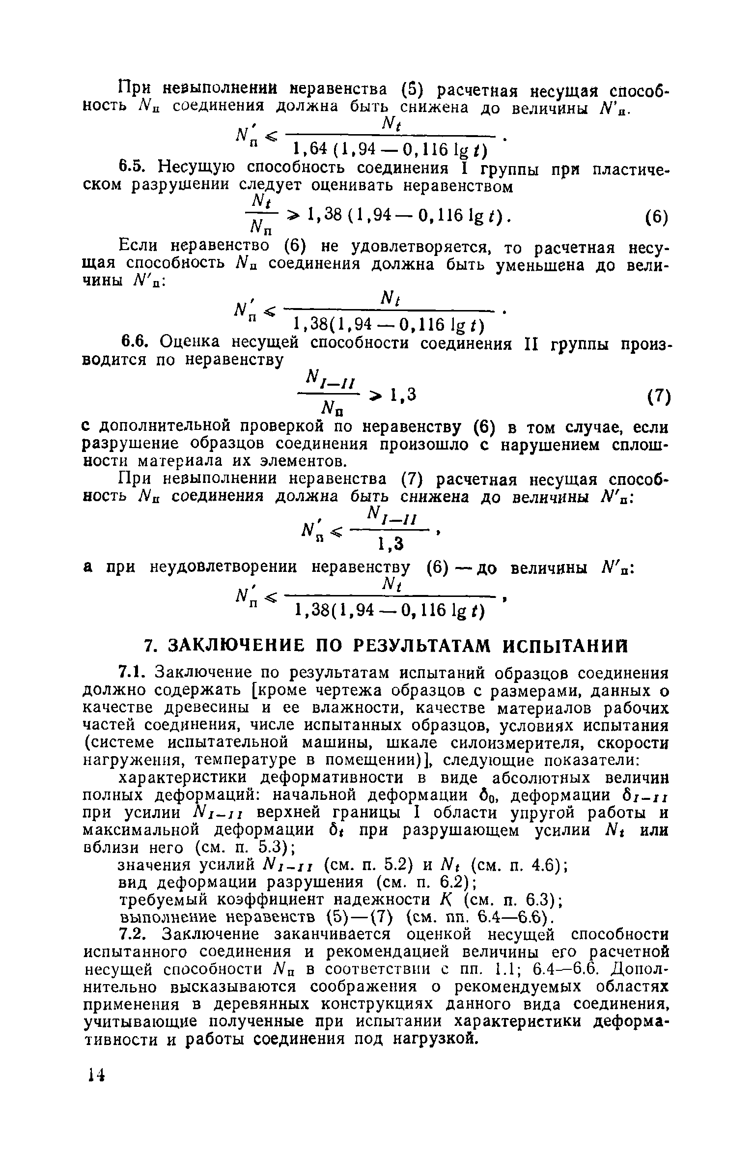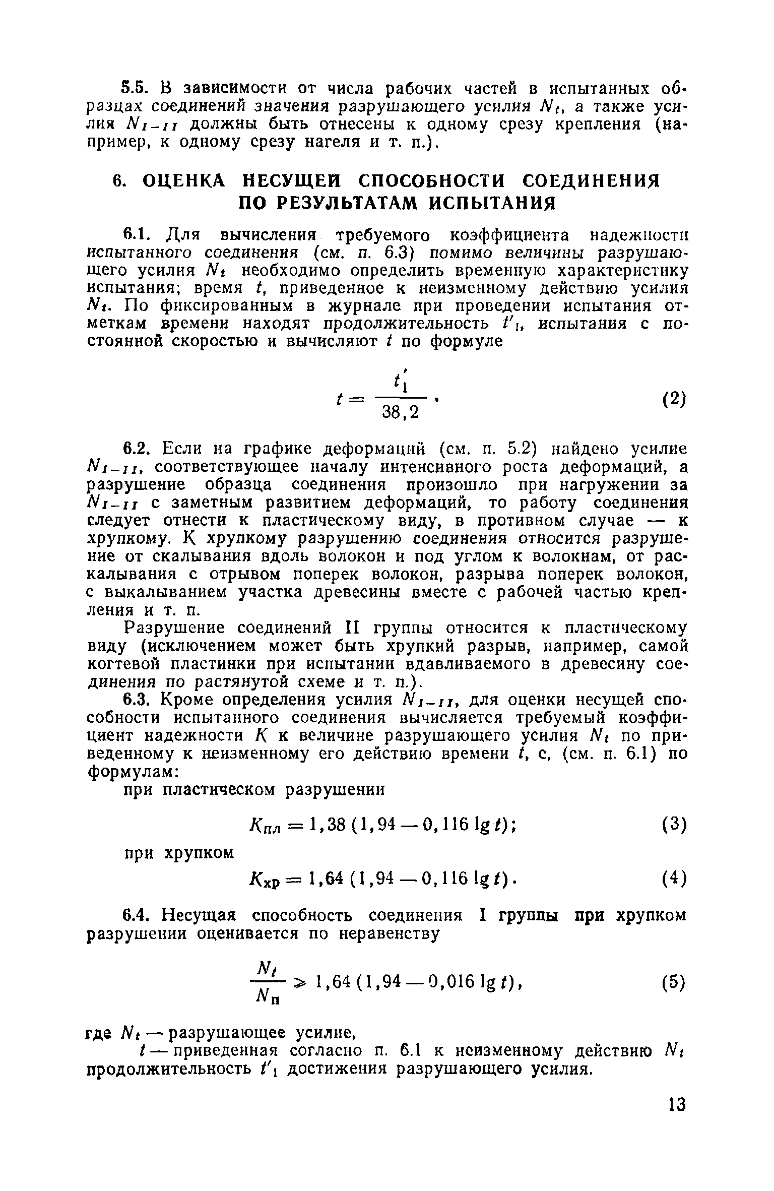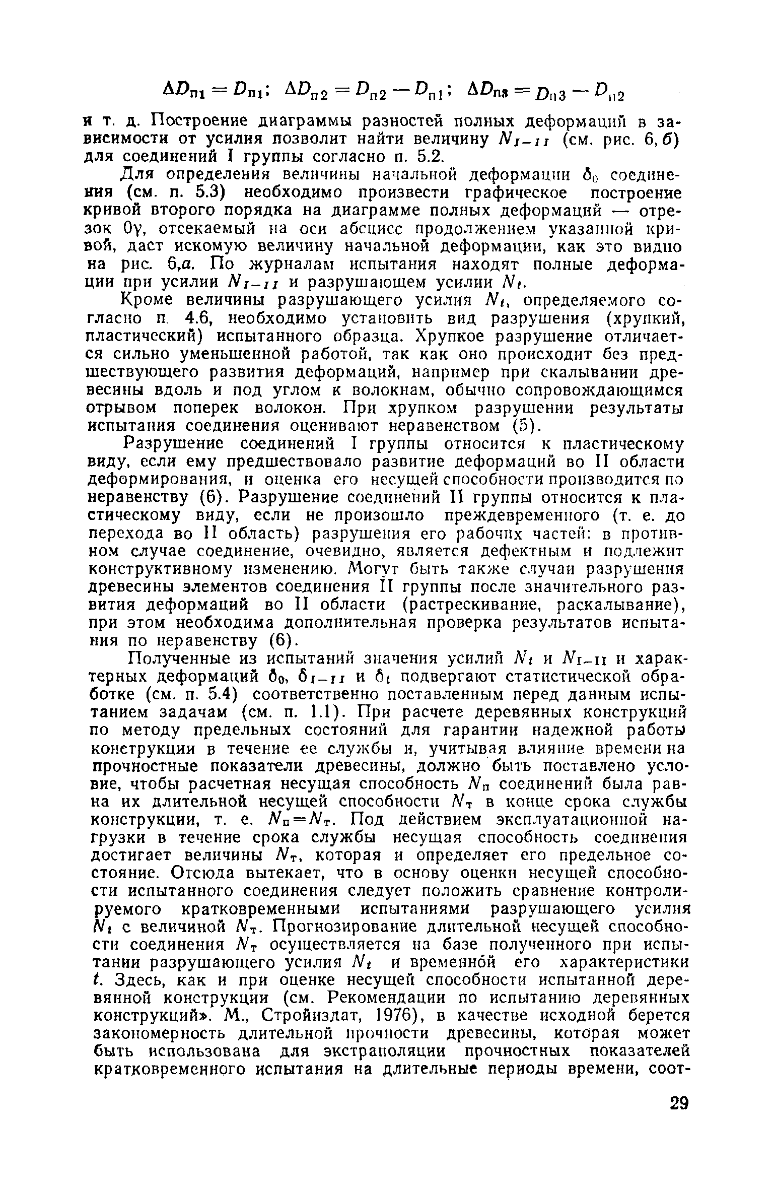 Рекомендации по испытанию соединений деревянных конструкций| Статус: | не действует | | Название рус.: | Рекомендации по испытанию соединений деревянных конструкций | | Дата добавления в базу: | 01.09.2013 | | Дата актуализации: | 01.01.2021 | | Область применения: | В документе изложены основные правила проведения испытания соединений деревянных конструкций: требования к испытанию соединений I и II группы, рекомендуемая форма образцов соединений различных видов и схемы приложения к ним усилия, изготовление образцов и подготовка их к испытанию с измерением деформаций, назначение ступени нагрузки на основании результатов пробных испытаний, передача усилия на образцы и их центрирование, проведение испытаний, временной режим нагружения, отсчеты деформаций и времени, обработка результатов испытаний и оценка несущей способности испытанного соединения. Даны пояснения особенностей испытания соединений деревянных конструкций и формы журналов испытания соединений I и II группы | | Оглавление: | Предисловие 1. Общие положения Задачи испытания Группы соединений деревянных конструкций Основные требования к проведению испытаний 2. Испытательные образцы соединений Форма образцов и схемы приложения усилий Изготовление образцов Паспортизация материала образцов 3. Подготовка образцов к измерению деформаций и испытанию Измерительные приборы и их установка Передача усилия на образец Назначение степени нагружения 4. Проведение испытания Нагружение и измерение деформаций Выполнение наблюдений Техника безопасности 5. Обработка результатов испытаний 6. Оценка несущей способности соединения по результатам испытания 7. Заключение по результатам испытаний Приложение 1. Особенности испытания соединений деревянных конструкций Приложение 2. Формы журналов испытаний соединения I и II группы | | Разработан: | ЦНИИСК им. В.А. Кучеренко