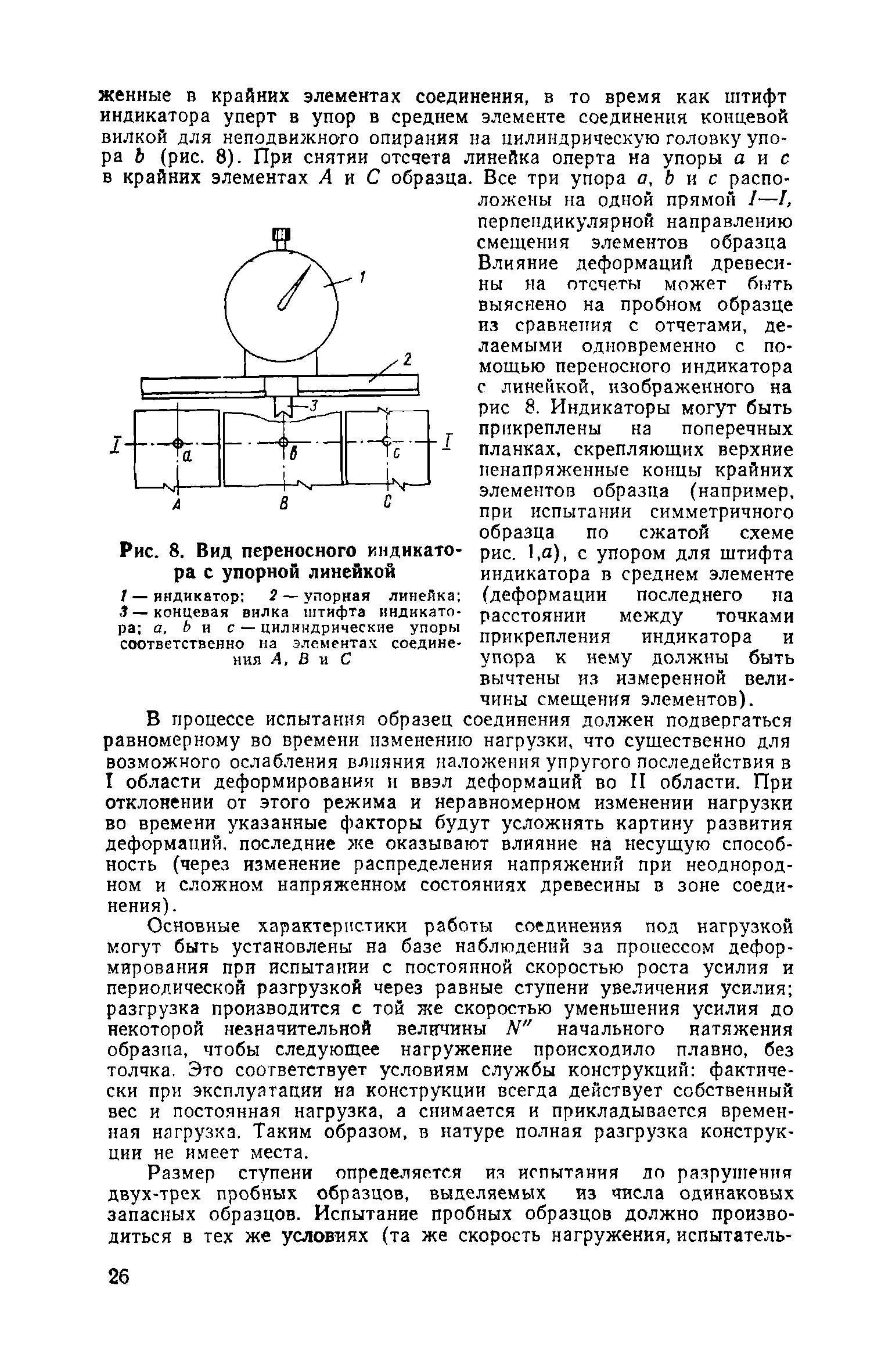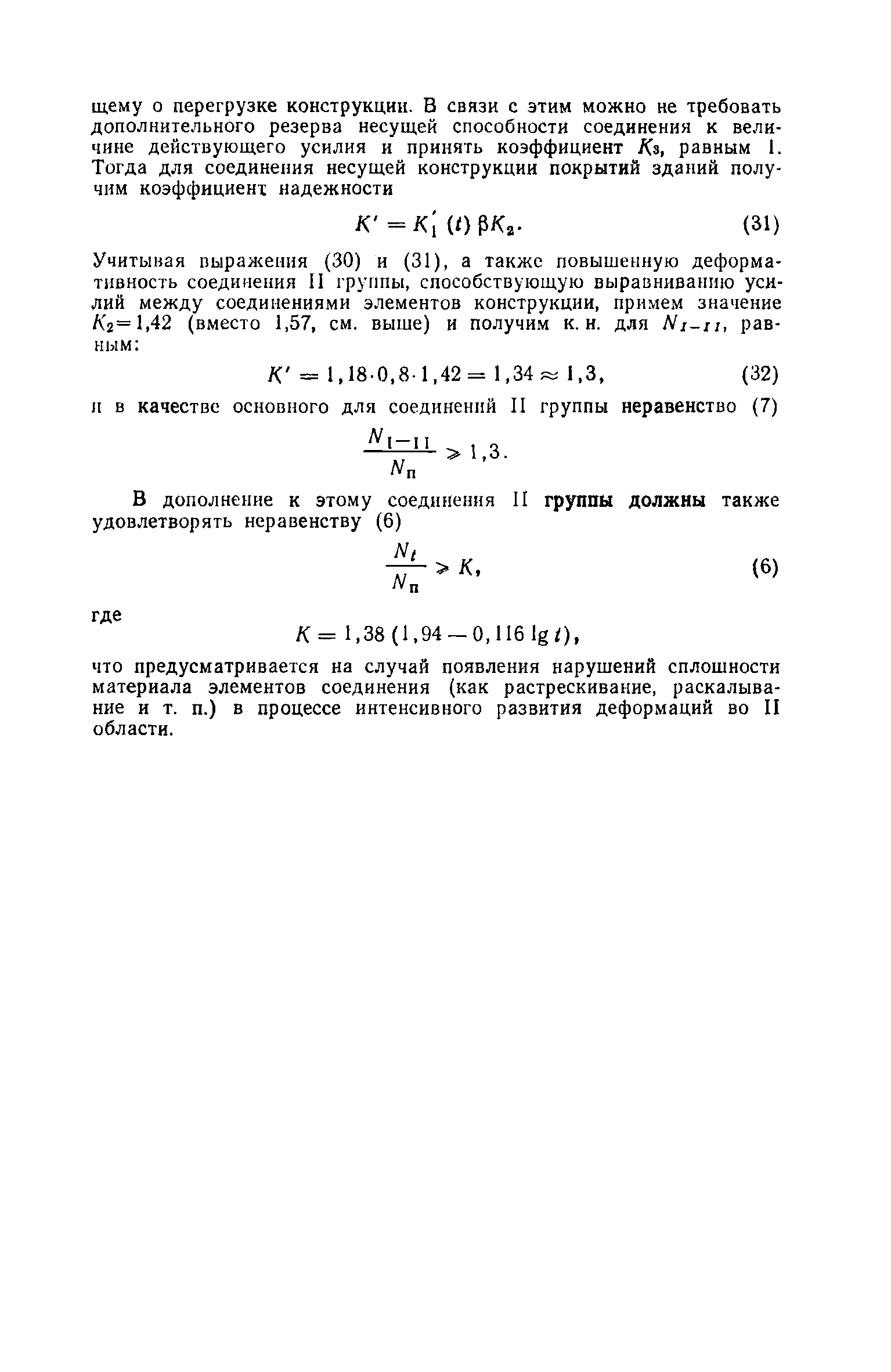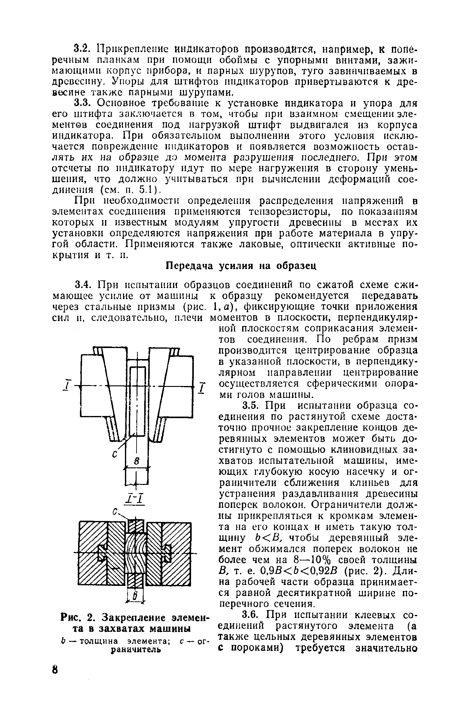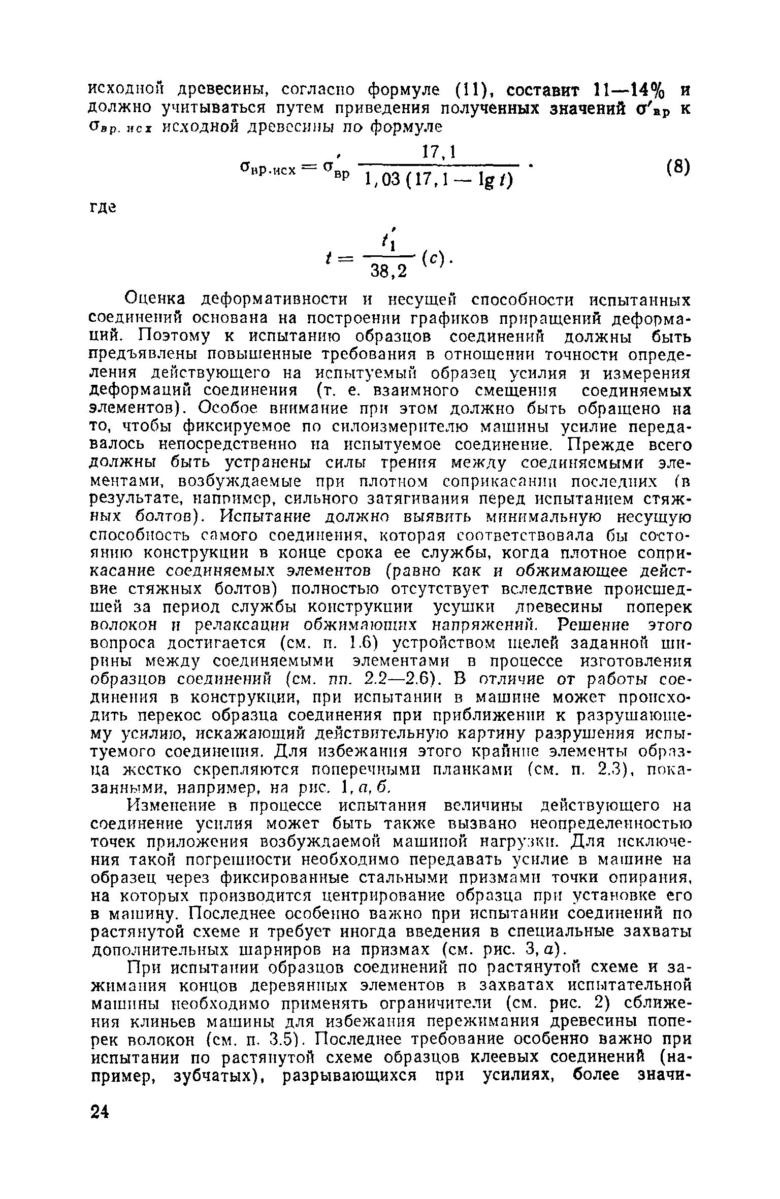 Рекомендации по испытанию соединений деревянных конструкций| Статус: | не действует | | Название рус.: | Рекомендации по испытанию соединений деревянных конструкций | | Дата добавления в базу: | 01.09.2013 | | Дата актуализации: | 01.01.2021 | | Область применения: | В документе изложены основные правила проведения испытания соединений деревянных конструкций: требования к испытанию соединений I и II группы, рекомендуемая форма образцов соединений различных видов и схемы приложения к ним усилия, изготовление образцов и подготовка их к испытанию с измерением деформаций, назначение ступени нагрузки на основании результатов пробных испытаний, передача усилия на образцы и их центрирование, проведение испытаний, временной режим нагружения, отсчеты деформаций и времени, обработка результатов испытаний и оценка несущей способности испытанного соединения. Даны пояснения особенностей испытания соединений деревянных конструкций и формы журналов испытания соединений I и II группы | | Оглавление: | Предисловие 1. Общие положения Задачи испытания Группы соединений деревянных конструкций Основные требования к проведению испытаний 2. Испытательные образцы соединений Форма образцов и схемы приложения усилий Изготовление образцов Паспортизация материала образцов 3. Подготовка образцов к измерению деформаций и испытанию Измерительные приборы и их установка Передача усилия на образец Назначение степени нагружения 4. Проведение испытания Нагружение и измерение деформаций Выполнение наблюдений Техника безопасности 5. Обработка результатов испытаний 6. Оценка несущей способности соединения по результатам испытания 7. Заключение по результатам испытаний Приложение 1. Особенности испытания соединений деревянных конструкций Приложение 2. Формы журналов испытаний соединения I и II группы | | Разработан: | ЦНИИСК им. В.А. Кучеренко