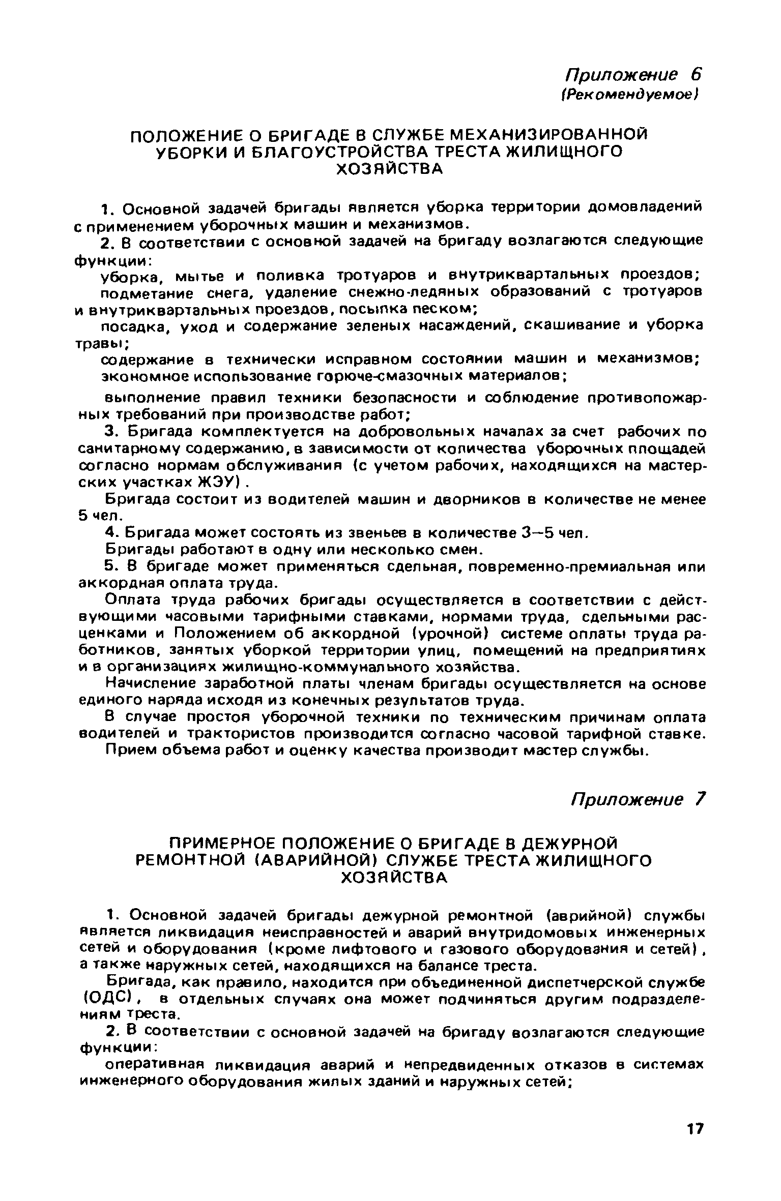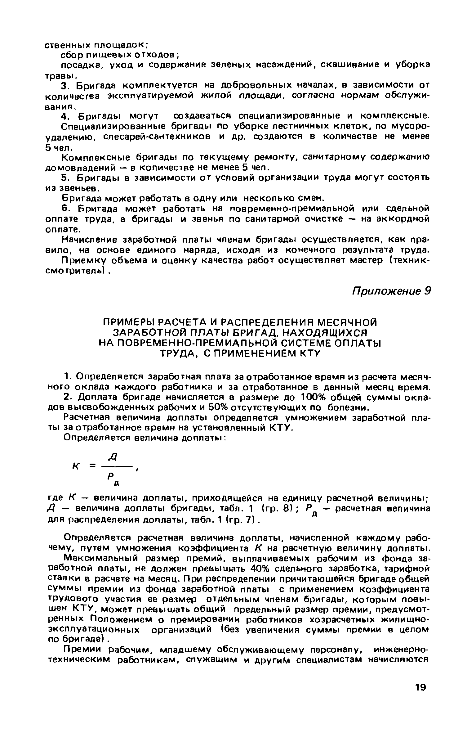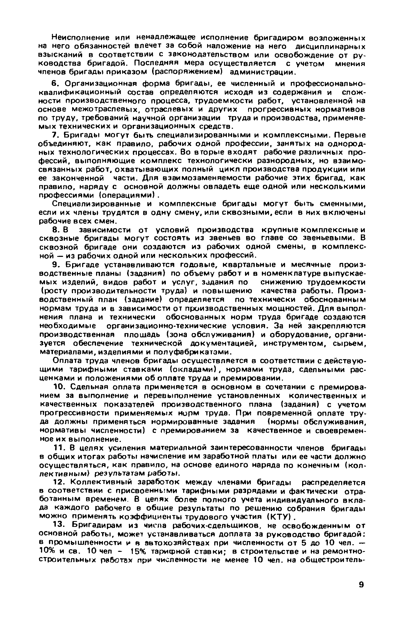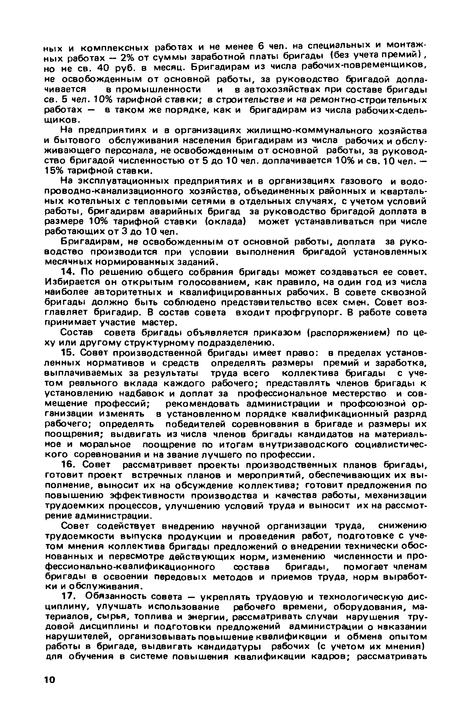 Рекомендации по бригадным формам организации труда в жилищном хозяйстве| Статус: | не действует | | Название рус.: | Рекомендации по бригадным формам организации труда в жилищном хозяйстве | | Дата добавления в базу: | 01.09.2013 | | Дата актуализации: | 01.01.2021 | | Область применения: | В документе приведены методы комплектования бригад и звеньев, обеспечивающие оптимальность их состава применительно к конкретным условиям работы в жилищных организациях. Даны примеры расчета и распределения заработной платы с применением коэффициентов трудового участия для бригад в трестах жилищного хозяйства | | Оглавление: | 1. Основные условия и принципы организации бригад 2. Организация управления бригадами 3. Организация и нормирование труда 4. Организация оплаты труда 5. Организация социалистического труда Приложение 1. Положение о производственной бригаде, бригадире, совете бригады и совете бригадиров Приложение 2. Рекомендуемое положение об использовании коэффициента трудового участия (КТУ) при распределении коллективного заработка между членами бригады Приложение 3. Рекомендуемое положение о бригаде на мастерском участке в ЖЭУ треста жилищного хозяйства Приложение 4. Рекомендуемое положение о бригаде в службе общестроительных работ треста жилищного хозяйства Приложение 5. Рекомендуемое положение о бригаде в службе санитарно-технических и специальных работ треста жилищного хозяйства Приложение 6. Рекомендуемое положение о бригаде в службе механизированной уборки и благоустройства треста жилищного хозяйства Приложение 7. Примерное положение о бригаде в дежурной ремонтной (аварийной) службе треста жилищного хозяйства Приложение 8. Рекомендуемое положение о бригаде в ЖЭУ на самостоятельном балансе (ЖЭК, домоуправление) Приложение 9. Примеры расчета и распределения месячной заработной платы бригад, находящихся на повременно-премиальной системе оплаты труда, с применением КТУ Приложение 10. Примеры расчета и распределения месячной заработной платы бригад, находящихся на аккордной оплате труда Приложение 11. Положение об аккордной (урочной) системе оплаты труда работников, занятых уборкой территорий улиц, помещений на предприятиях и в организациях жилищно-коммунального хозяйства | | Разработан: | ЛНИИ АКХ им. К.Д. Памфилова Минжилкомхоза РСФСР