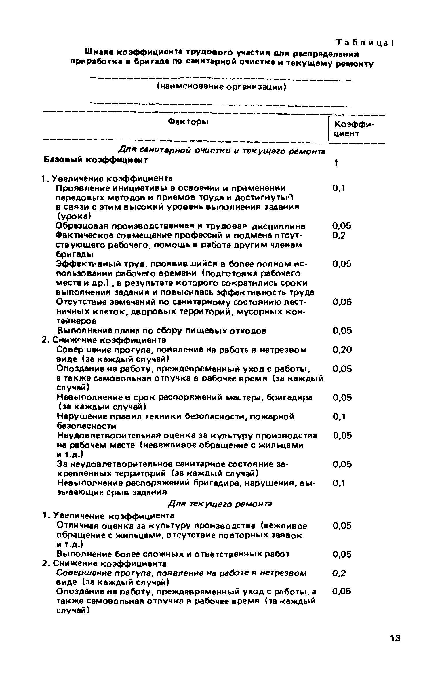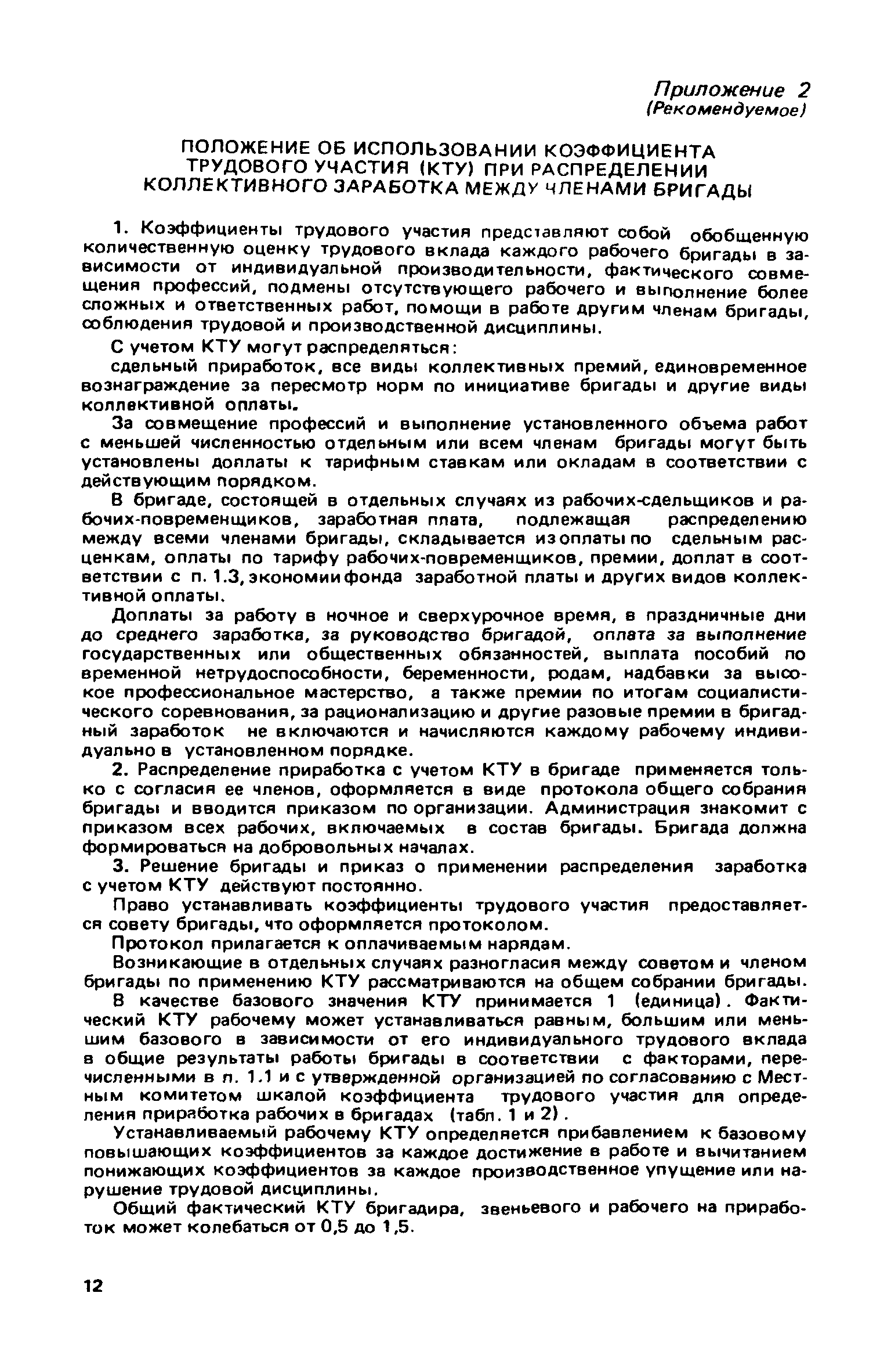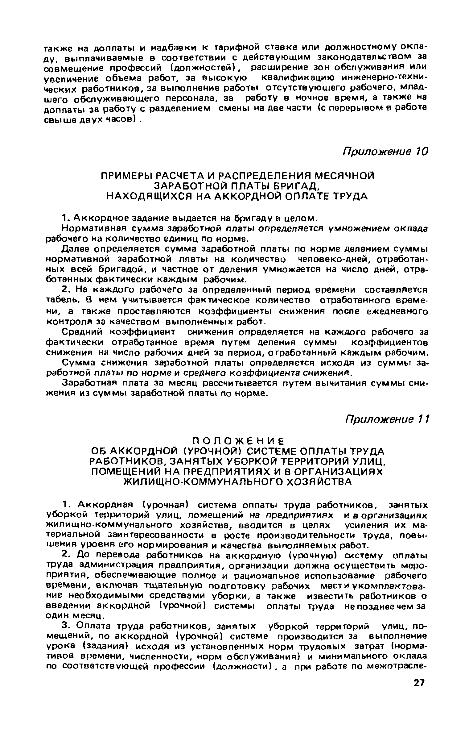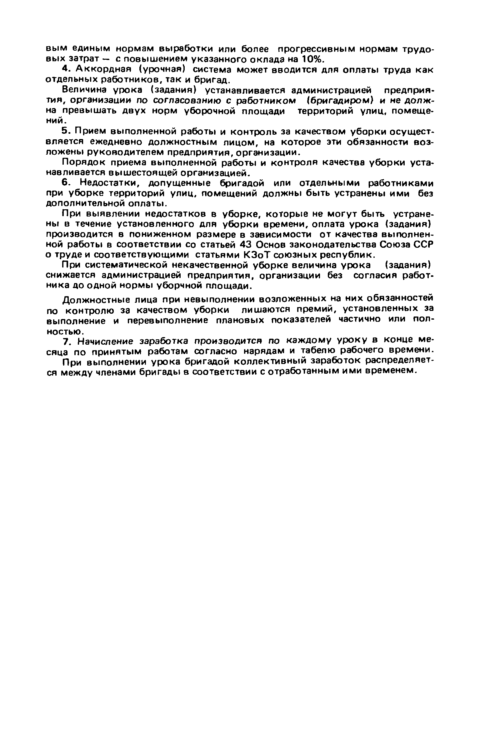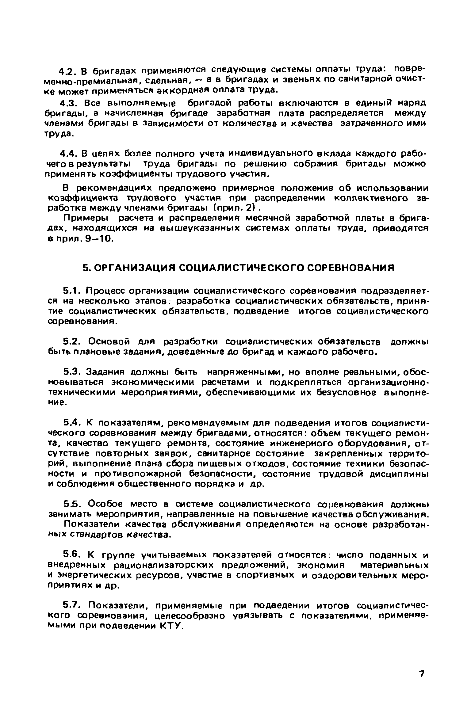 Рекомендации по бригадным формам организации труда в жилищном хозяйстве| Статус: | не действует | | Название рус.: | Рекомендации по бригадным формам организации труда в жилищном хозяйстве | | Дата добавления в базу: | 01.09.2013 | | Дата актуализации: | 01.01.2021 | | Область применения: | В документе приведены методы комплектования бригад и звеньев, обеспечивающие оптимальность их состава применительно к конкретным условиям работы в жилищных организациях. Даны примеры расчета и распределения заработной платы с применением коэффициентов трудового участия для бригад в трестах жилищного хозяйства | | Оглавление: | 1. Основные условия и принципы организации бригад 2. Организация управления бригадами 3. Организация и нормирование труда 4. Организация оплаты труда 5. Организация социалистического труда Приложение 1. Положение о производственной бригаде, бригадире, совете бригады и совете бригадиров Приложение 2. Рекомендуемое положение об использовании коэффициента трудового участия (КТУ) при распределении коллективного заработка между членами бригады Приложение 3. Рекомендуемое положение о бригаде на мастерском участке в ЖЭУ треста жилищного хозяйства Приложение 4. Рекомендуемое положение о бригаде в службе общестроительных работ треста жилищного хозяйства Приложение 5. Рекомендуемое положение о бригаде в службе санитарно-технических и специальных работ треста жилищного хозяйства Приложение 6. Рекомендуемое положение о бригаде в службе механизированной уборки и благоустройства треста жилищного хозяйства Приложение 7. Примерное положение о бригаде в дежурной ремонтной (аварийной) службе треста жилищного хозяйства Приложение 8. Рекомендуемое положение о бригаде в ЖЭУ на самостоятельном балансе (ЖЭК, домоуправление) Приложение 9. Примеры расчета и распределения месячной заработной платы бригад, находящихся на повременно-премиальной системе оплаты труда, с применением КТУ Приложение 10. Примеры расчета и распределения месячной заработной платы бригад, находящихся на аккордной оплате труда Приложение 11. Положение об аккордной (урочной) системе оплаты труда работников, занятых уборкой территорий улиц, помещений на предприятиях и в организациях жилищно-коммунального хозяйства | | Разработан: | ЛНИИ АКХ им. К.Д. Памфилова Минжилкомхоза РСФСР