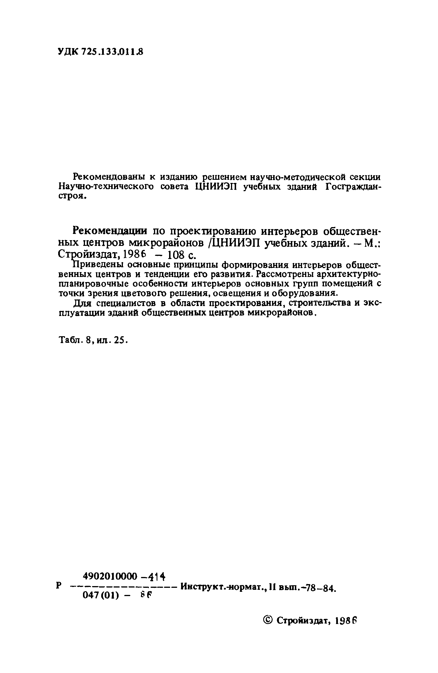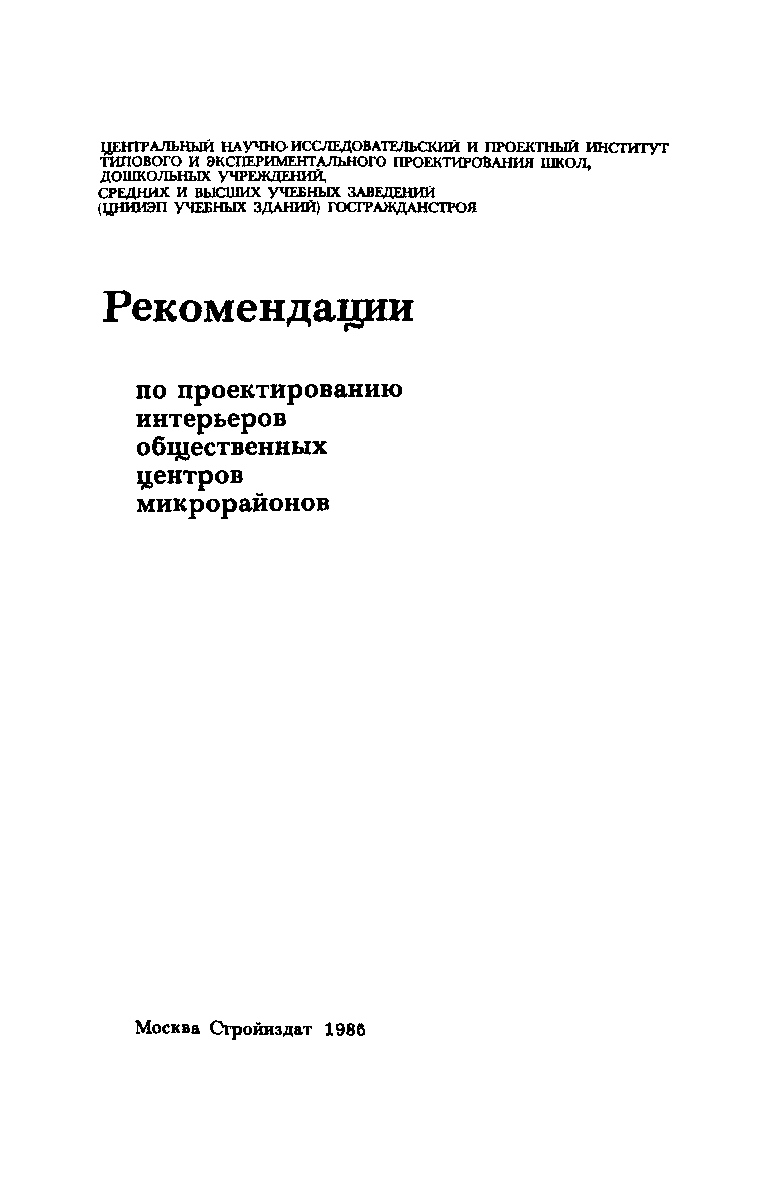 | Название рус.: | Рекомендации по проектированию интерьеров общественных центров микрорайонов |