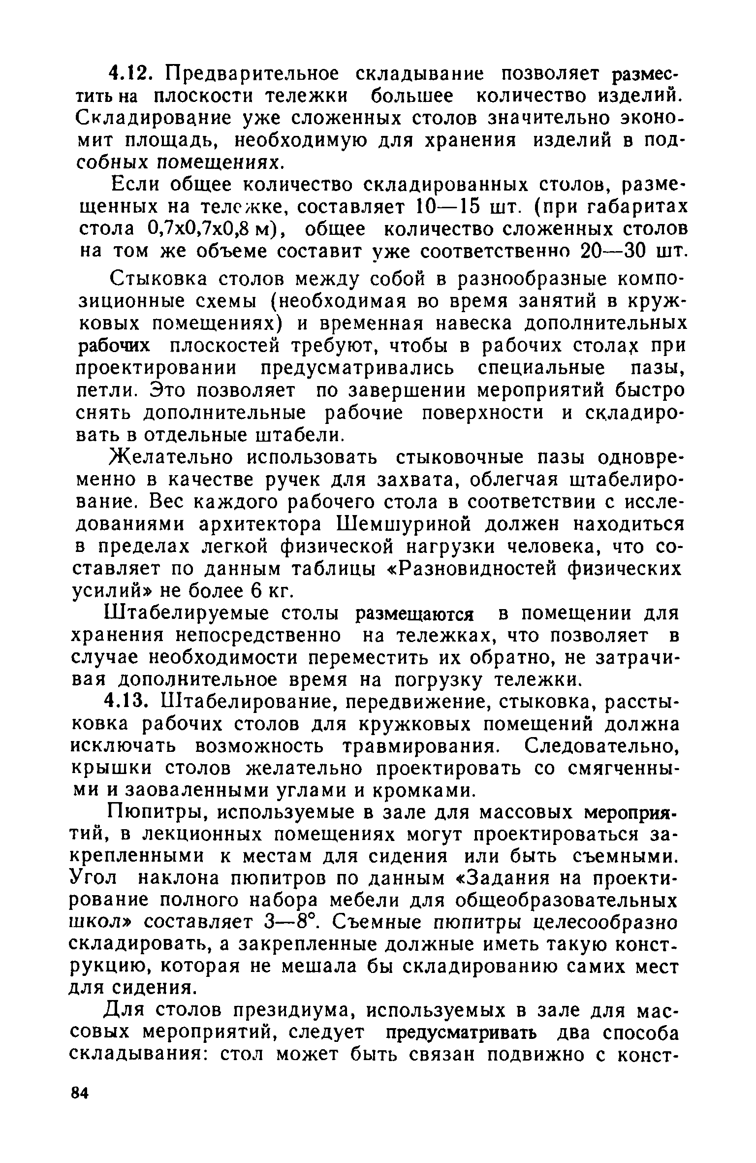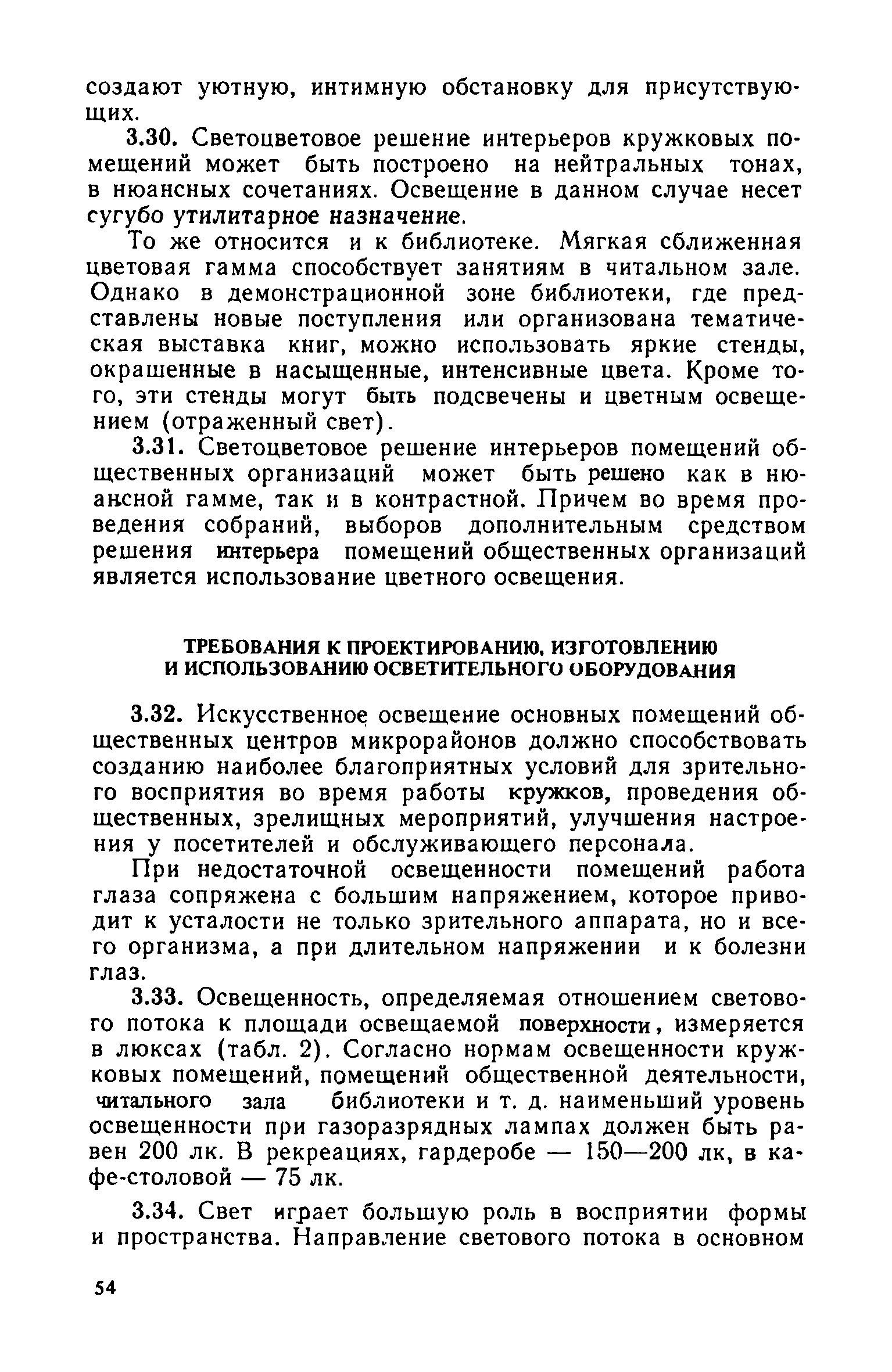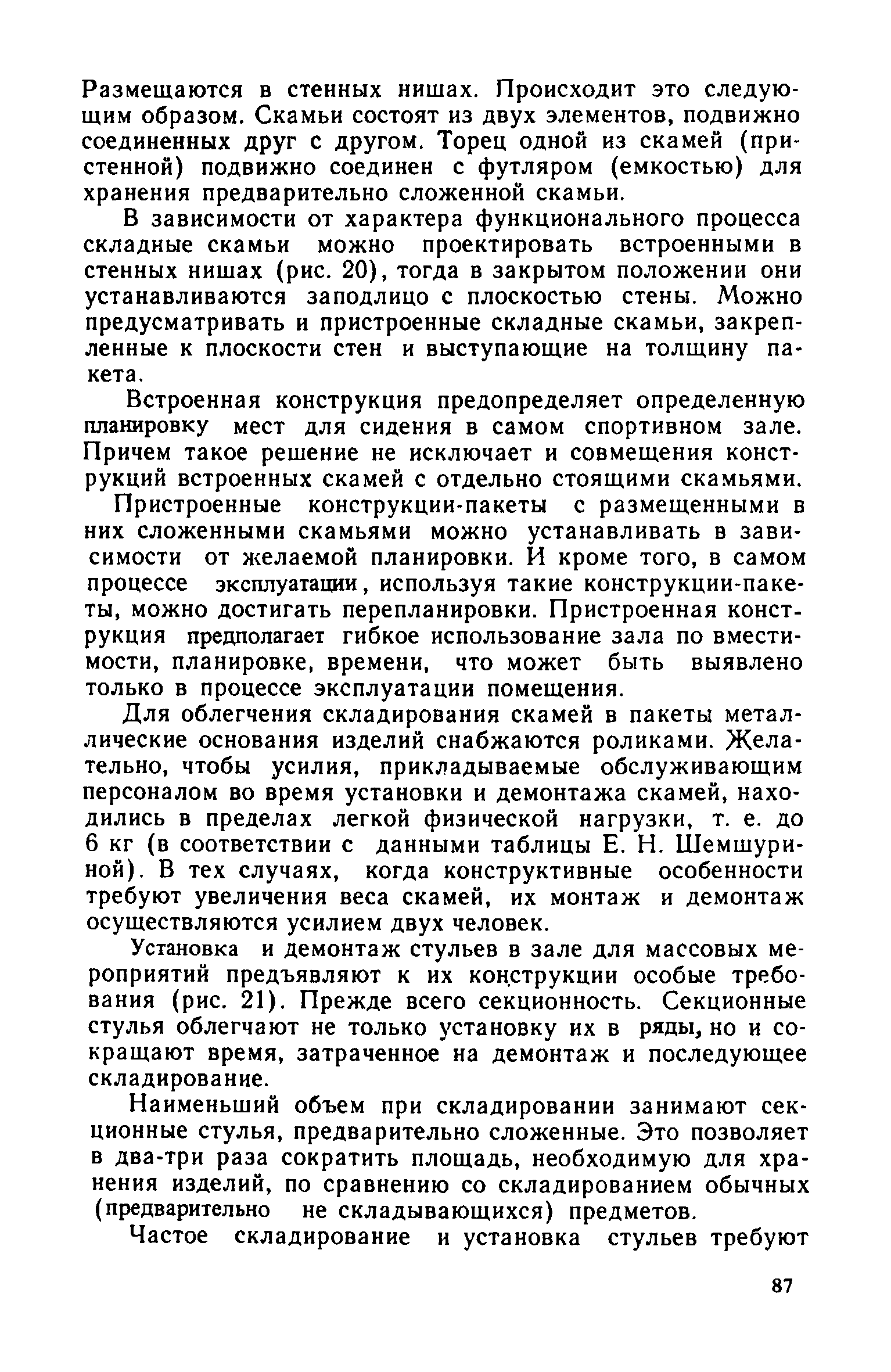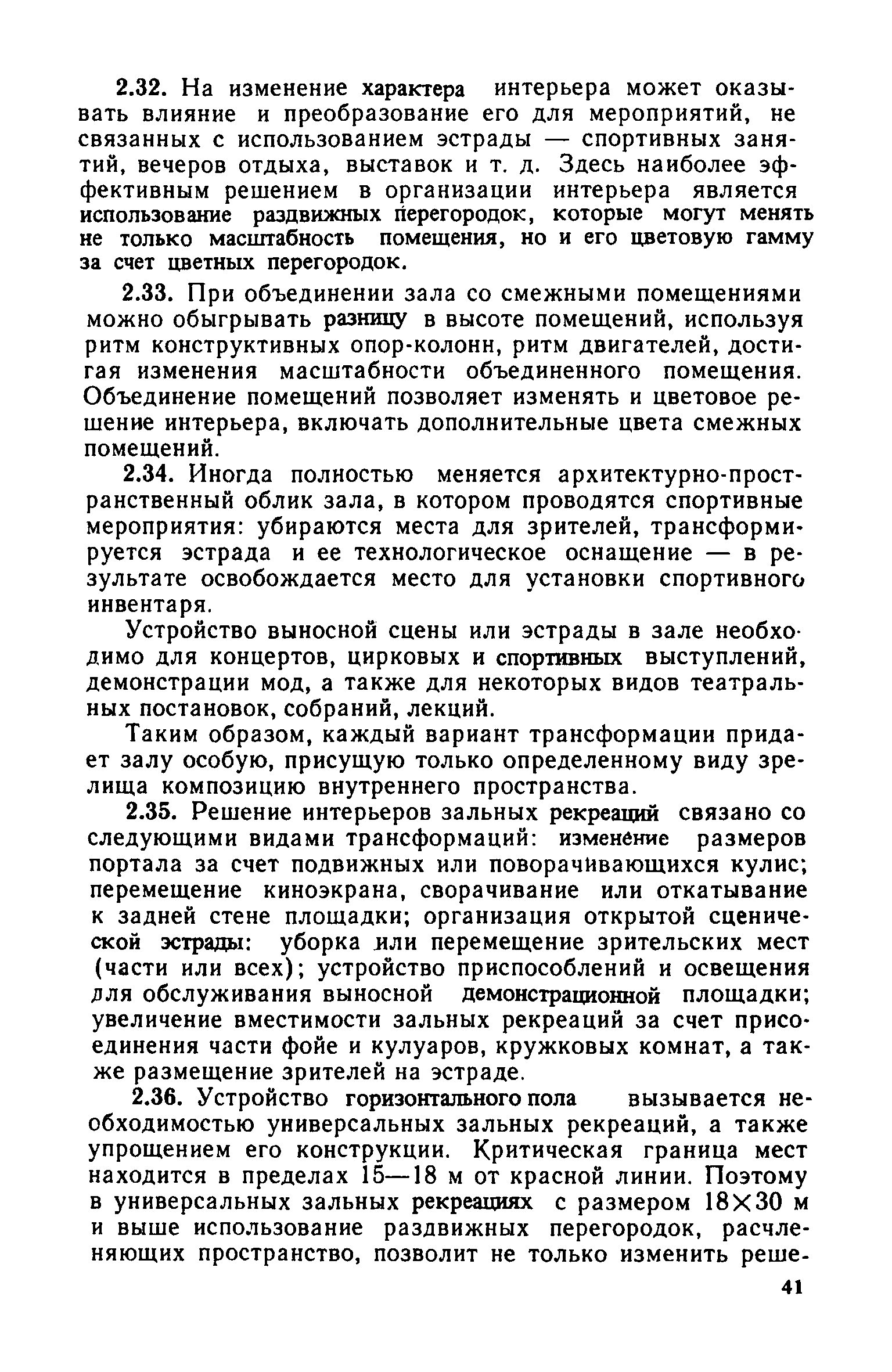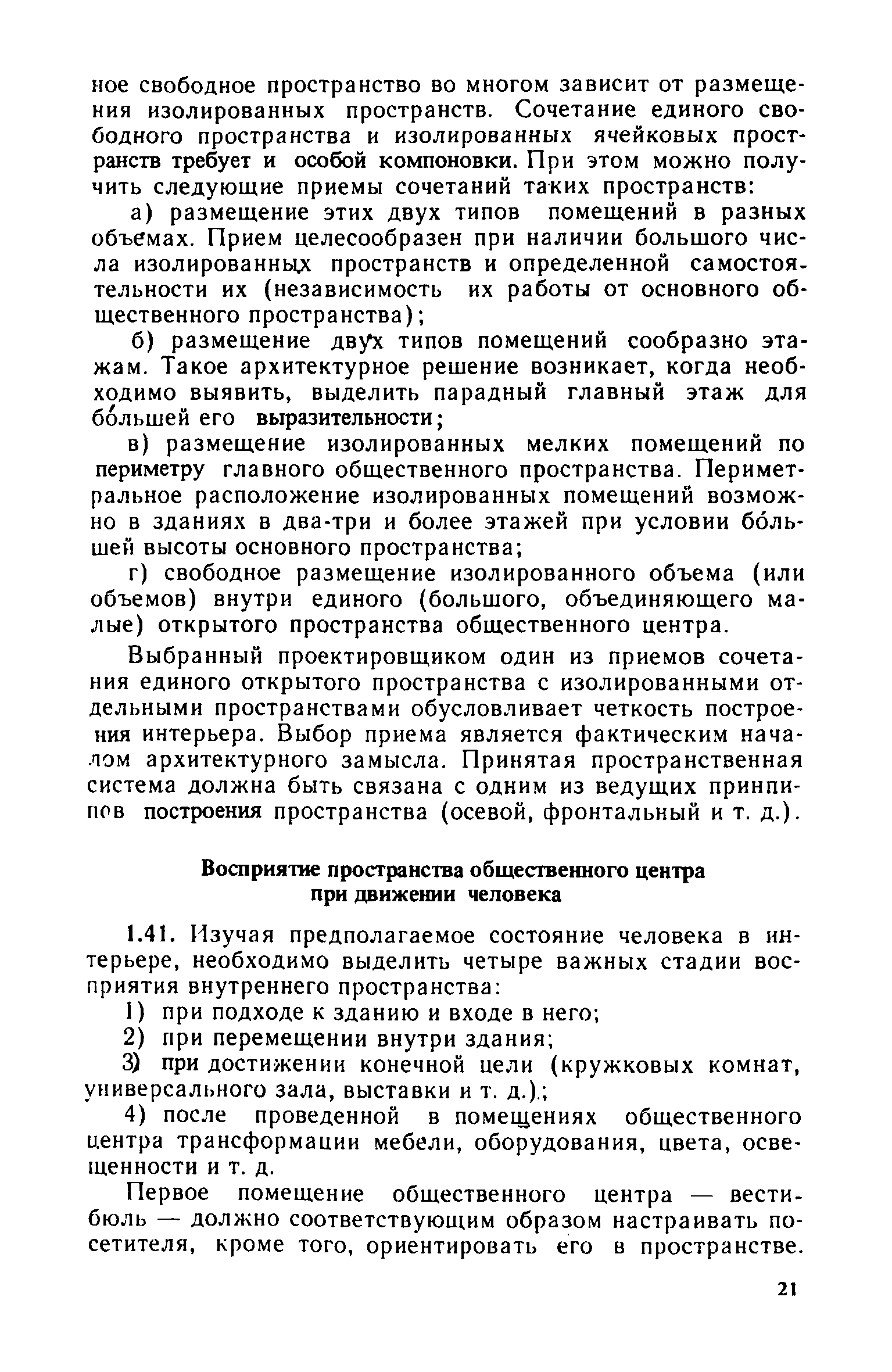 | Оглавление: | Предисловие 1. Общие принципы решения интерьеров Общие сведения о зданиях общественных центров микрорайонов Особенности эксплуатации помещений общественных зданий Общие принципы формирования пространственной среды Общие требования к проектированию интерьеров общественных зданий 2. Приемы решения интерьеров основных помещений общественных зданий Приемы решения вестибюлей Приемы решения рекреаций Приемы решения зальных помещений Приемы решения кружковых комнат Приемы решения лестничных маршей 3. Декоративно-художественные элементы интерьеров Номенклатура декоративно-художественных элементов интерьера и основные требования к ним Светоцветовое решение интерьеров Требования к проектированию, изготовлению и использованию осветительного оборудования Требования к элементам озеленения Цветовое решение интерьера помещений 4. Оборудование и мебель помещений многофункционального пользования Основные требования к проектированию оборудования и мебели Особенности проектирования оборудования и мебели для трансформации и многоцелевого использования помещений Рекомендации по вопросам многофункционального использования и способам размещения оборудования и мебели в помещениях Складирование мебели для работы на горизонтальных и наклонных поверхностях |