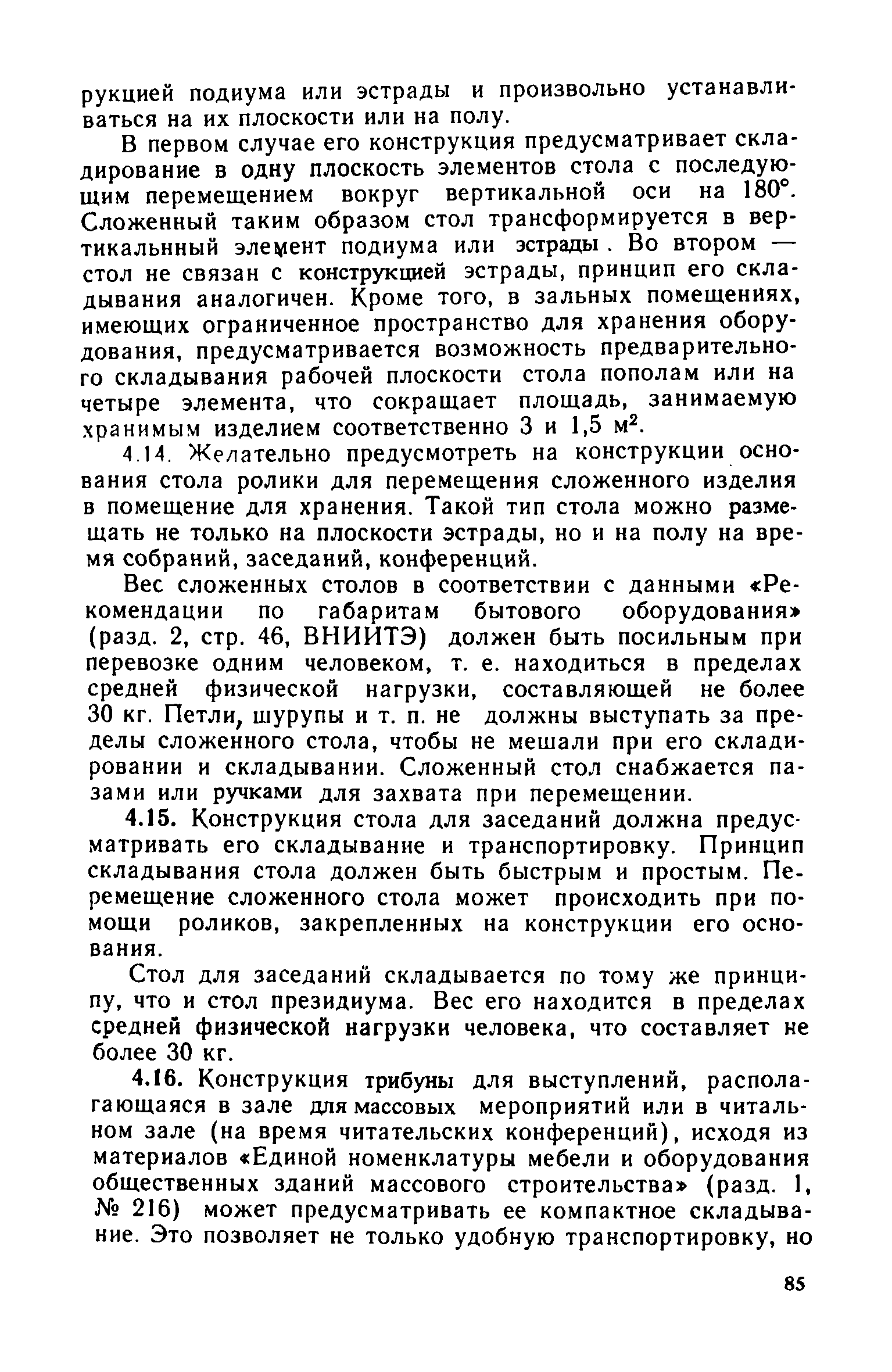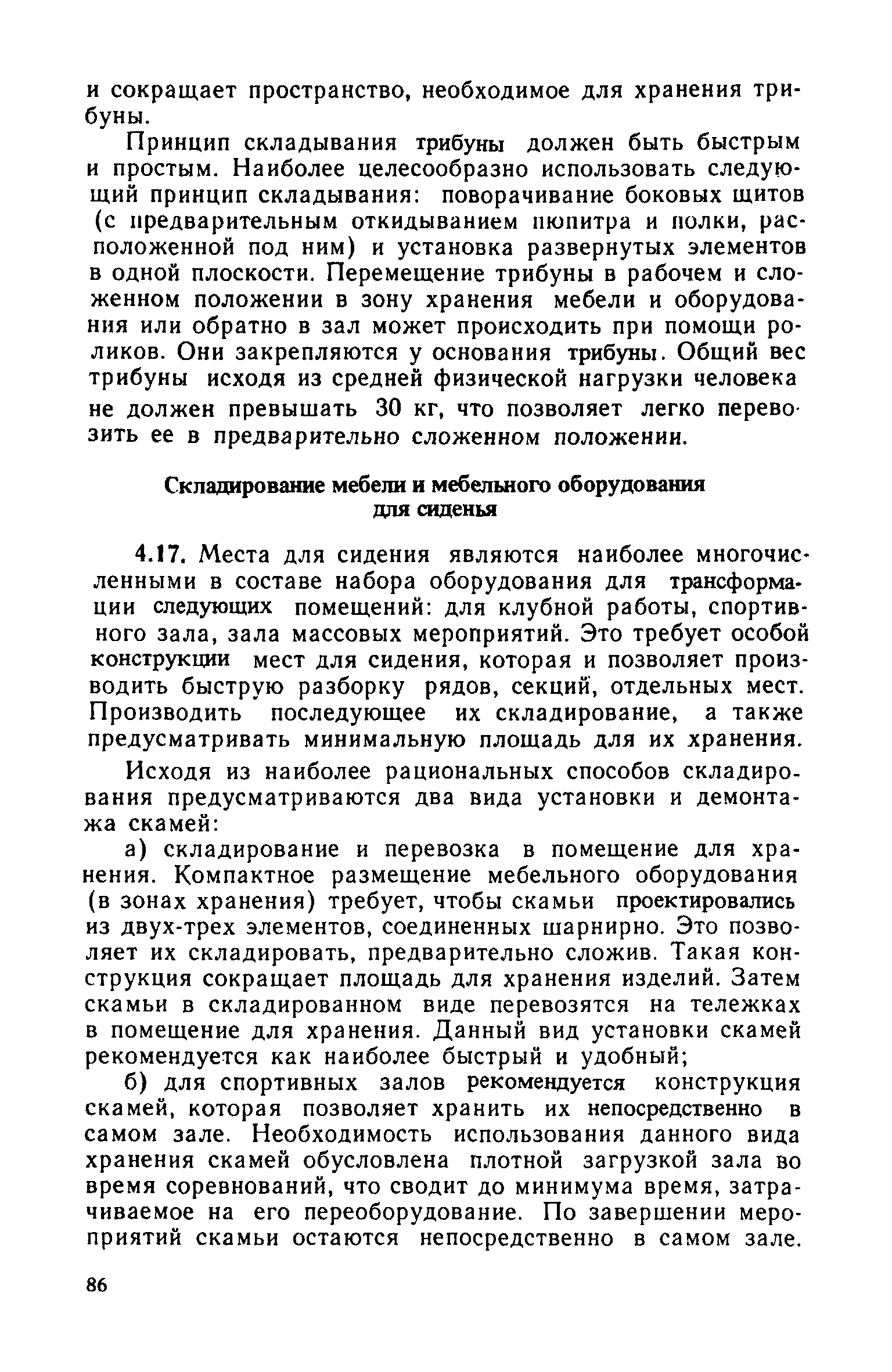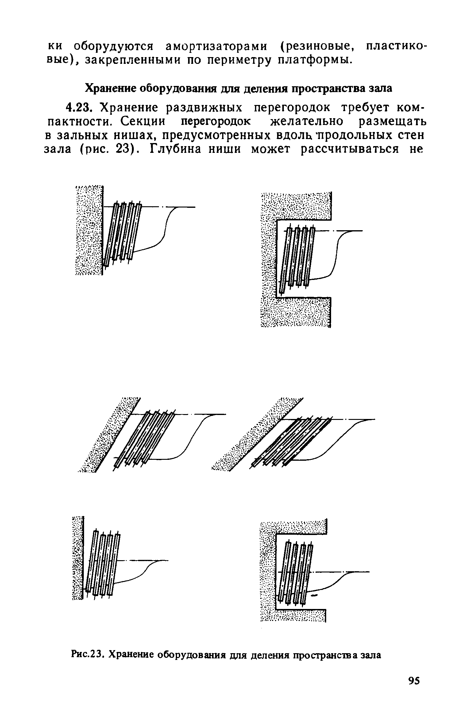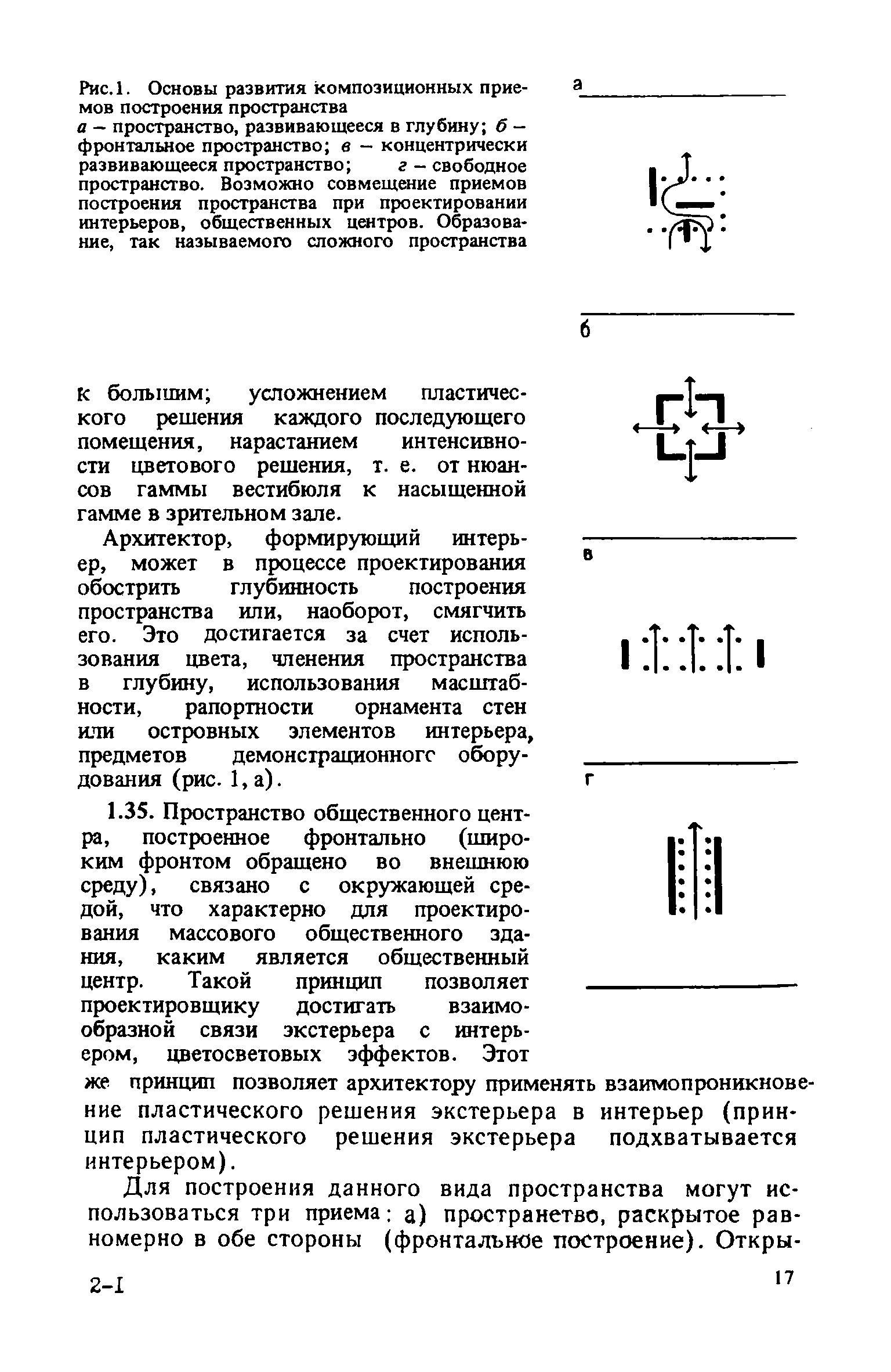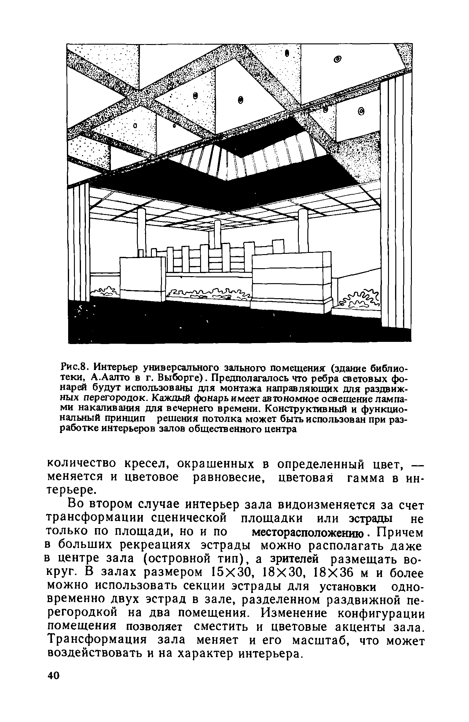 | Оглавление: | Предисловие 1. Общие принципы решения интерьеров Общие сведения о зданиях общественных центров микрорайонов Особенности эксплуатации помещений общественных зданий Общие принципы формирования пространственной среды Общие требования к проектированию интерьеров общественных зданий 2. Приемы решения интерьеров основных помещений общественных зданий Приемы решения вестибюлей Приемы решения рекреаций Приемы решения зальных помещений Приемы решения кружковых комнат Приемы решения лестничных маршей 3. Декоративно-художественные элементы интерьеров Номенклатура декоративно-художественных элементов интерьера и основные требования к ним Светоцветовое решение интерьеров Требования к проектированию, изготовлению и использованию осветительного оборудования Требования к элементам озеленения Цветовое решение интерьера помещений 4. Оборудование и мебель помещений многофункционального пользования Основные требования к проектированию оборудования и мебели Особенности проектирования оборудования и мебели для трансформации и многоцелевого использования помещений Рекомендации по вопросам многофункционального использования и способам размещения оборудования и мебели в помещениях Складирование мебели для работы на горизонтальных и наклонных поверхностях |