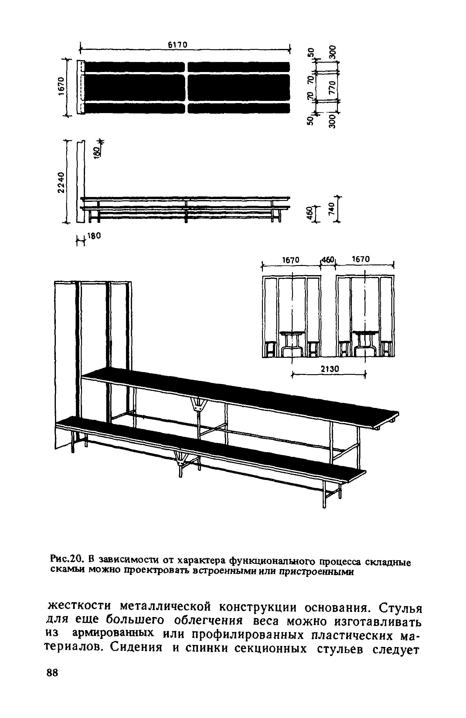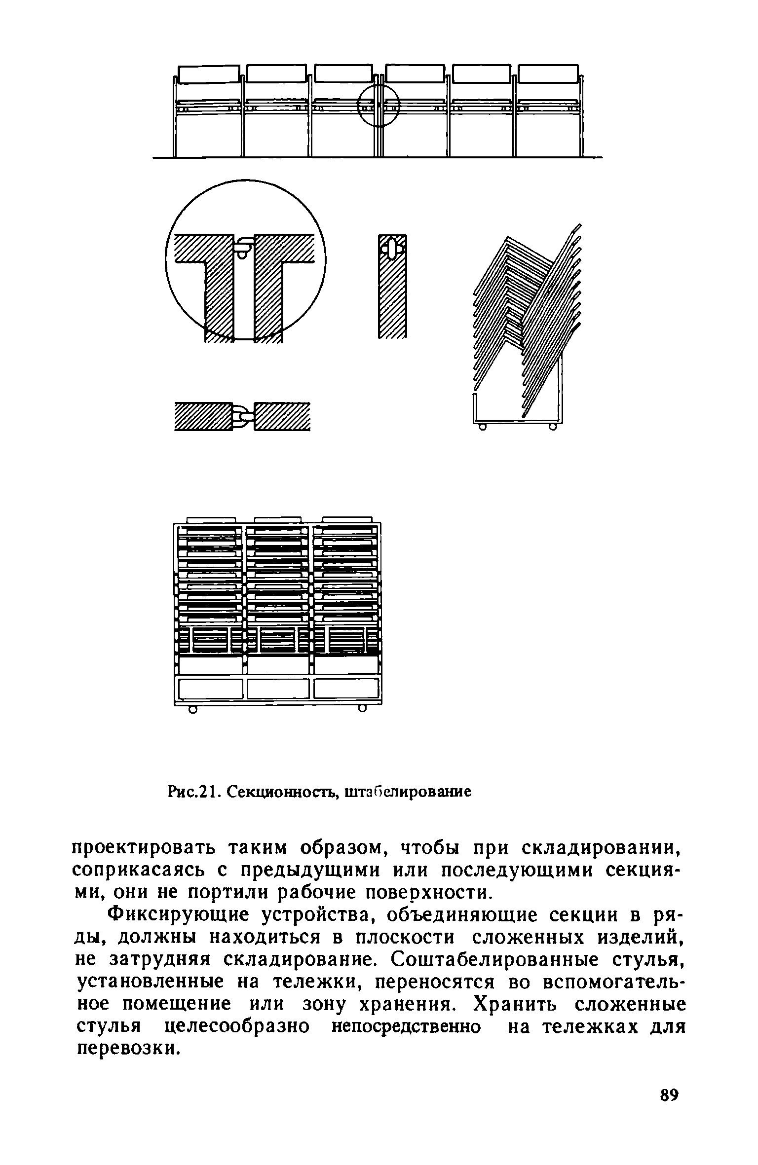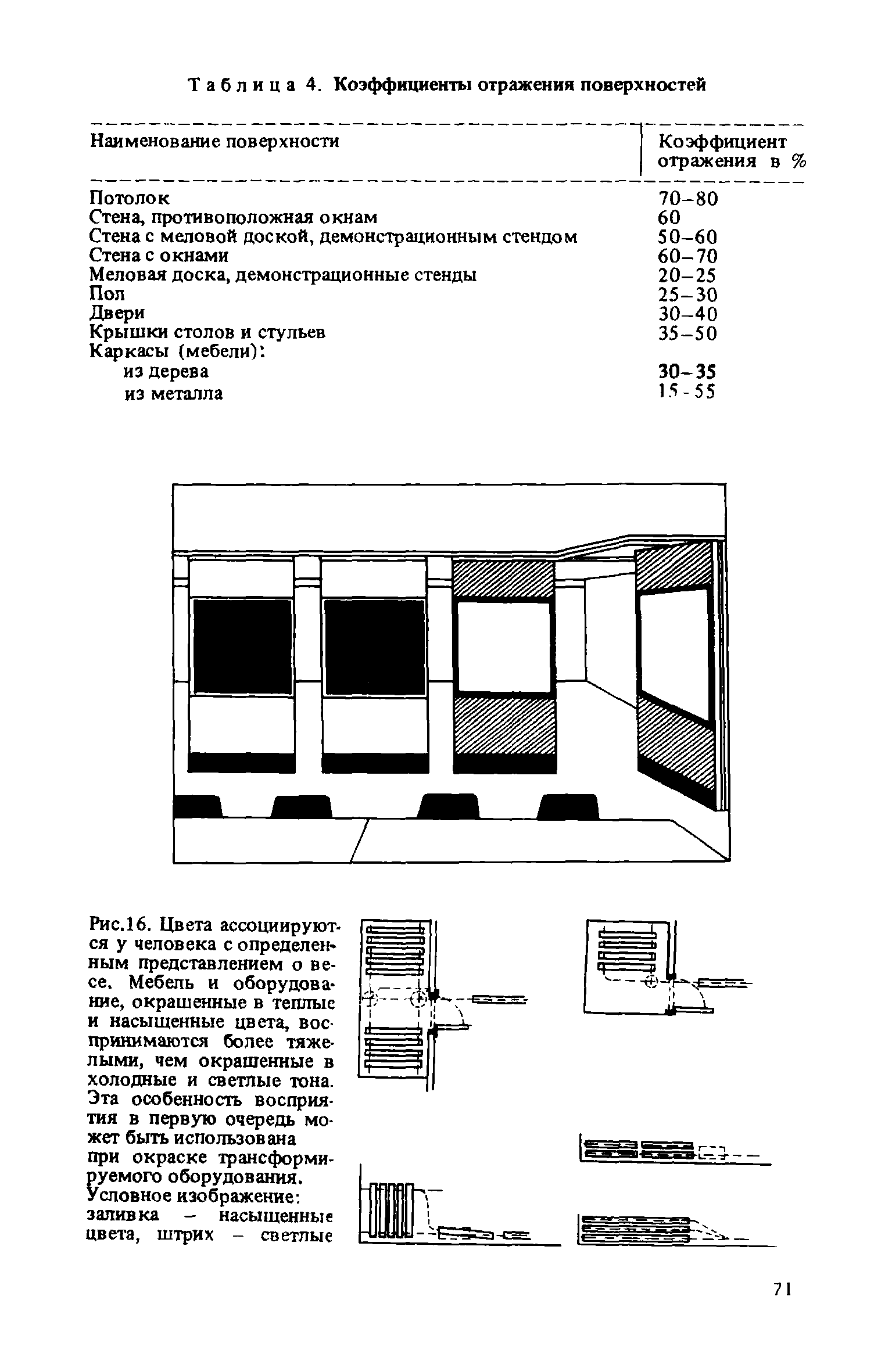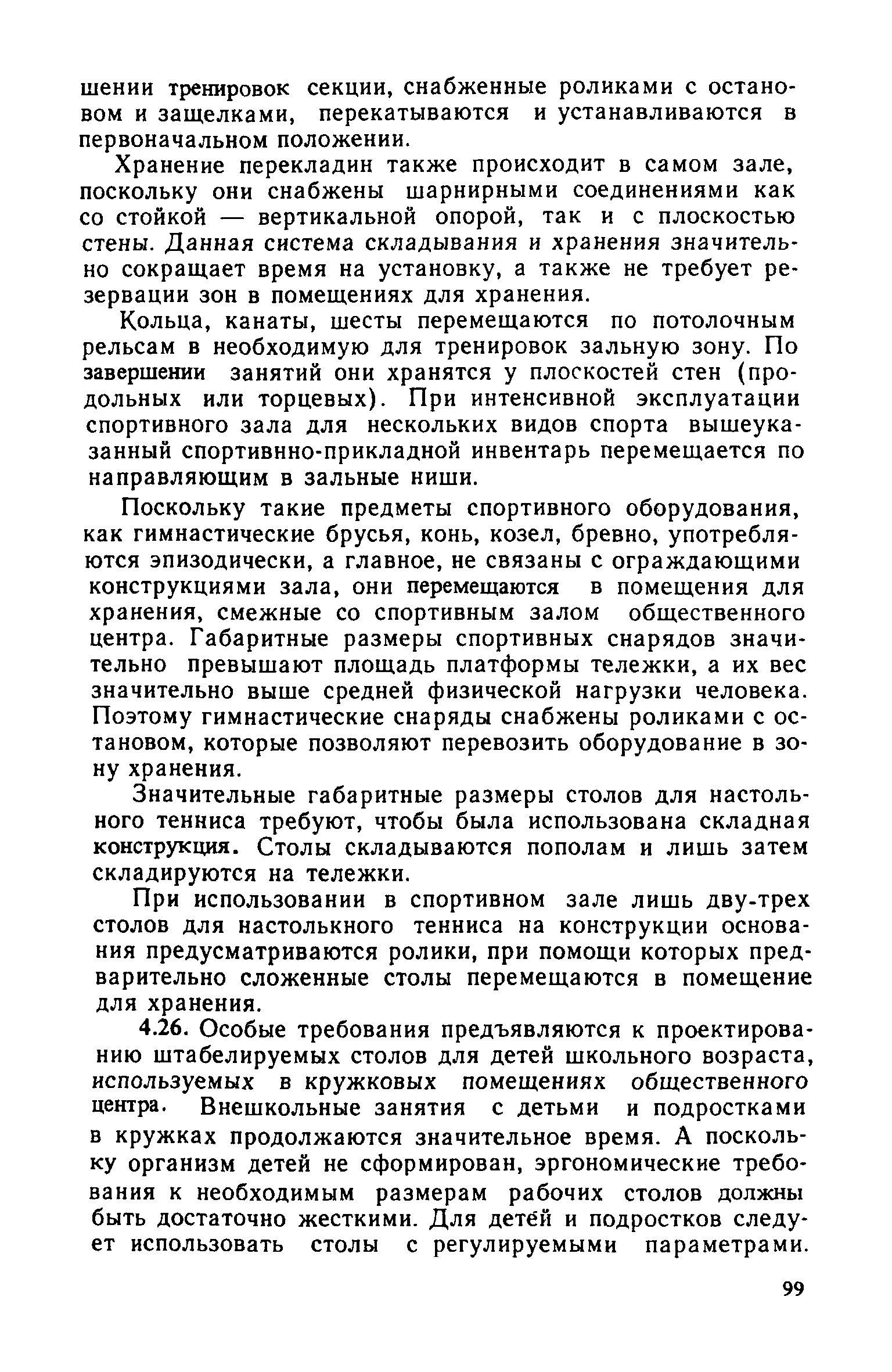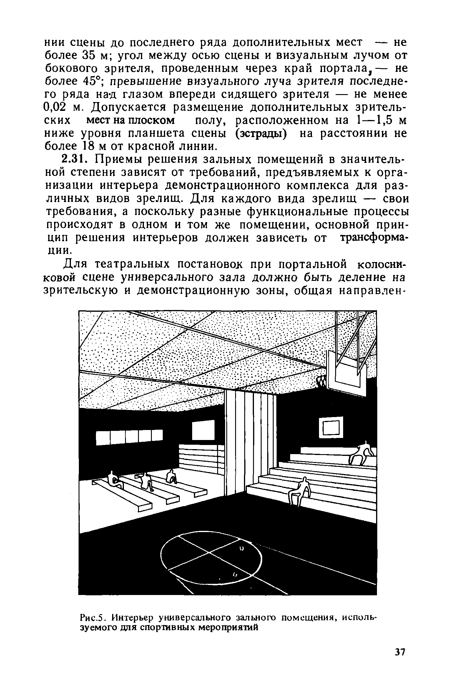 | Оглавление: | Предисловие 1. Общие принципы решения интерьеров Общие сведения о зданиях общественных центров микрорайонов Особенности эксплуатации помещений общественных зданий Общие принципы формирования пространственной среды Общие требования к проектированию интерьеров общественных зданий 2. Приемы решения интерьеров основных помещений общественных зданий Приемы решения вестибюлей Приемы решения рекреаций Приемы решения зальных помещений Приемы решения кружковых комнат Приемы решения лестничных маршей 3. Декоративно-художественные элементы интерьеров Номенклатура декоративно-художественных элементов интерьера и основные требования к ним Светоцветовое решение интерьеров Требования к проектированию, изготовлению и использованию осветительного оборудования Требования к элементам озеленения Цветовое решение интерьера помещений 4. Оборудование и мебель помещений многофункционального пользования Основные требования к проектированию оборудования и мебели Особенности проектирования оборудования и мебели для трансформации и многоцелевого использования помещений Рекомендации по вопросам многофункционального использования и способам размещения оборудования и мебели в помещениях Складирование мебели для работы на горизонтальных и наклонных поверхностях |