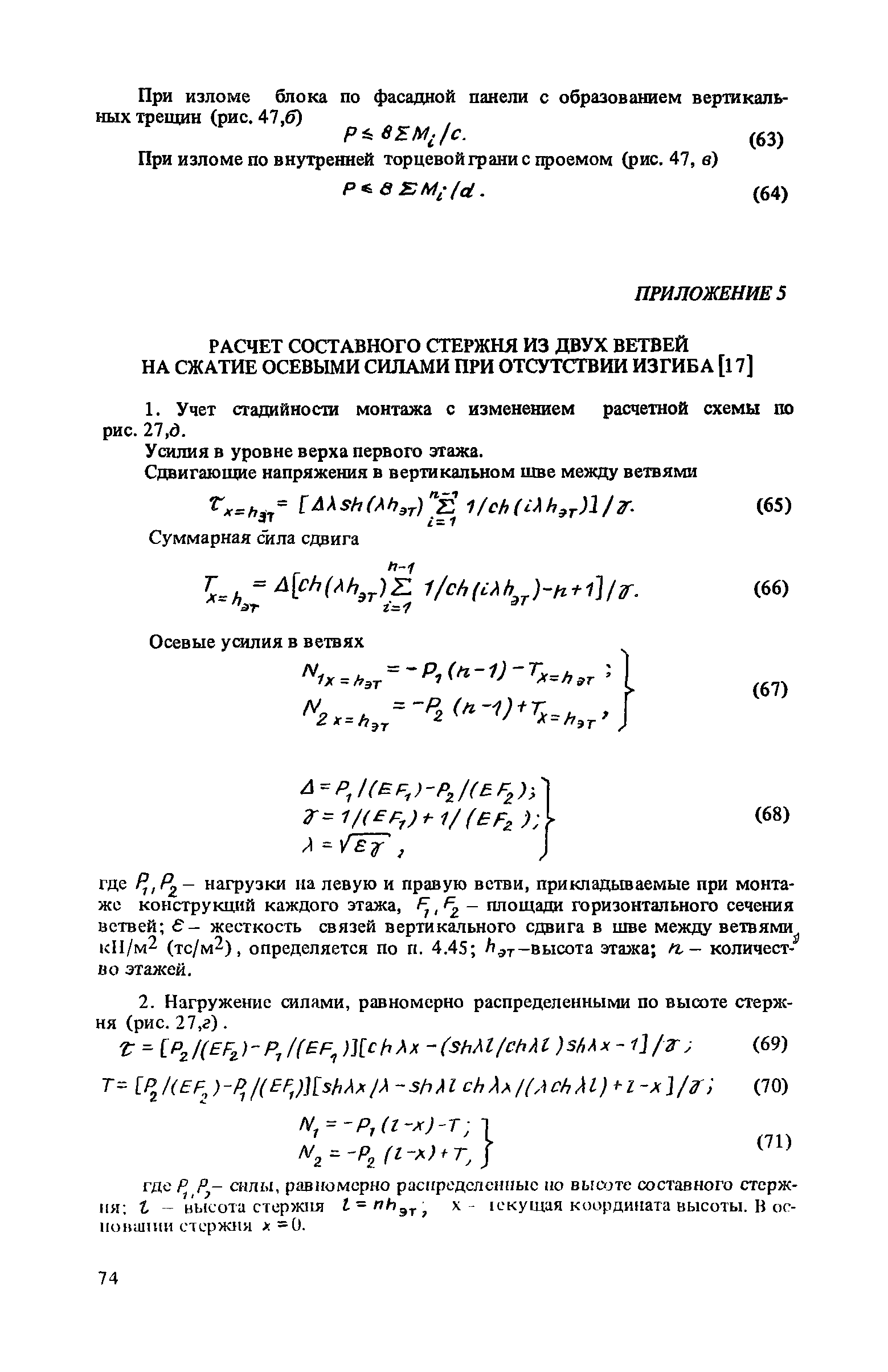 | Оглавление: | 1. Общая часть 2. Конструктивные решения панельно-блочных зданий Конструктивная схема Модульная координация и привязка объемных блоков и пространственных элементов к планировочным осям 3. Конструктивные решения объемных блоков и пространственных элементов Номенклатура и типоразмеры изделий Материалы для конструкций зданий Конструкция объемных блоков Армирование объемных блоков Наружные стены зданий Узлы, стыки, связи зданий с применением объемных блоков Лестнично-лифтовые узлы Лоджии, балконы, эркеры Прочие элементы зданий Принципы изготовления объемных блоков и пространственных элементов Особенности транспортирования блоков и пространственных элементов и монтажа зданий 4. Расчеты конструкций зданий Нагрузки и воздействия Расчет на эксплуатационные воздействия Определение усилий в плоскостях граней элементов зданий Определение эксцентриситетов действия вертикальных сил из плоскости граней Проверка несущей способности стен Расчет на транспортные и монтажные воздействия Расчет на аварийные воздействия Жесткостные характеристики связей 5. Технико-экономические основы конструирования зданий с применением несущих бетонных объемных блоков Основные методические положения технико-экономической оценки Проектные технико-экономические показатели зданий Технико-экономические обоснования создания производственной базы для строительства зданий с применением объемных блоков Технико-экономическое обоснование выбора конструктивных систем здания и определения рациональных областей их применения Приложение 1. Рекомендации по расчету малых объемных блоков Приложение 2. Расчет симметричной рамы с дополнительными связями на поперечный изгиб Приложение 3. Предельная несущая способность внецентренно-сжатых бетонных сечений стен Приложение 4. Формулы для приближенного расчета объемных блоков по деформациям и в стадии предельного равновесия Приложение 5. Расчет составного стержня из двух ветвей на сжатие осевыми силами при отсутствии изгиба Приложение 6. Пример расчета блок-секции Приложение 7. Определение прогибов консольных диафрагм жестокости от единичной горизонтальной нагрузки Приложение 8. Применение метода конечных элементов (МКЭ) и метода пространственных конечных элементов (МПКЭ) для пространственного расчета отдельных объемных блоков на поперечный изгиб Список литературы |