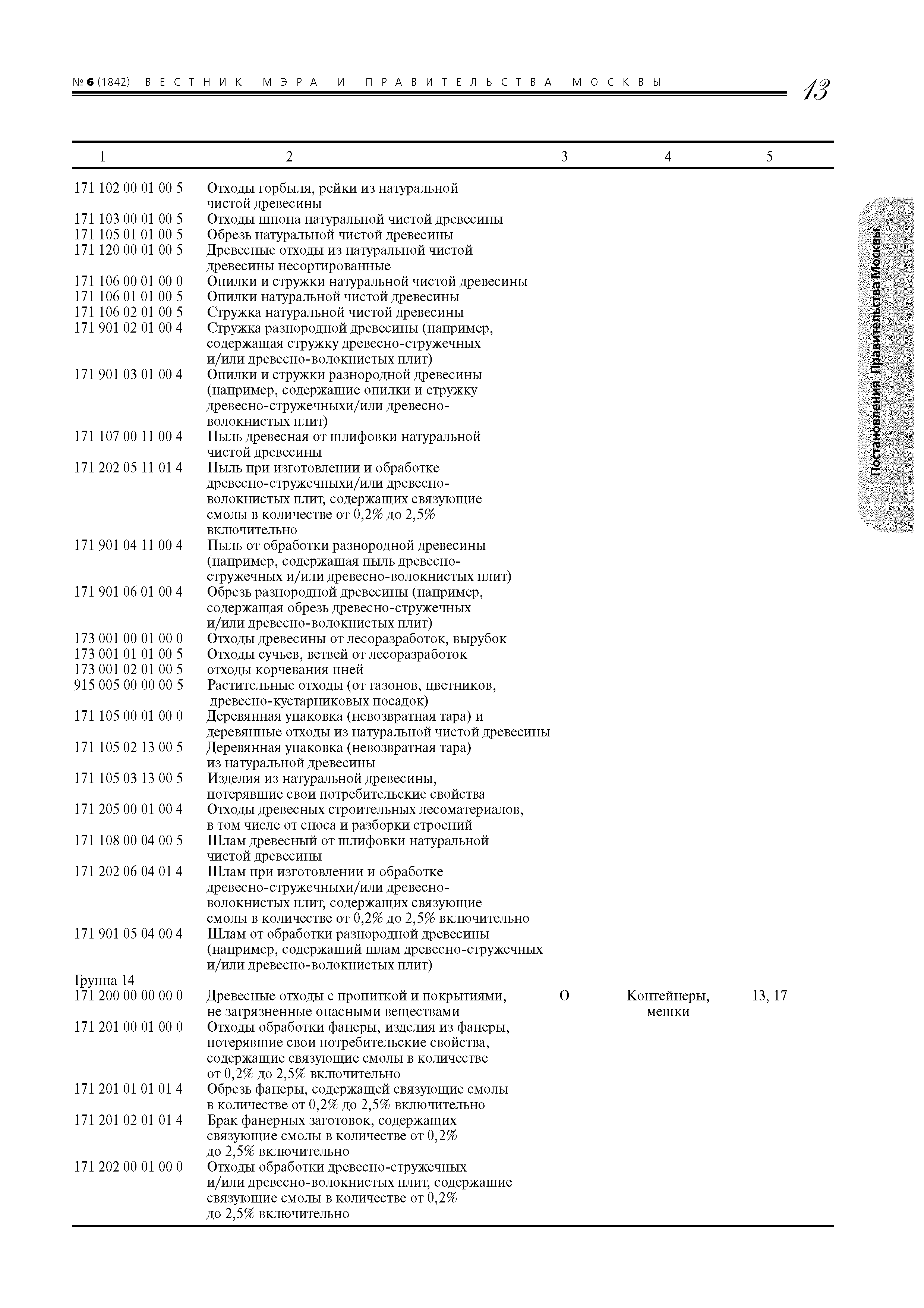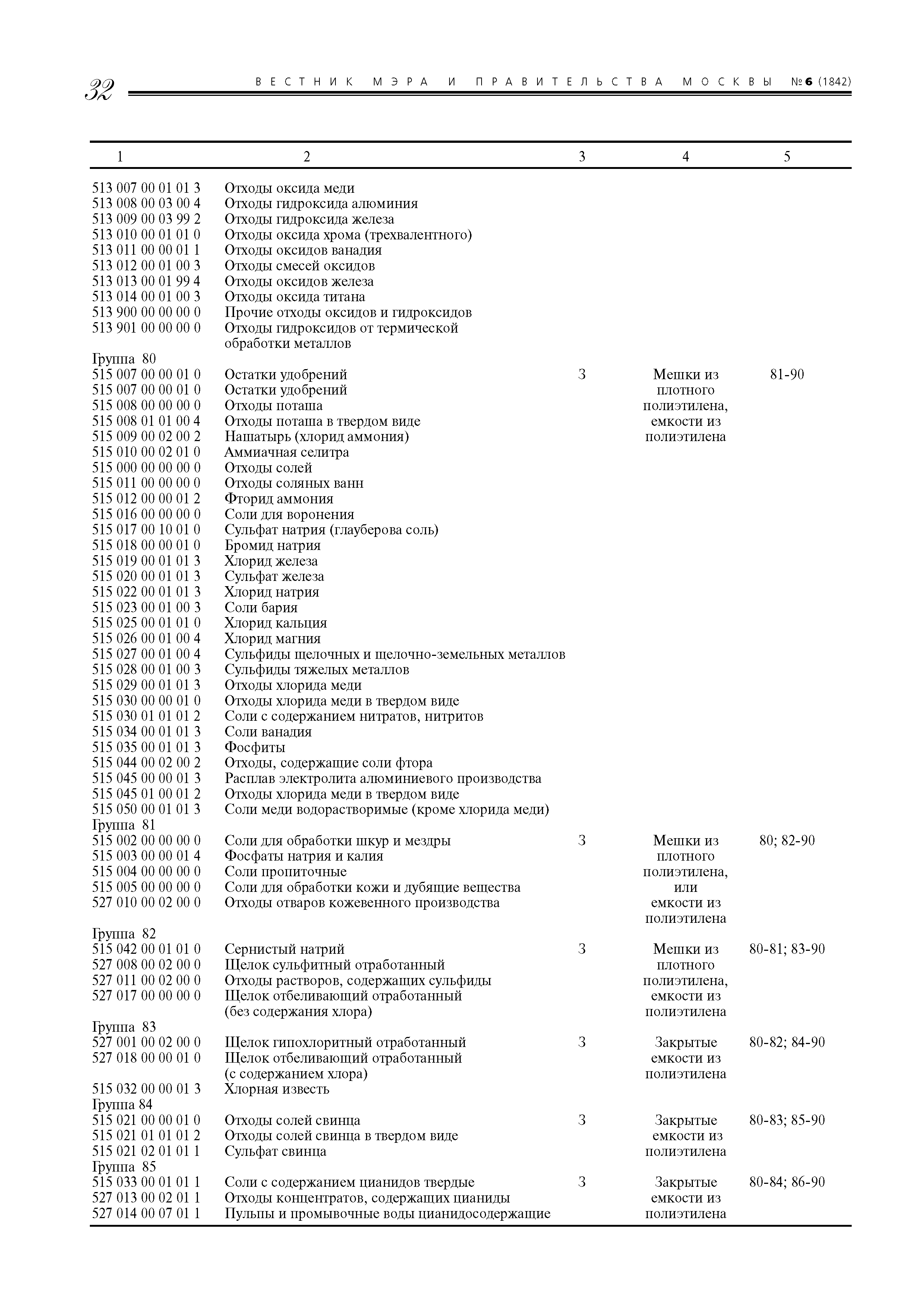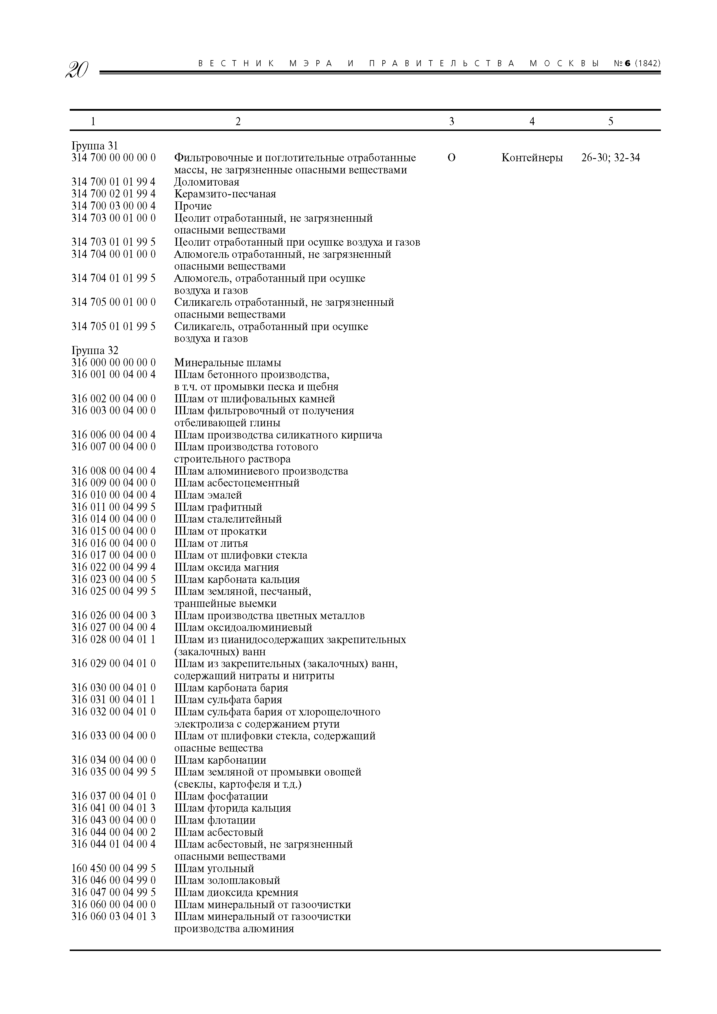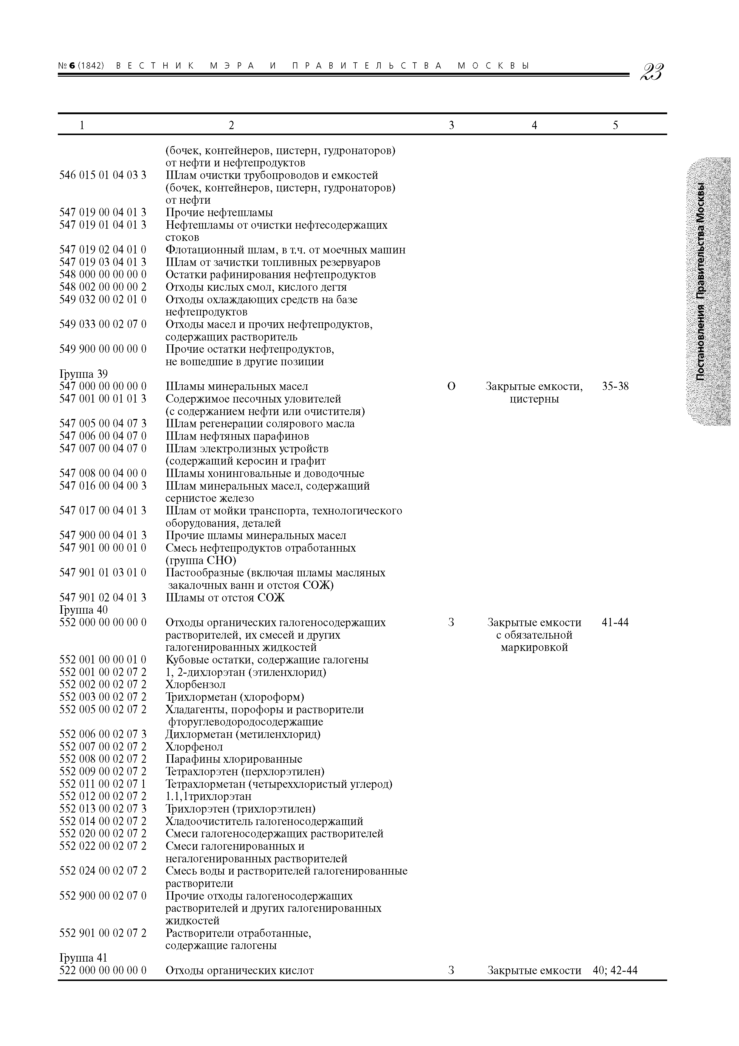 | Оглавление: | 1. Область применения 2. Основные понятия и определения (в соответствии с Межгосударственным стандартом ГОСТ 30772-2001), введенным в действие постановлением Госстандарта РФ от 28.12.2001 № 607-СТ 3. Общие требования к организации временного хранения отходов производства и потребления 4. Требования к организации площадок временного хранения отходов производства и потребления на территориях природопользователей Таблица 1. Группировка отходов по однотипности требований к оборудованию мест временного хранения Таблица 2. Классификационный каталог отходов производства и потребления города Москвы с указанием номеров групп по условиям хранения отходов |