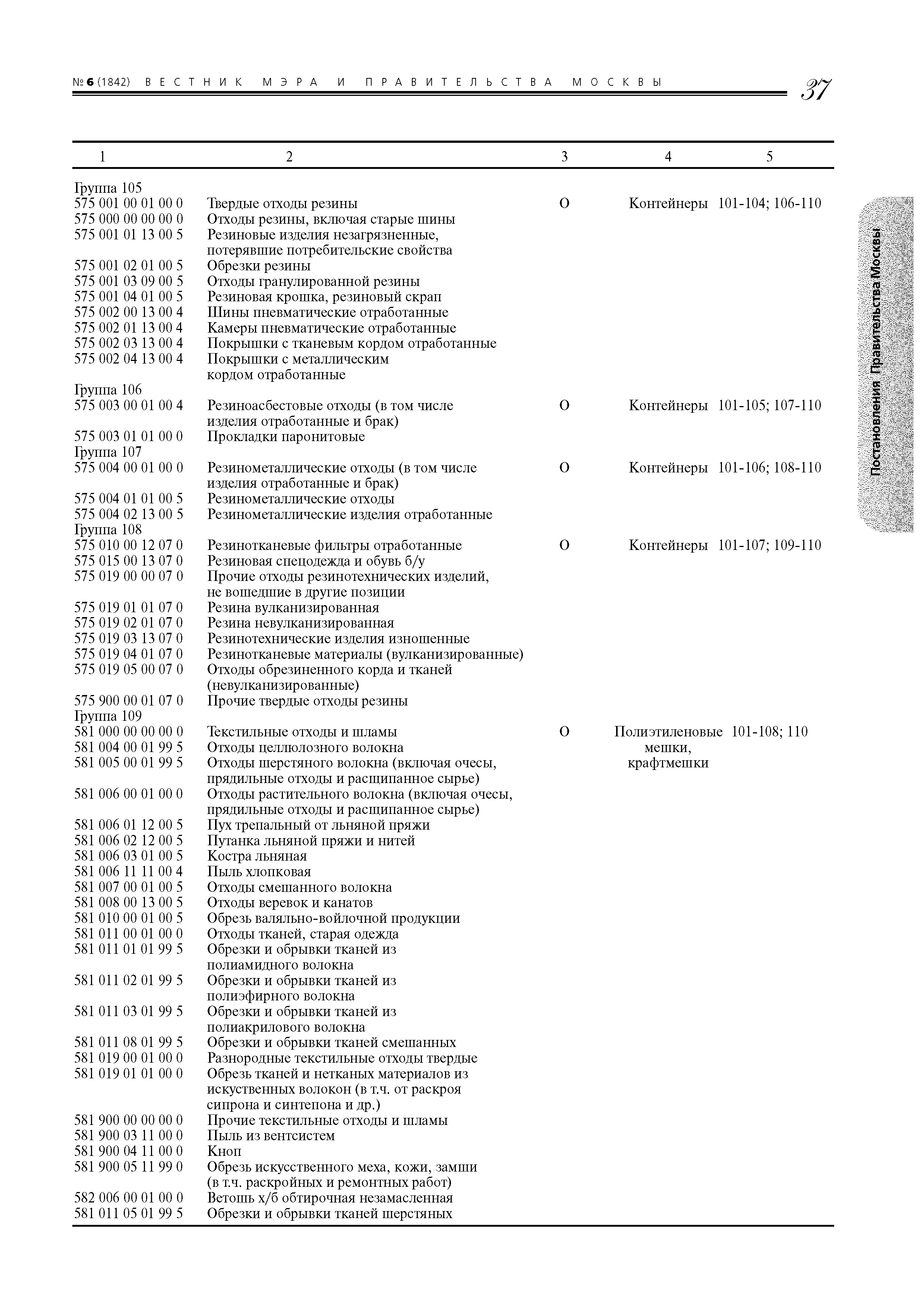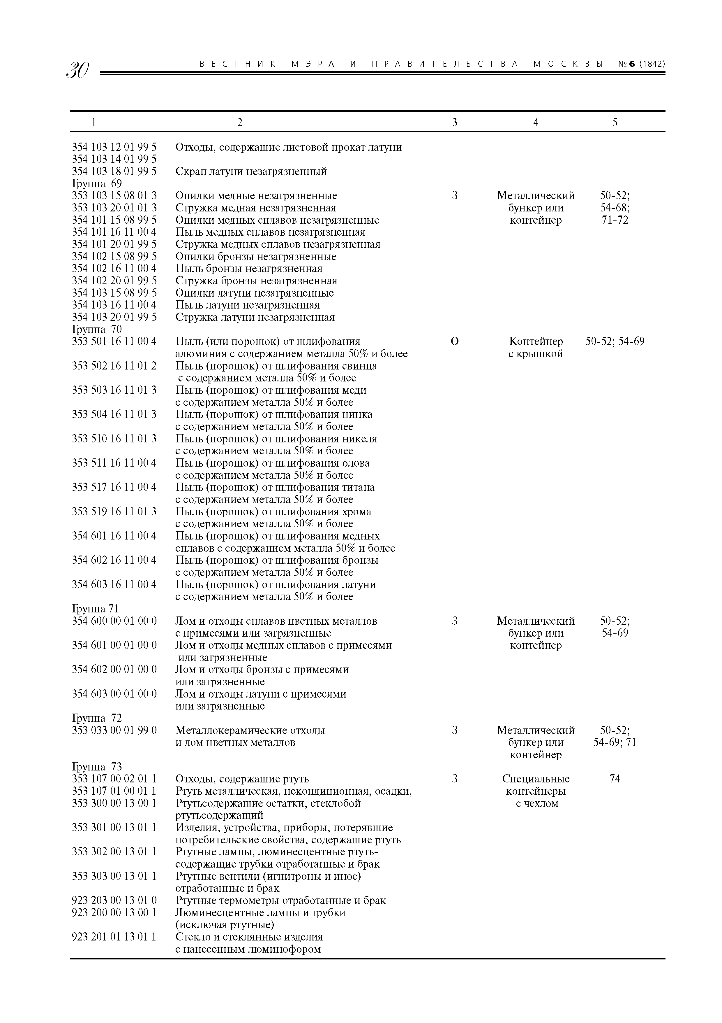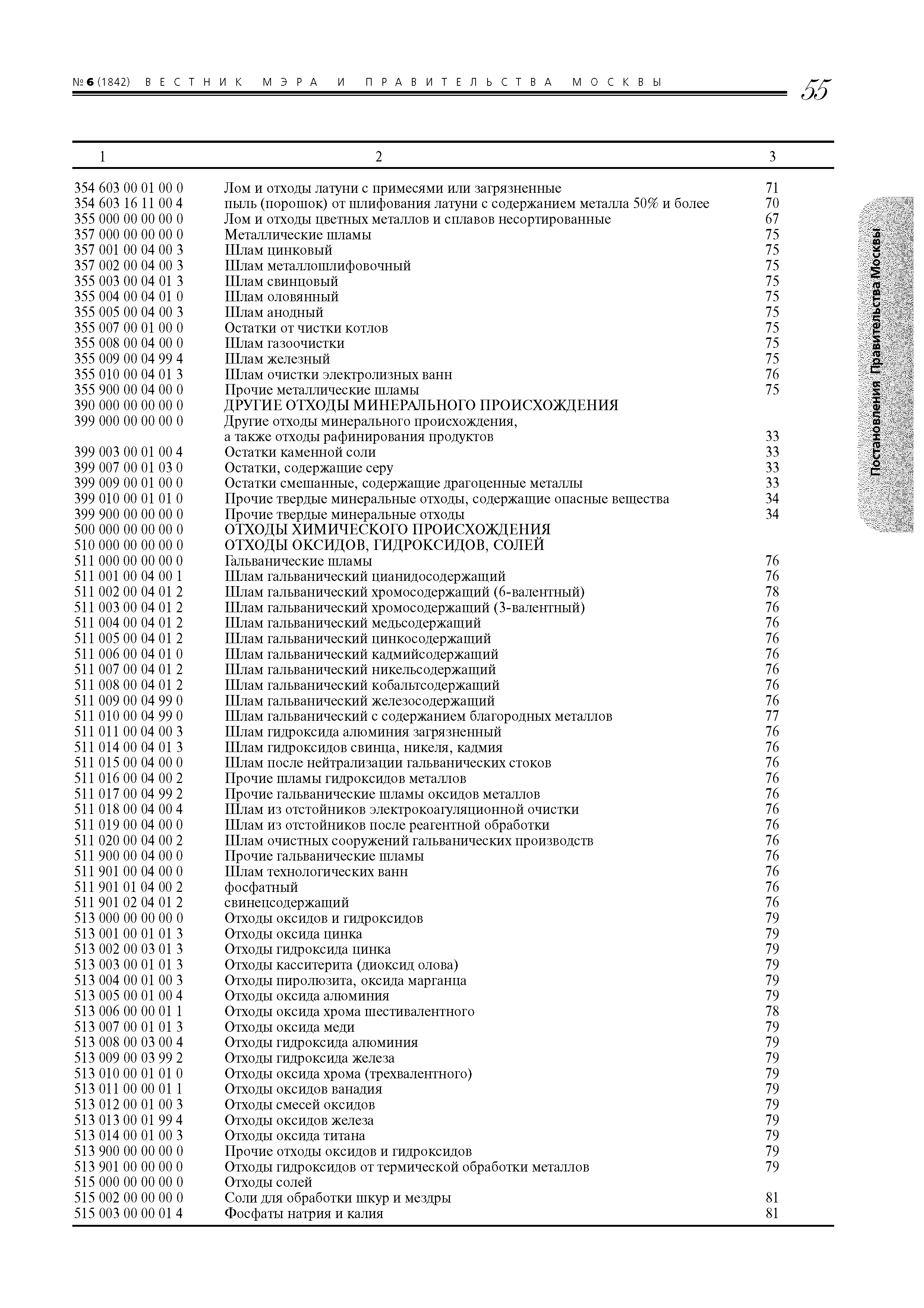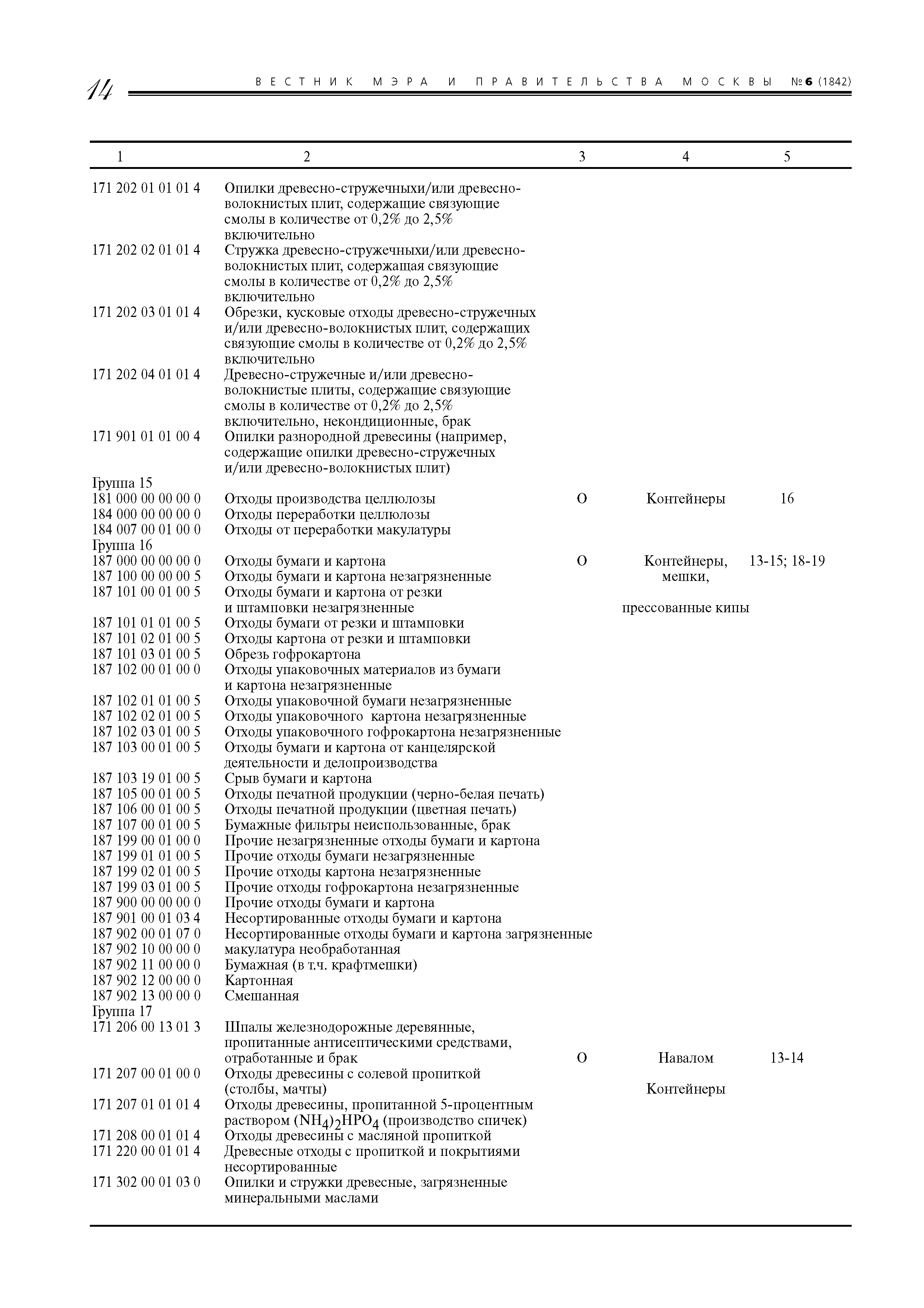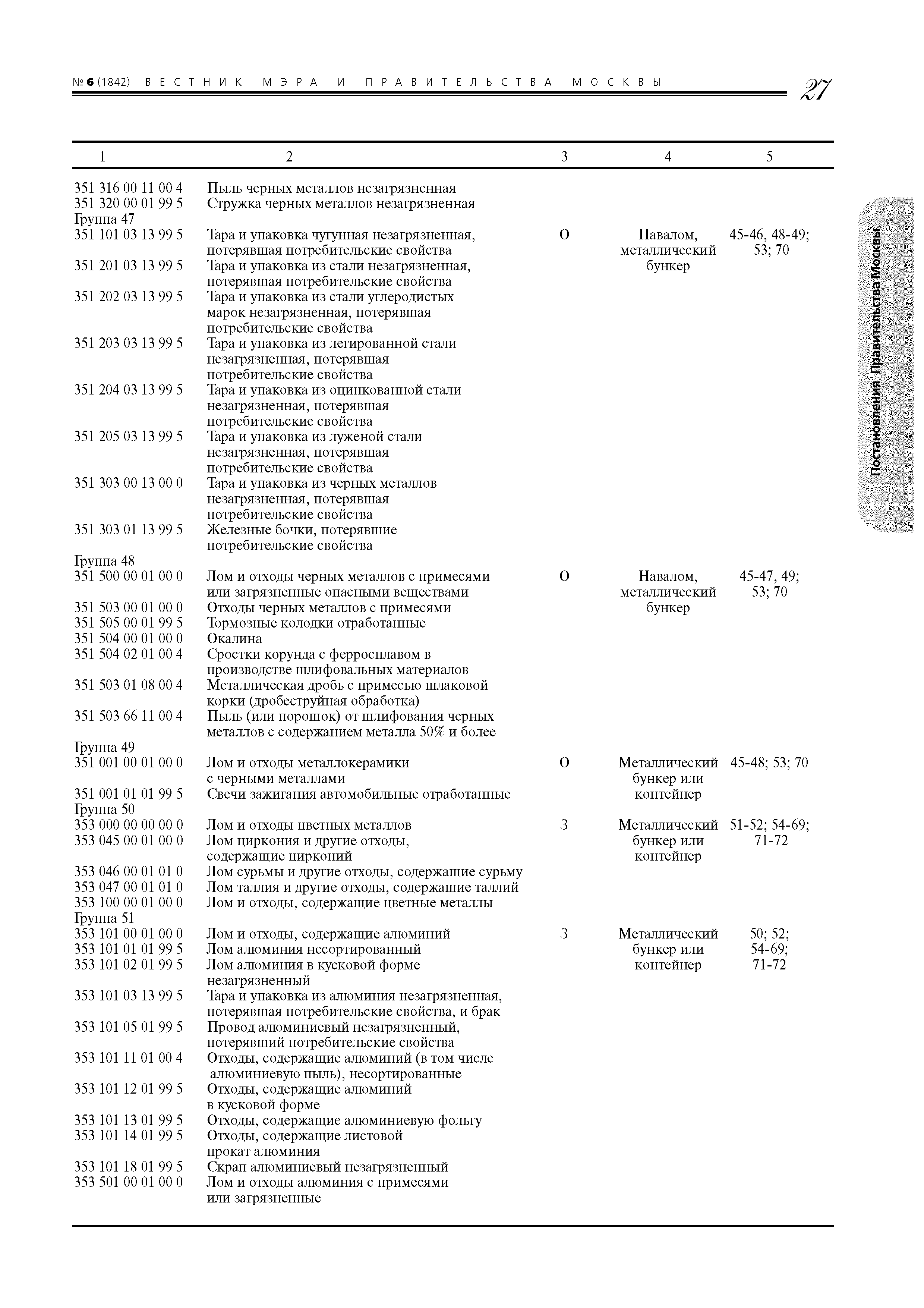 | Оглавление: | 1. Область применения 2. Основные понятия и определения (в соответствии с Межгосударственным стандартом ГОСТ 30772-2001), введенным в действие постановлением Госстандарта РФ от 28.12.2001 № 607-СТ 3. Общие требования к организации временного хранения отходов производства и потребления 4. Требования к организации площадок временного хранения отходов производства и потребления на территориях природопользователей Таблица 1. Группировка отходов по однотипности требований к оборудованию мест временного хранения Таблица 2. Классификационный каталог отходов производства и потребления города Москвы с указанием номеров групп по условиям хранения отходов |