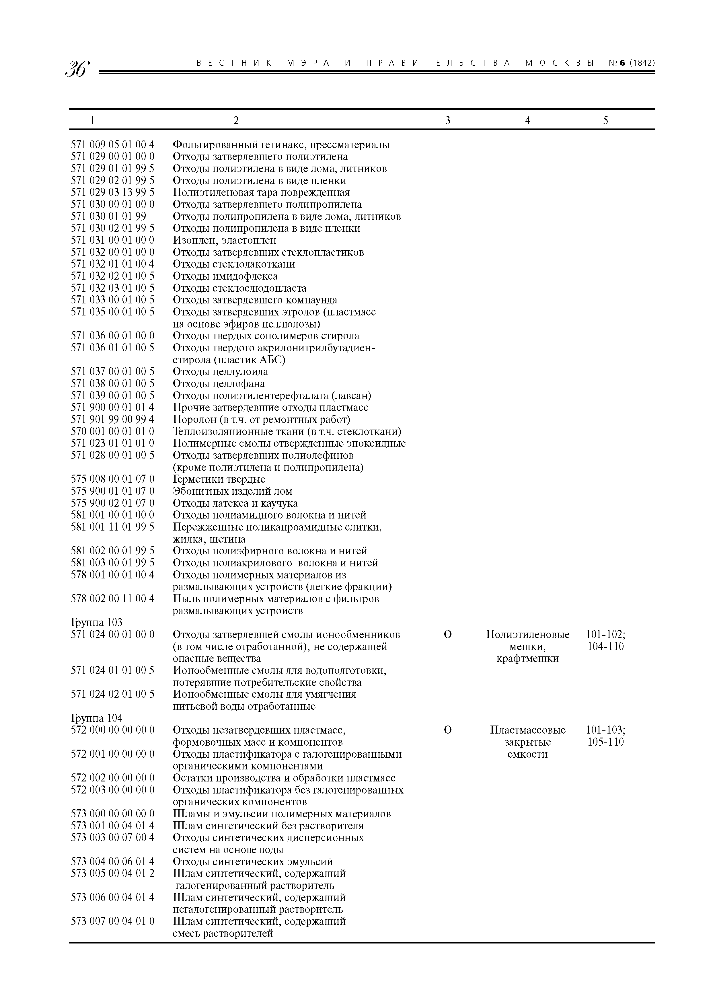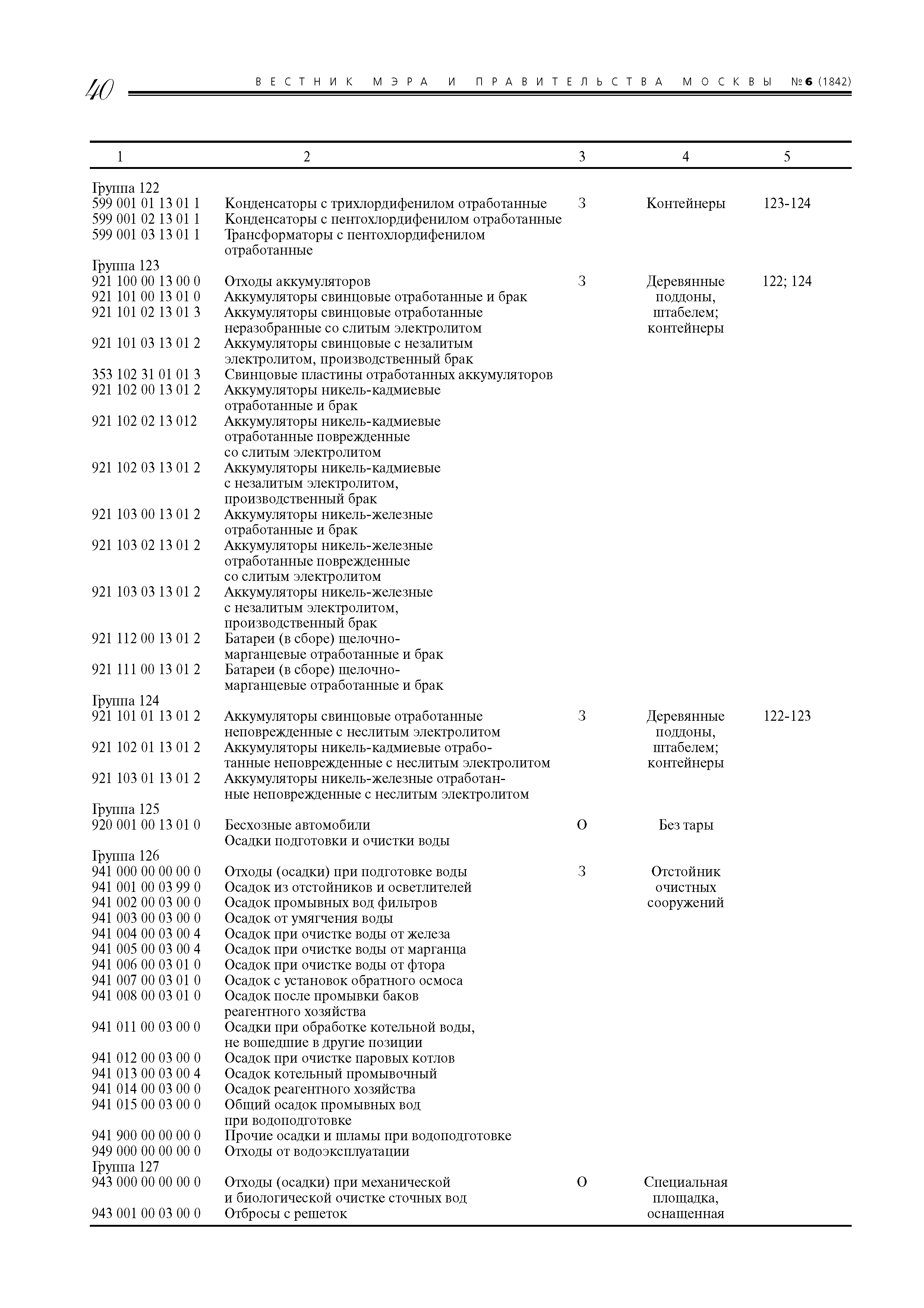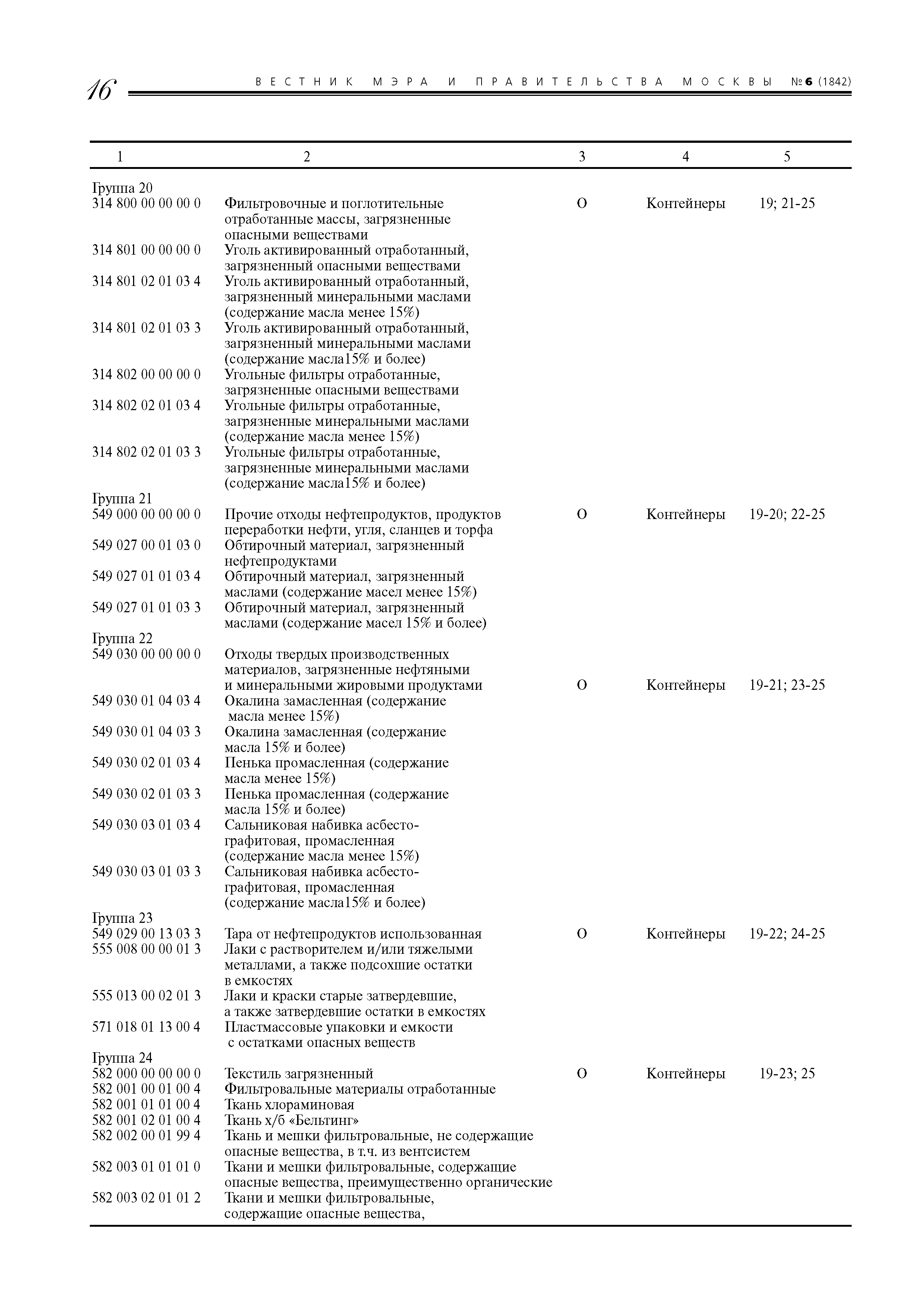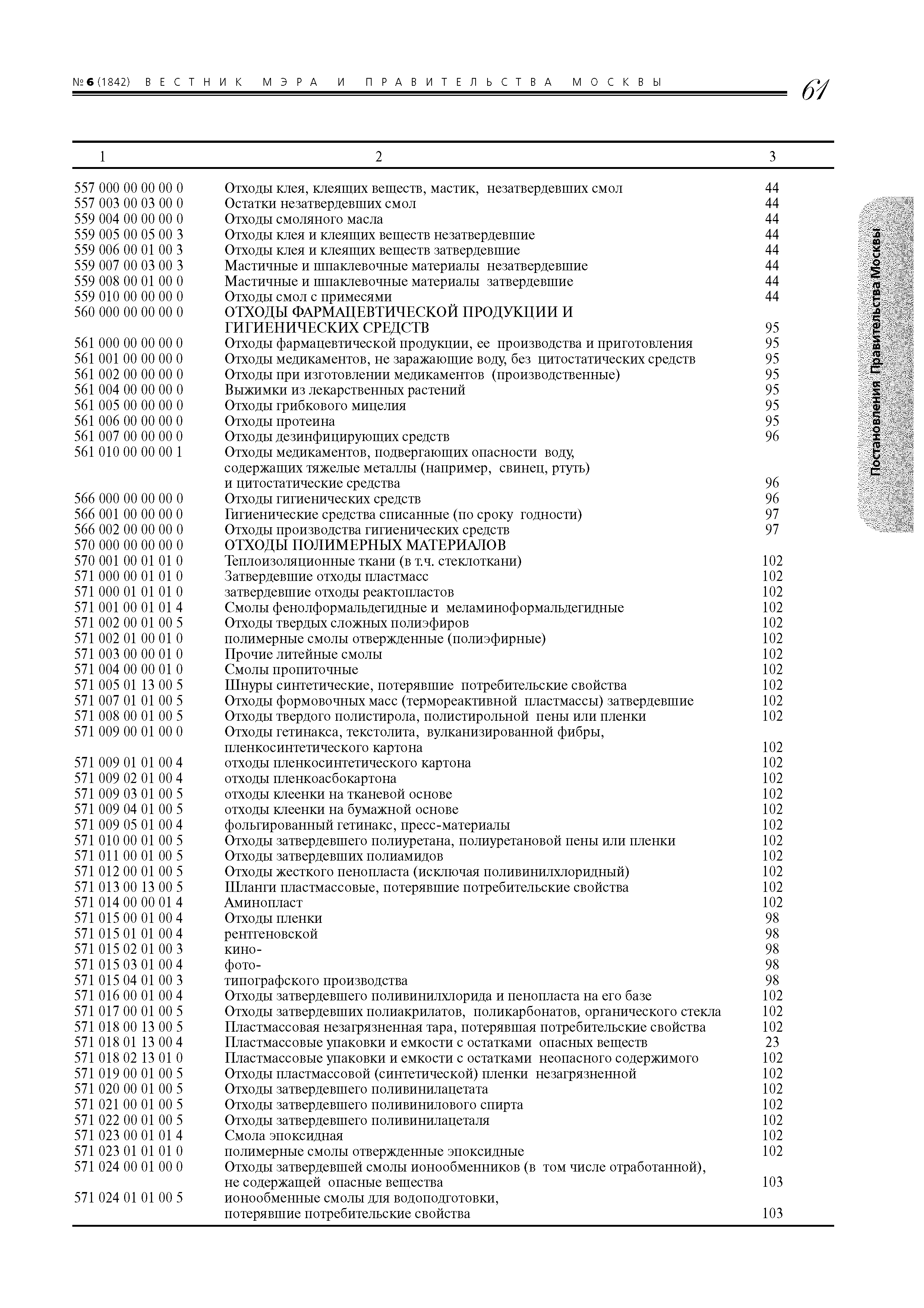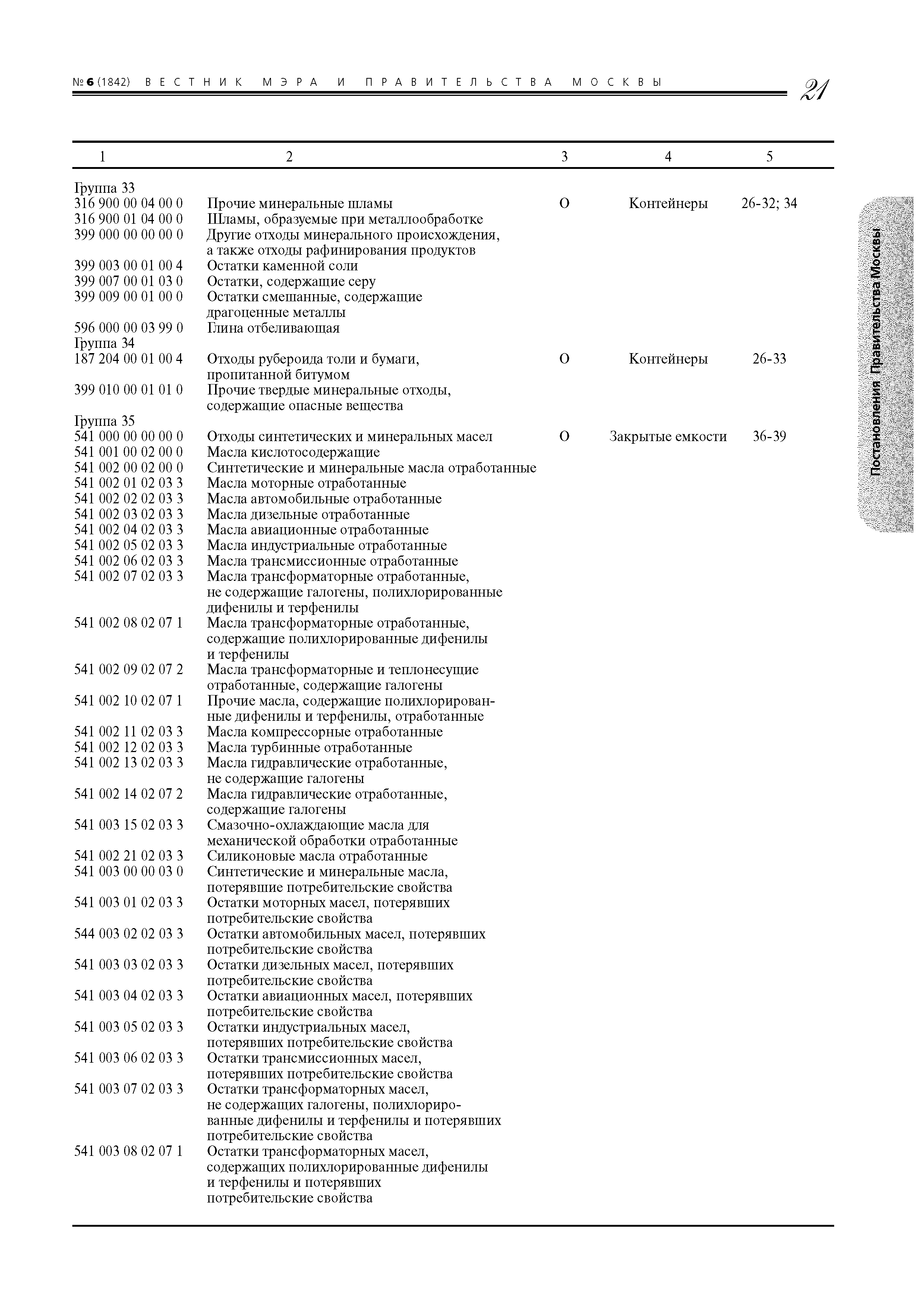 | Оглавление: | 1. Область применения 2. Основные понятия и определения (в соответствии с Межгосударственным стандартом ГОСТ 30772-2001), введенным в действие постановлением Госстандарта РФ от 28.12.2001 № 607-СТ 3. Общие требования к организации временного хранения отходов производства и потребления 4. Требования к организации площадок временного хранения отходов производства и потребления на территориях природопользователей Таблица 1. Группировка отходов по однотипности требований к оборудованию мест временного хранения Таблица 2. Классификационный каталог отходов производства и потребления города Москвы с указанием номеров групп по условиям хранения отходов |